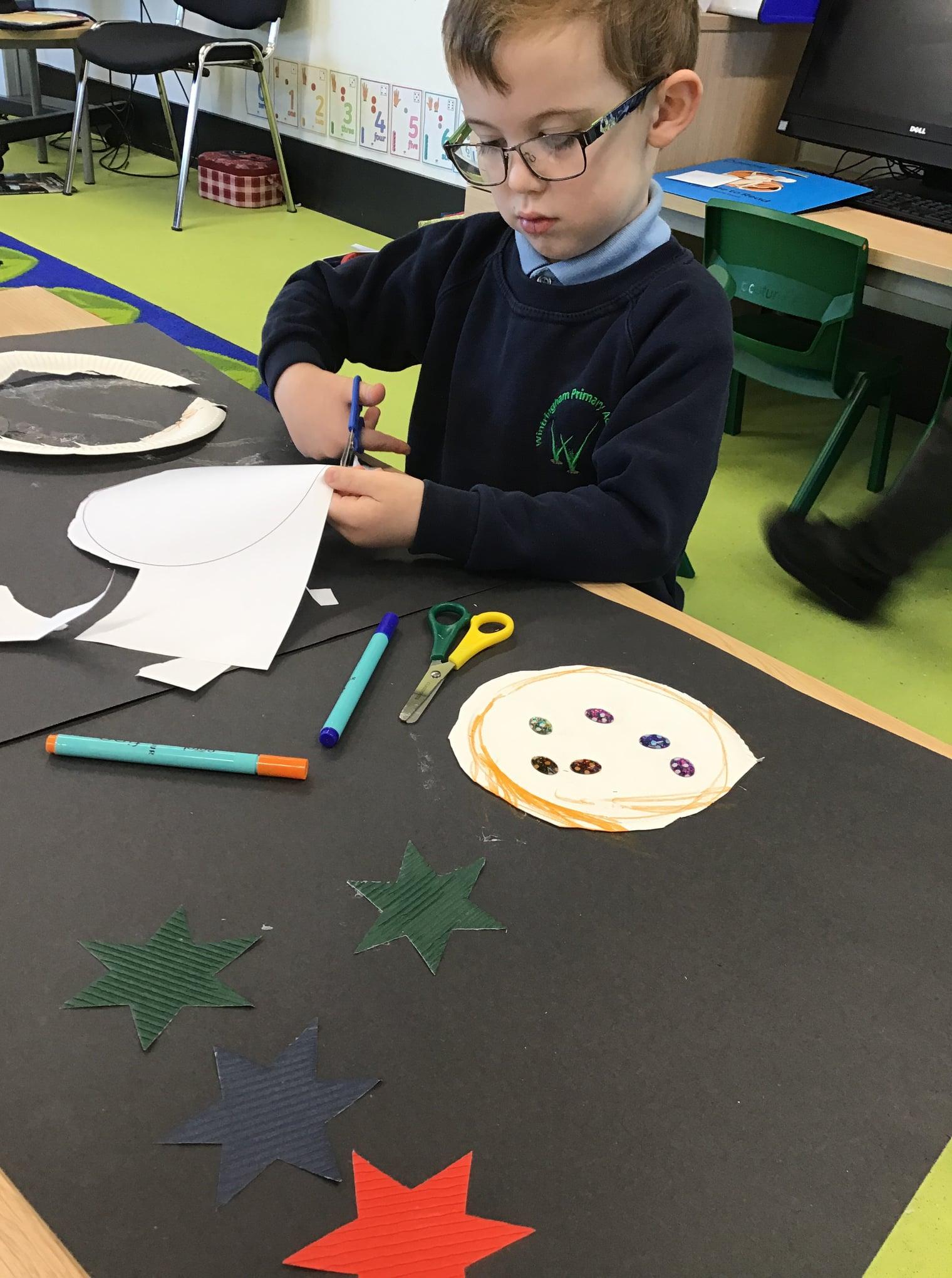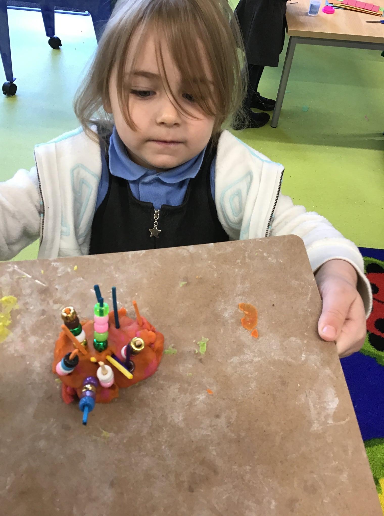 Expressive Arts and Design (EAD): The children are offered many creative activities in any one week ranging from painting, drawing and printing to collage, clay and junk modelling. We also use musical instruments and sing a variety of rhymes and songs. Throughout the year, the children will be learning to explore a variety of materials, tools and techniques, experimenting with colour, design, texture, form and function, share their creations, explaining the processes they have used, sing a range of nursery rhymes and songs and invent, adapt and recount narratives.