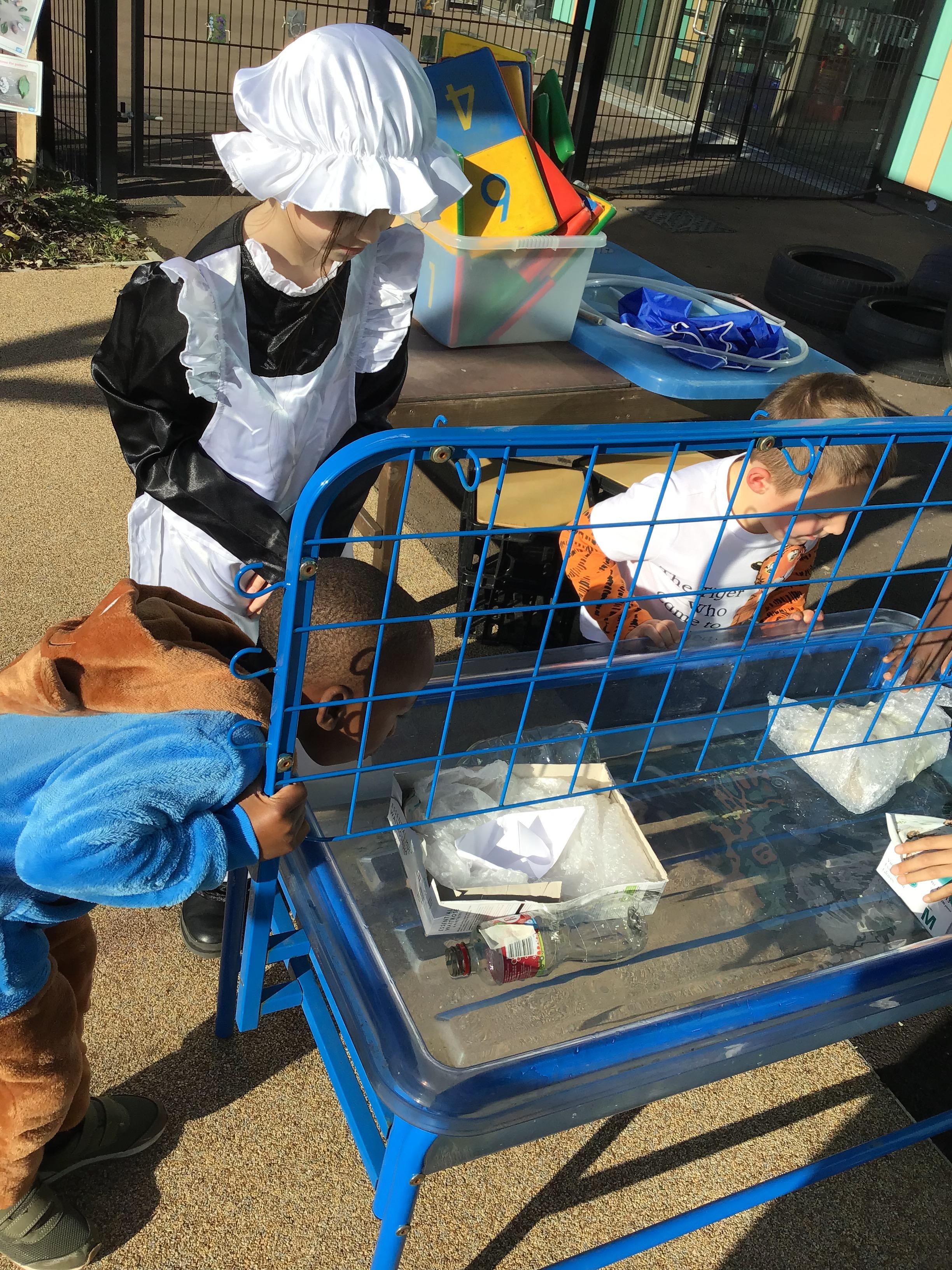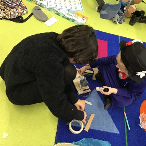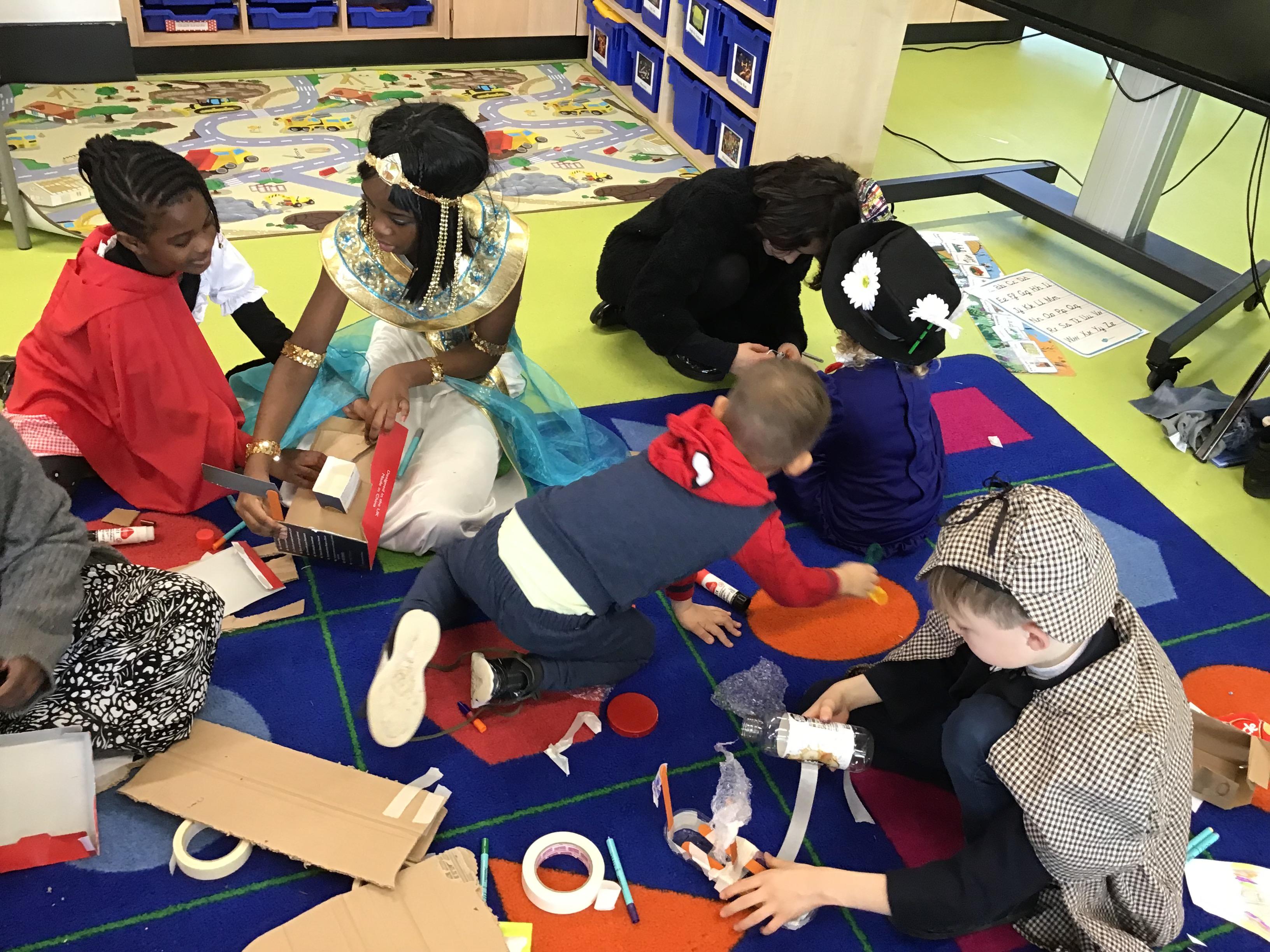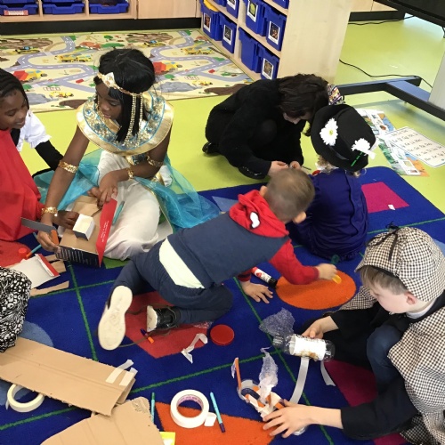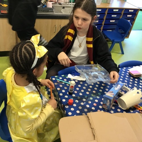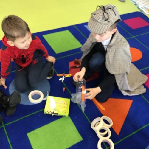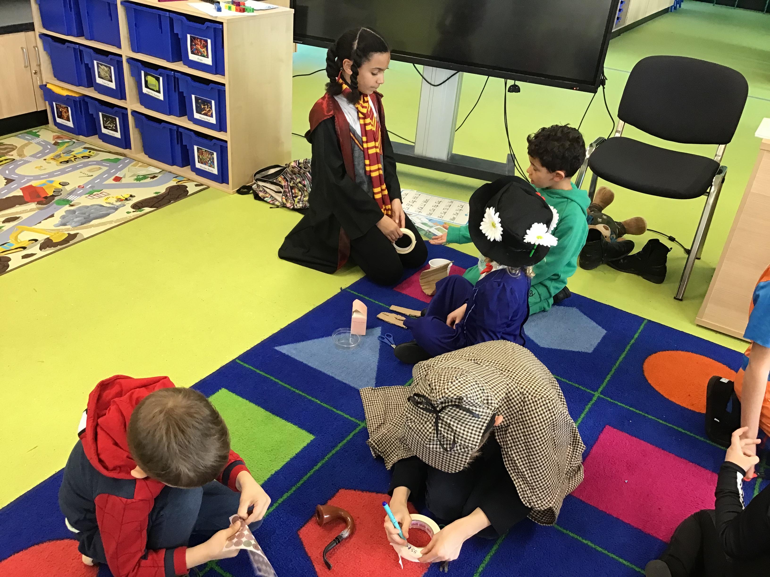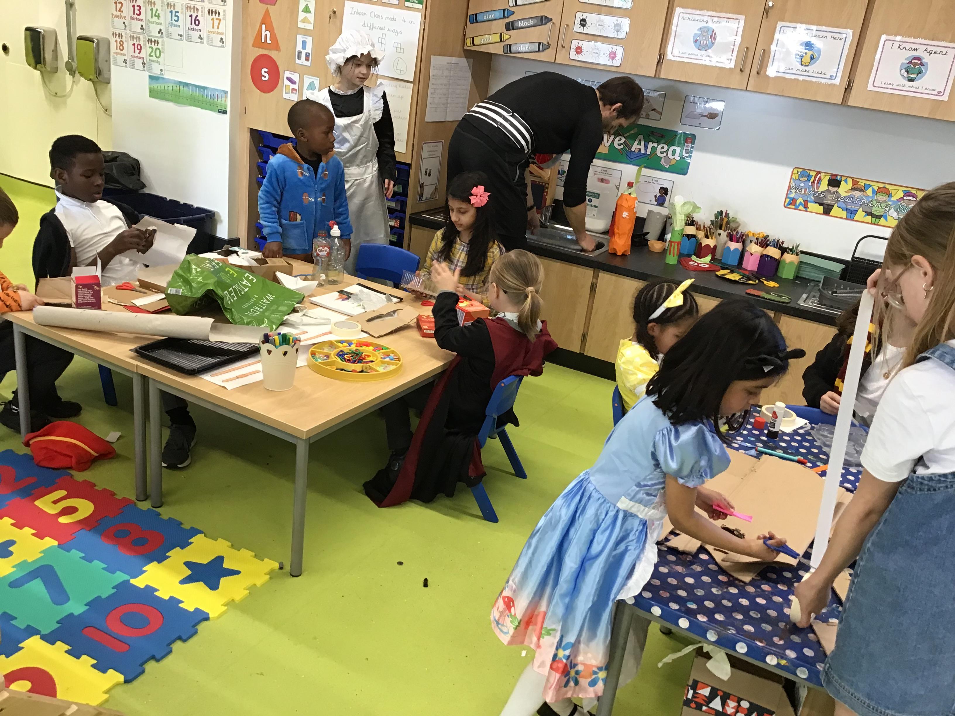 The children have had a fantastic day to celebrate World Book Day. First, the children joined together to hear the story, 'The Day the Crayons Quit.' After reading the story, the children realised the crayons had been stolen and the children were tasked with a finding clues to the culprit. The children moved around the school and worked together to identify the different clues. After lunch, the police came and asked the children about their investigation. They then saw the culprit, 'The Highway Rat,' and went and arrested him. The children were very excited about this! After, the children read with different children from other year groups. Finally, the children listened to another Oliver Jeffer's story, 'Lost and Found,' and were then tasked to create a boat with a child from Zephania class. The children used the water tray to test these. Tomorrow, they will be having a boat race on the pond. Thank you for all your efforts with the children's costumes. They all looked fantastic.