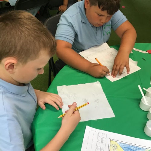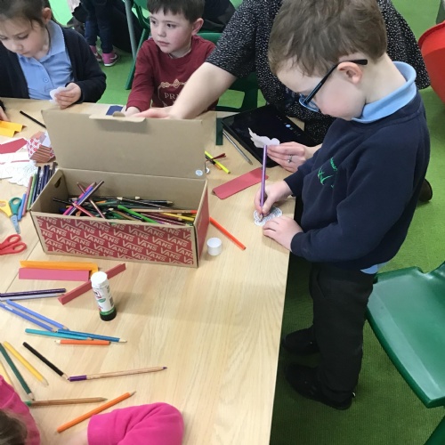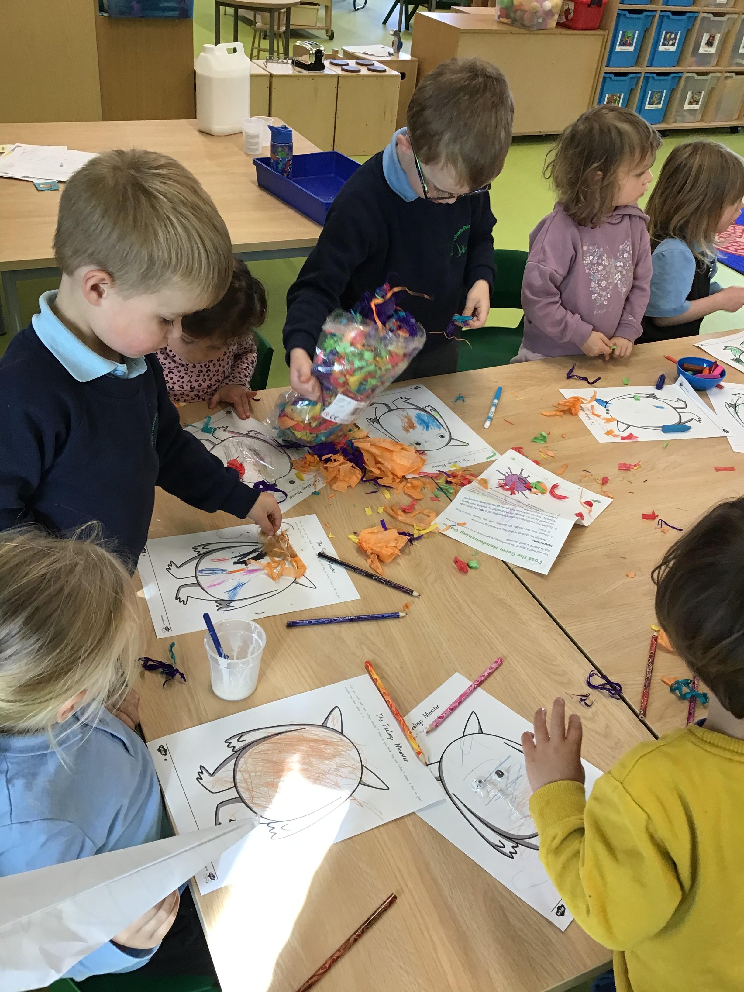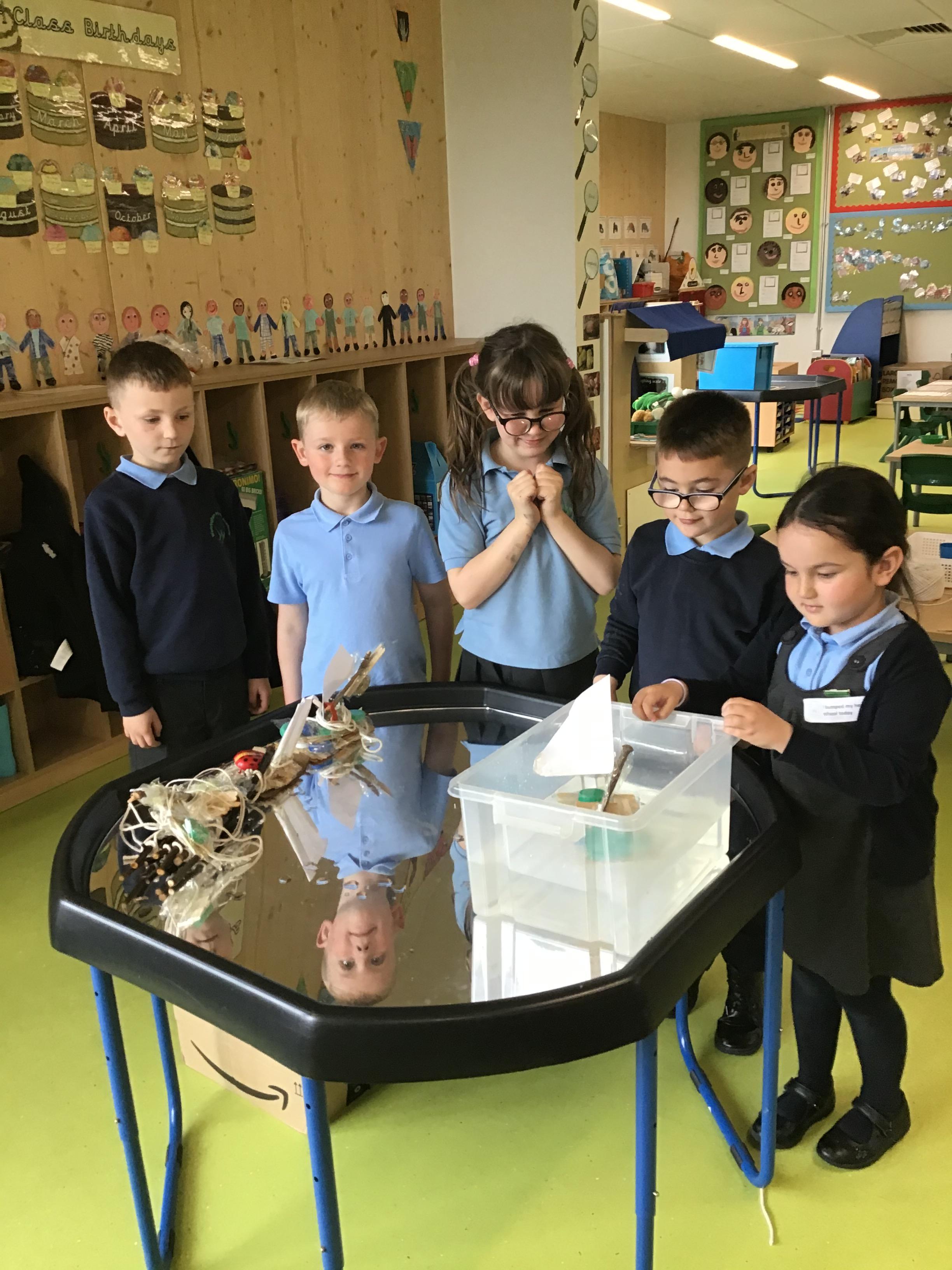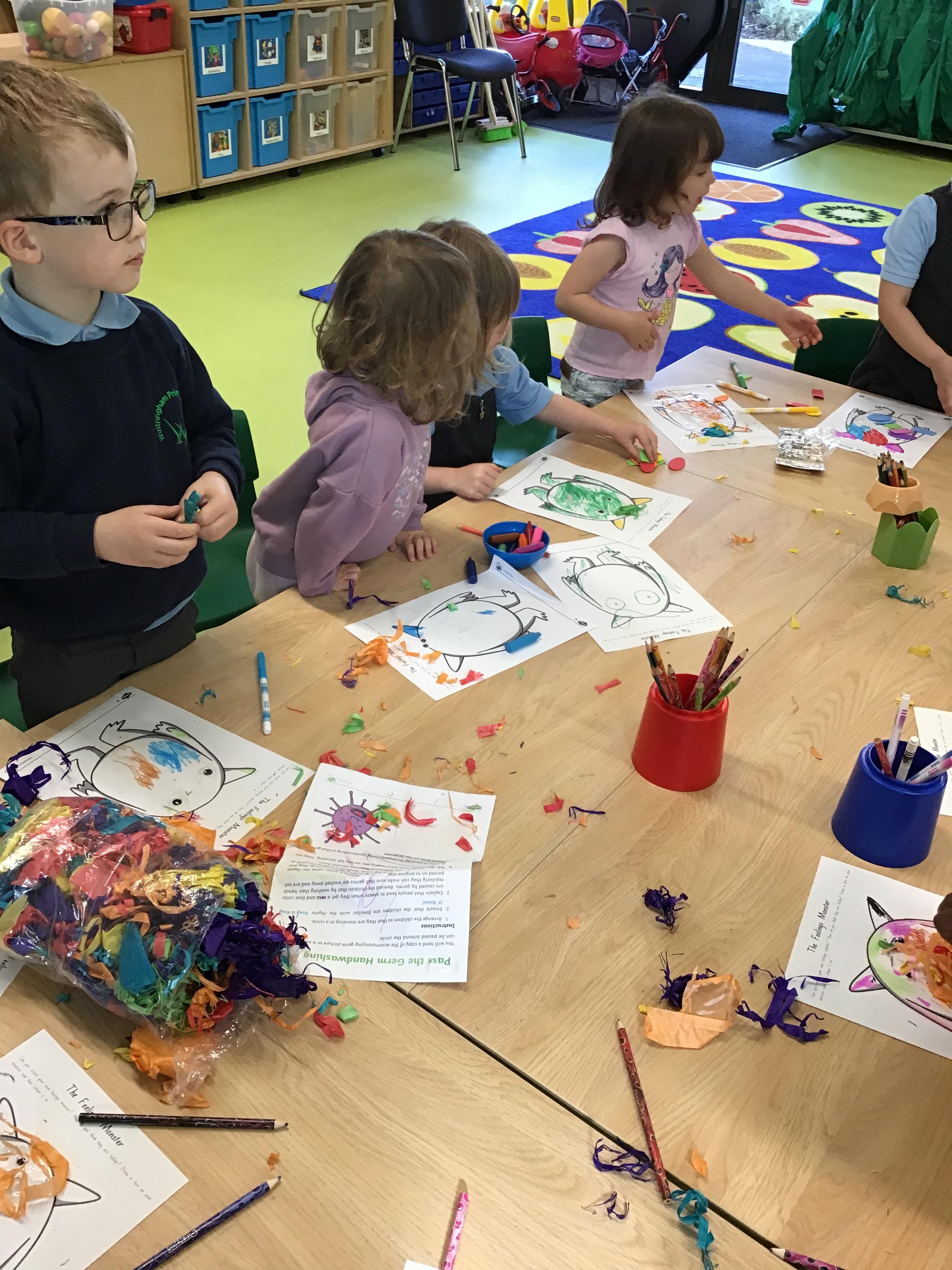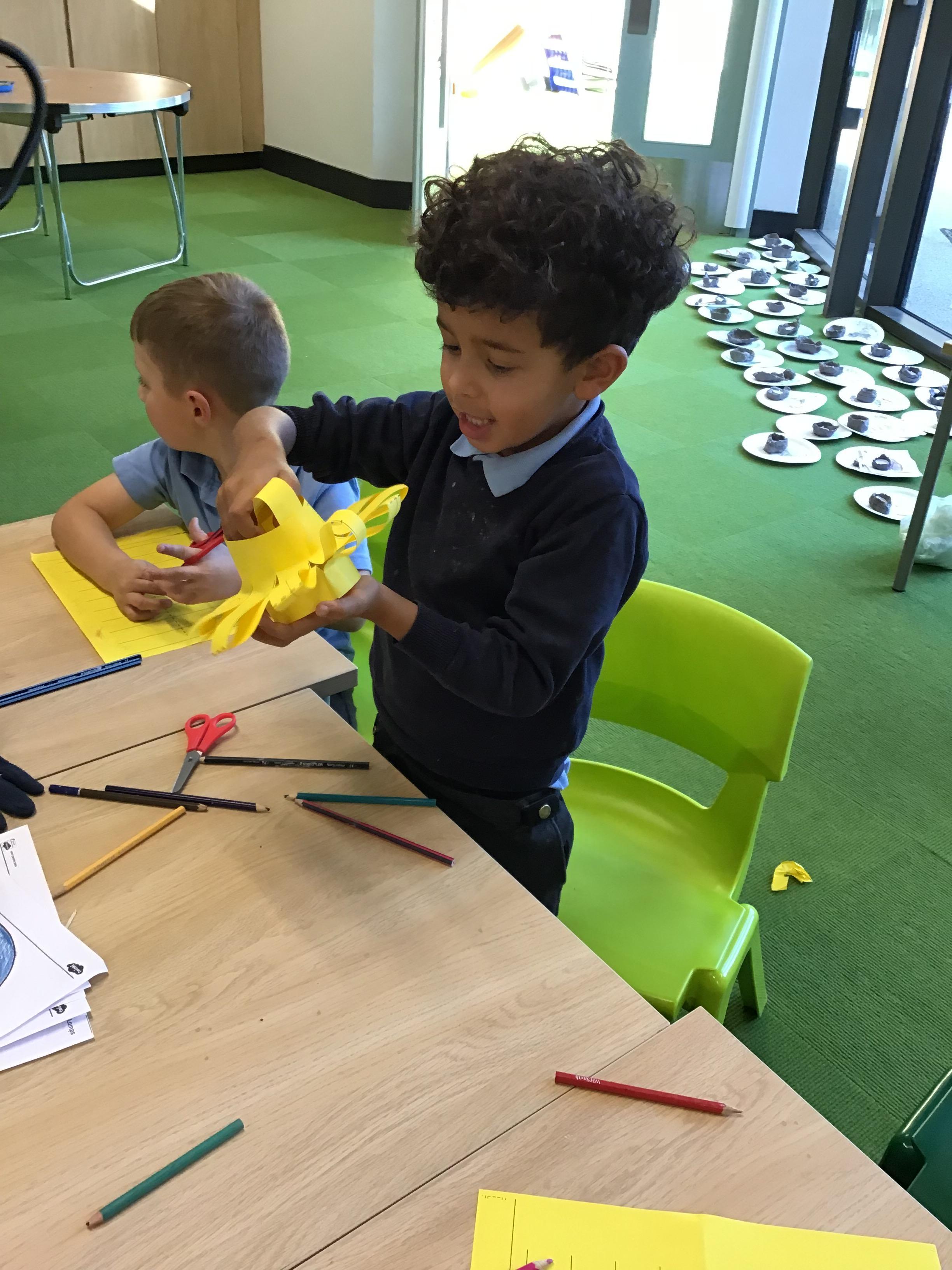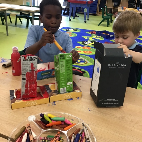 The children have had a fantastic day to celebrate World Book Day. First, the children joined together to hear the story, 'The Day the Crayons Quit.' After reading the story, the children realised the crayons had been stolen and the children were tasked with a finding clues to the culprit. The children moved around the school and worked together to identify the different clues. After lunch, the police came and asked the children about their investigation. They then saw the culprit, 'The Highway Rat,' and went and arrested him. The children were very excited about this! After, the children read with different children from other year groups. Finally, the children listened to another Oliver Jeffer's story, 'Lost and Found,' and were then tasked to create a boat with a child from Zephania class. The children used the water tray to test these. Tomorrow, they will be having a boat race on the pond. Thank you for all your efforts with the children's costumes. They all looked fantastic.
