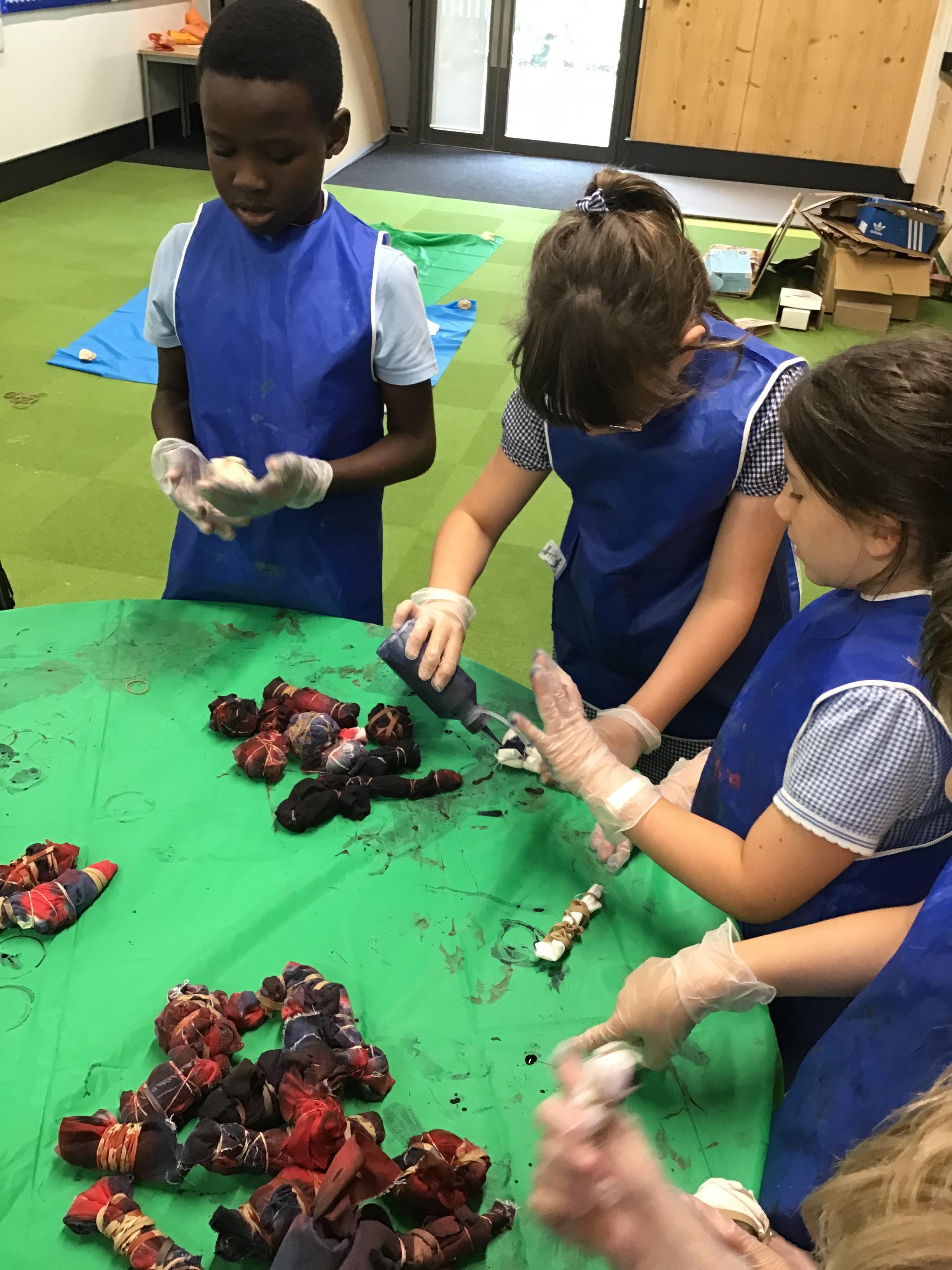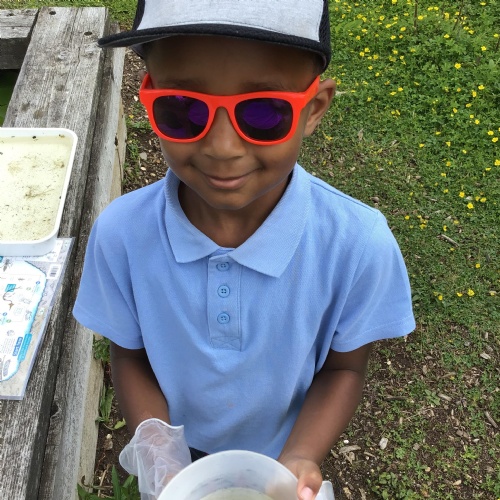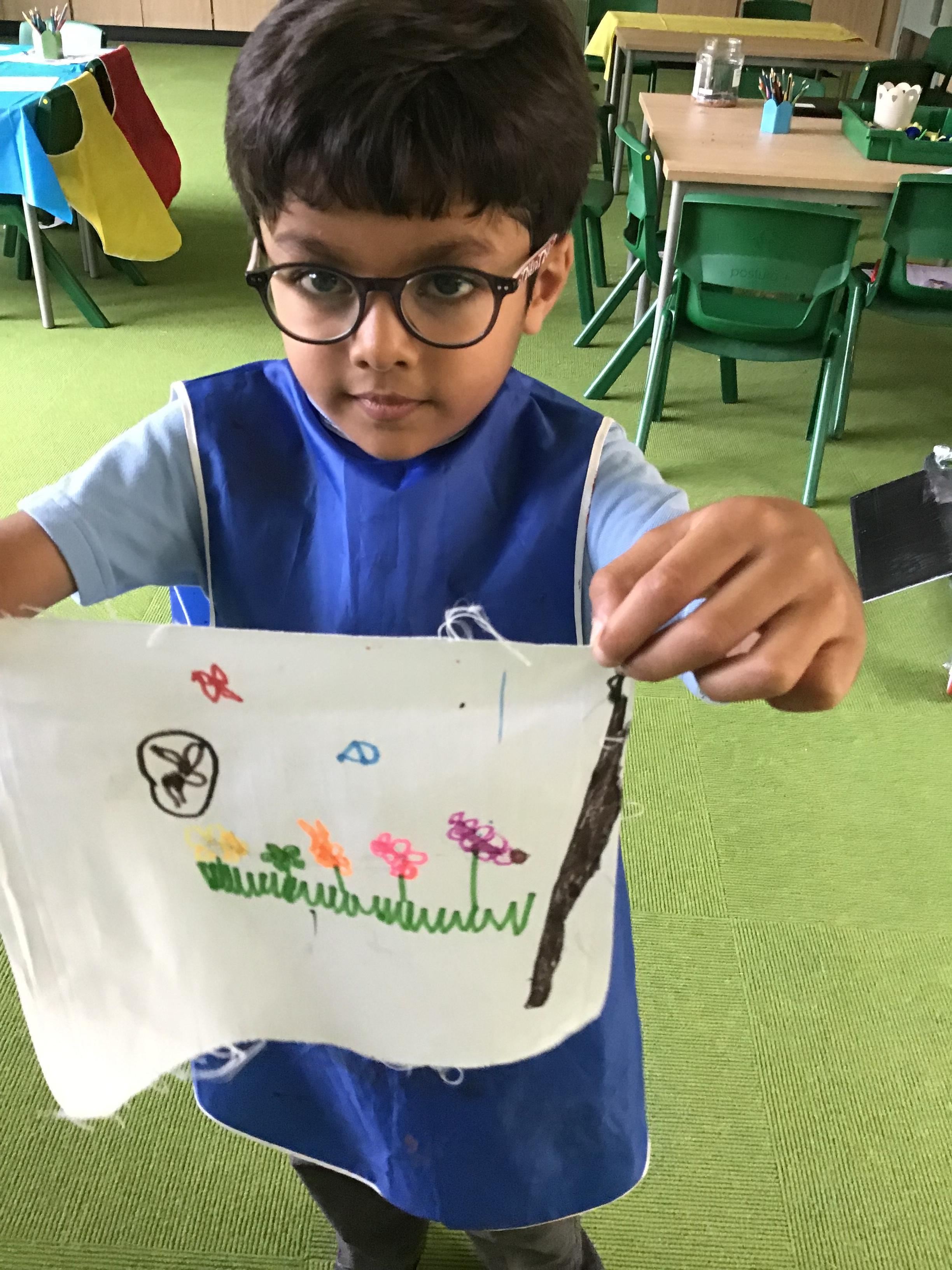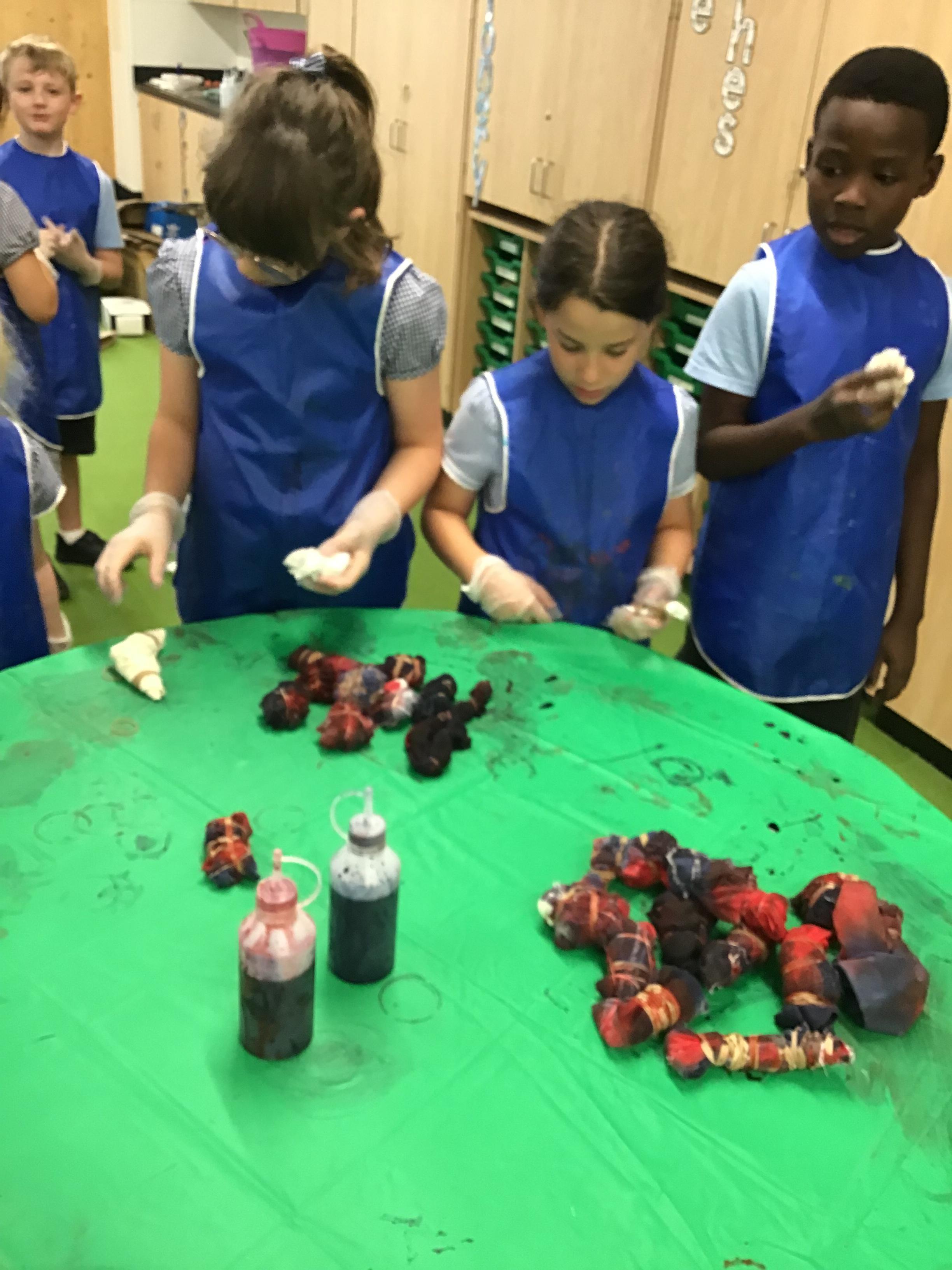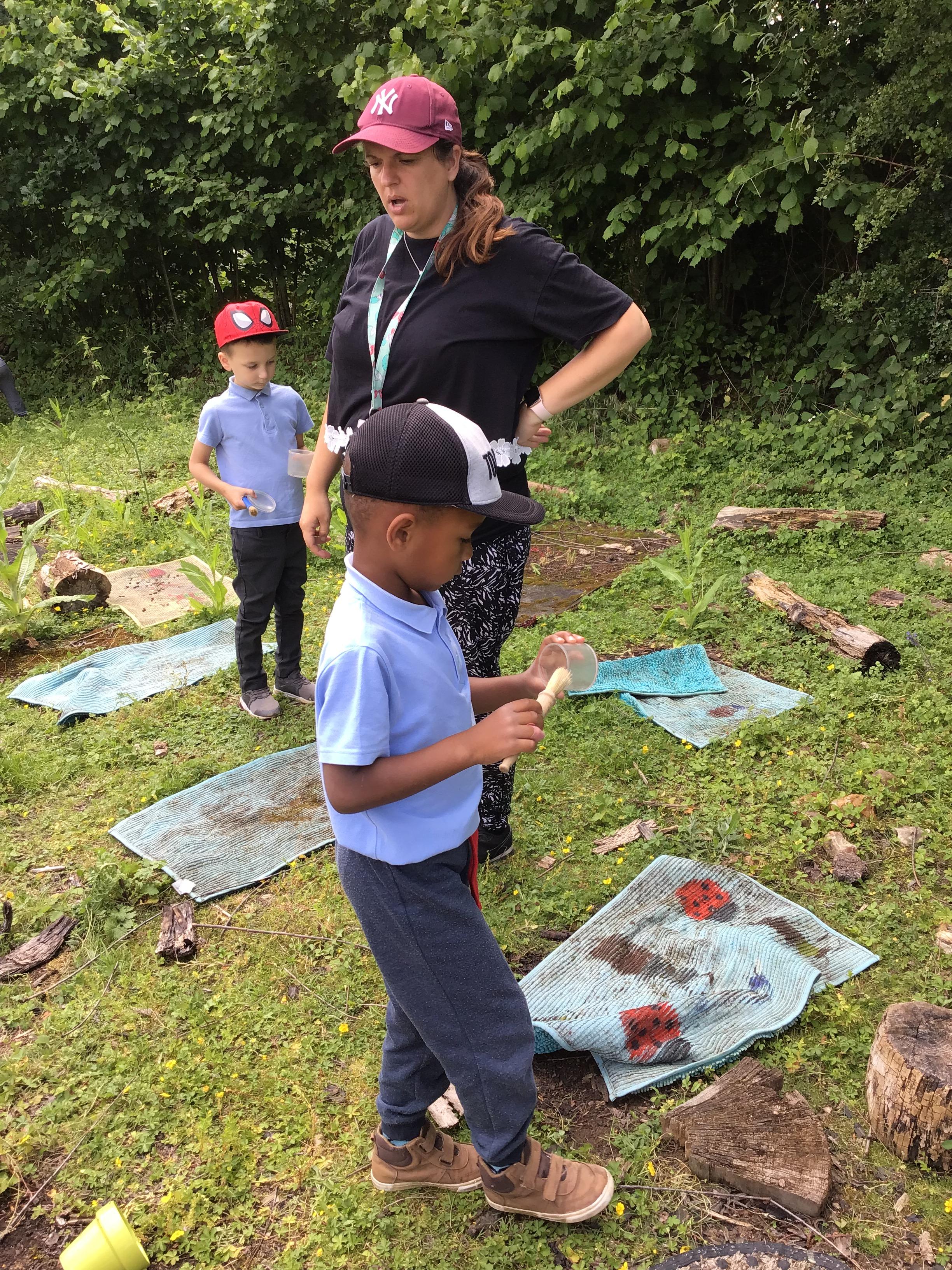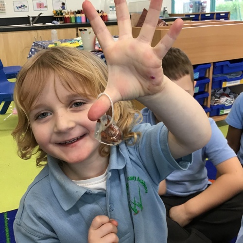 The children have had a fantastic outdoor learning session with Mrs Gregorious. They have practised a technique, 'Hapizome,' which the children found very exciting. The children used a range of natural resources to create a pattern on the canvas fabric. The children also created a wormery and we have had some new friends move in. They can't wait to watch them and see the tunnels that they create.