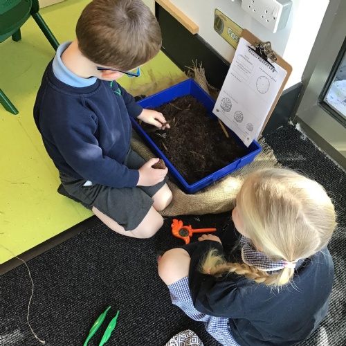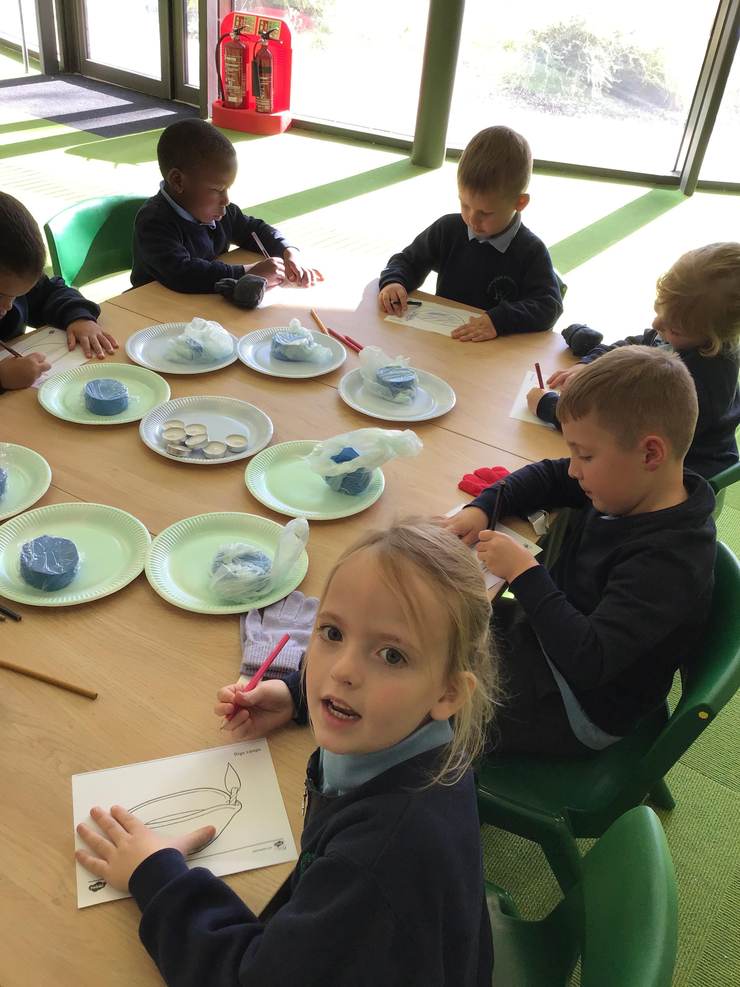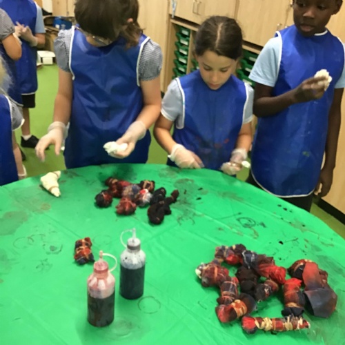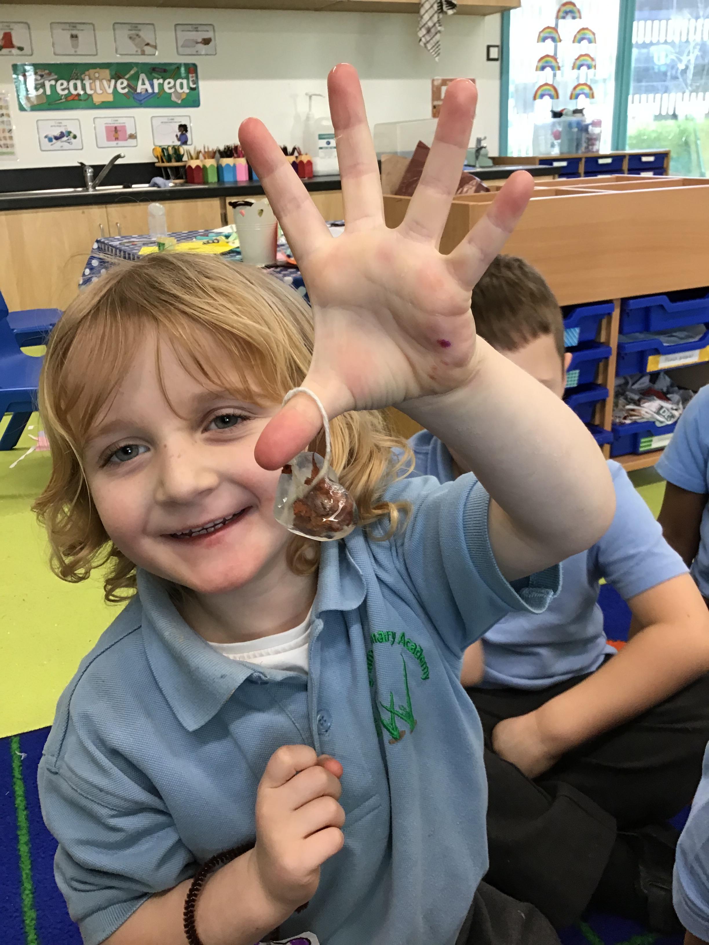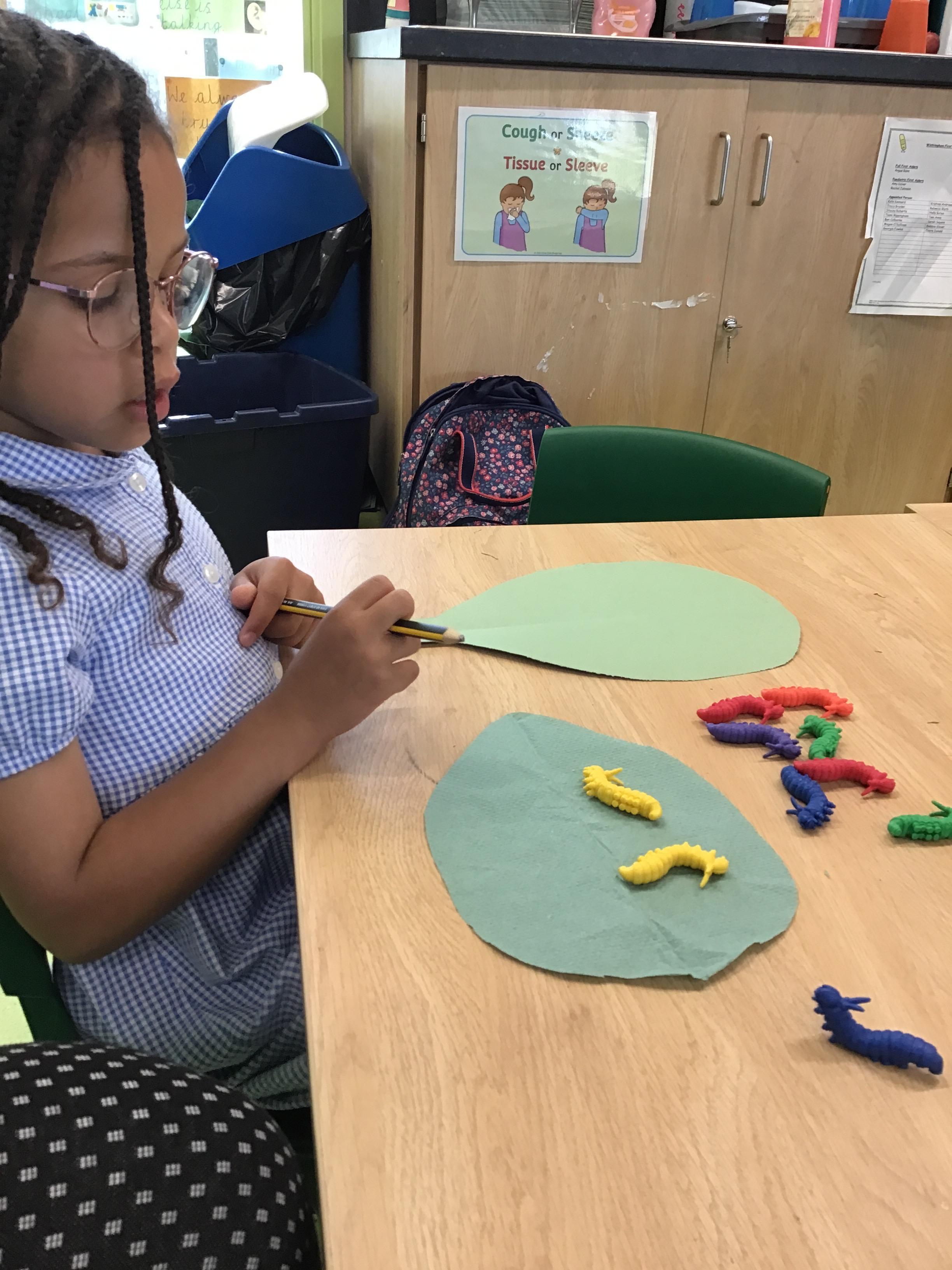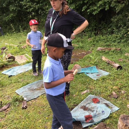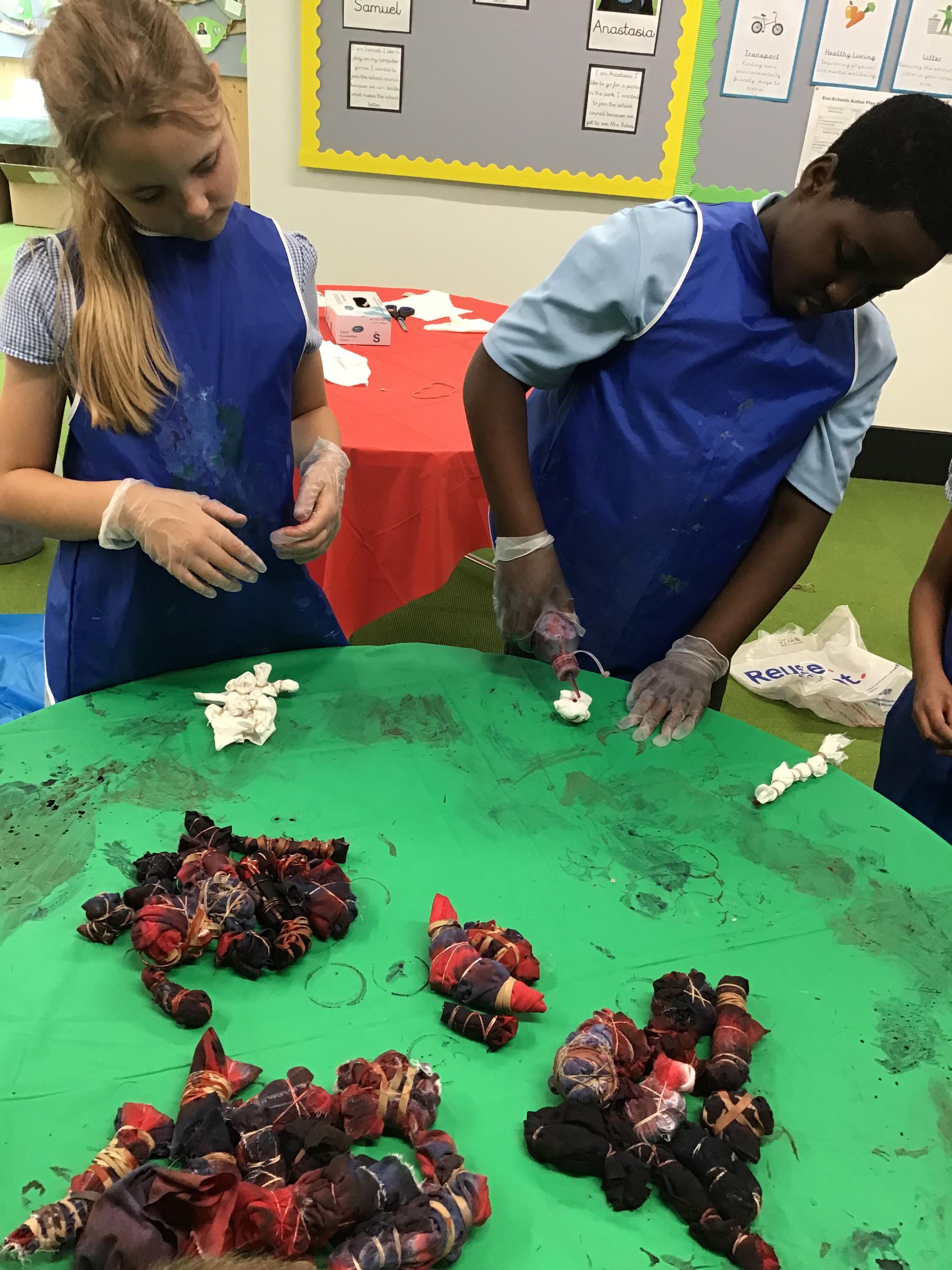 The children have had a fantastic outdoor learning session with Mrs Gregorious. They have practised a technique, 'Hapizome,' which the children found very exciting. The children used a range of natural resources to create a pattern on the canvas fabric. The children also created a wormery and we have had some new friends move in. They can't wait to watch them and see the tunnels that they create.