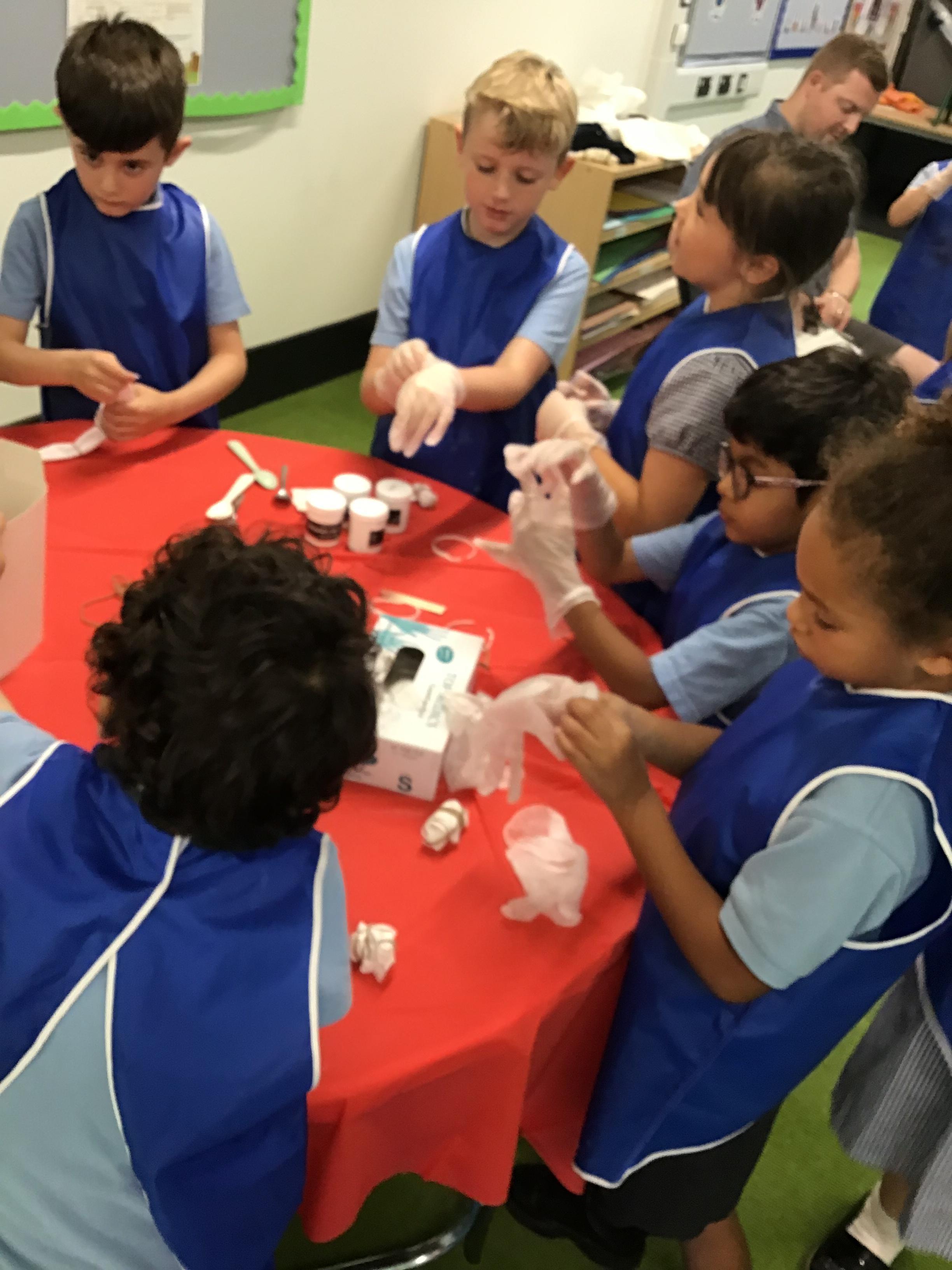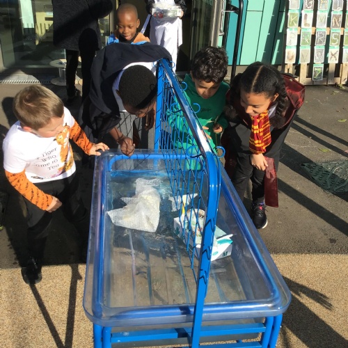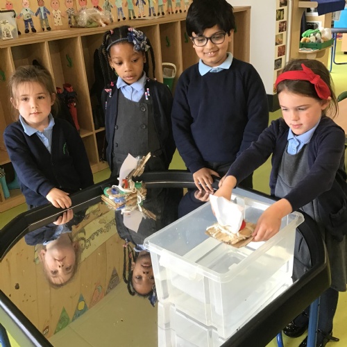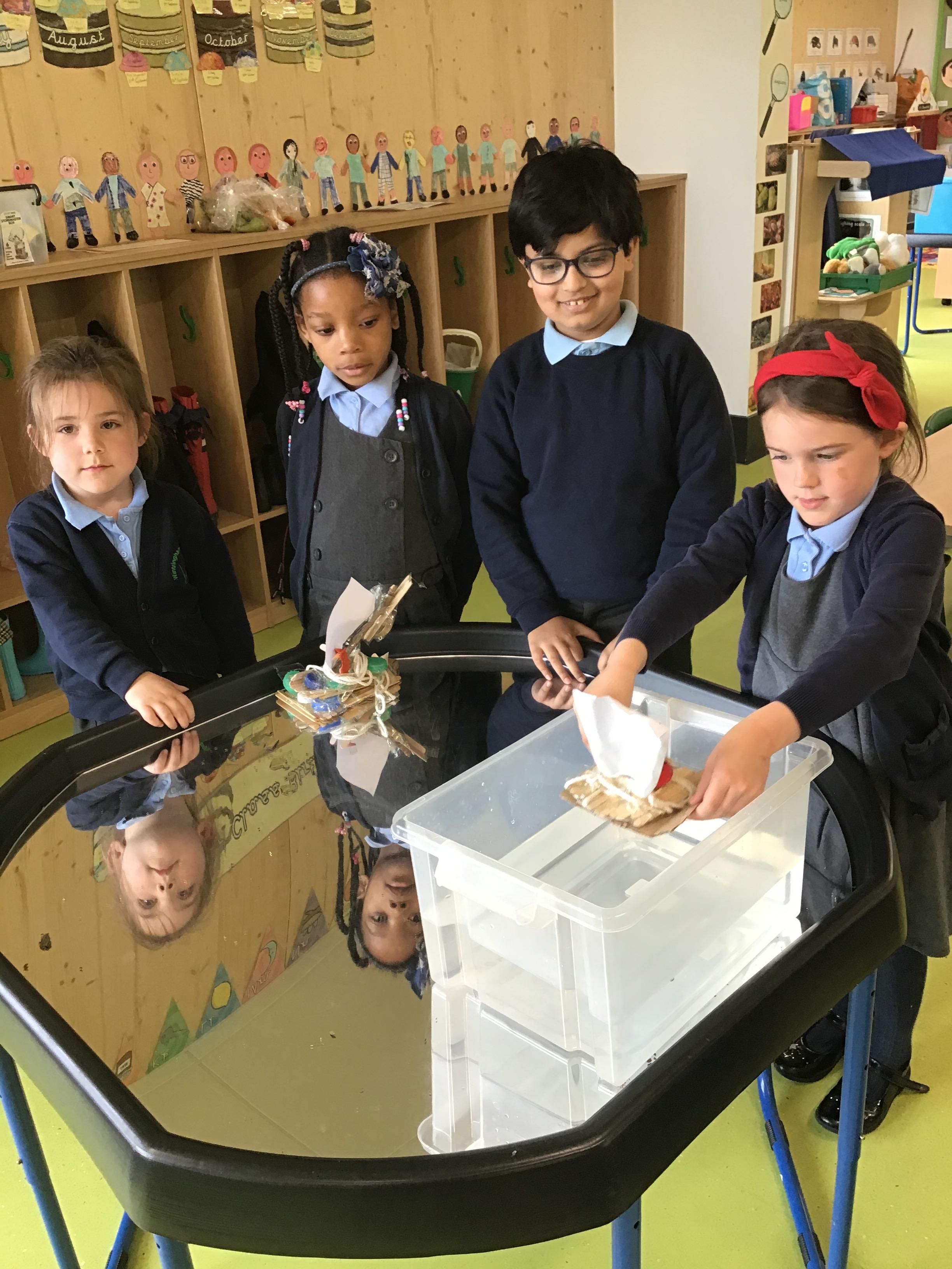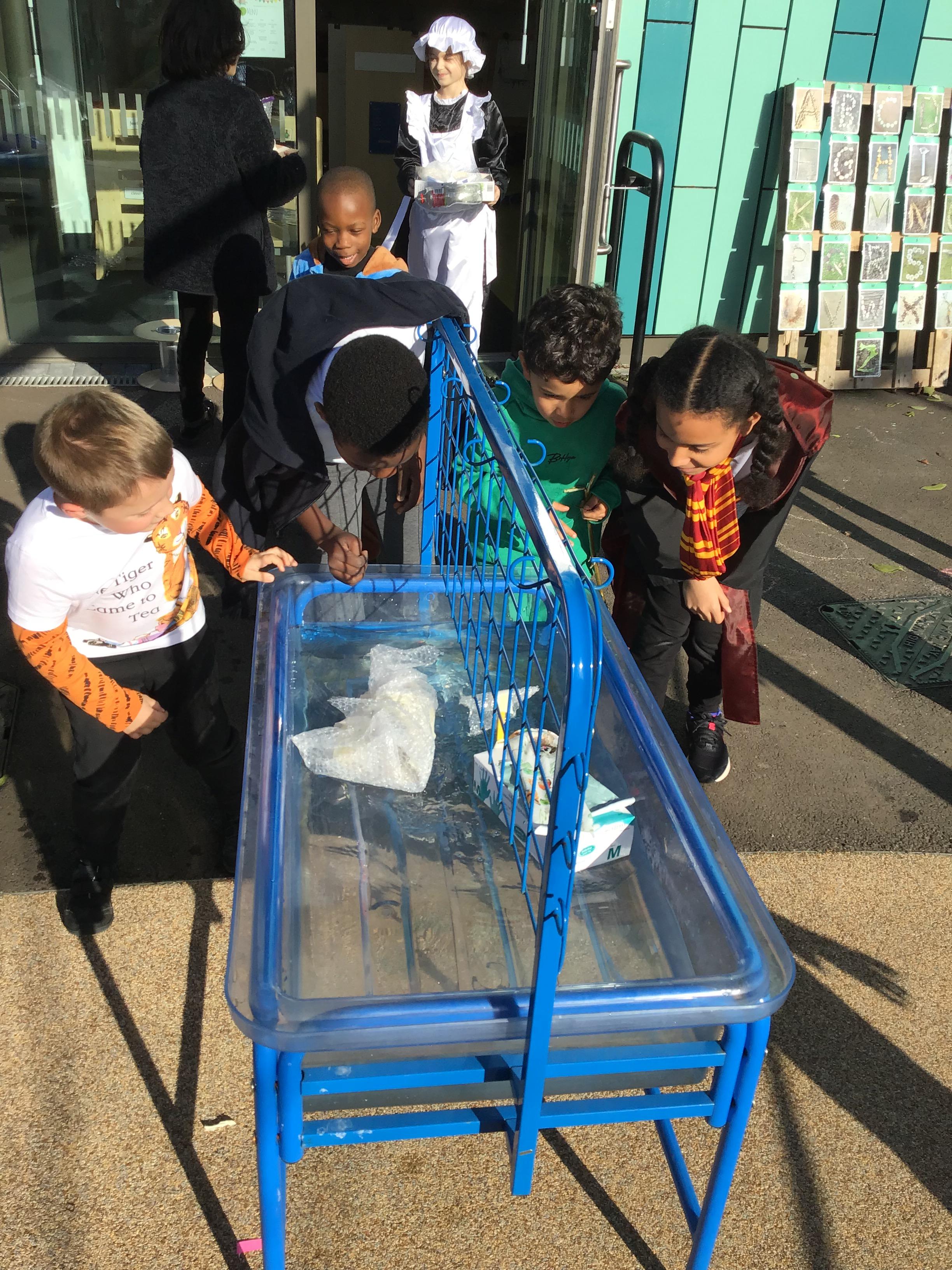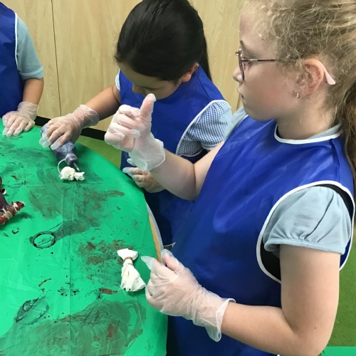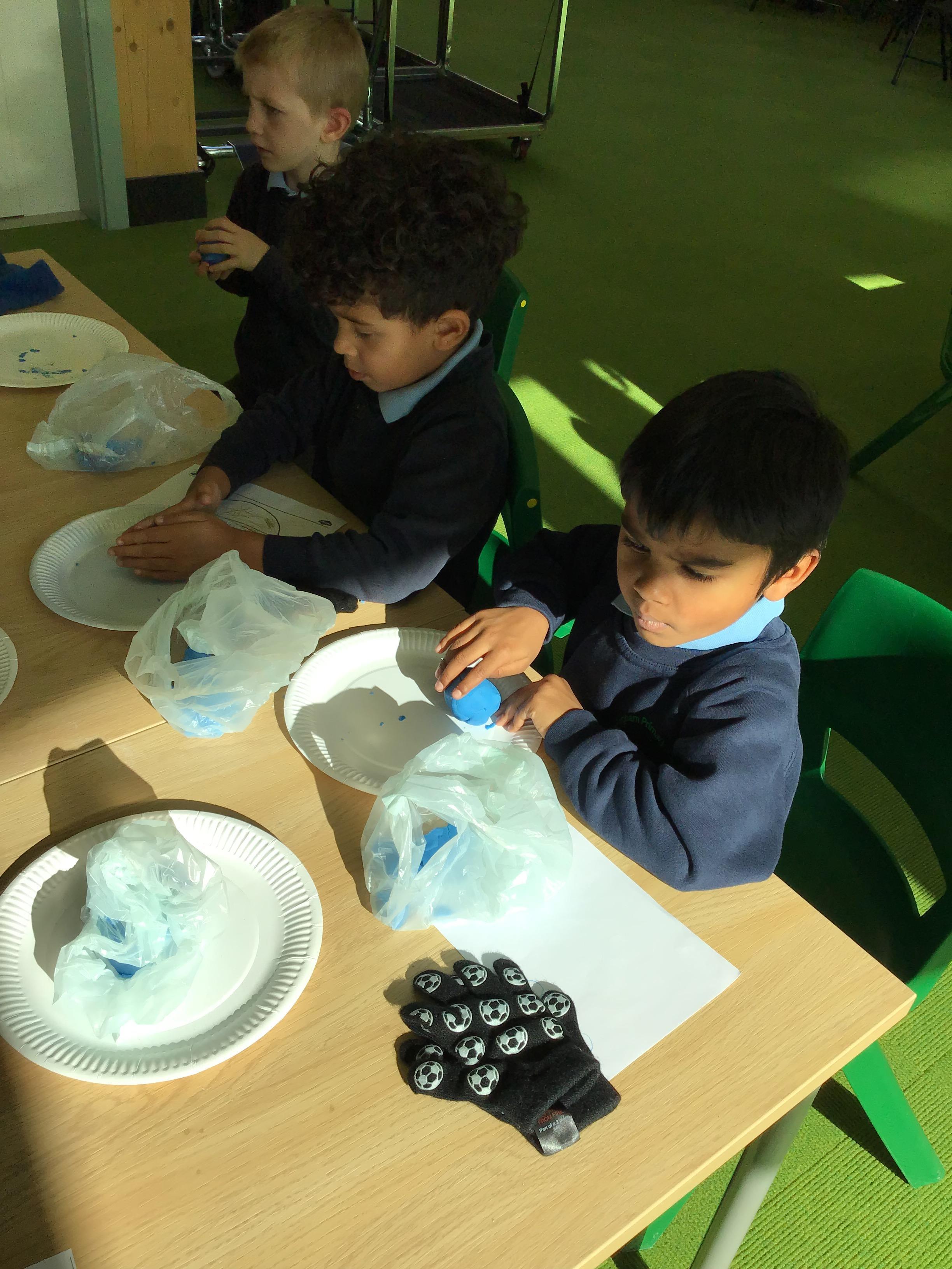 The children have had a fantastic outdoor learning session with Mrs Gregorious. They have practised a technique, 'Hapizome,' which the children found very exciting. The children used a range of natural resources to create a pattern on the canvas fabric. The children also created a wormery and we have had some new friends move in. They can't wait to watch them and see the tunnels that they create.