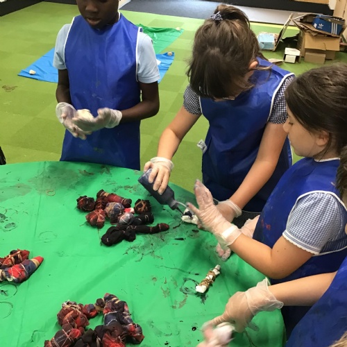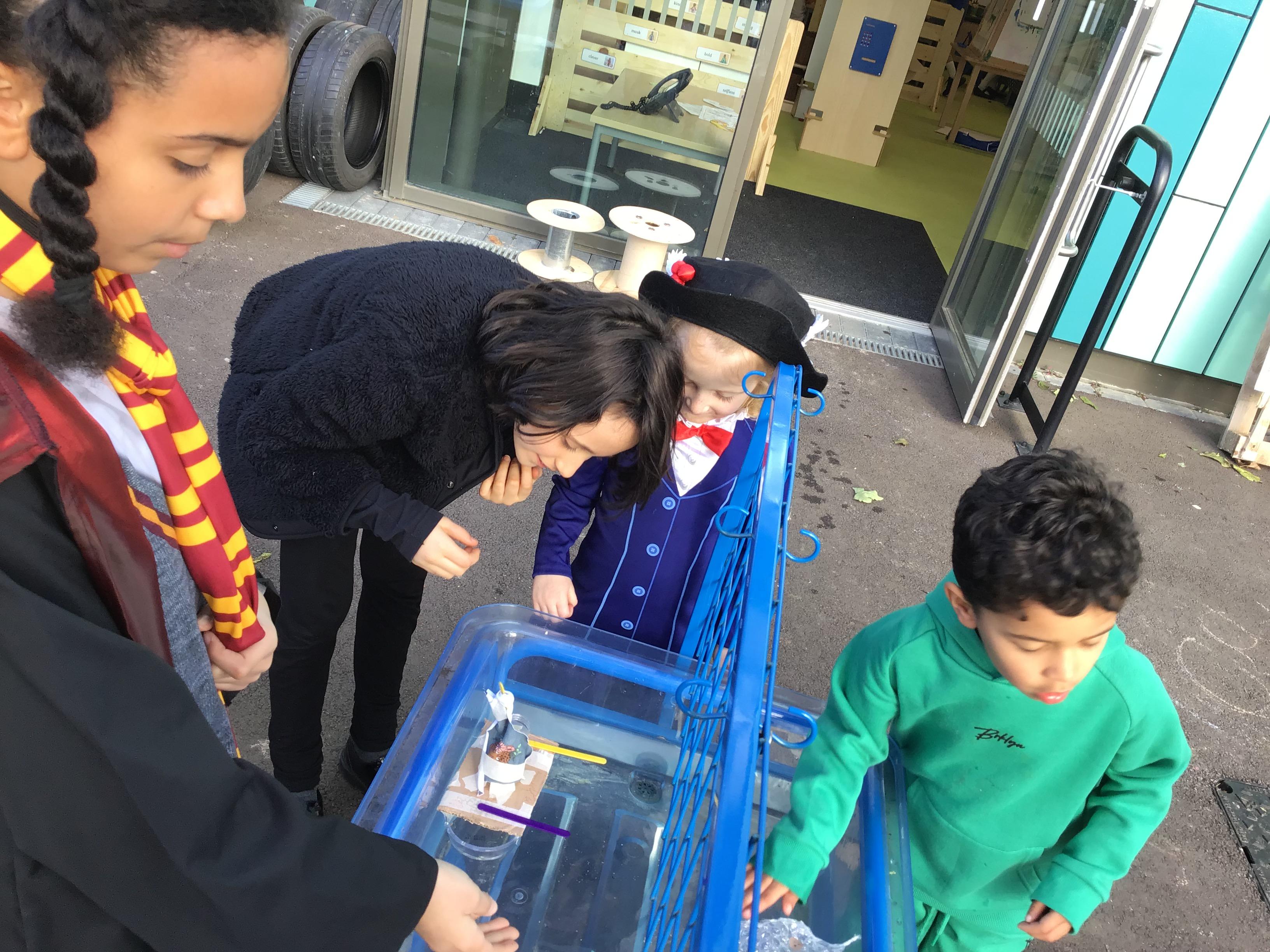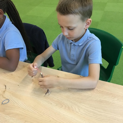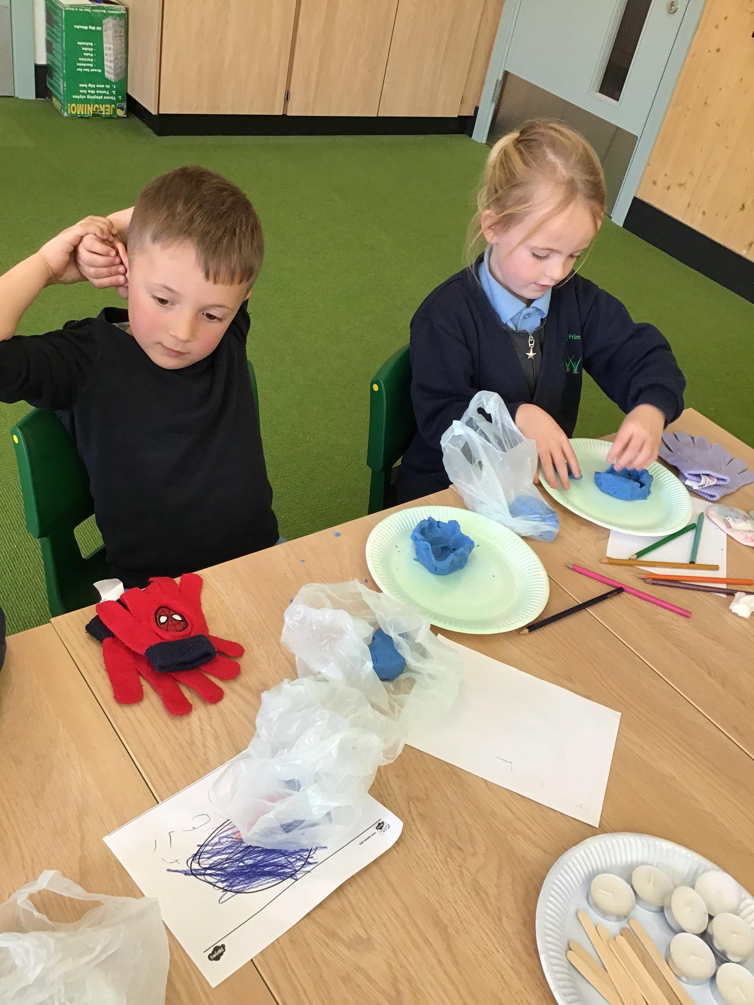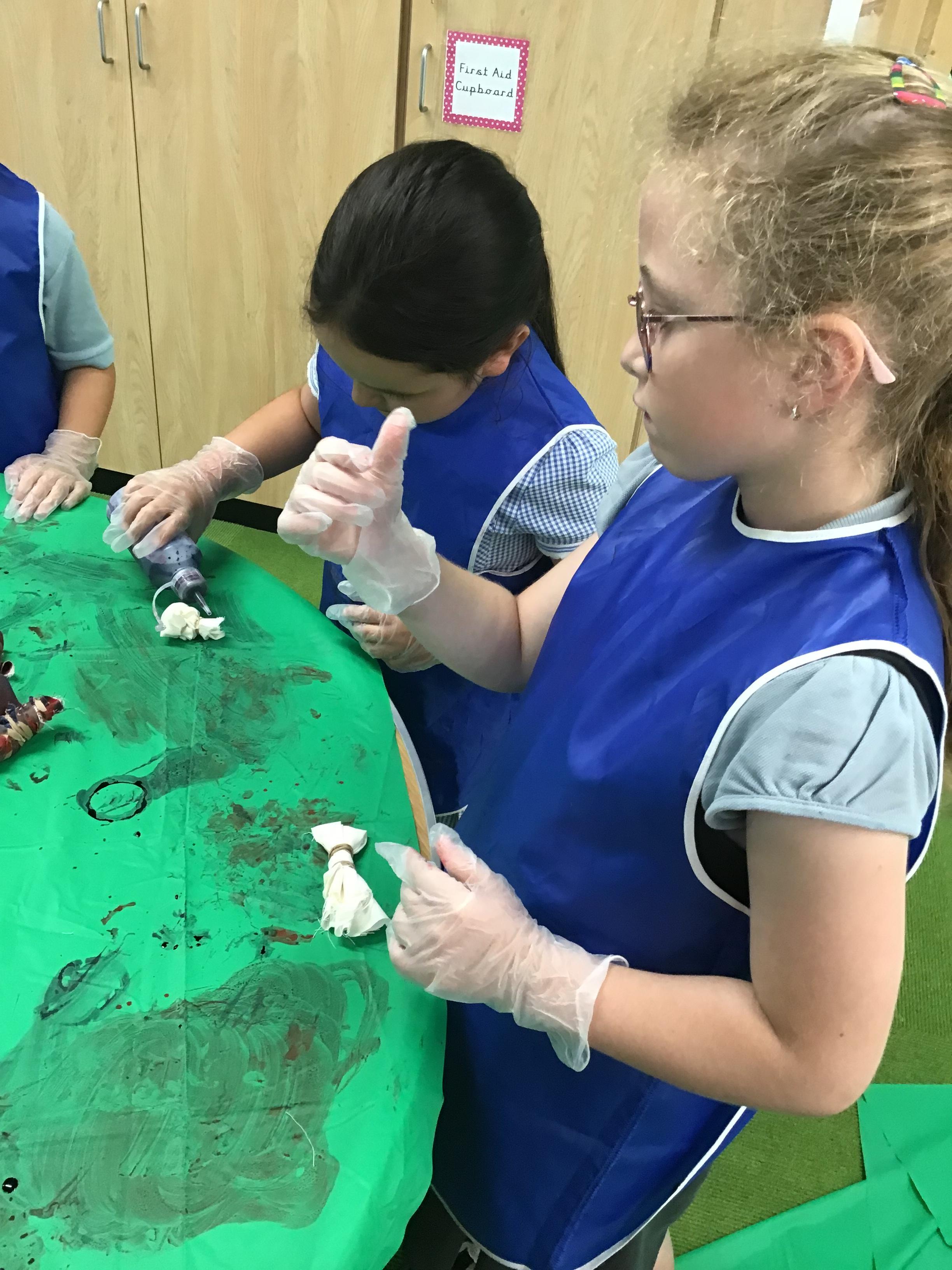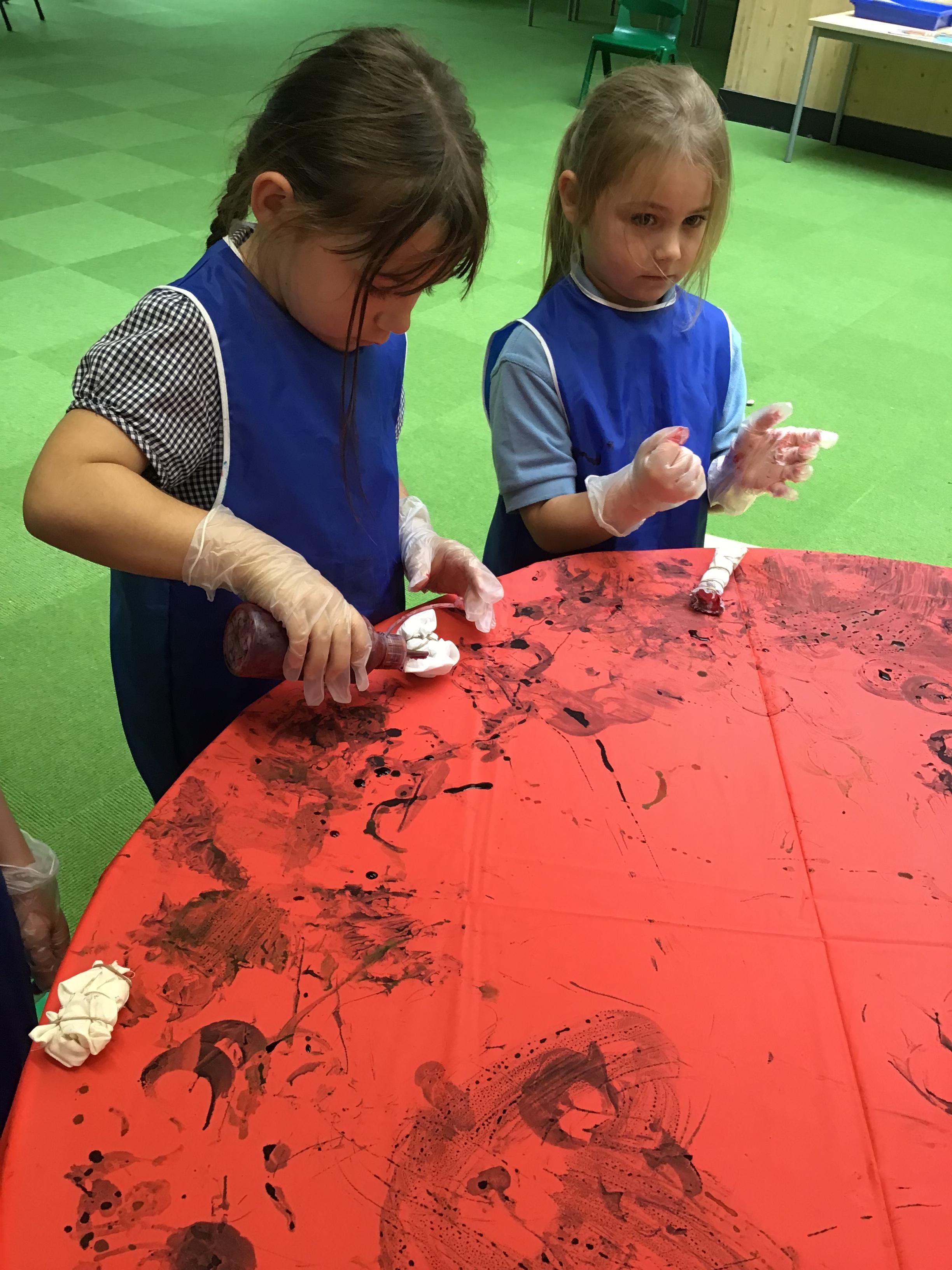 The children have had a fantastic outdoor learning session with Mrs Gregorious. They have practised a technique, 'Hapizome,' which the children found very exciting. The children used a range of natural resources to create a pattern on the canvas fabric. The children also created a wormery and we have had some new friends move in. They can't wait to watch them and see the tunnels that they create.