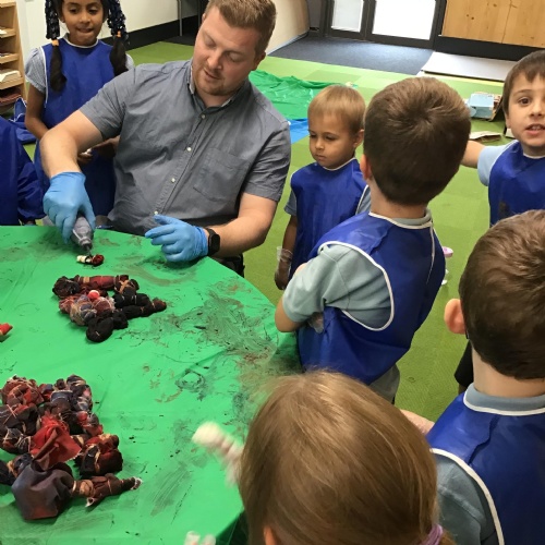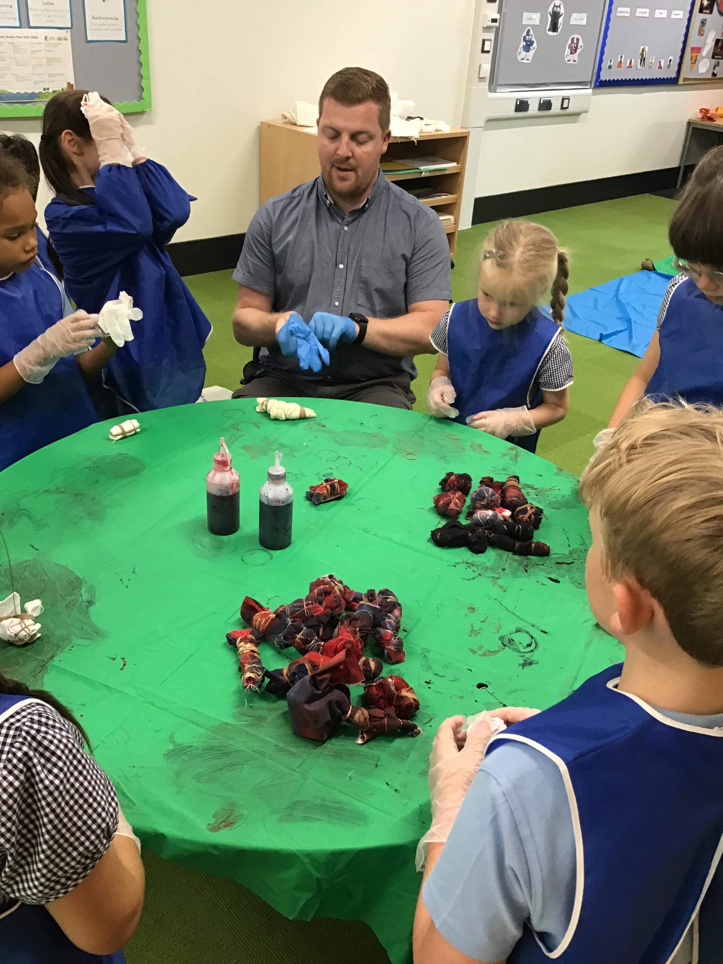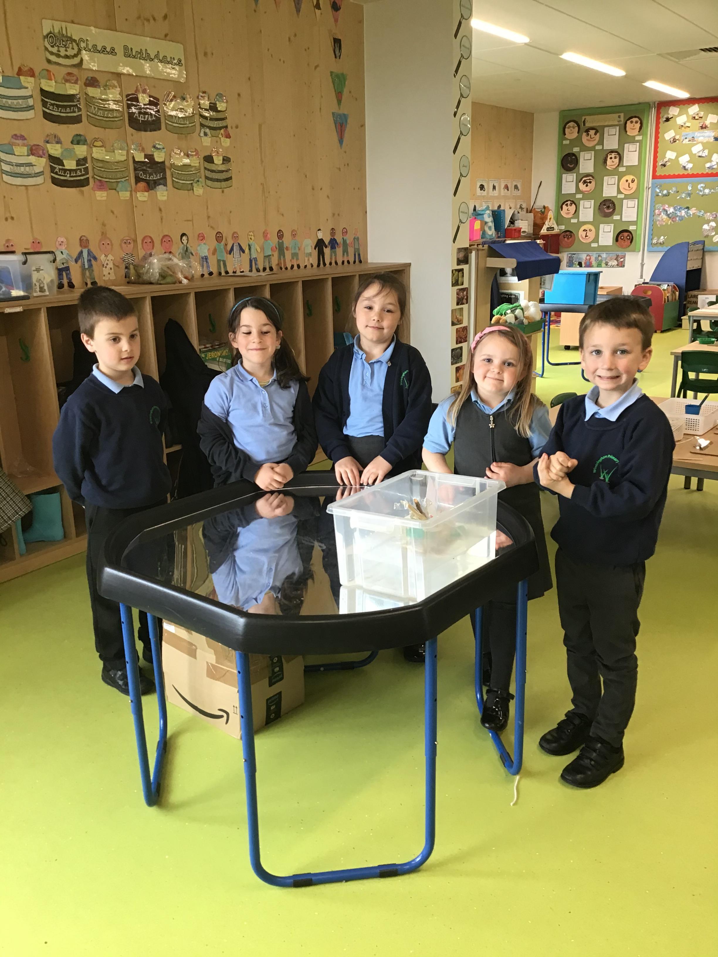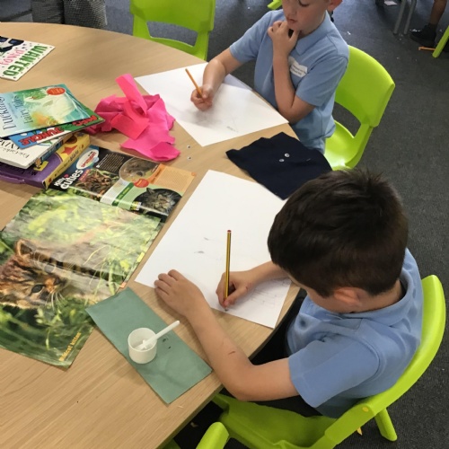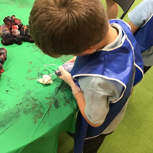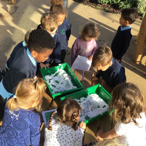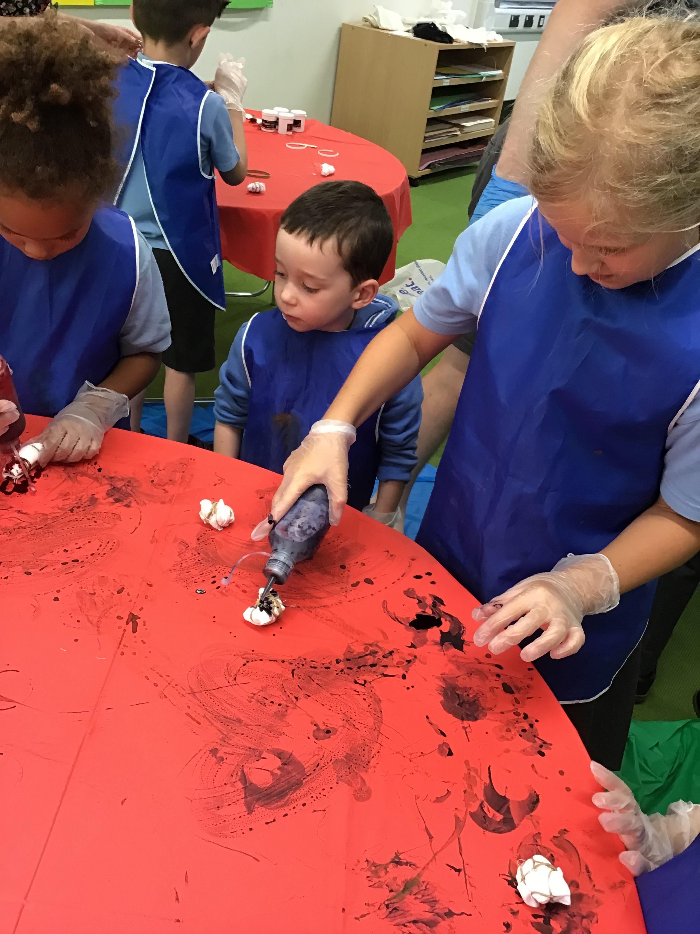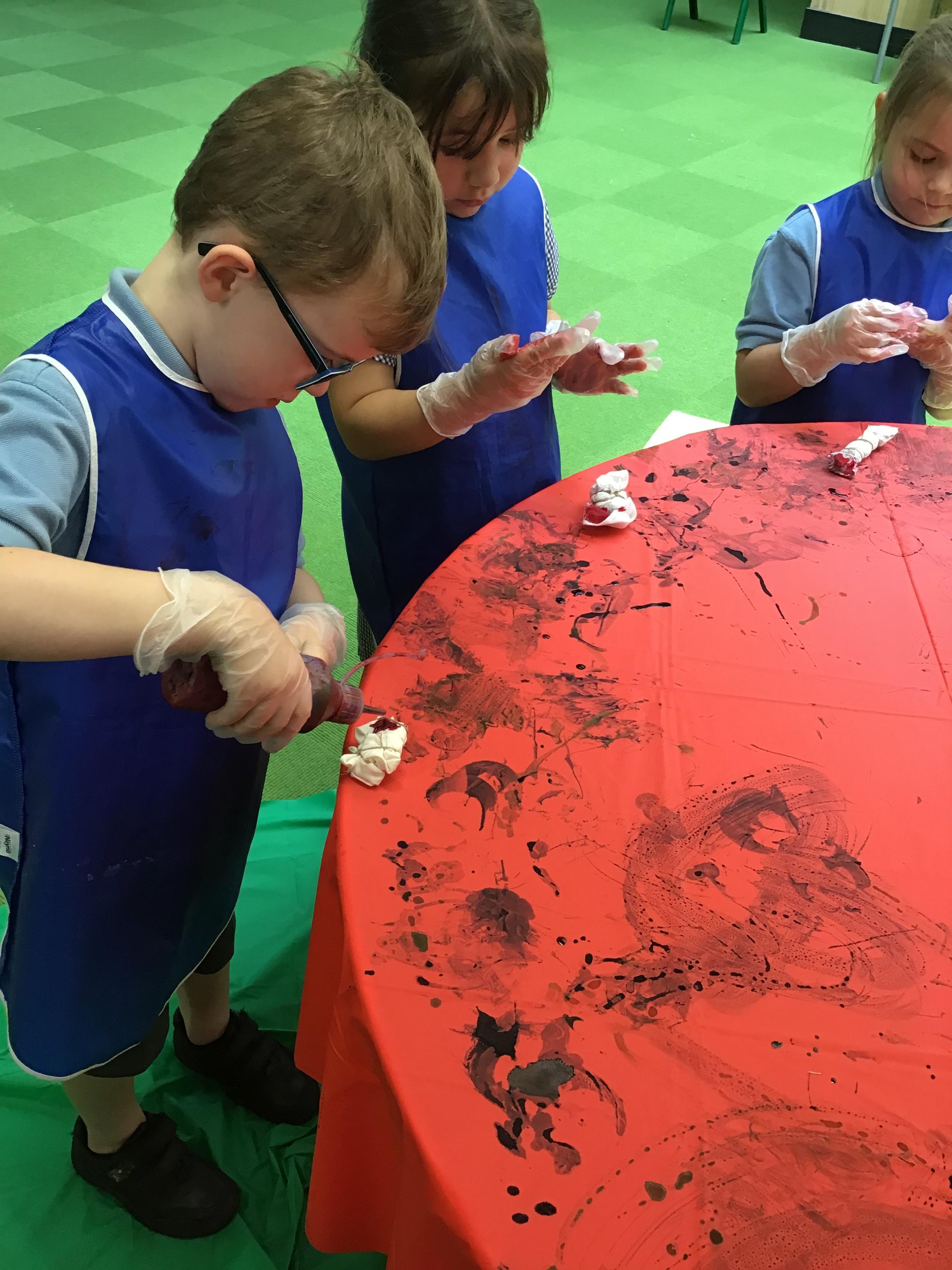 The children have had a fantastic outdoor learning session with Mrs Gregorious. They have practised a technique, 'Hapizome,' which the children found very exciting. The children used a range of natural resources to create a pattern on the canvas fabric. The children also created a wormery and we have had some new friends move in. They can't wait to watch them and see the tunnels that they create.