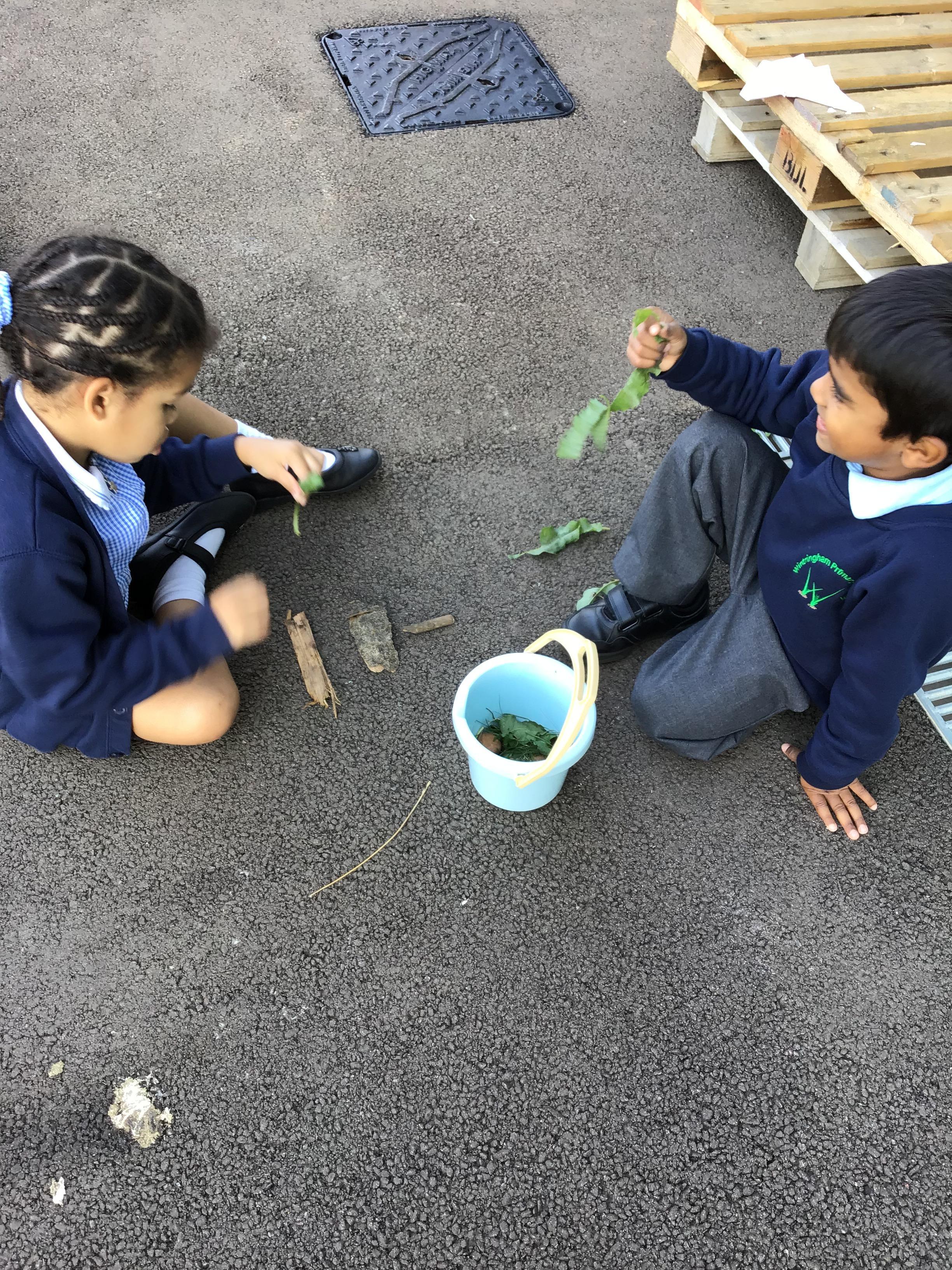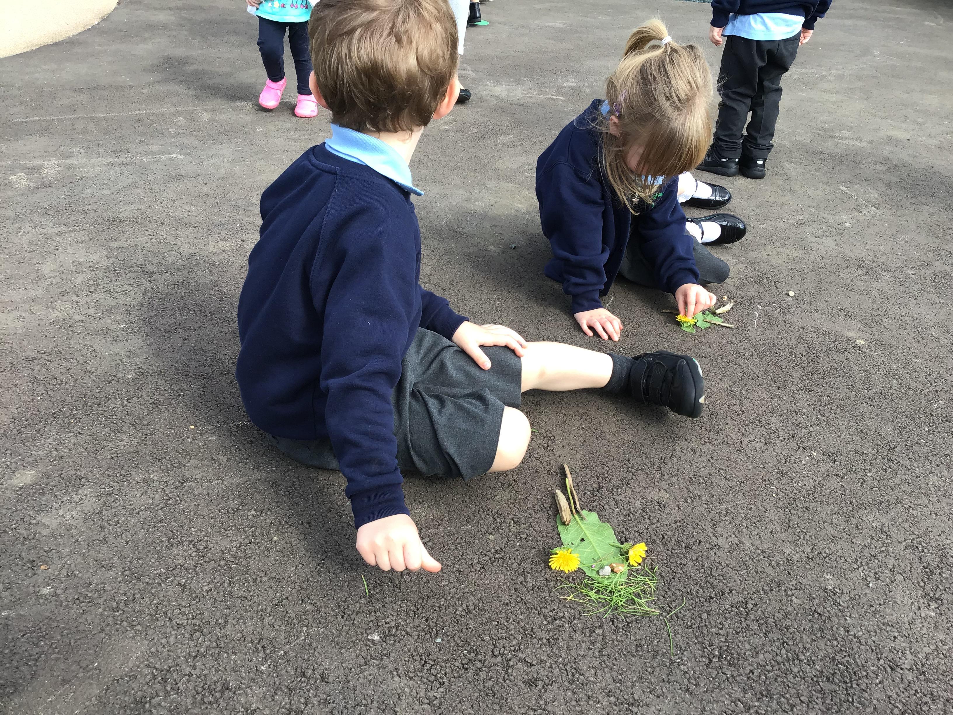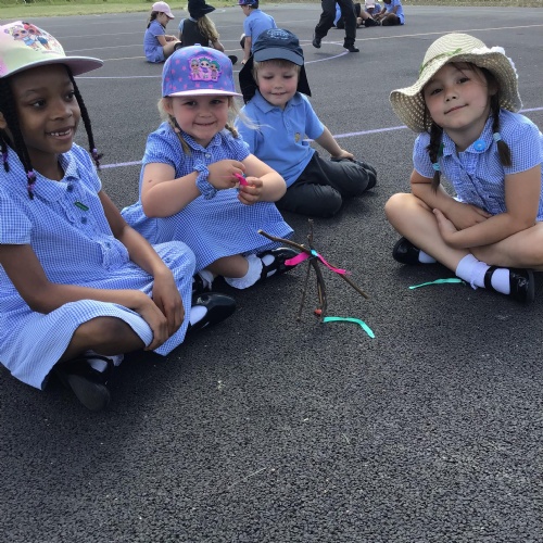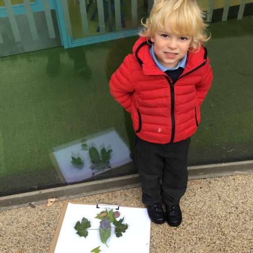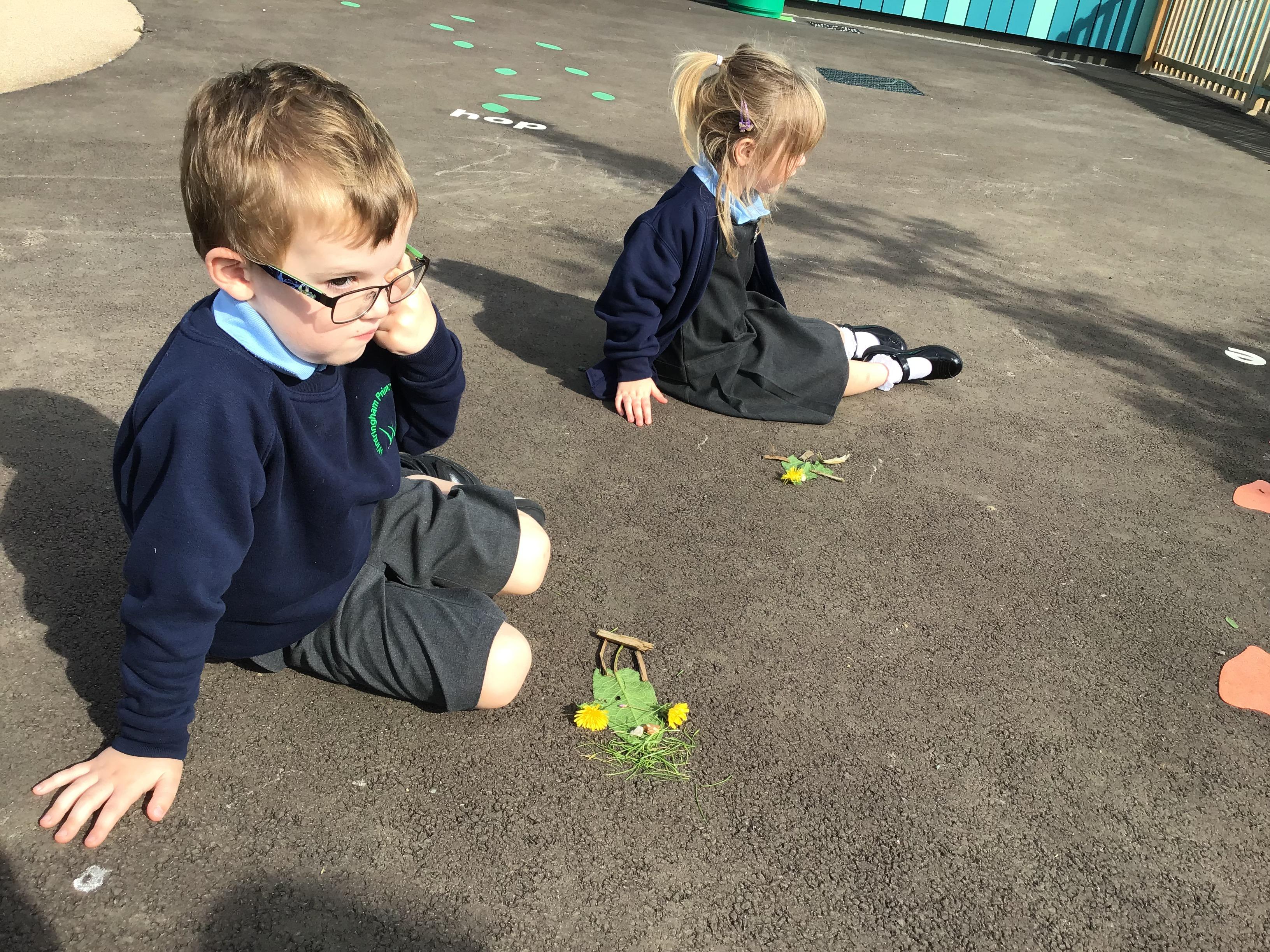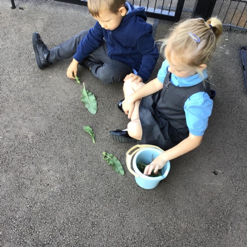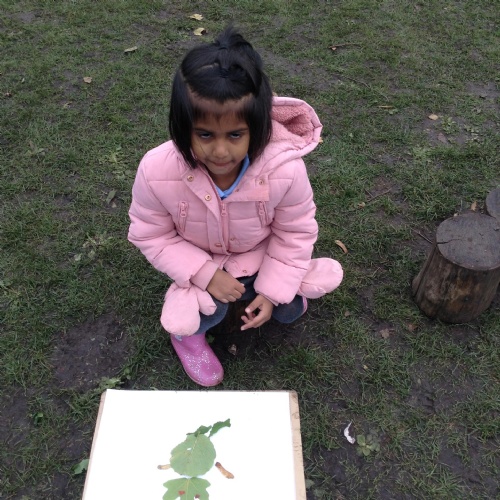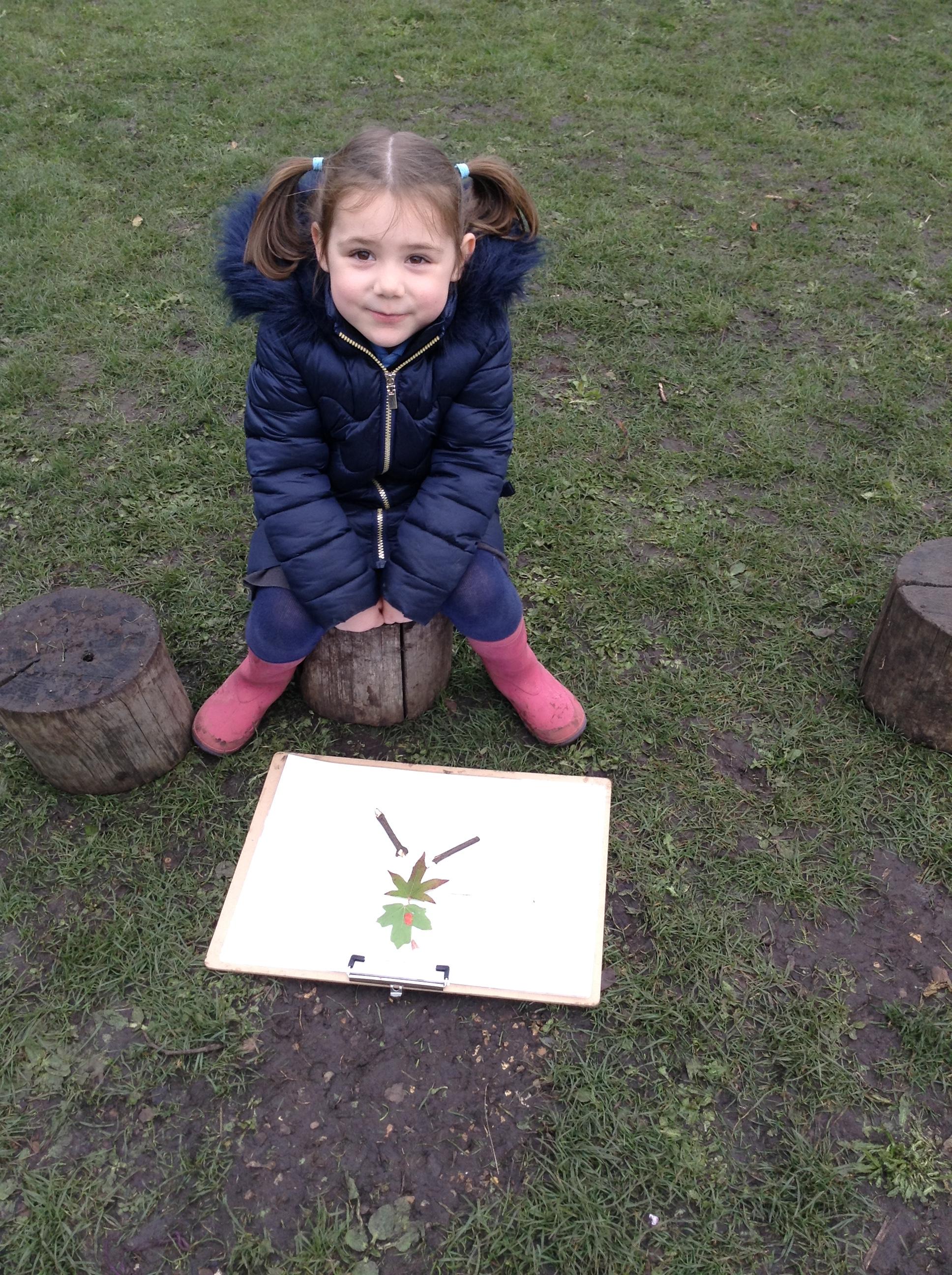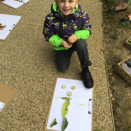 Outside, the children have enjoyed an exploration station. They have been looking at the different wildlife in the garden and also the variety of plants that we have. In outdoor learning, the children used different materials to create their very own leaf men.