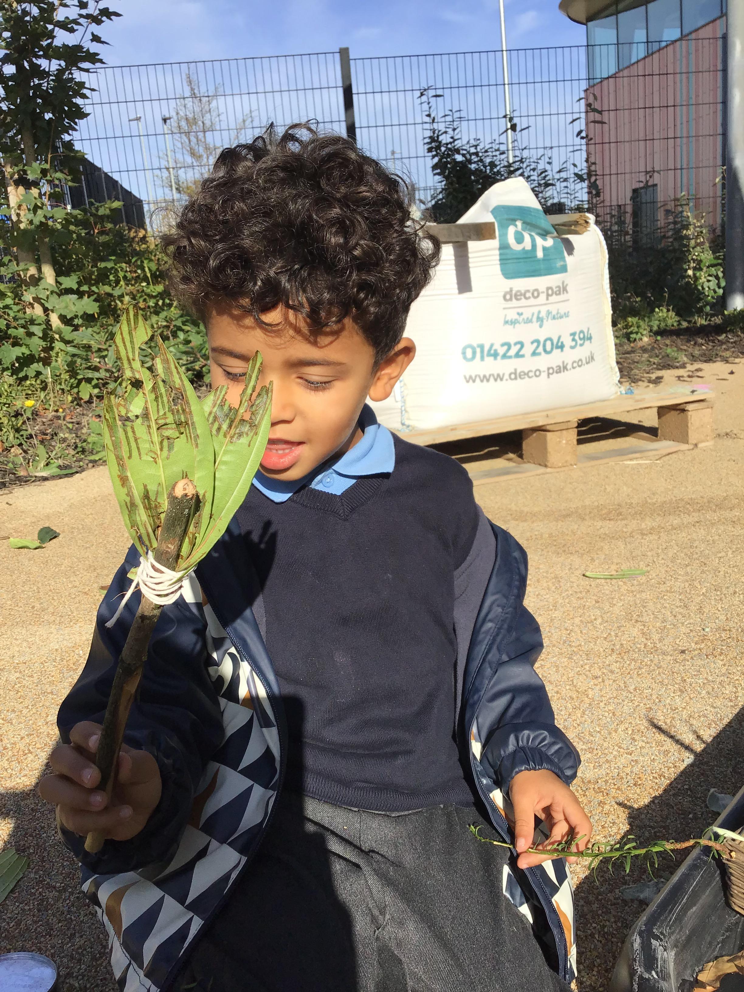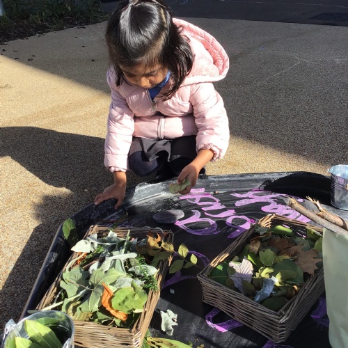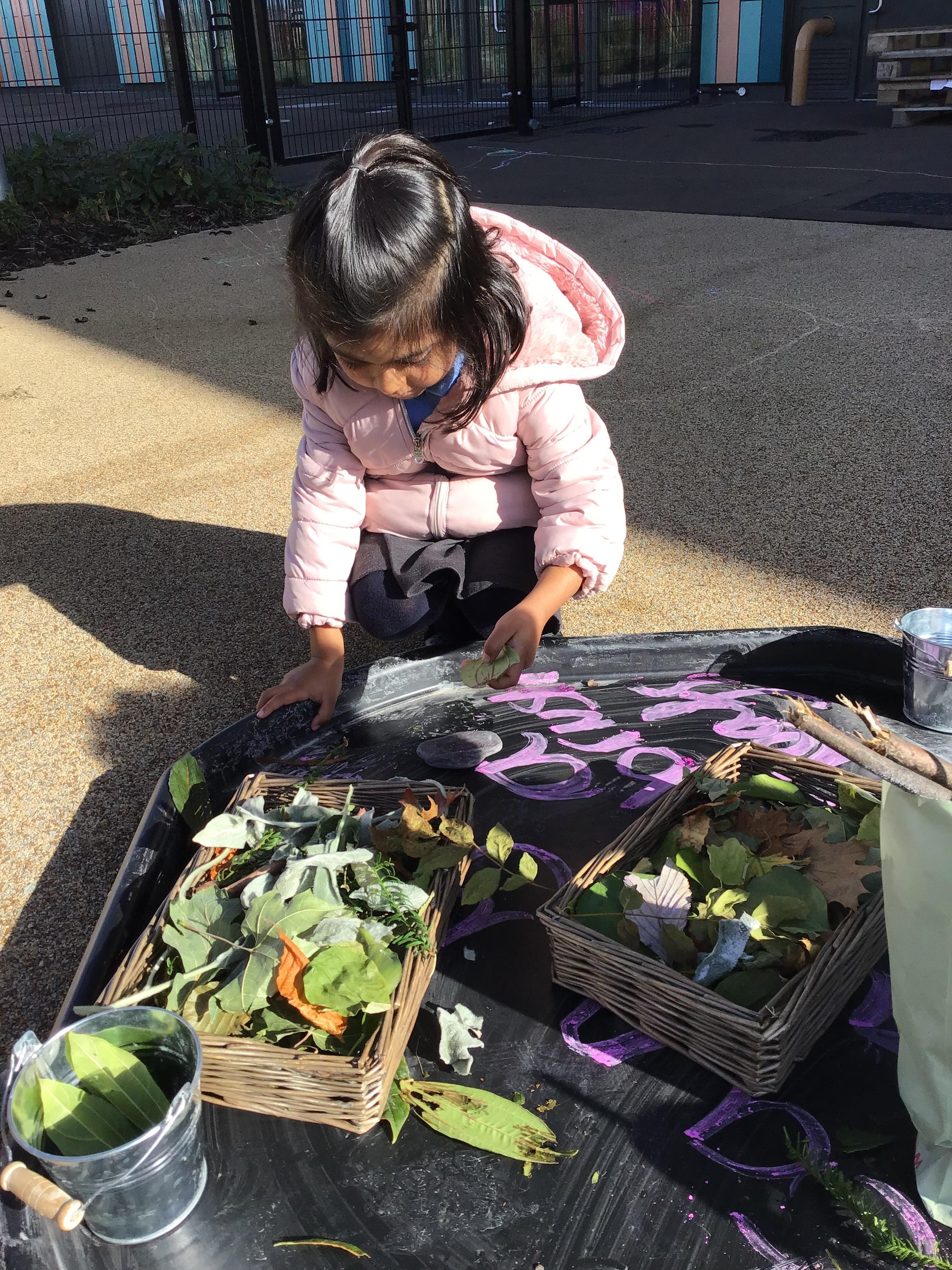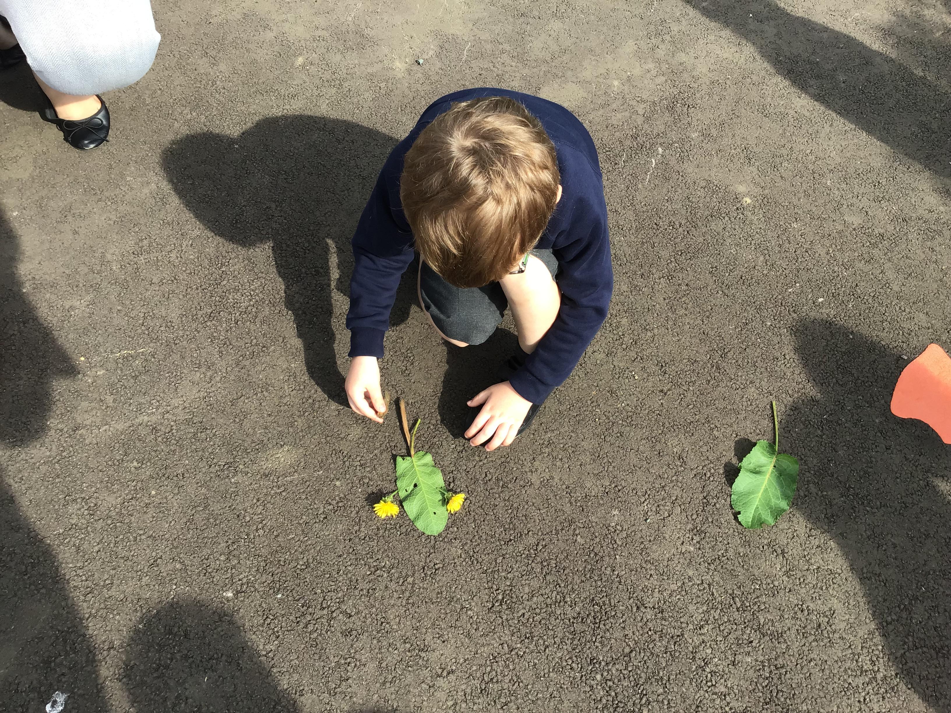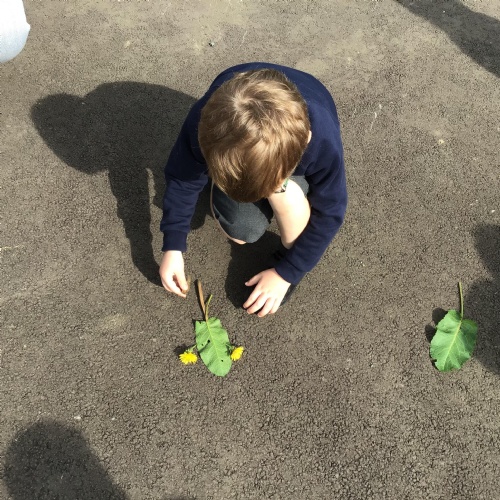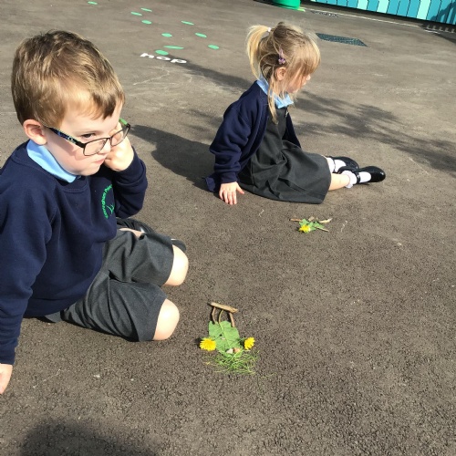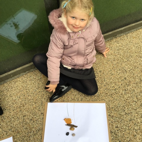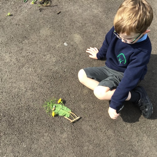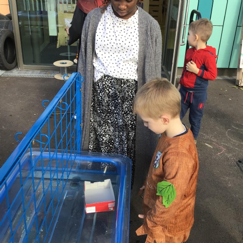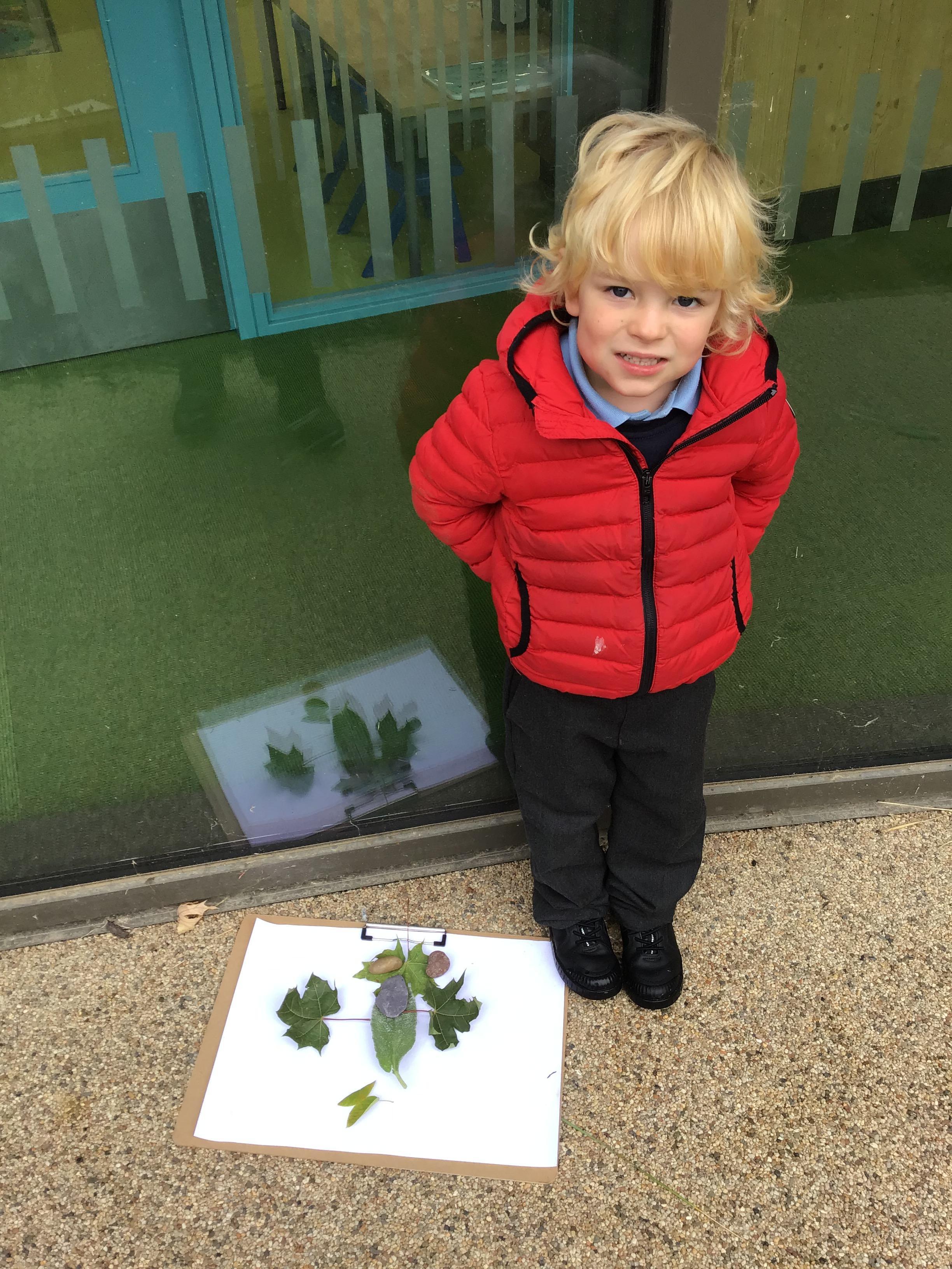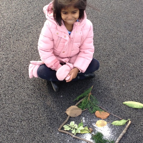Outside, the children have enjoyed an exploration station. They have been looking at the different wildlife in the garden and also the variety of plants that we have. In outdoor learning, the children used different materials to create their very own leaf men.