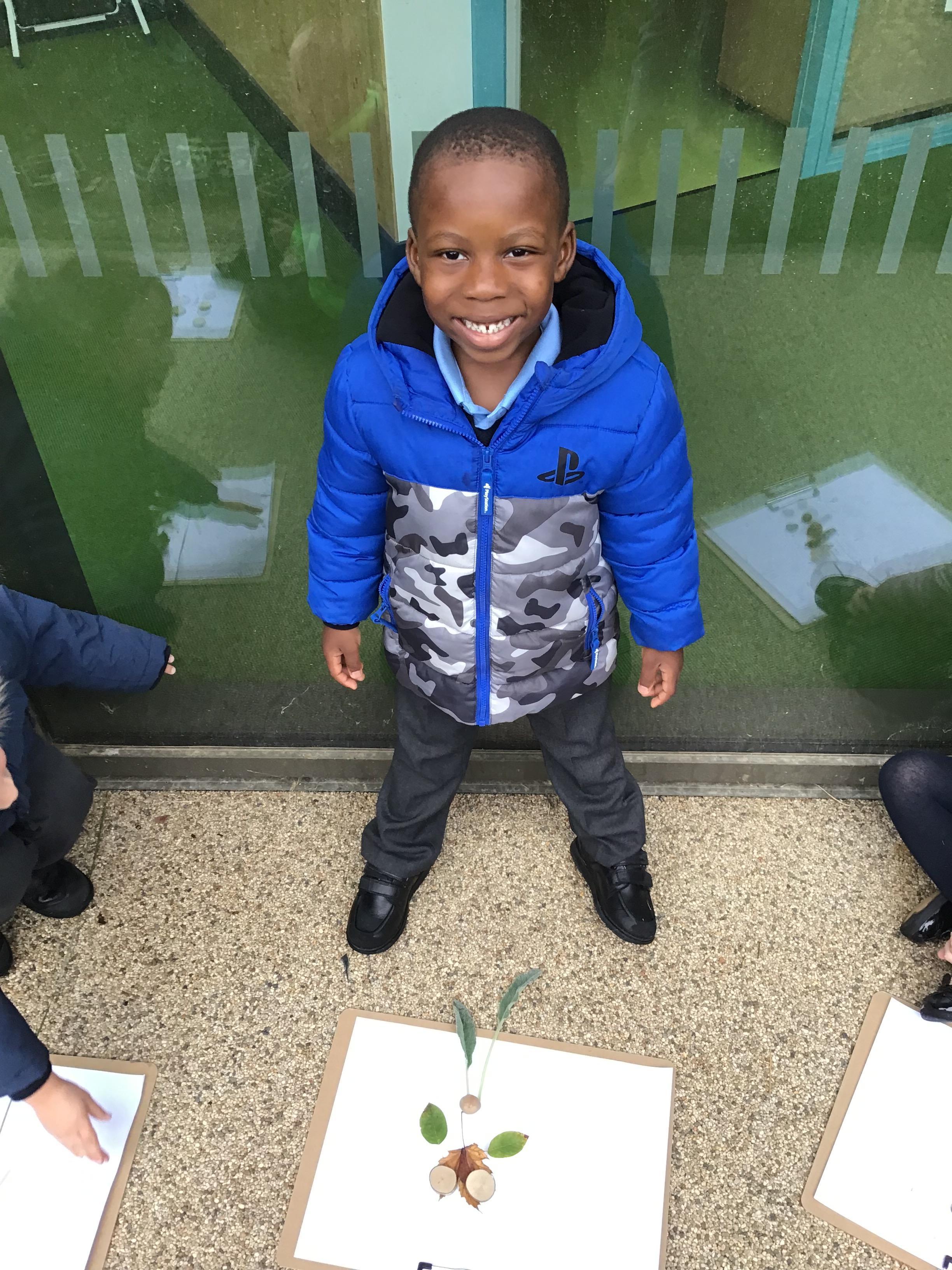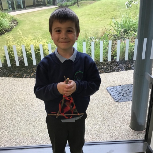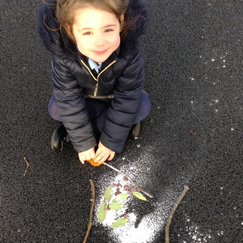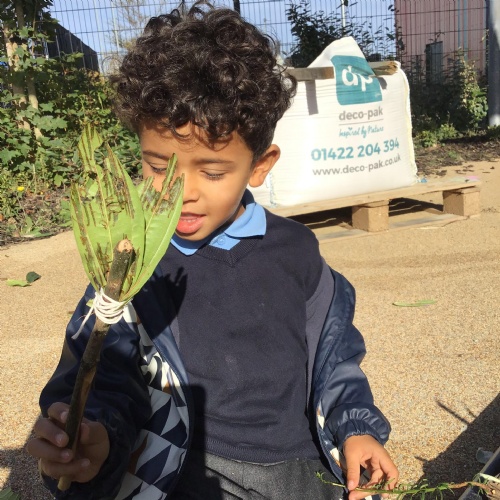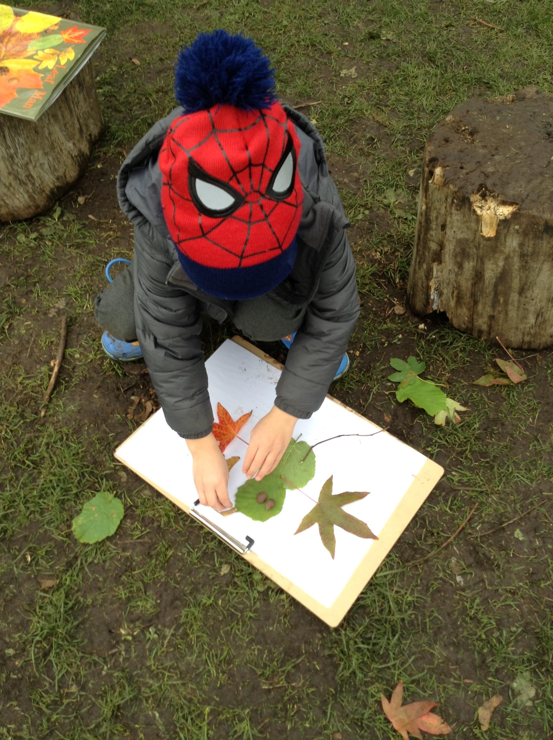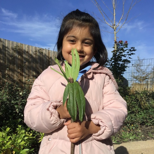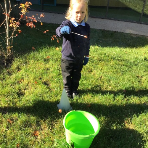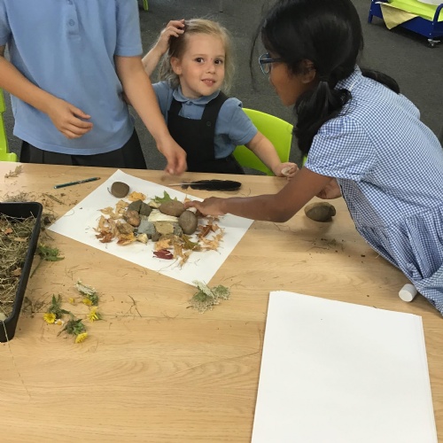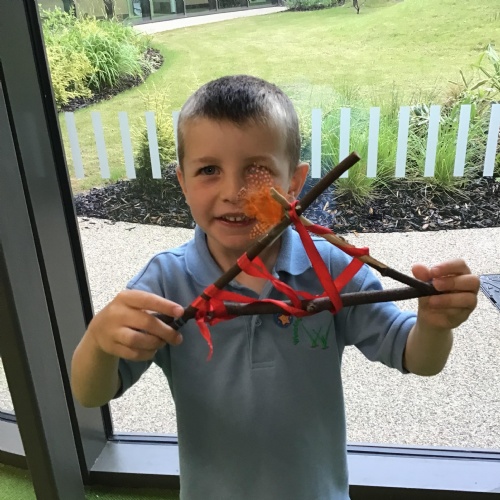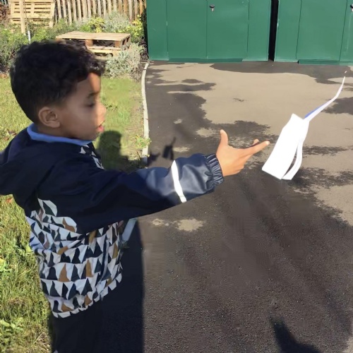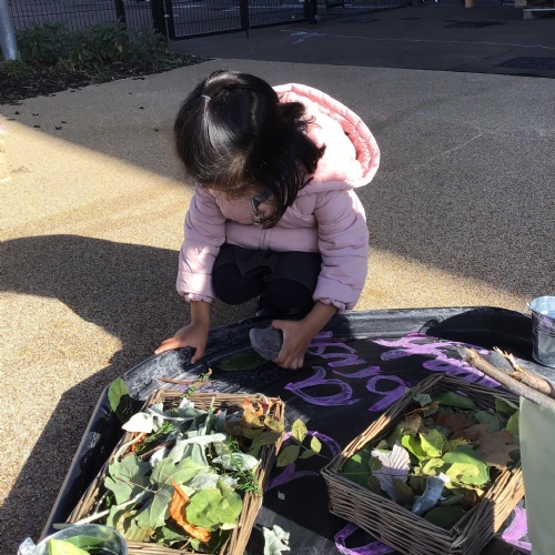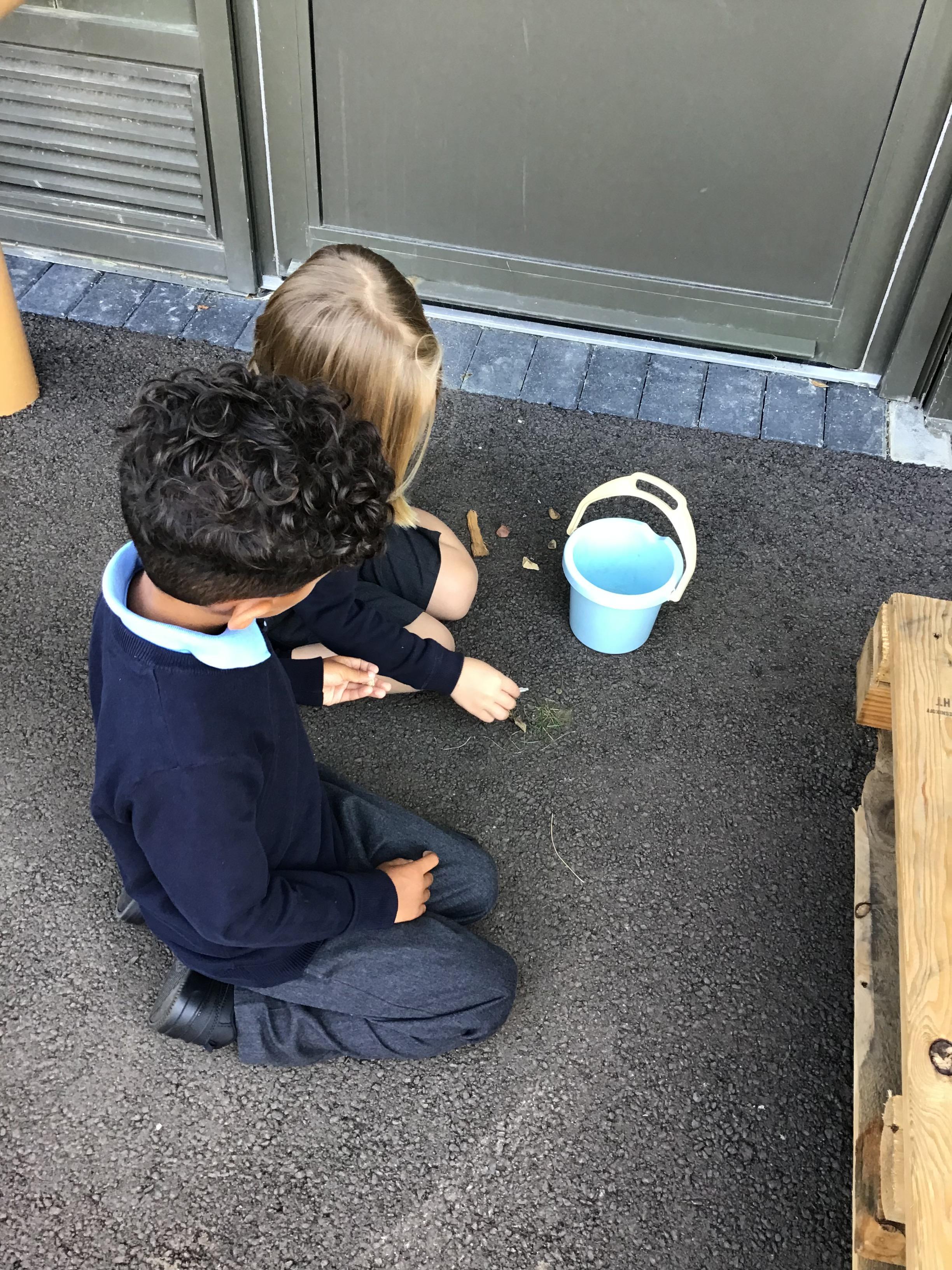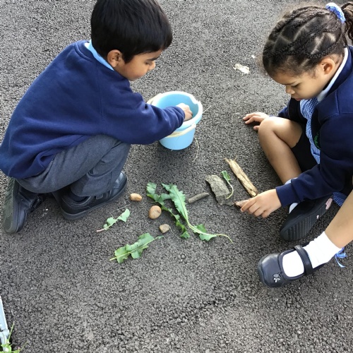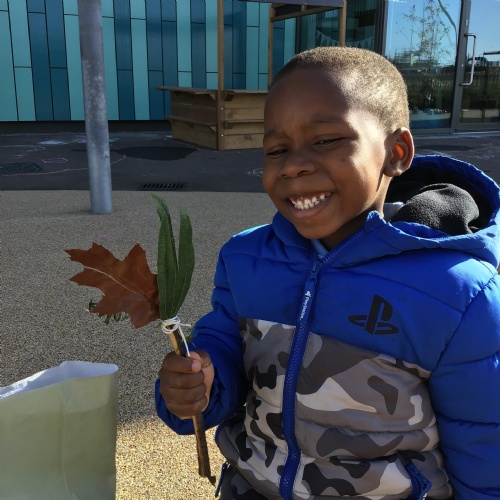 Outside, the children have enjoyed an exploration station. They have been looking at the different wildlife in the garden and also the variety of plants that we have. In outdoor learning, the children used different materials to create their very own leaf men.