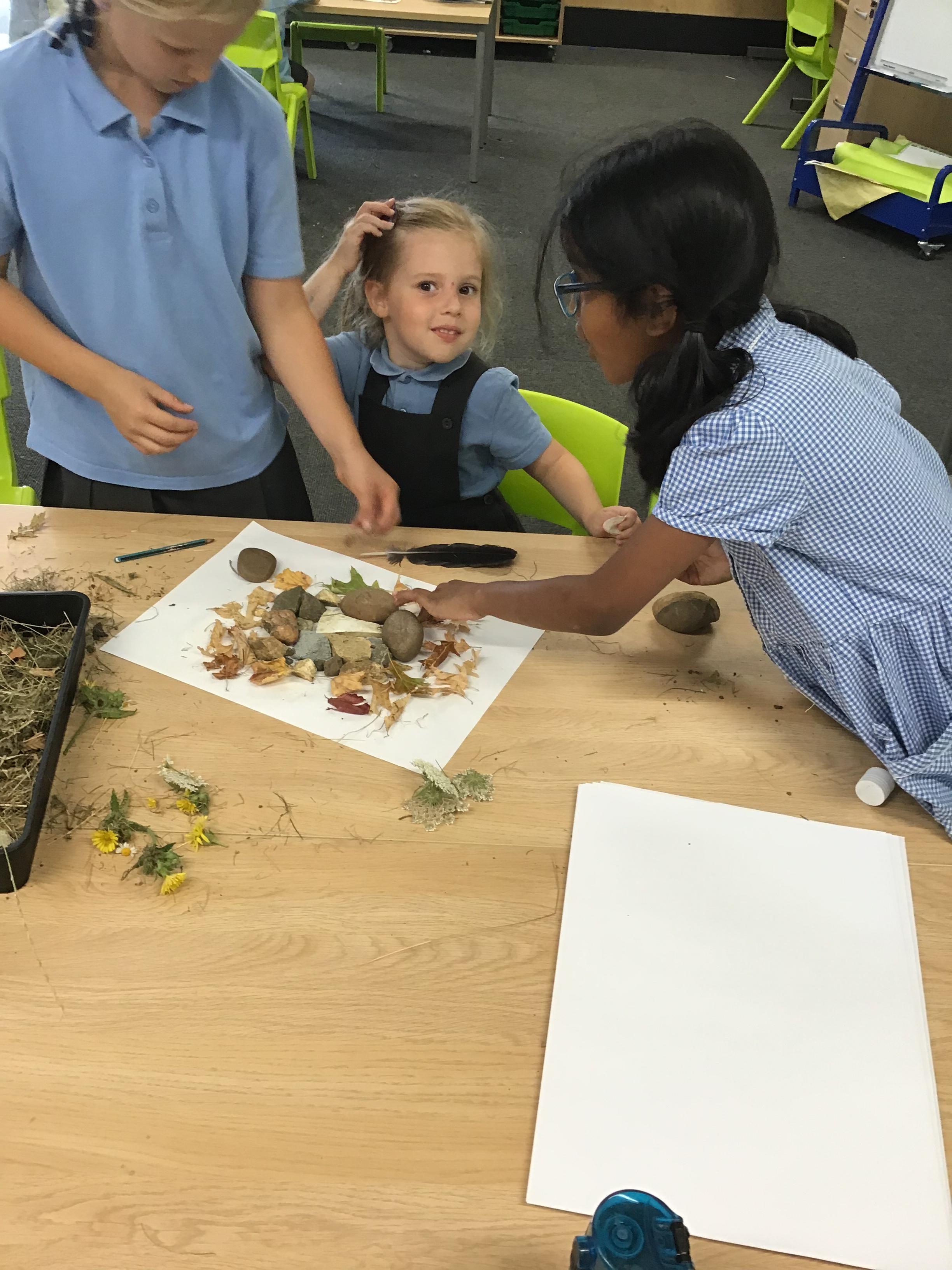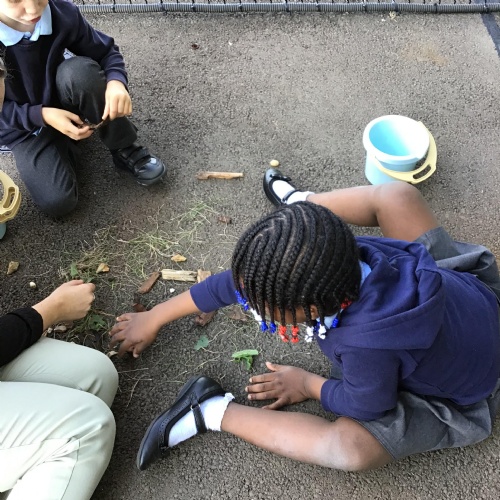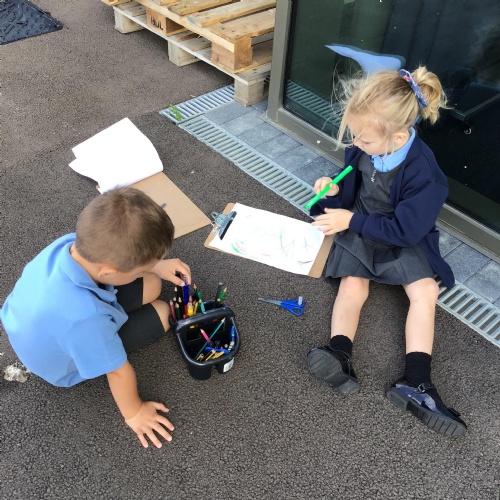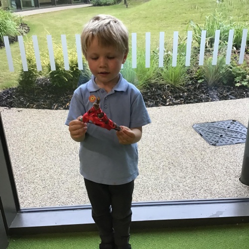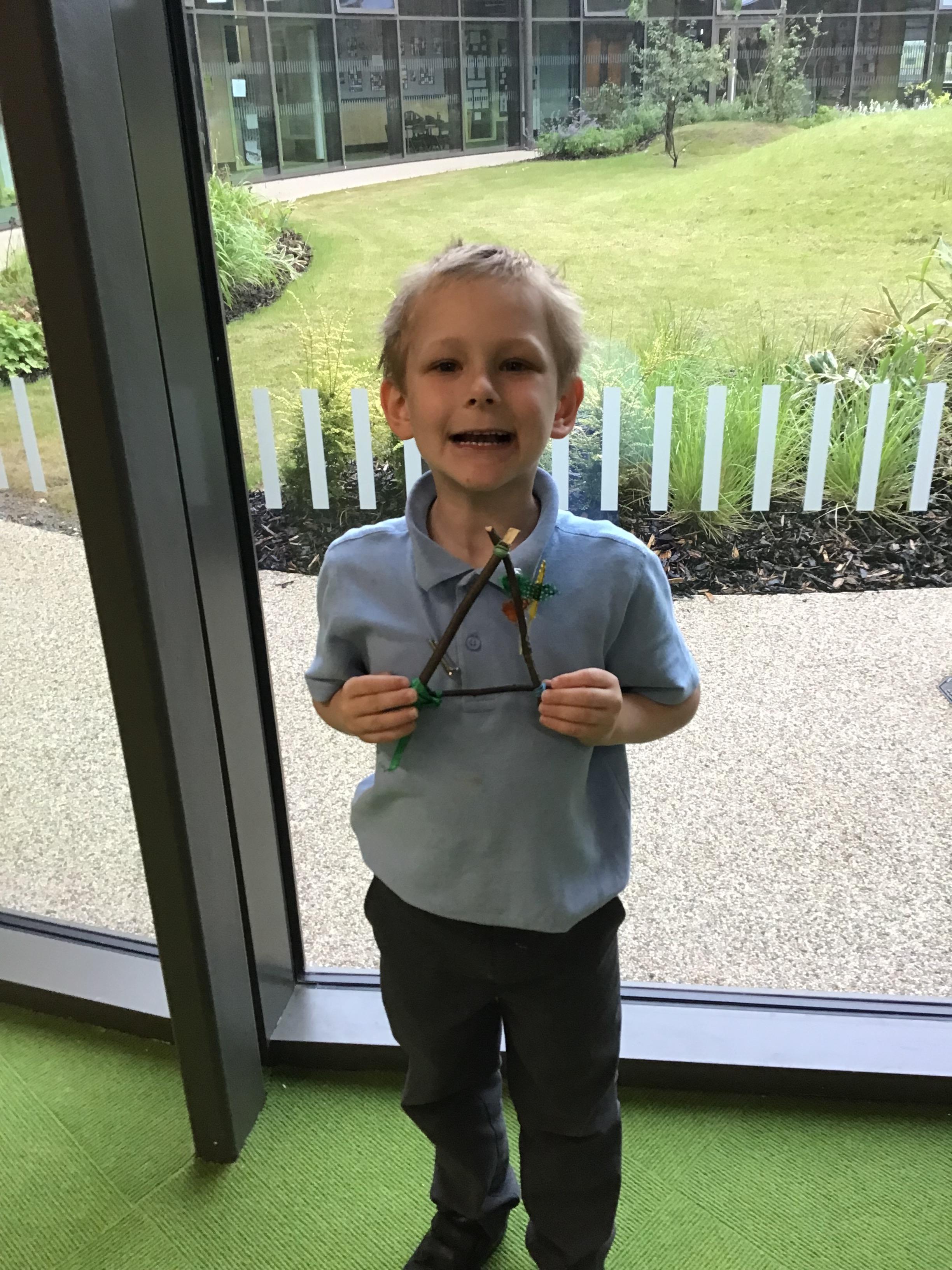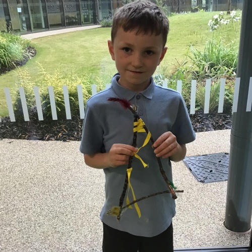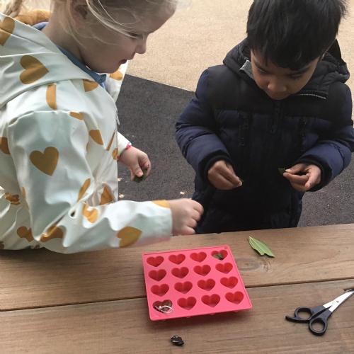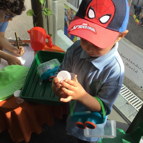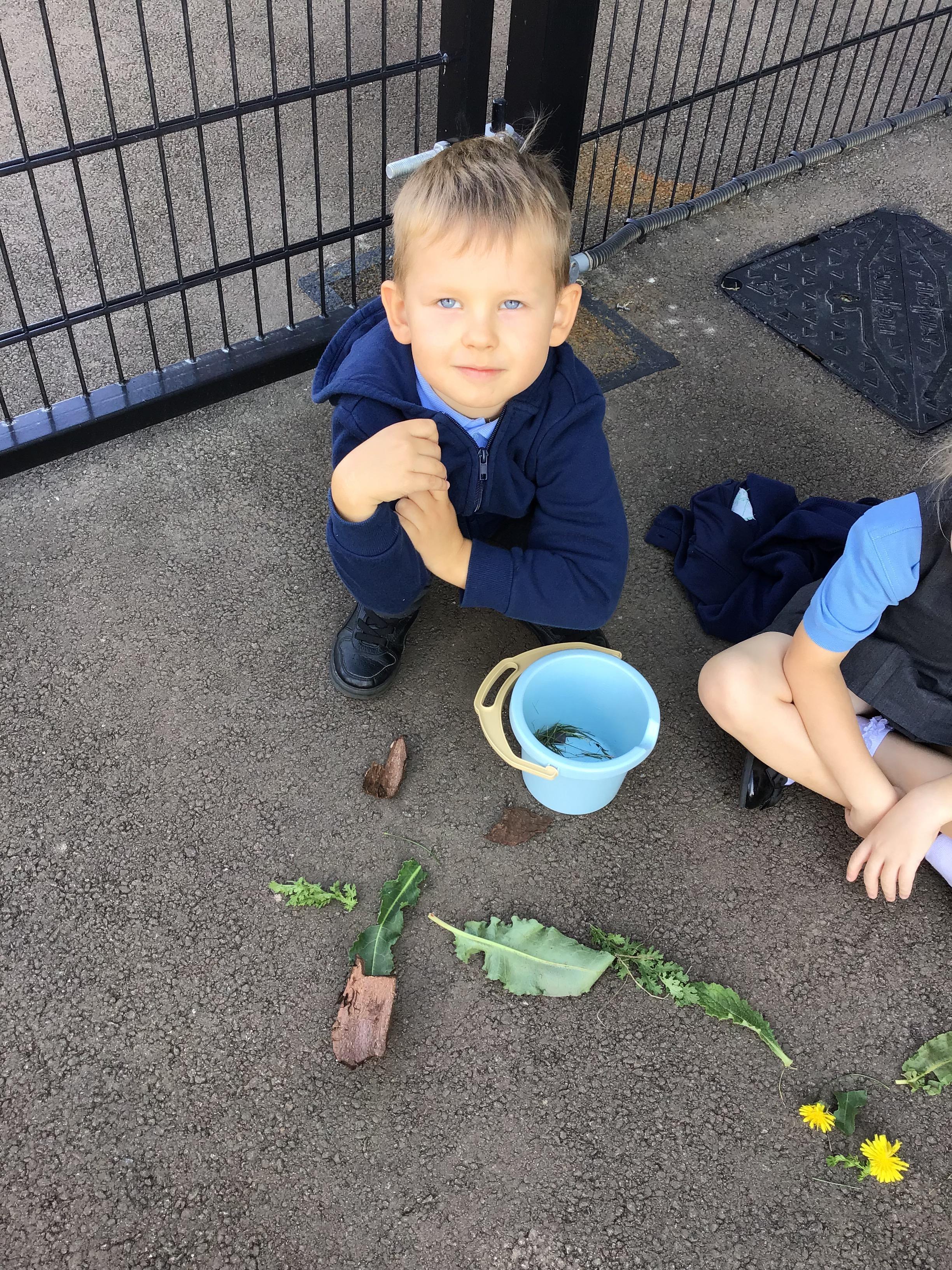 Outside, the children have enjoyed an exploration station. They have been looking at the different wildlife in the garden and also the variety of plants that we have. In outdoor learning, the children used different materials to create their very own leaf men.