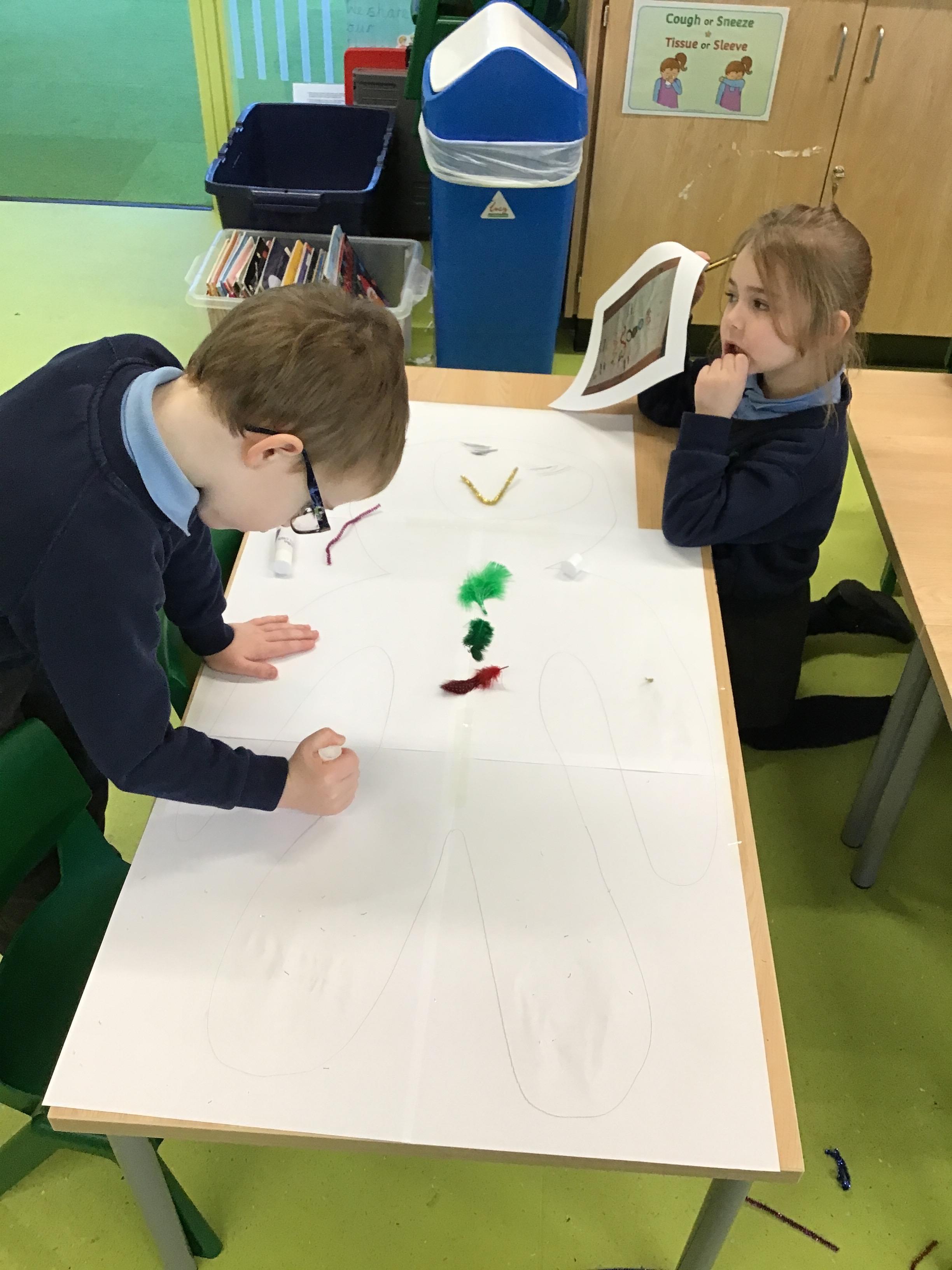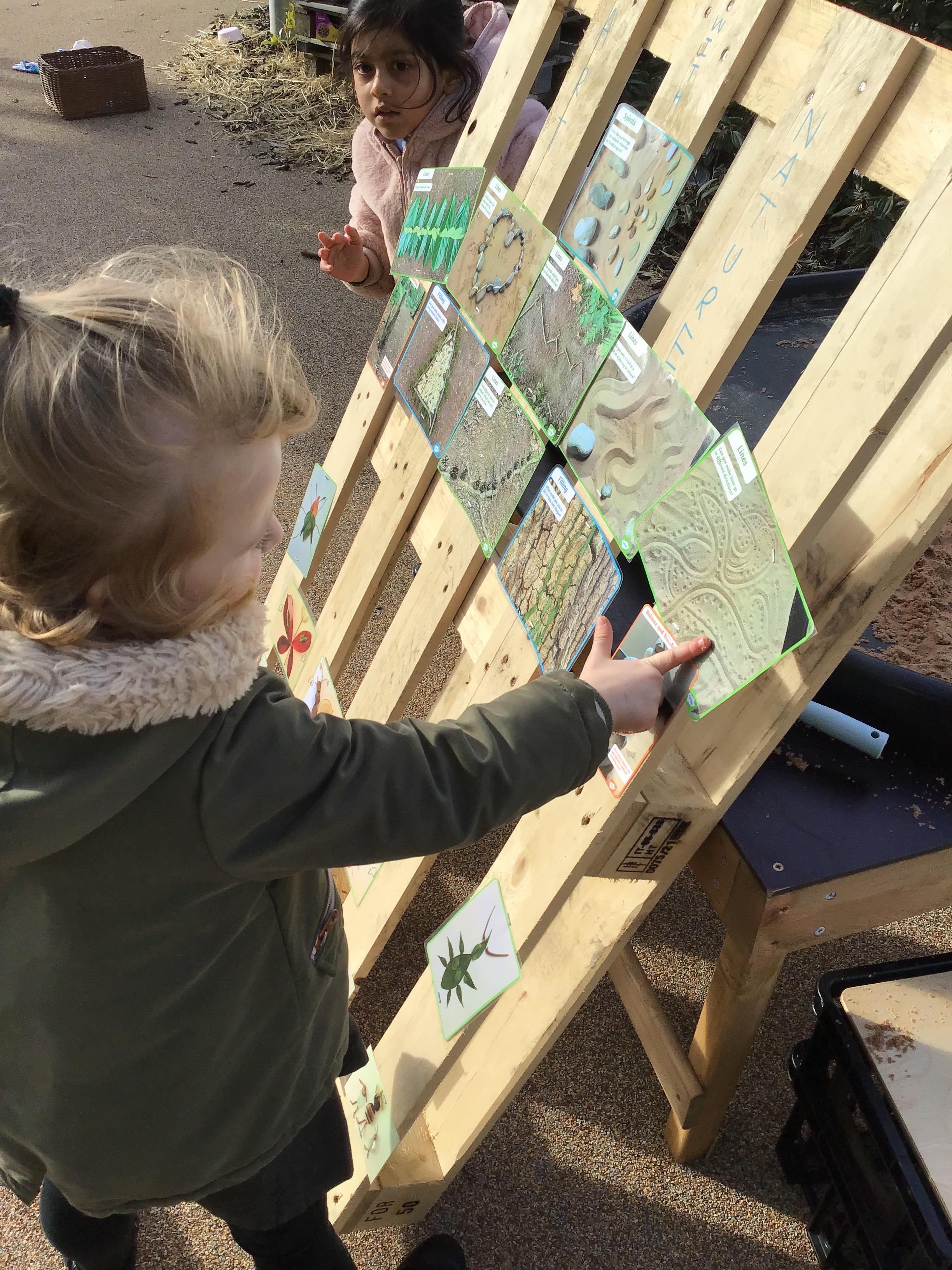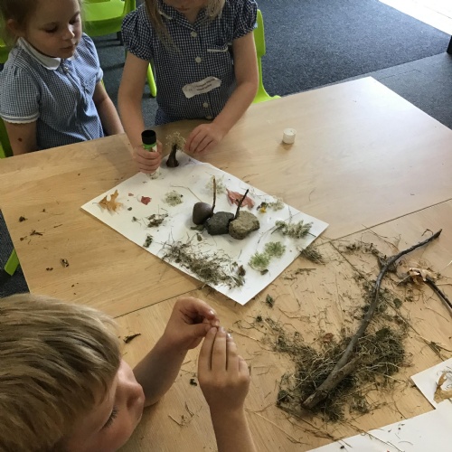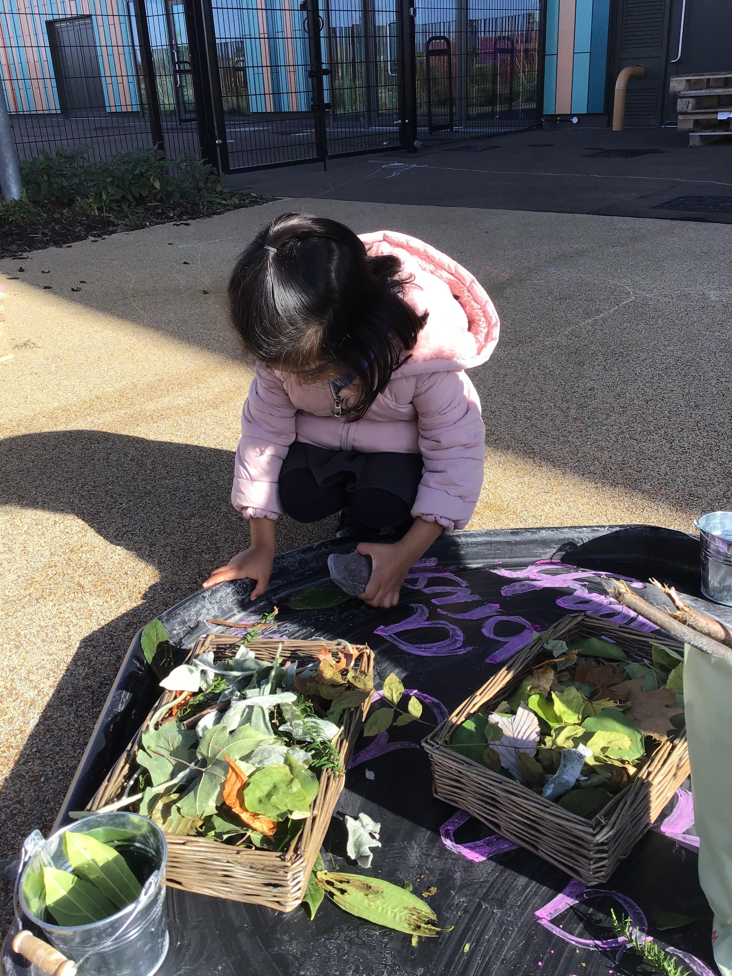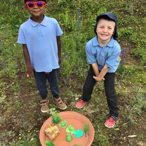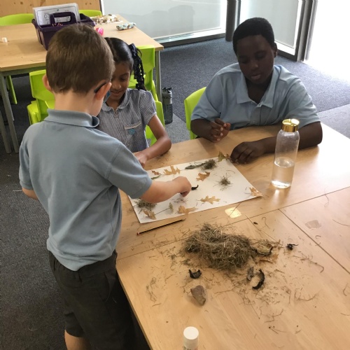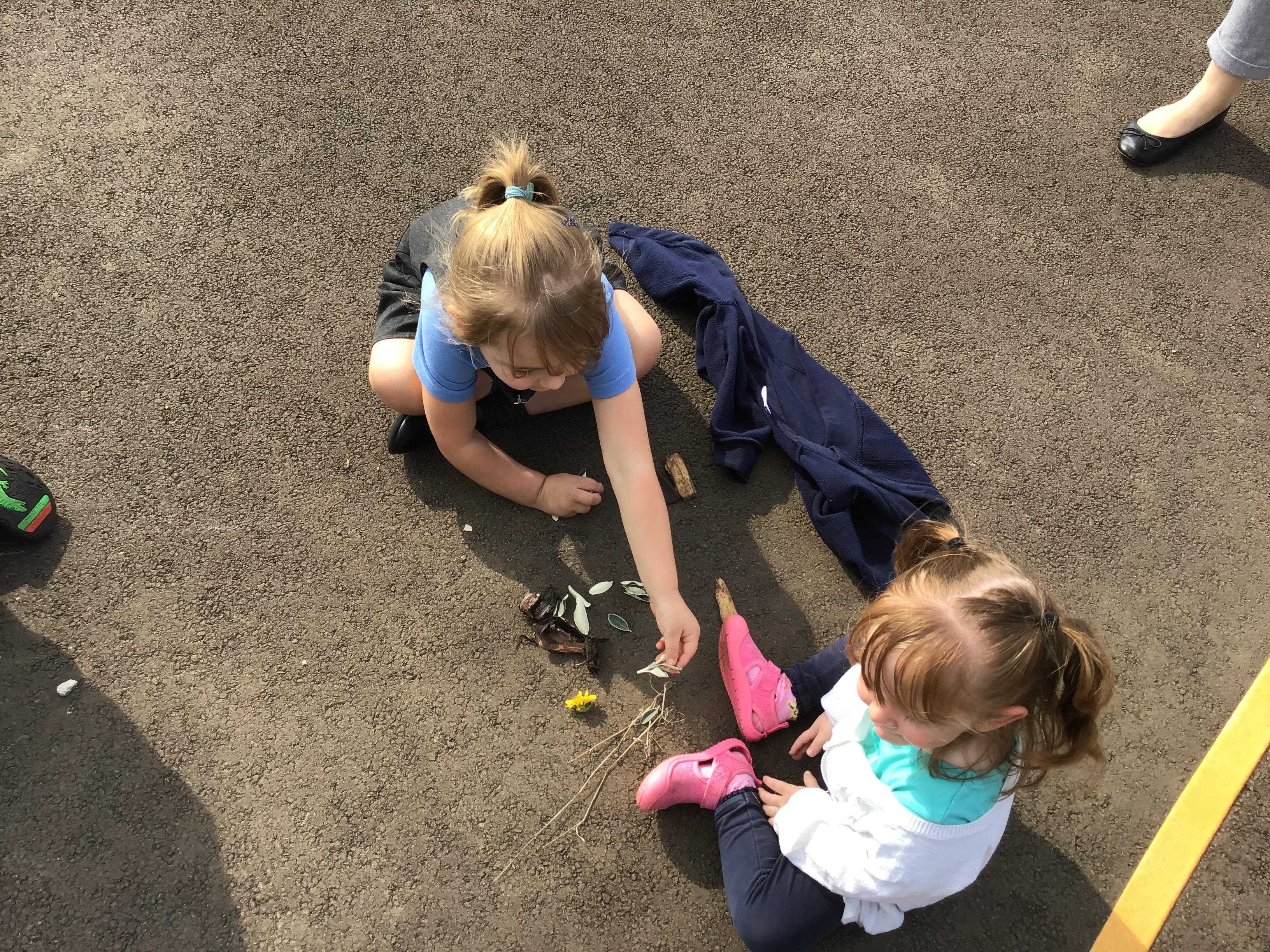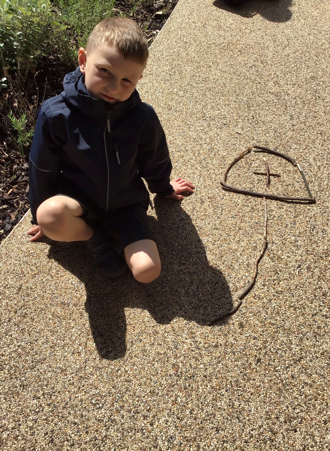 Outside, the children have enjoyed an exploration station. They have been looking at the different wildlife in the garden and also the variety of plants that we have. In outdoor learning, the children used different materials to create their very own leaf men.
