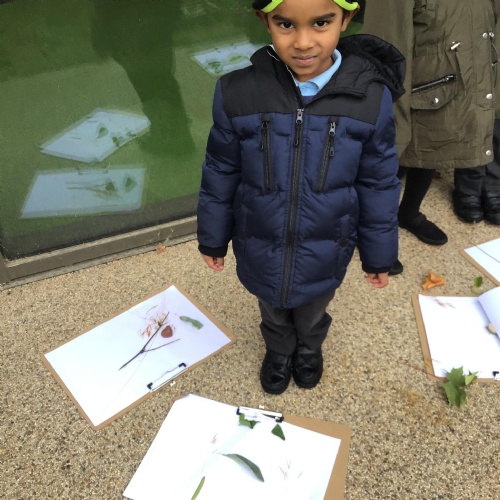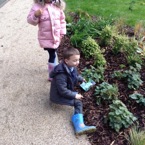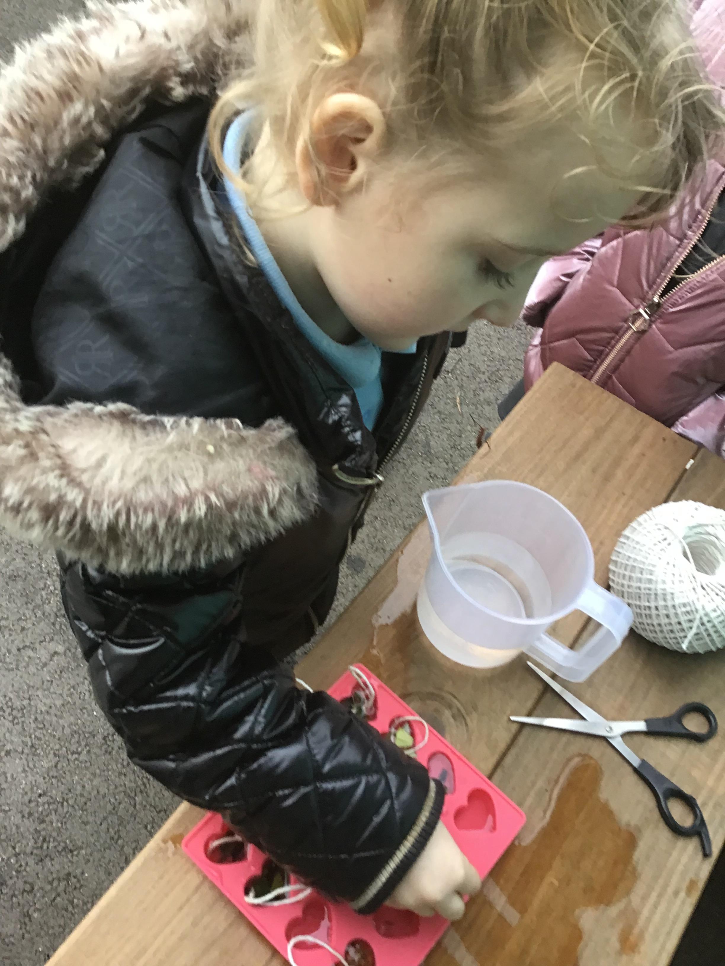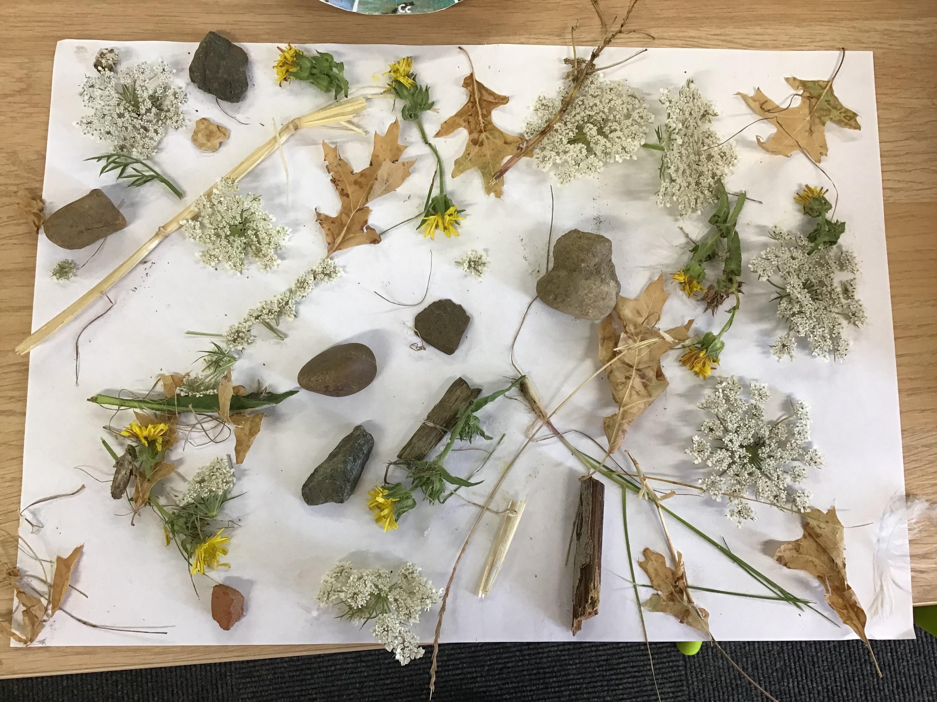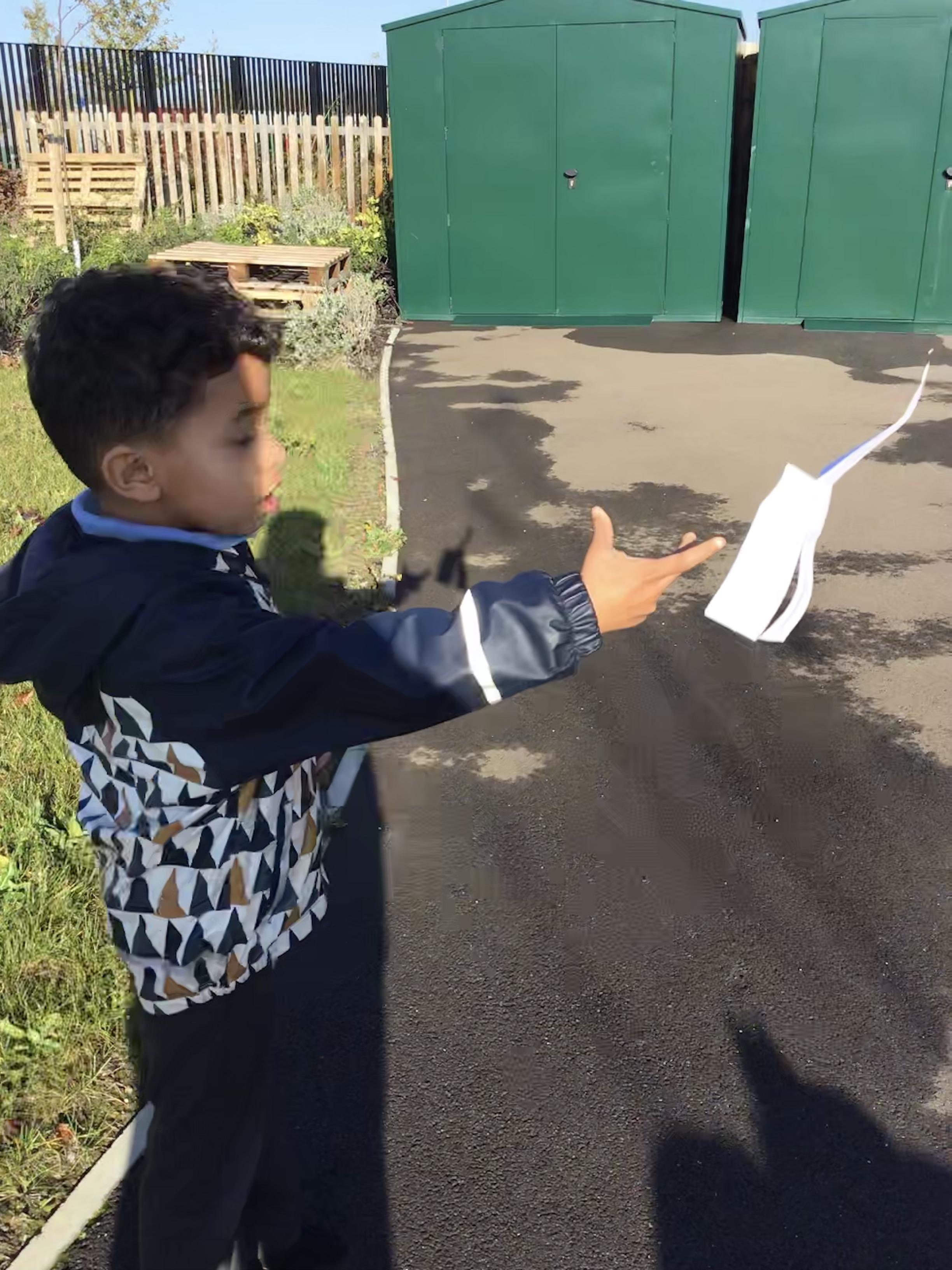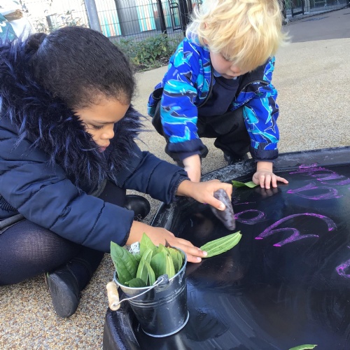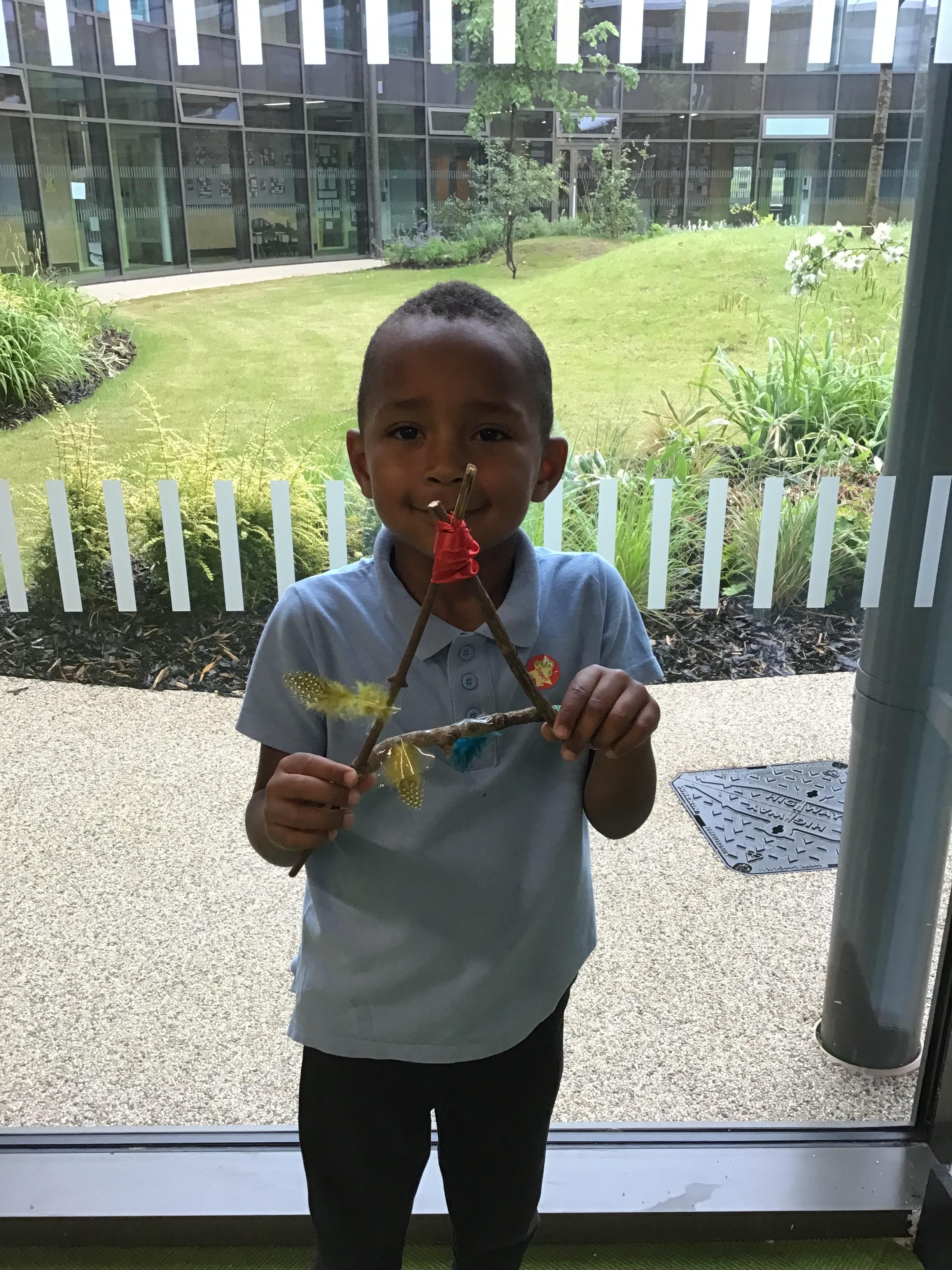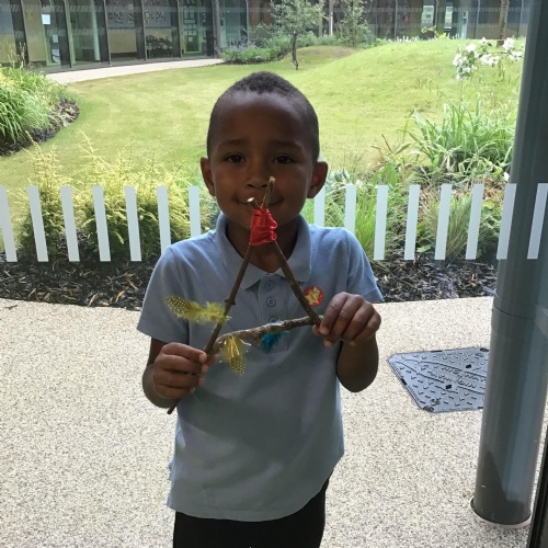 Outside, the children have enjoyed an exploration station. They have been looking at the different wildlife in the garden and also the variety of plants that we have. In outdoor learning, the children used different materials to create their very own leaf men.