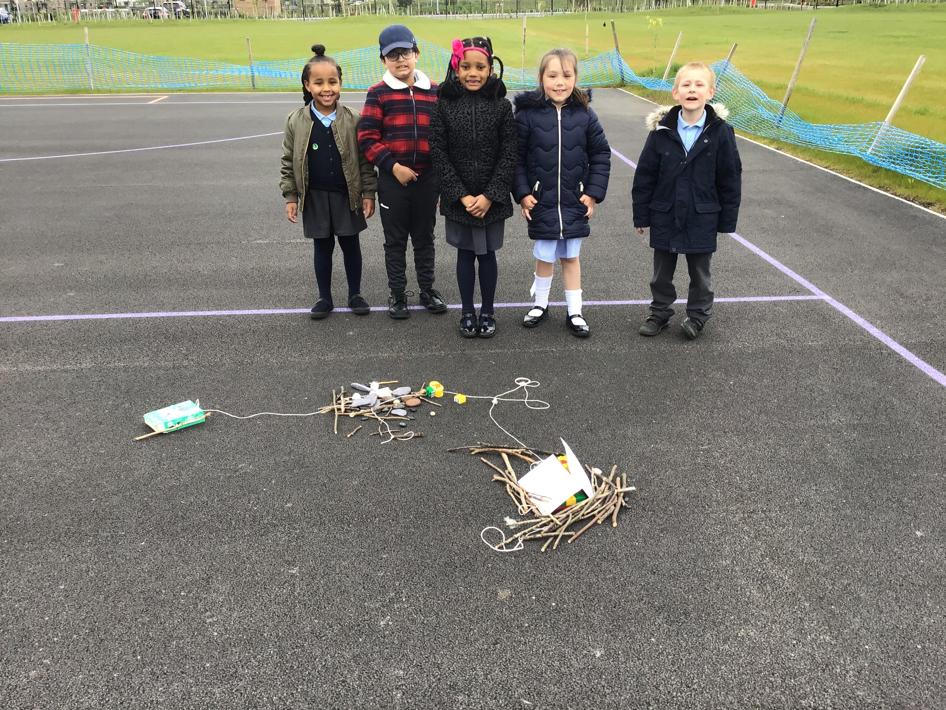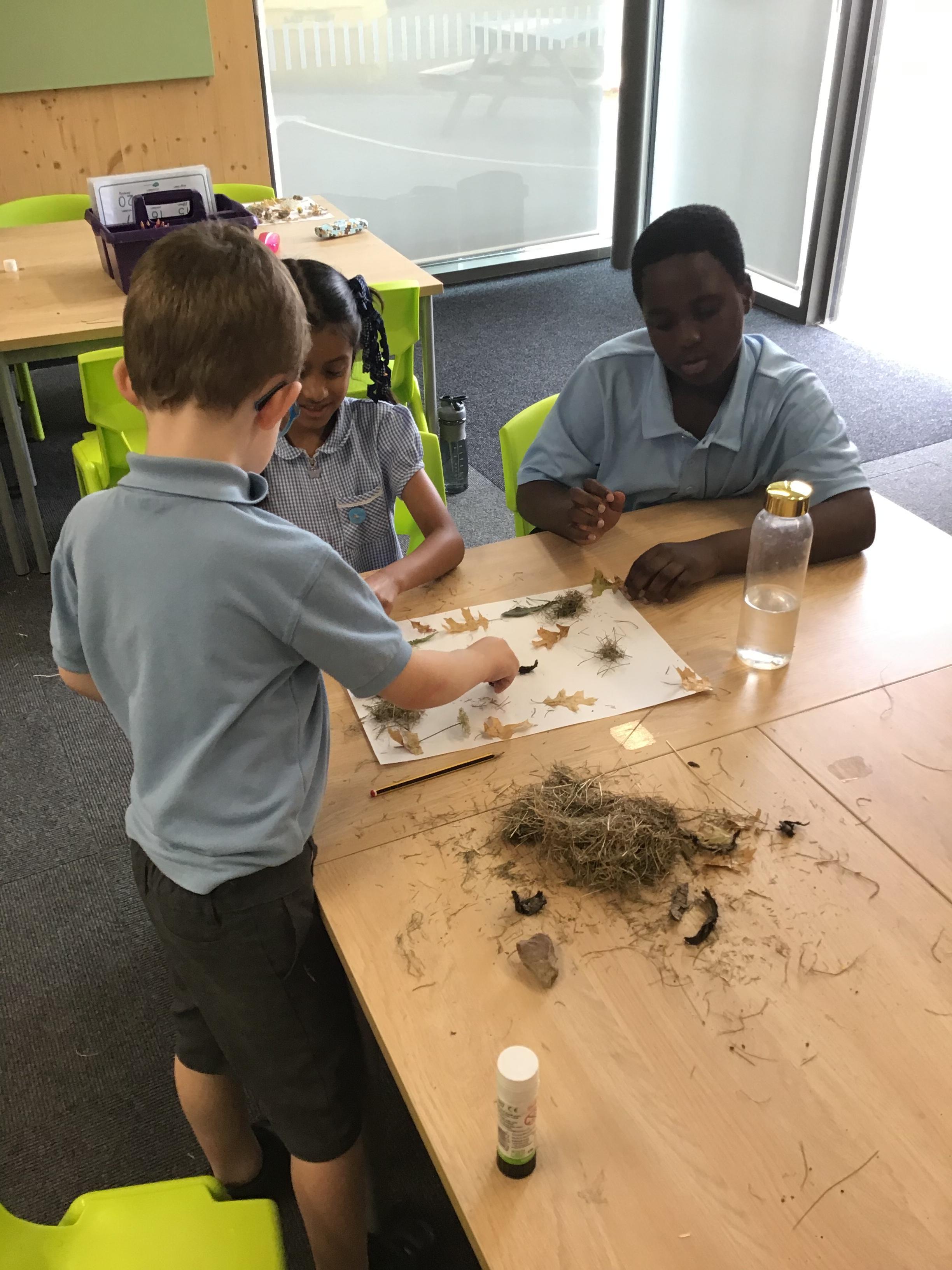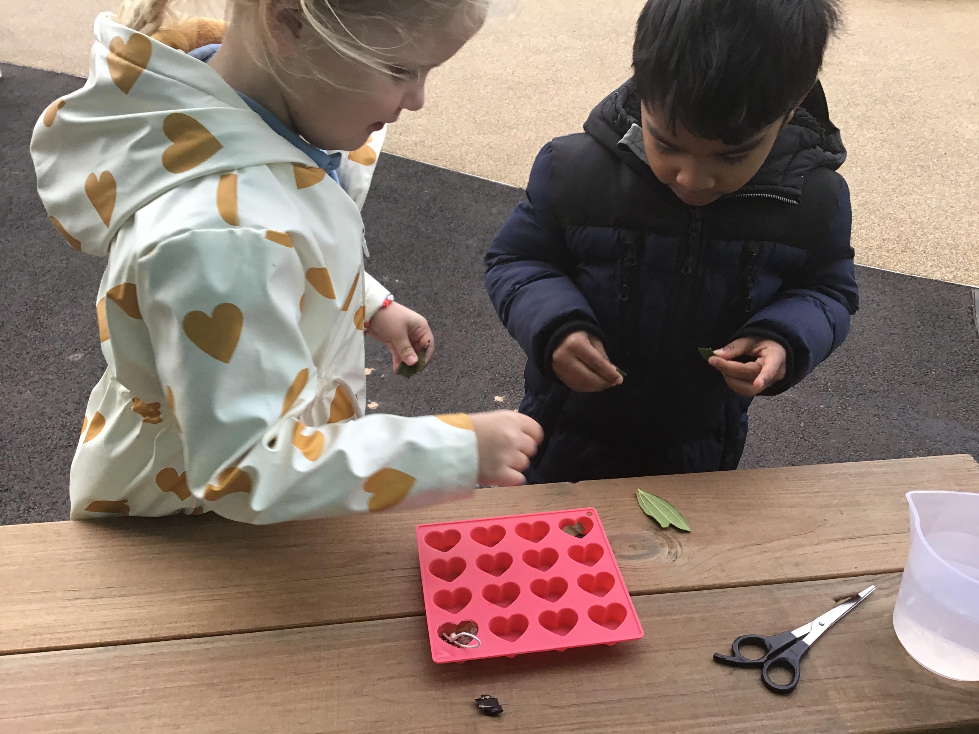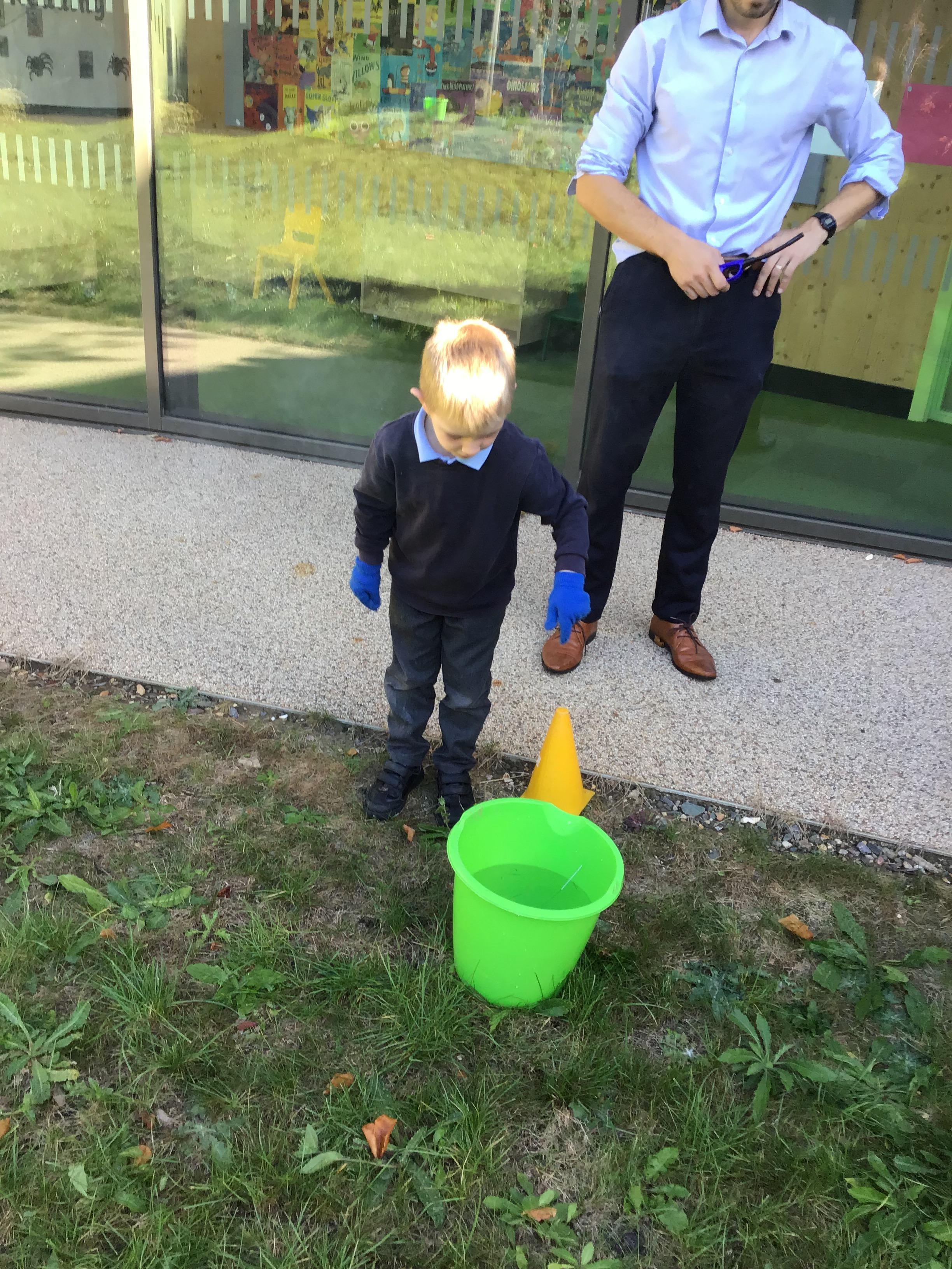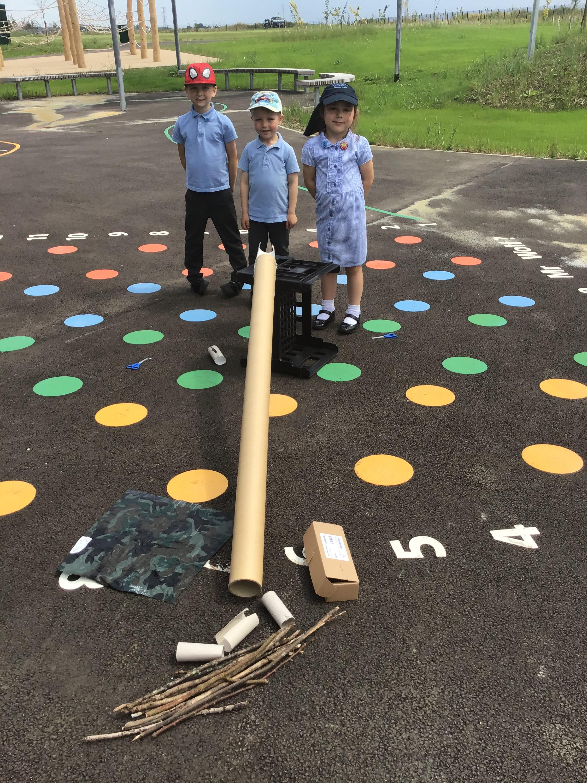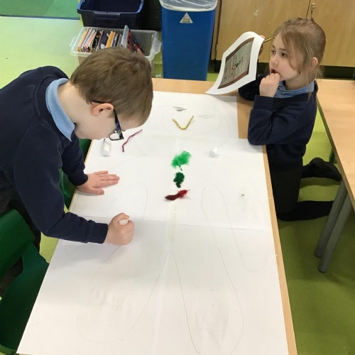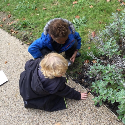 Outside, the children have enjoyed an exploration station. They have been looking at the different wildlife in the garden and also the variety of plants that we have. In outdoor learning, the children used different materials to create their very own leaf men.