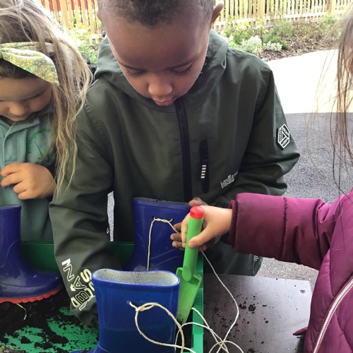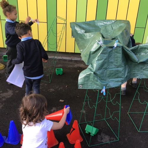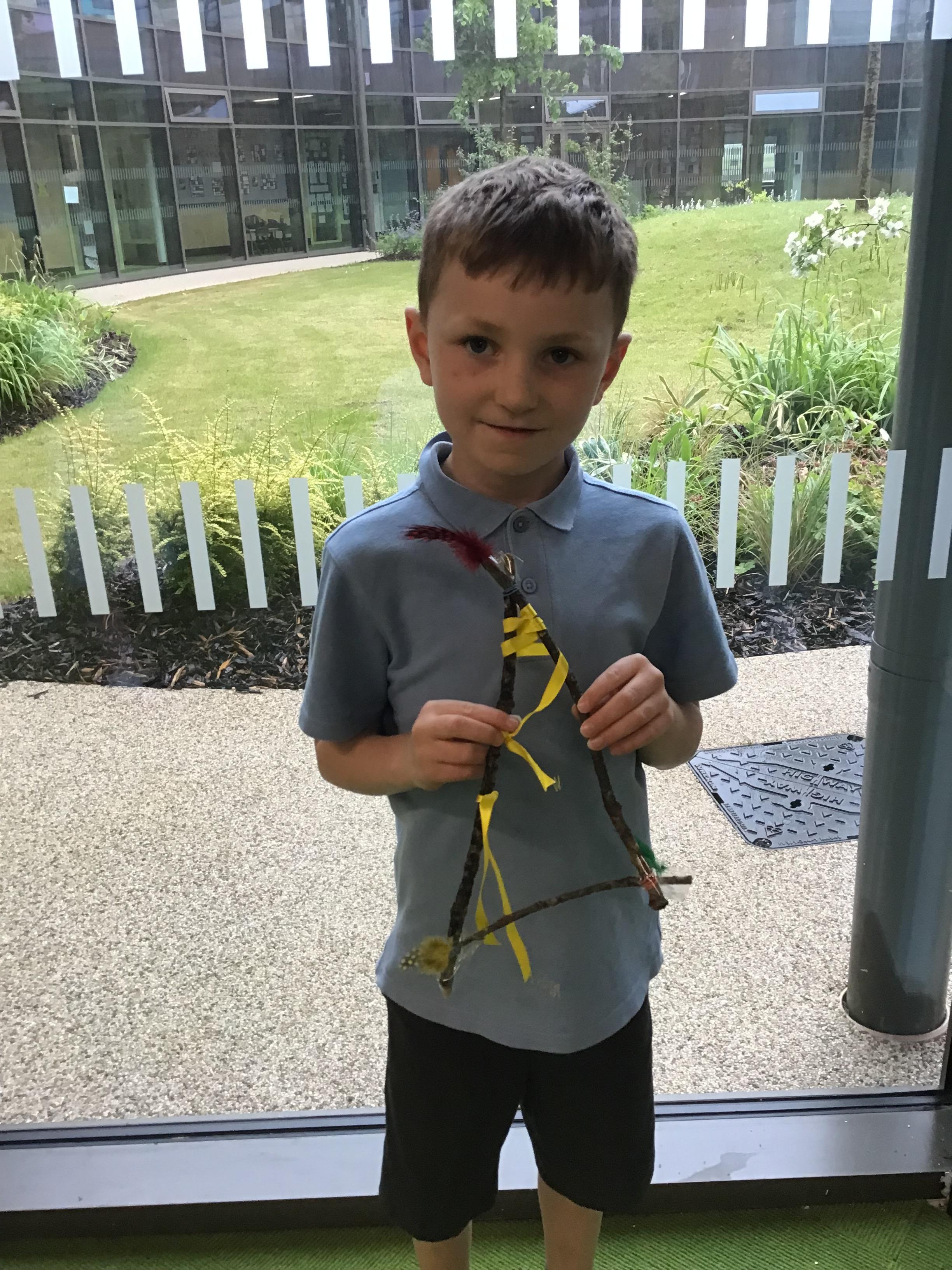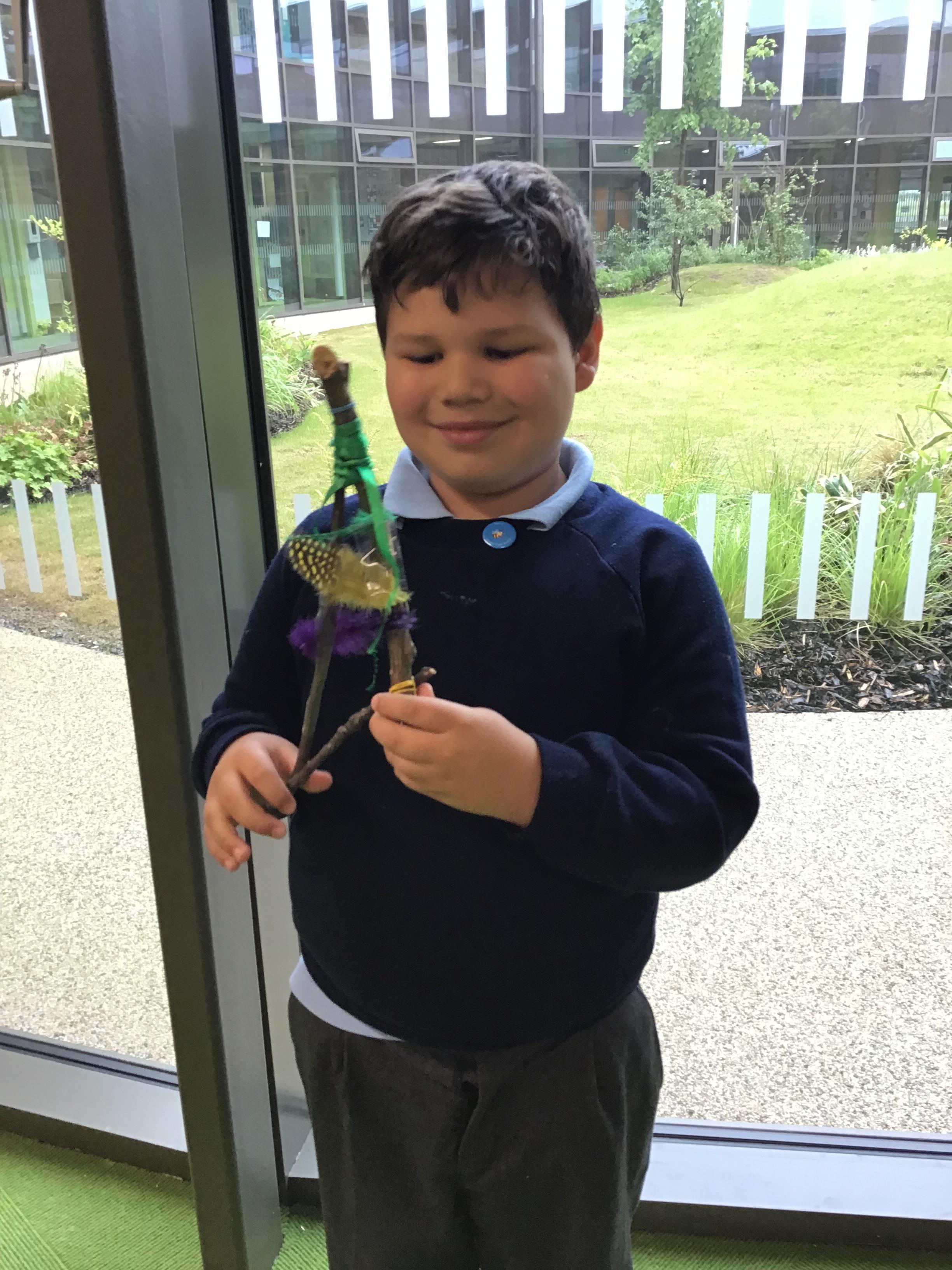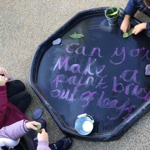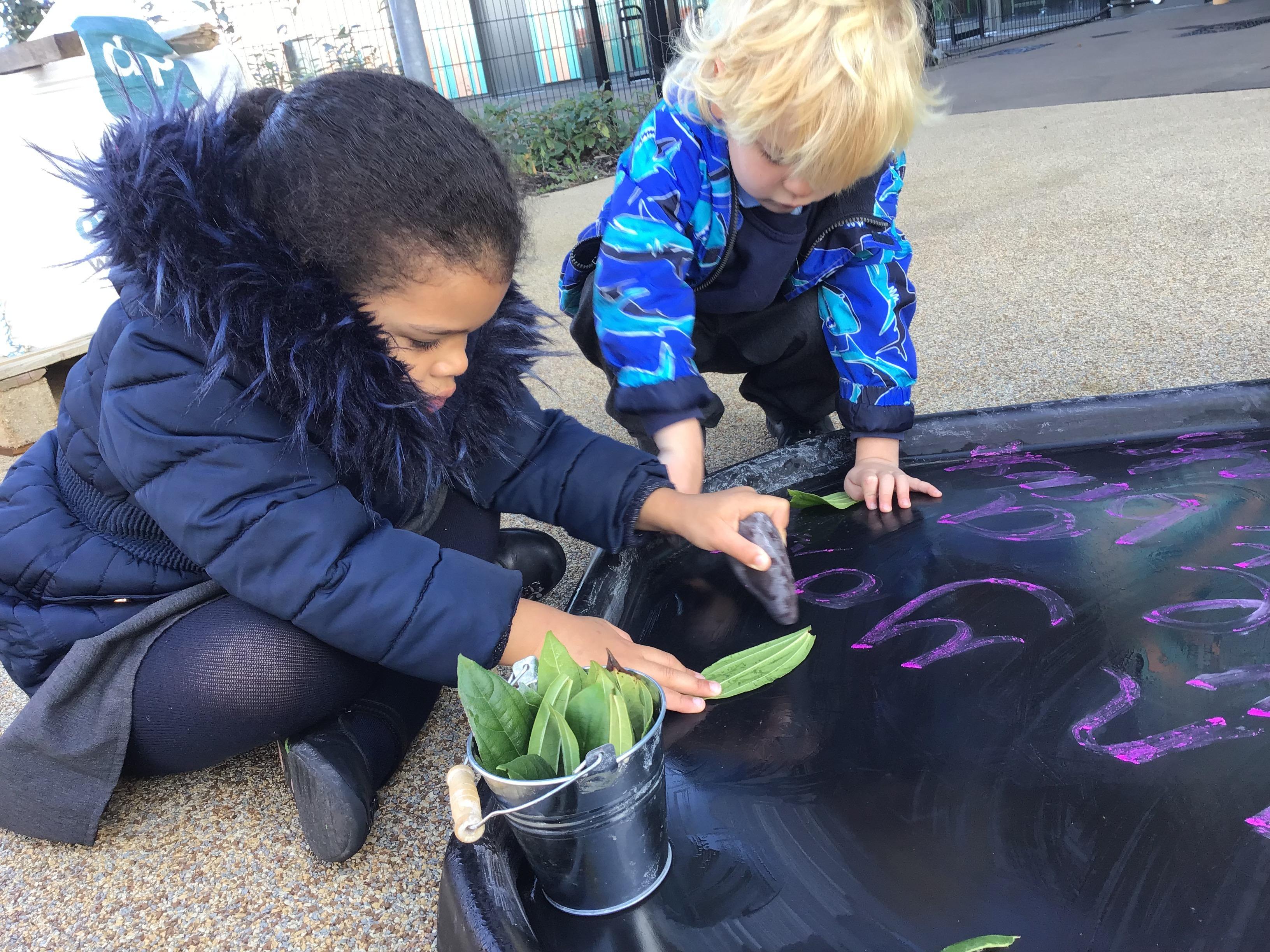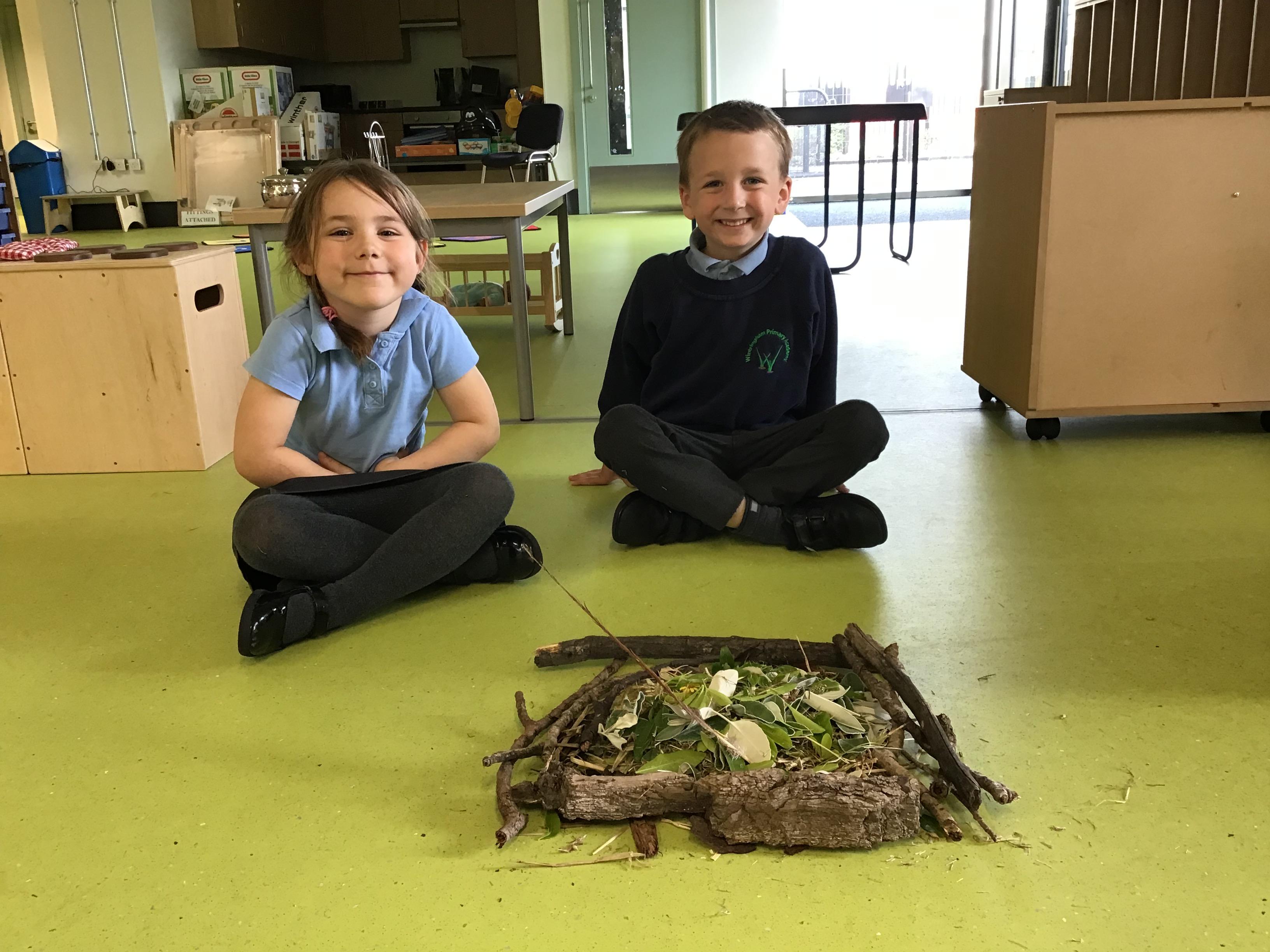 Outside, the children have enjoyed an exploration station. They have been looking at the different wildlife in the garden and also the variety of plants that we have. In outdoor learning, the children used different materials to create their very own leaf men.