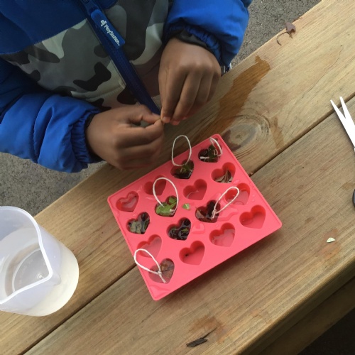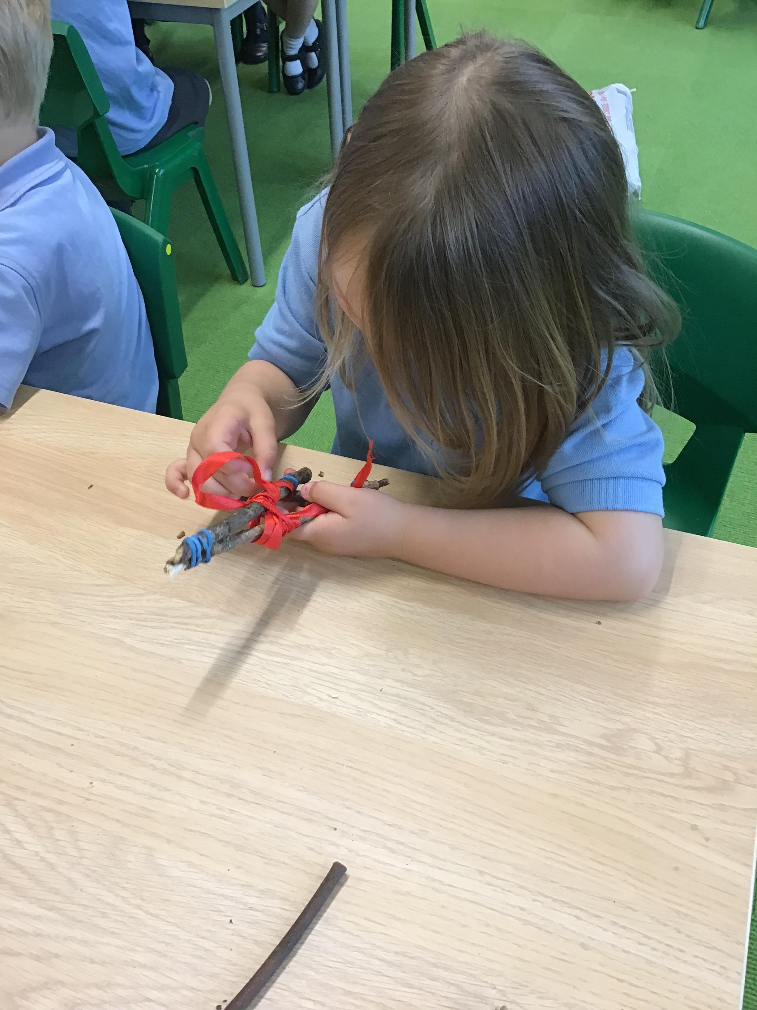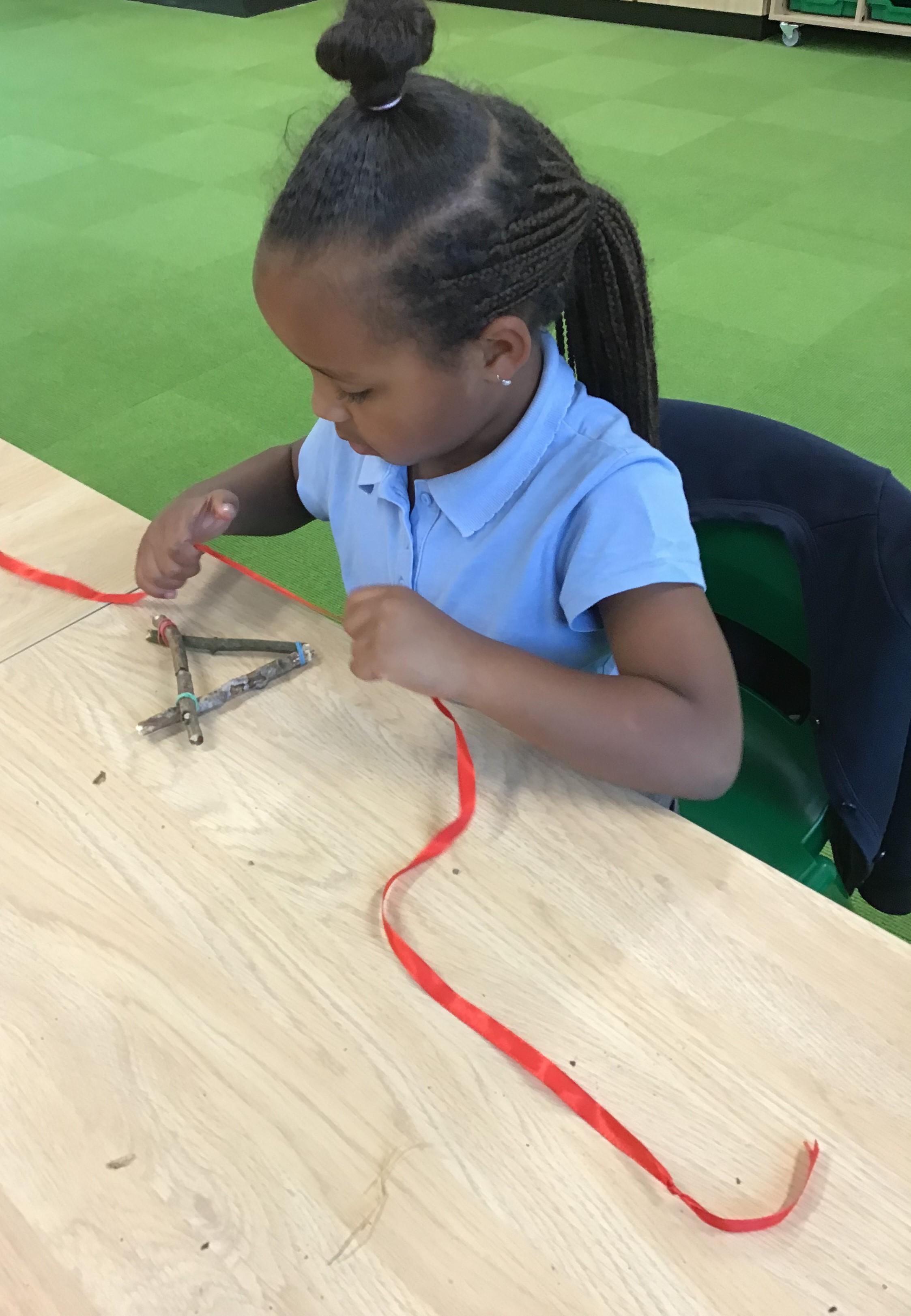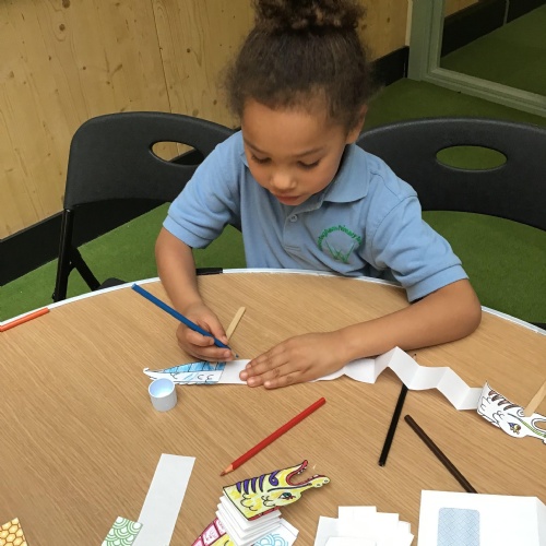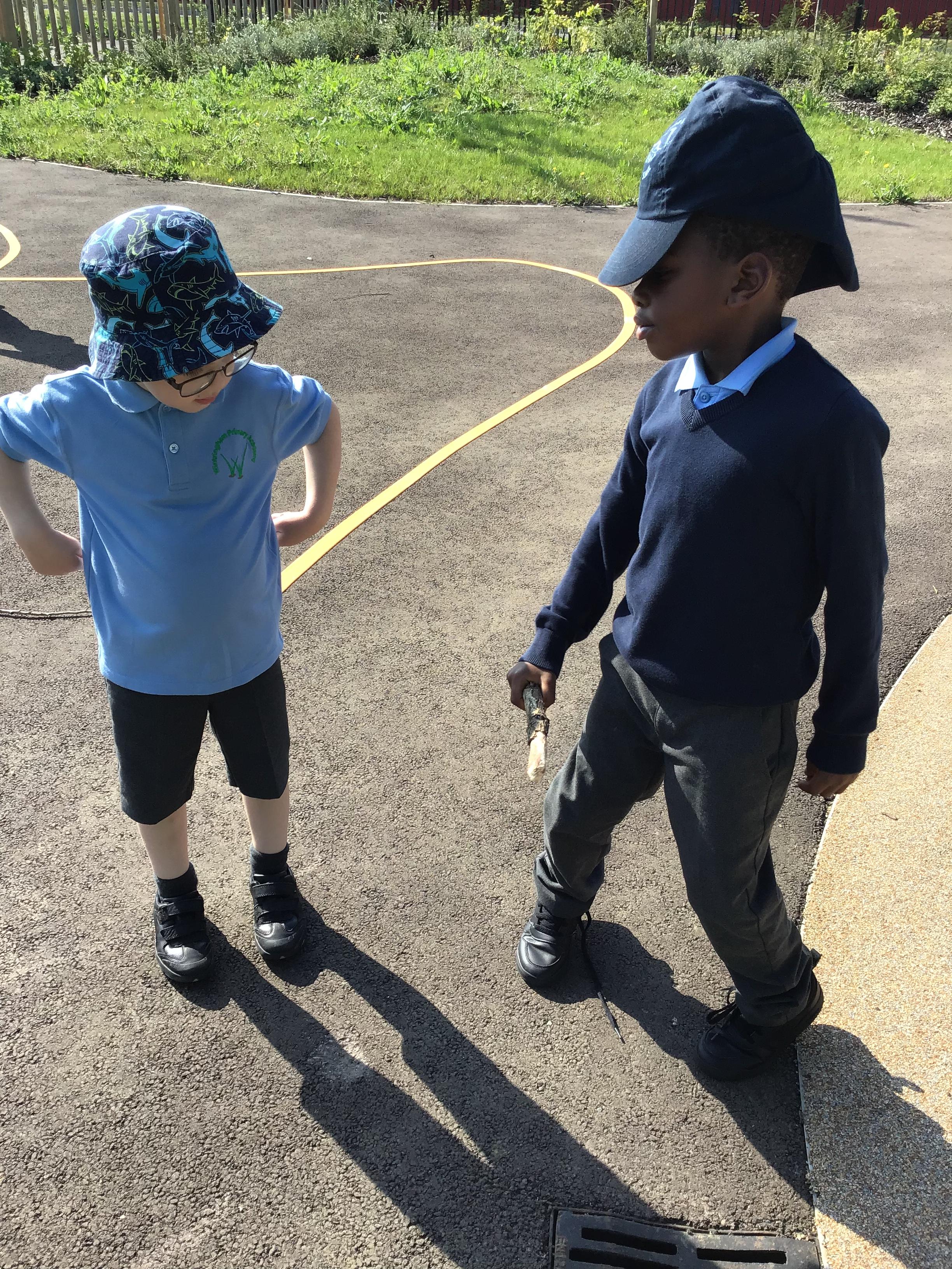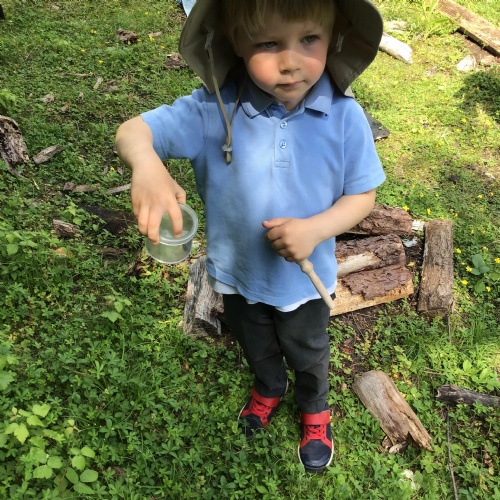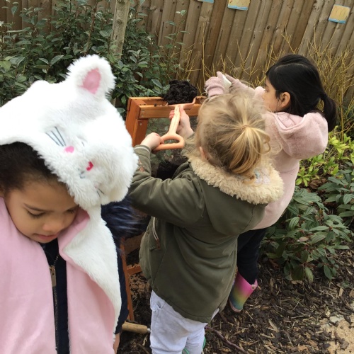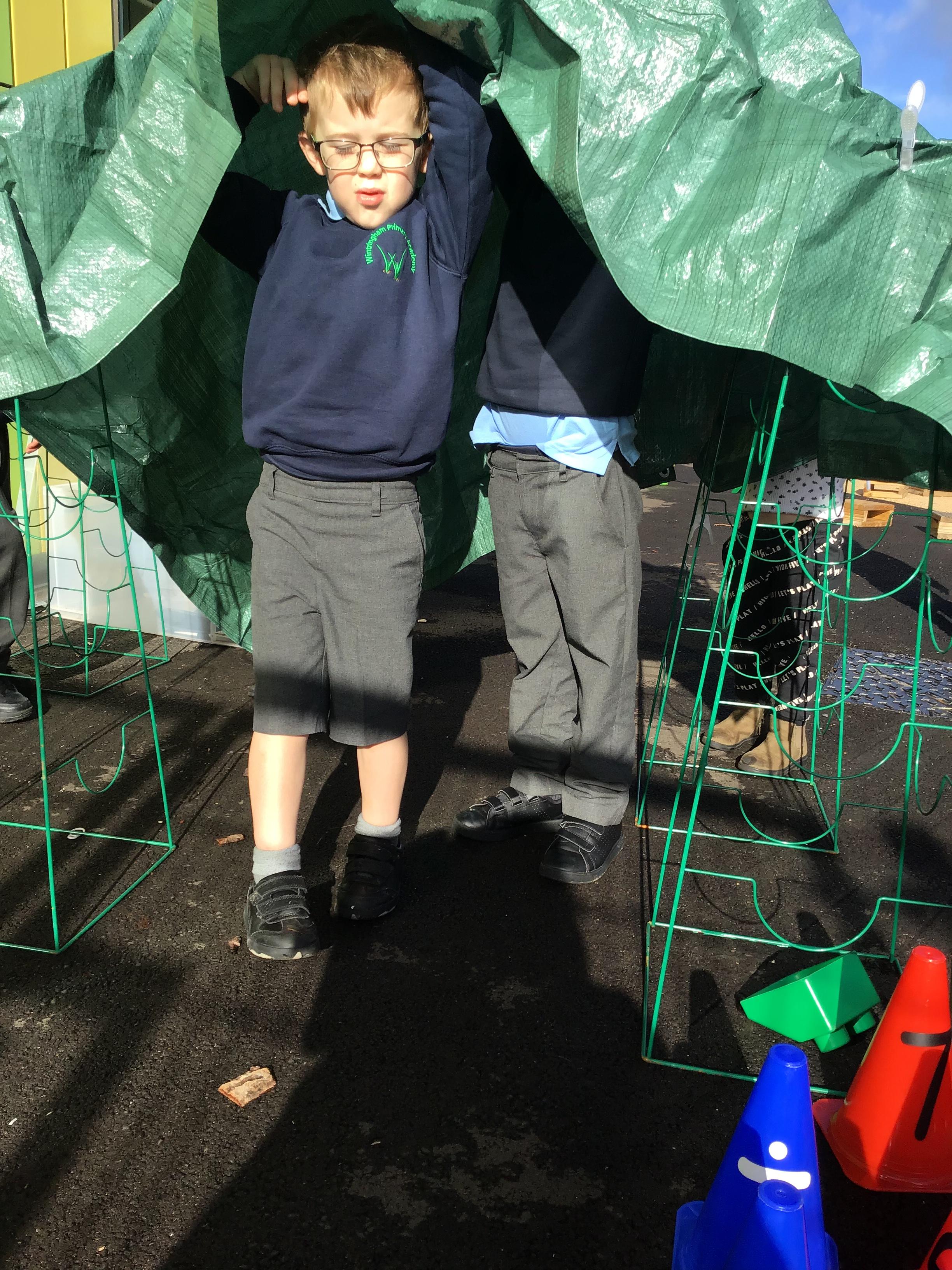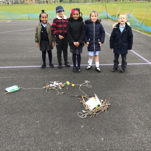 Outside, the children have enjoyed an exploration station. They have been looking at the different wildlife in the garden and also the variety of plants that we have. In outdoor learning, the children used different materials to create their very own leaf men.