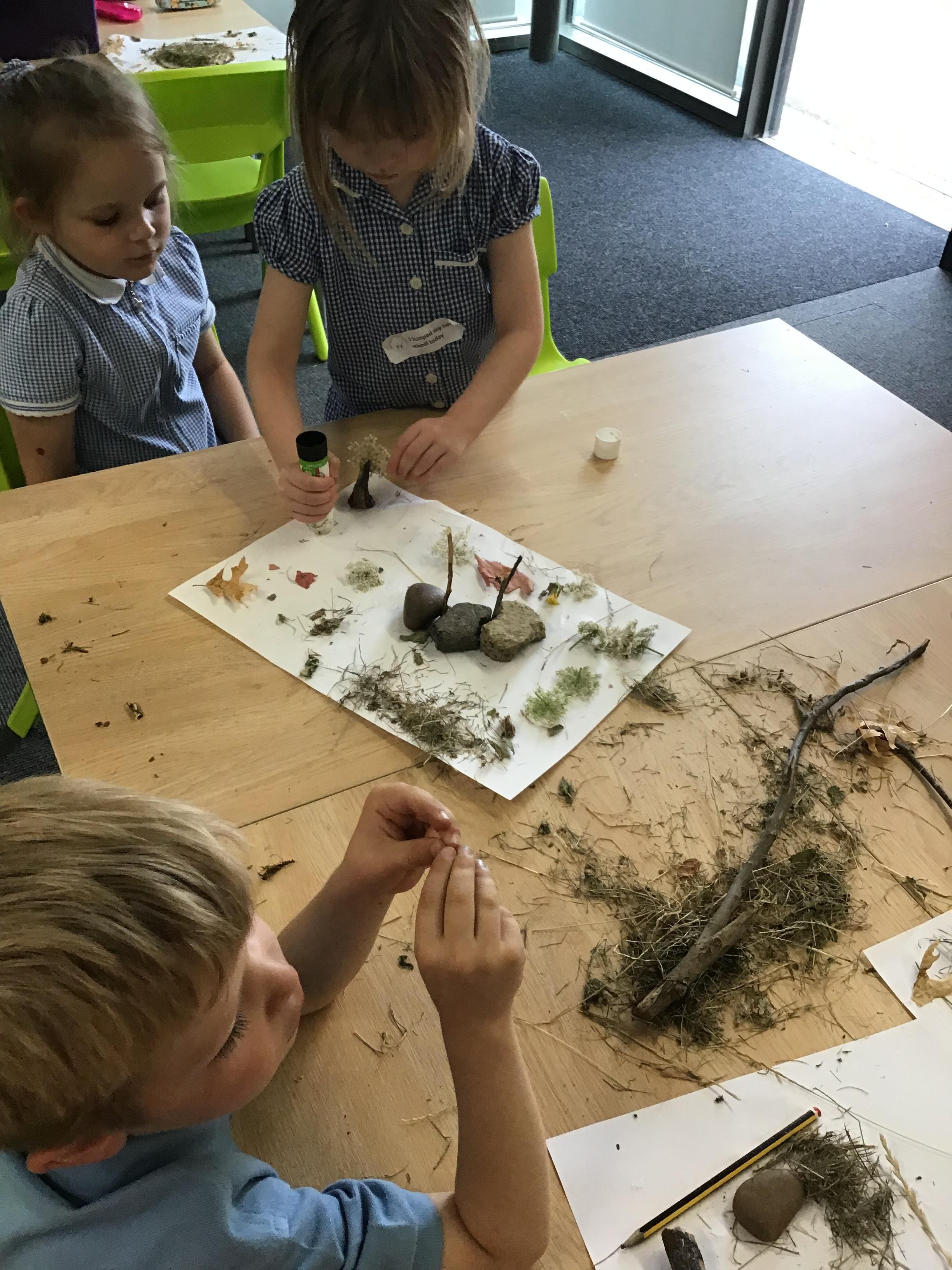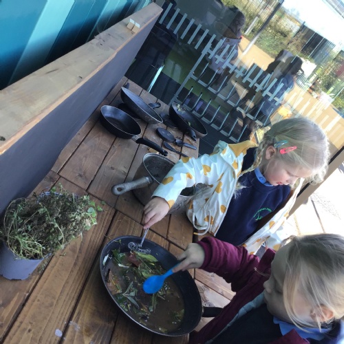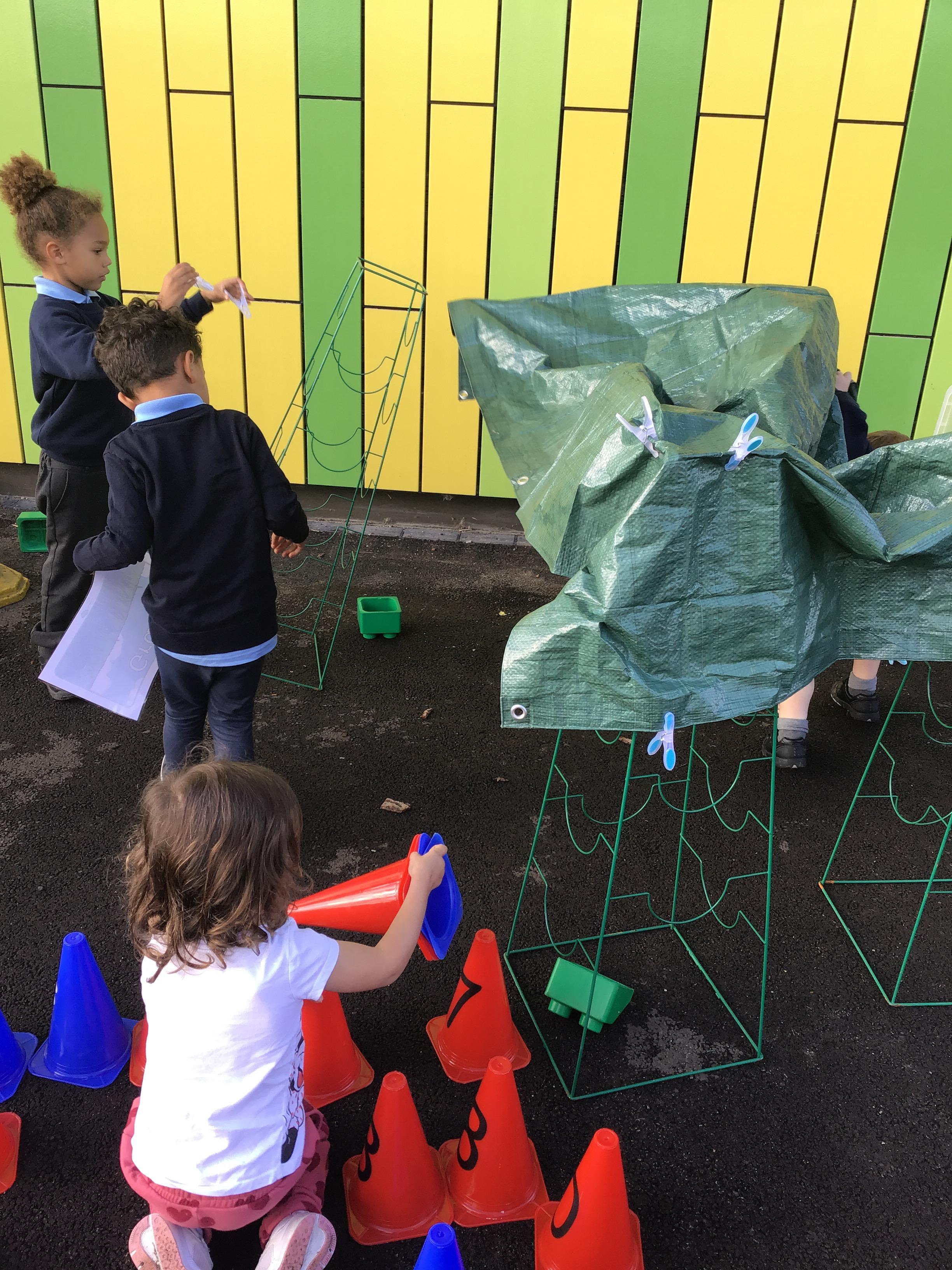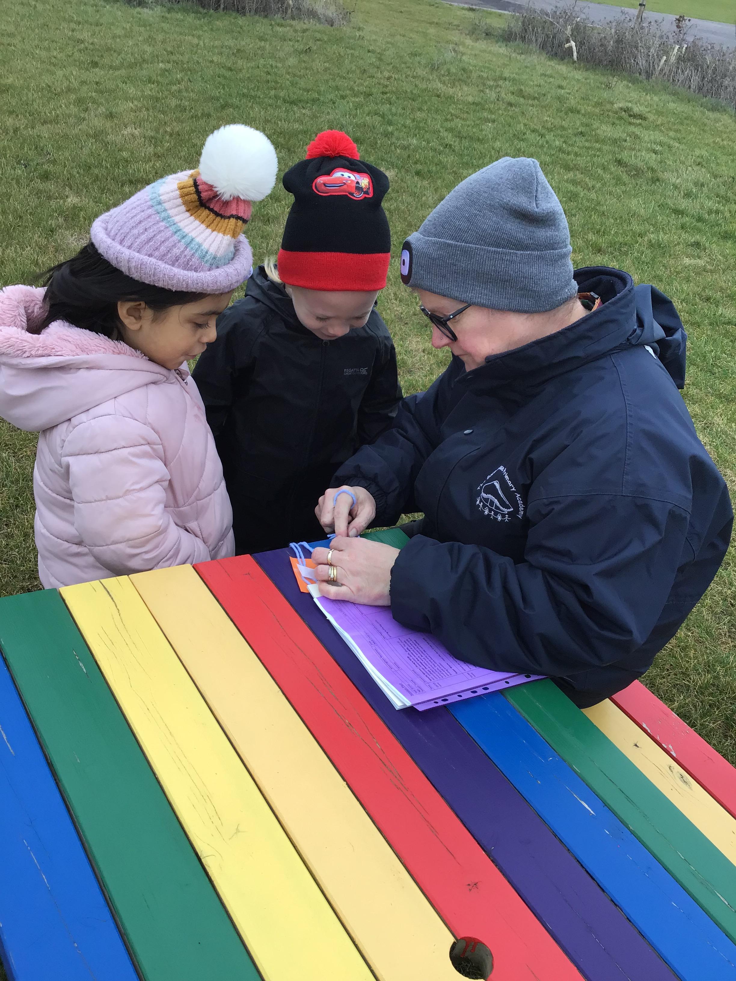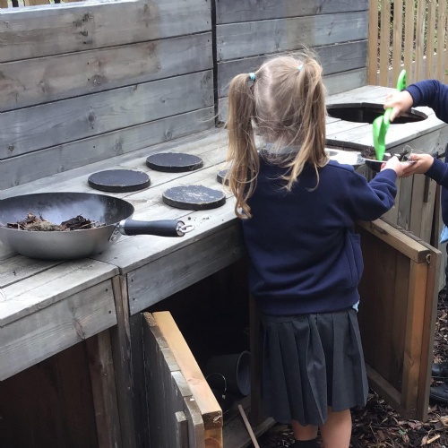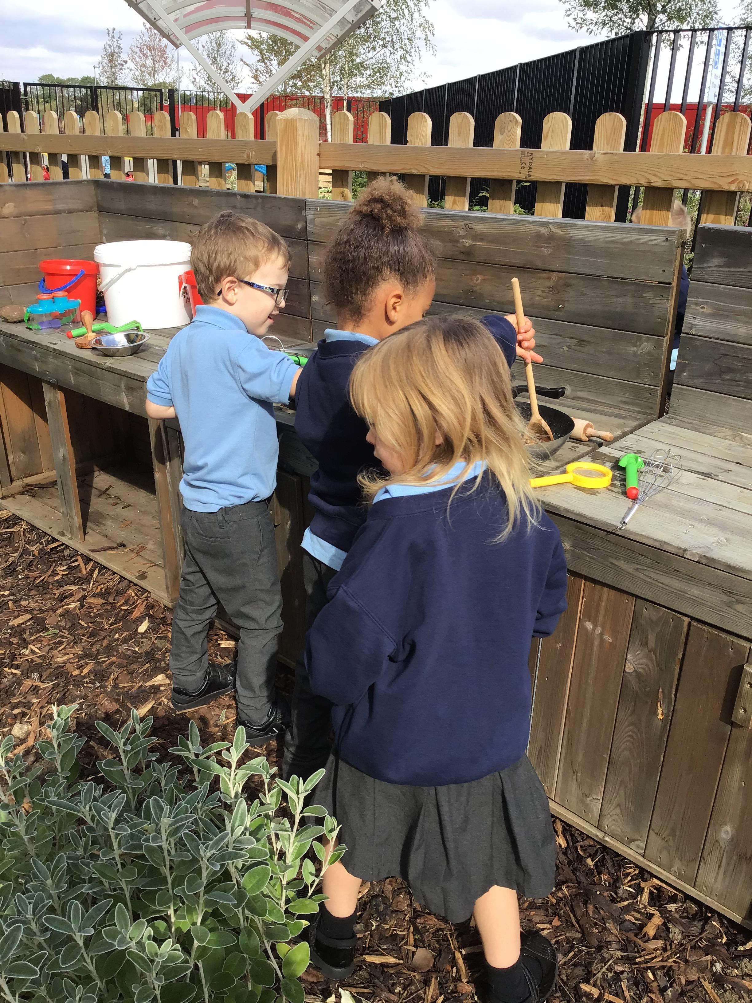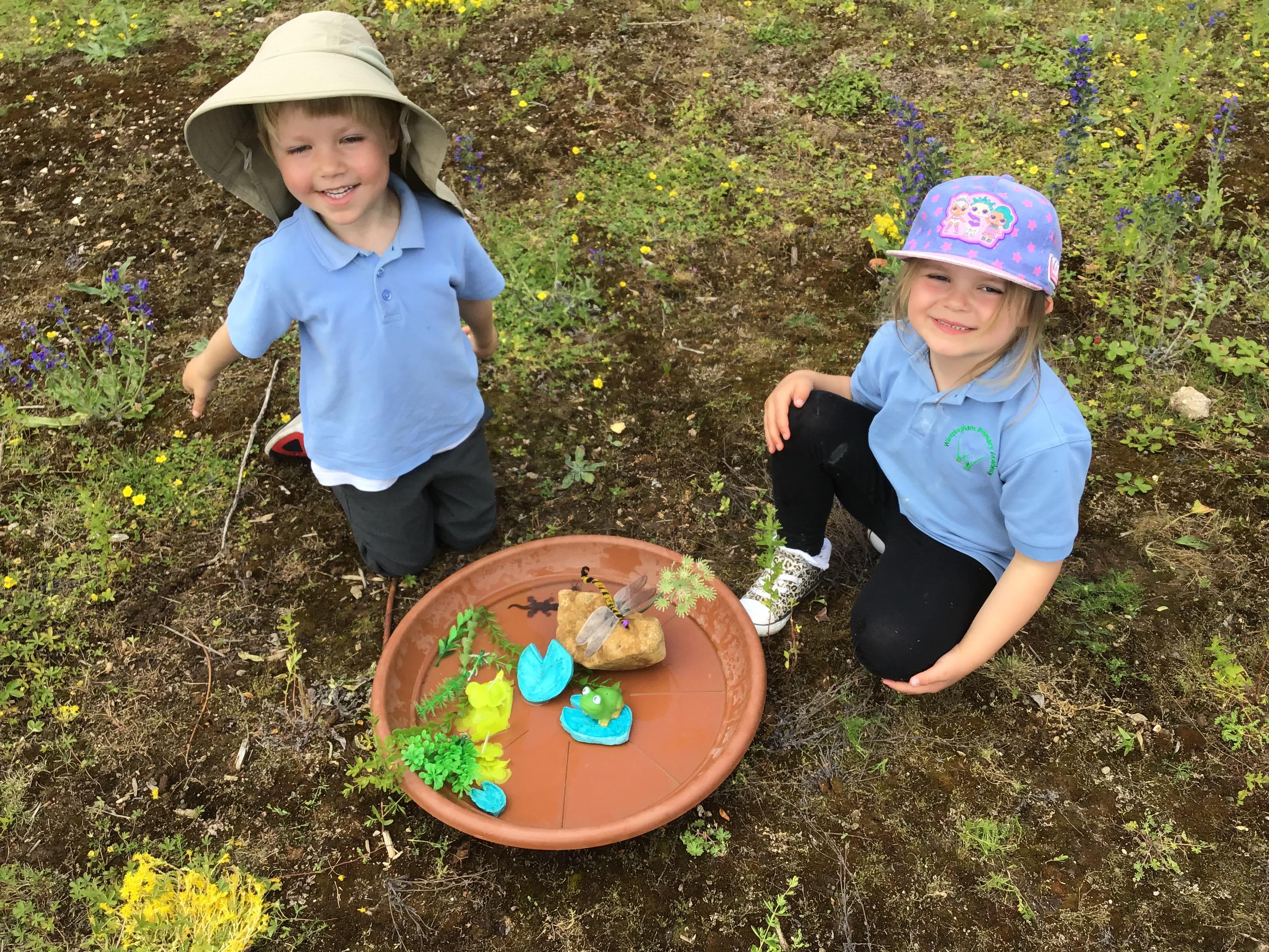 Outside, the children have enjoyed an exploration station. They have been looking at the different wildlife in the garden and also the variety of plants that we have. In outdoor learning, the children used different materials to create their very own leaf men.