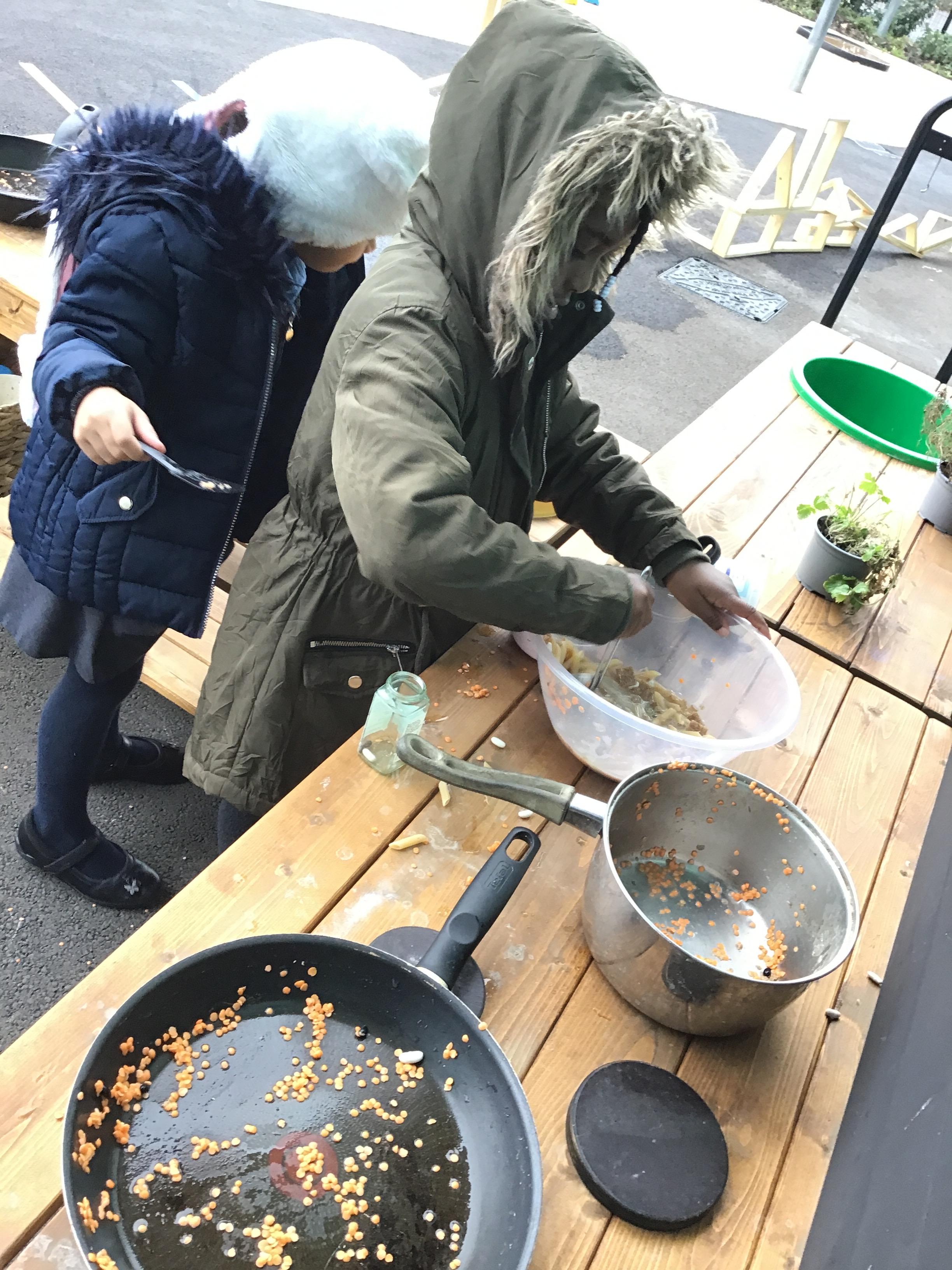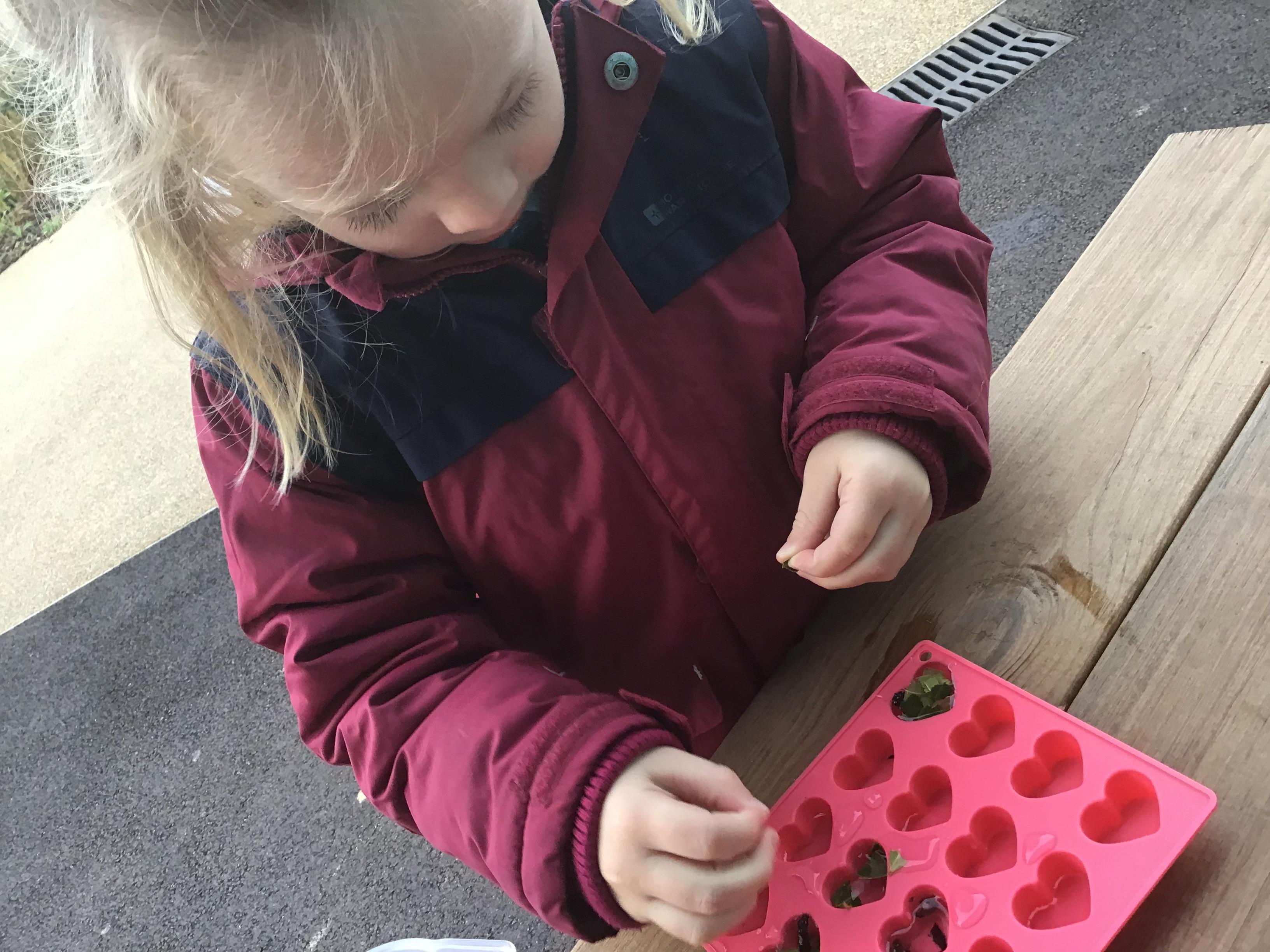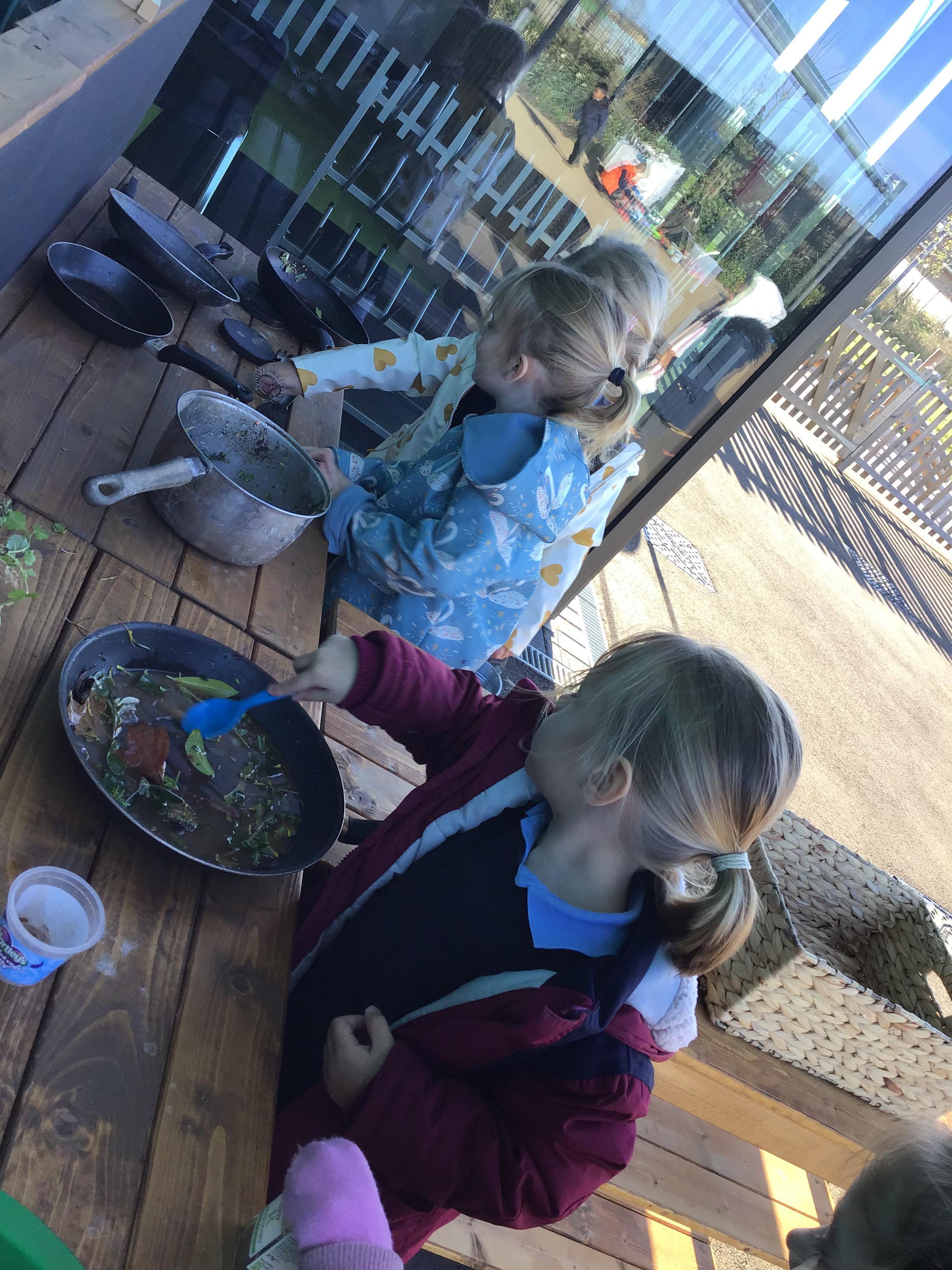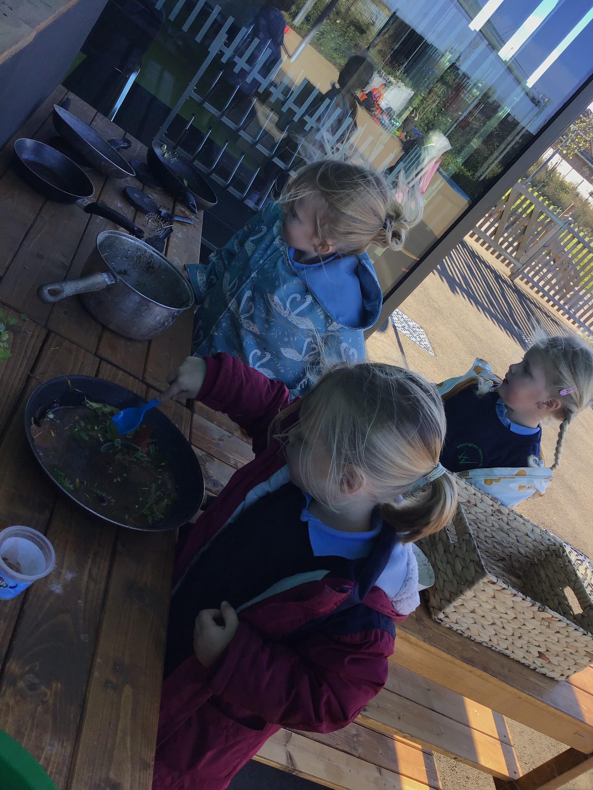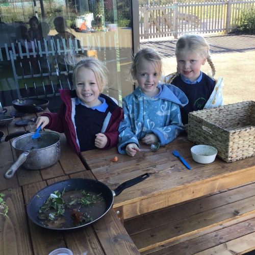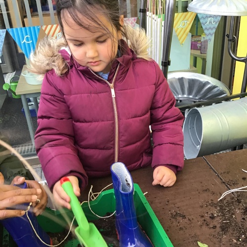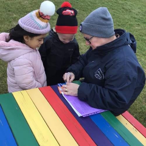 Outside, the children have enjoyed an exploration station. They have been looking at the different wildlife in the garden and also the variety of plants that we have. In outdoor learning, the children used different materials to create their very own leaf men.