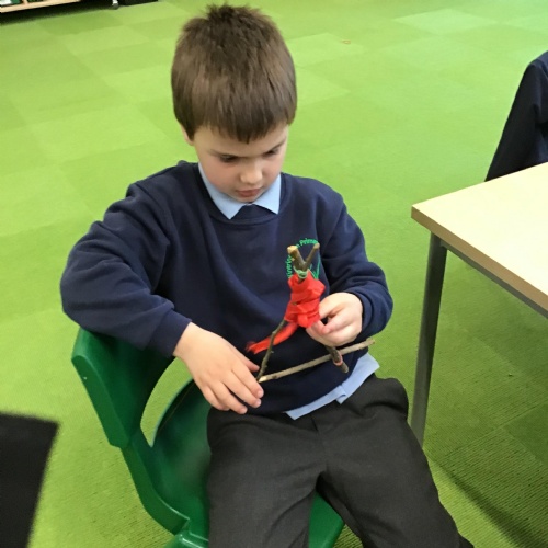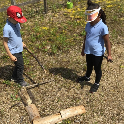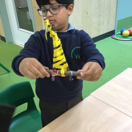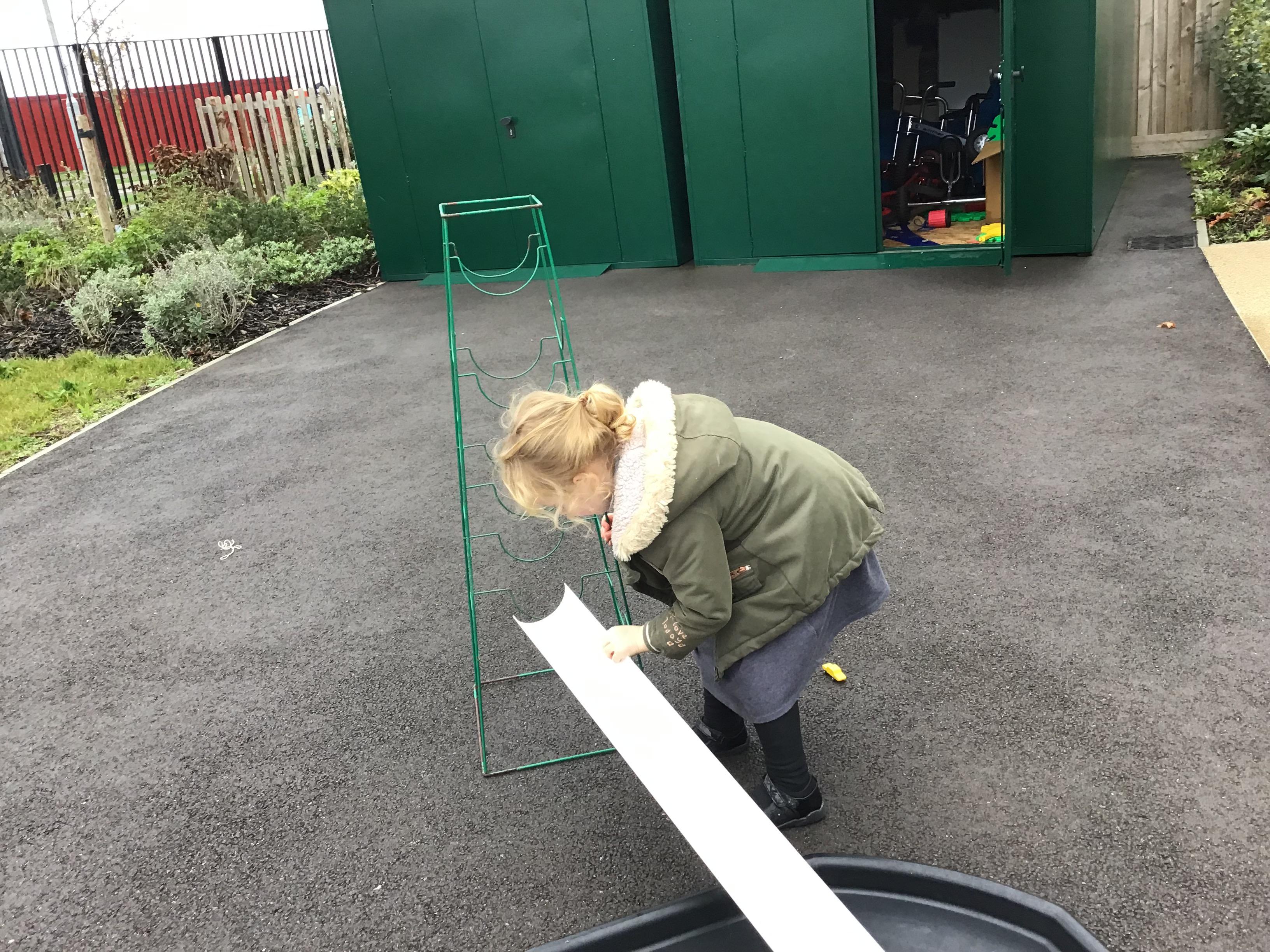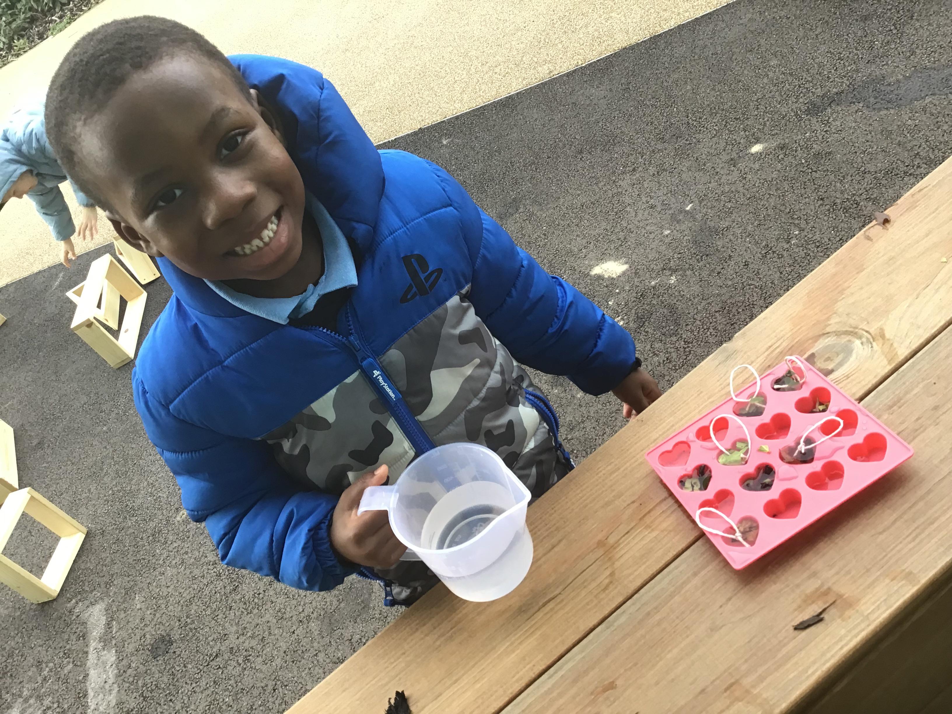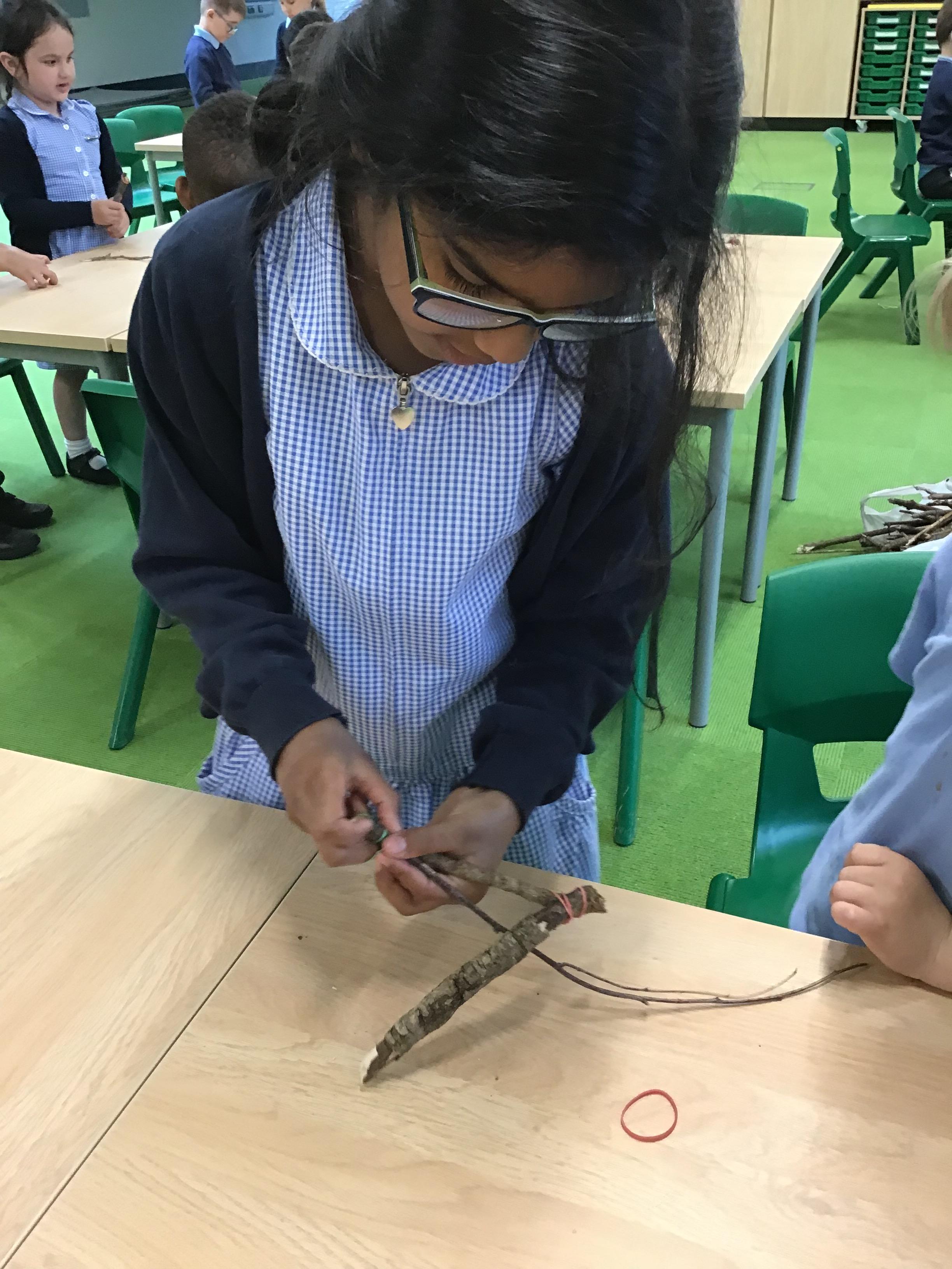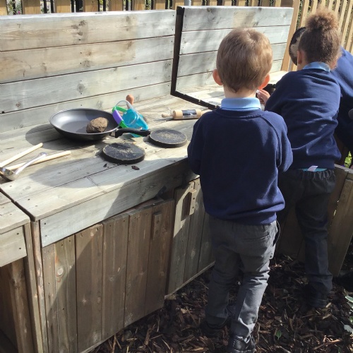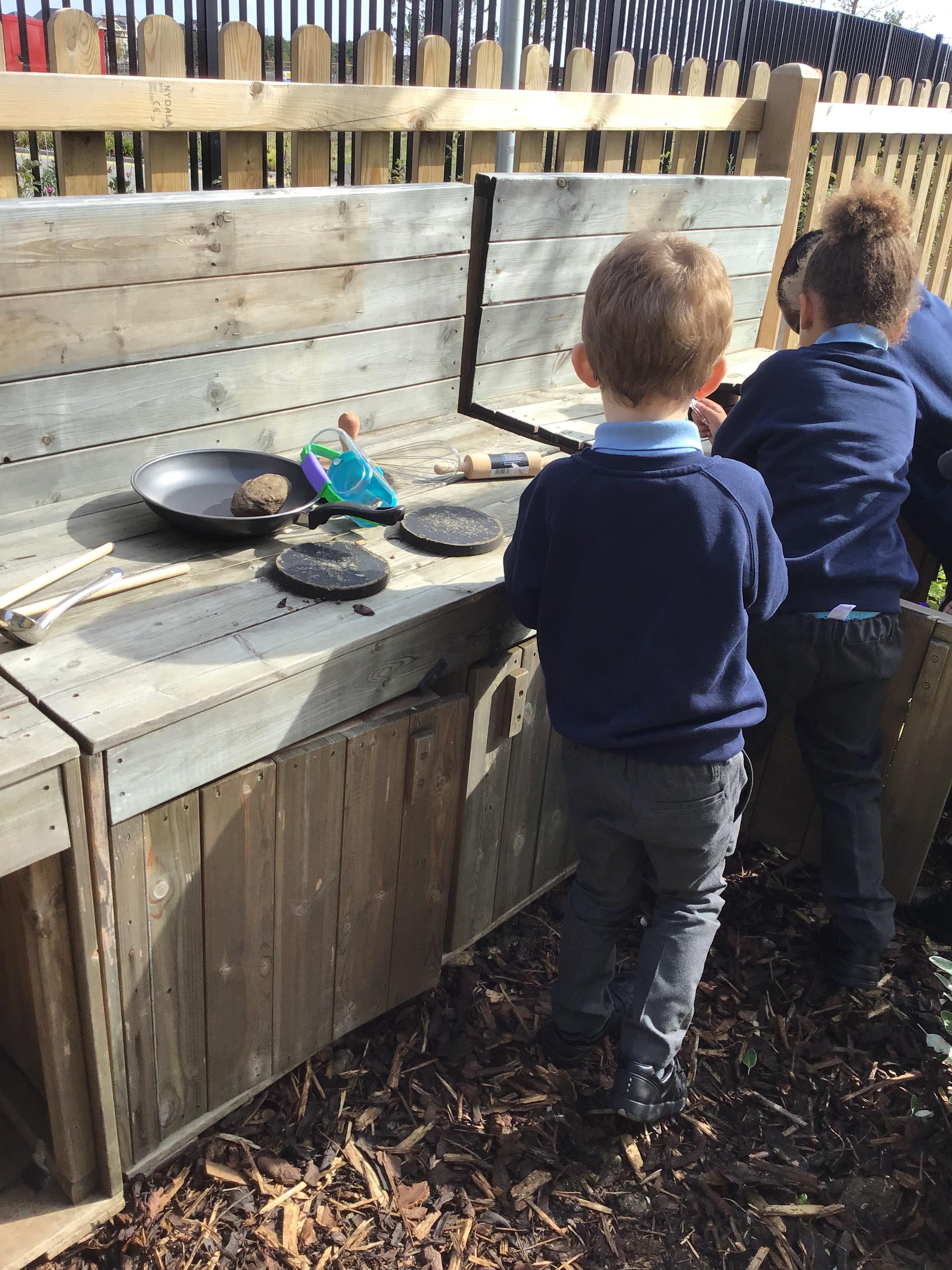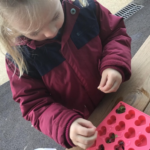 Outside, the children have enjoyed an exploration station. They have been looking at the different wildlife in the garden and also the variety of plants that we have. In outdoor learning, the children used different materials to create their very own leaf men.