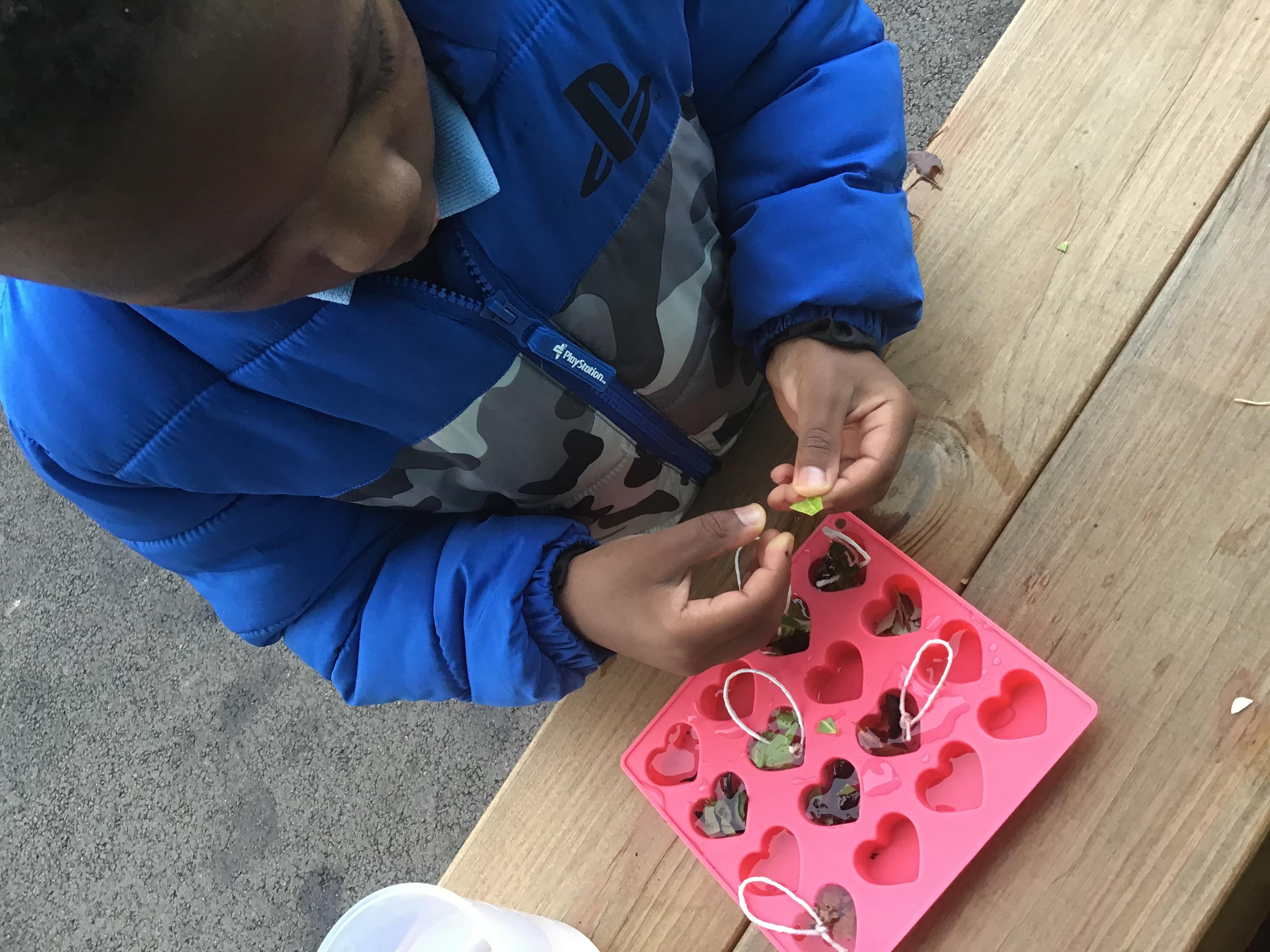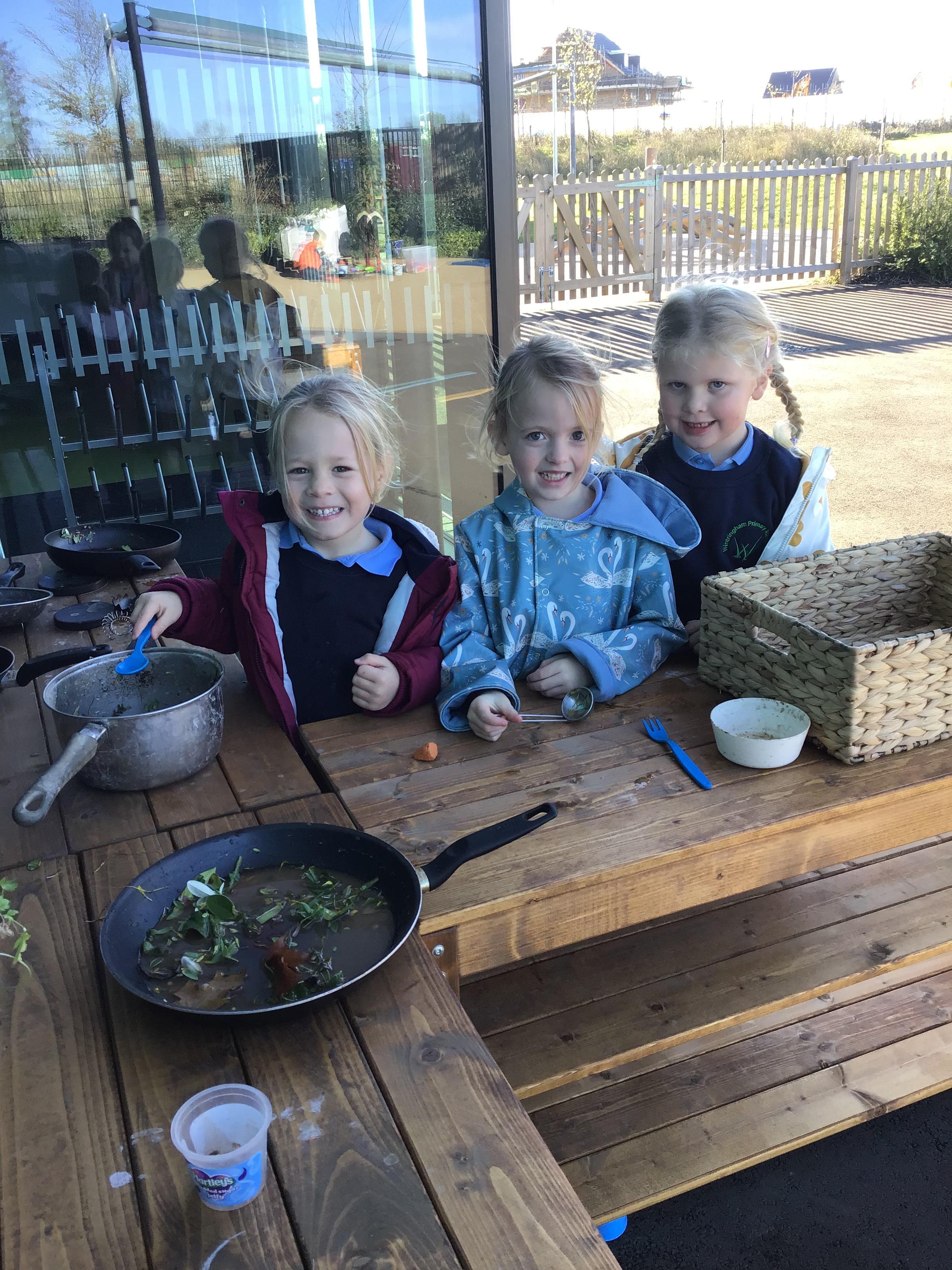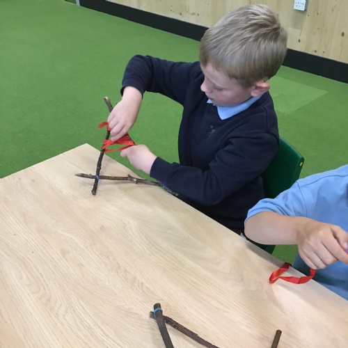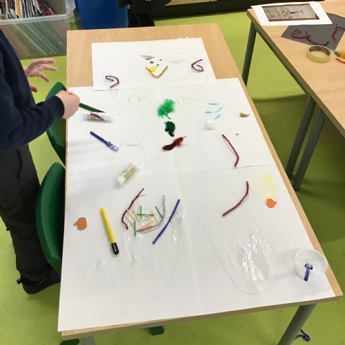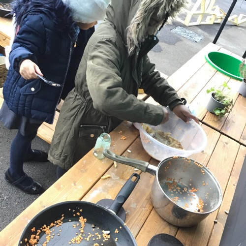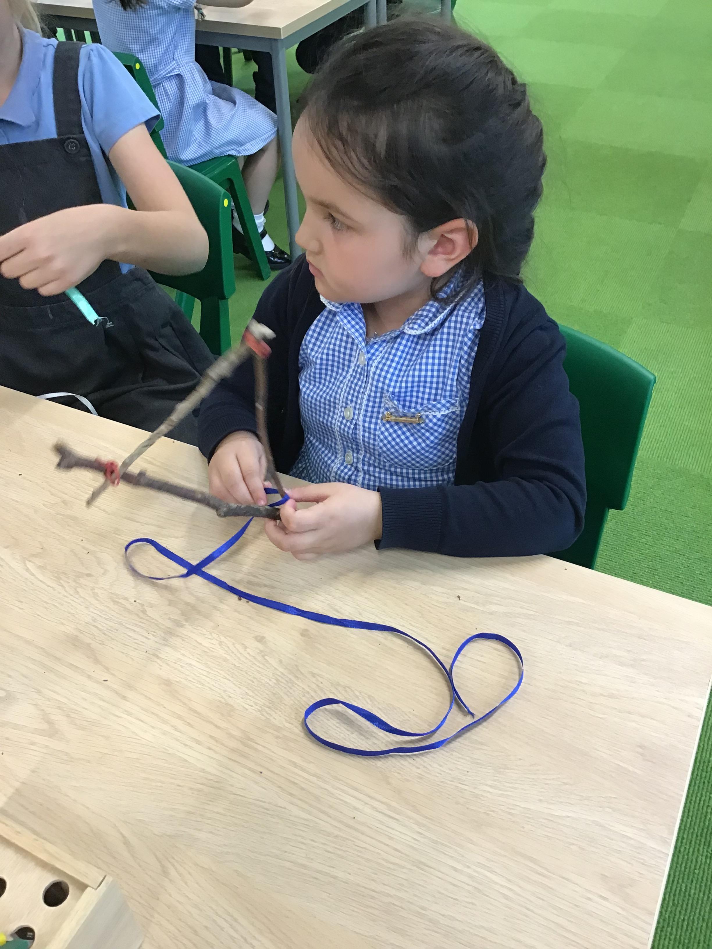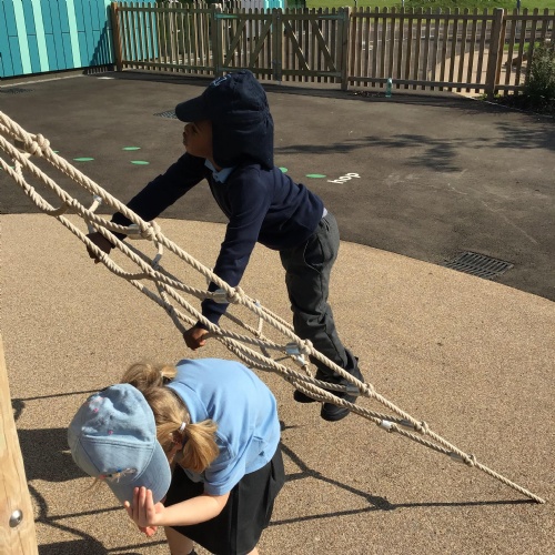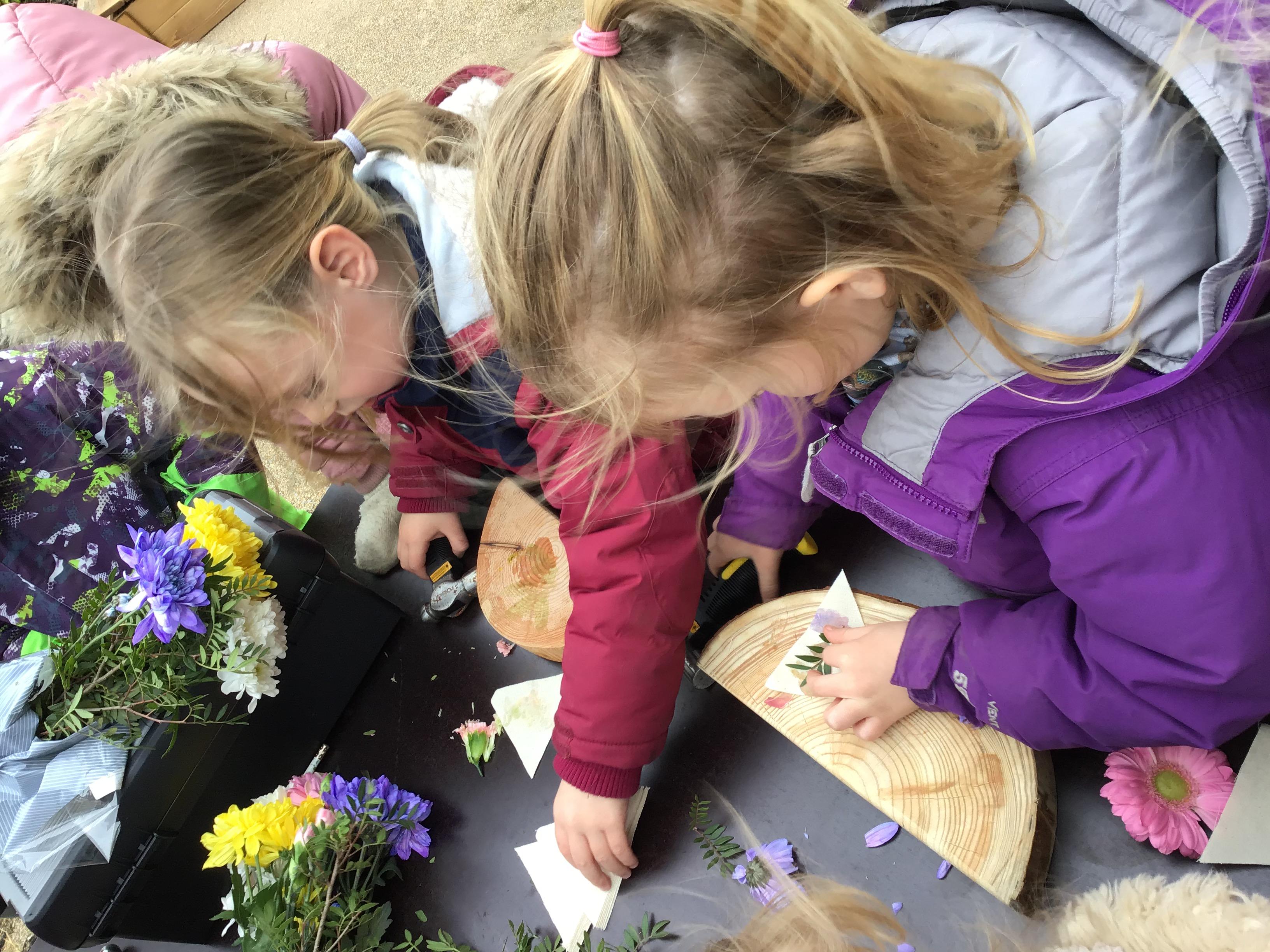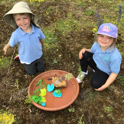 Outside, the children have enjoyed an exploration station. They have been looking at the different wildlife in the garden and also the variety of plants that we have. In outdoor learning, the children used different materials to create their very own leaf men.