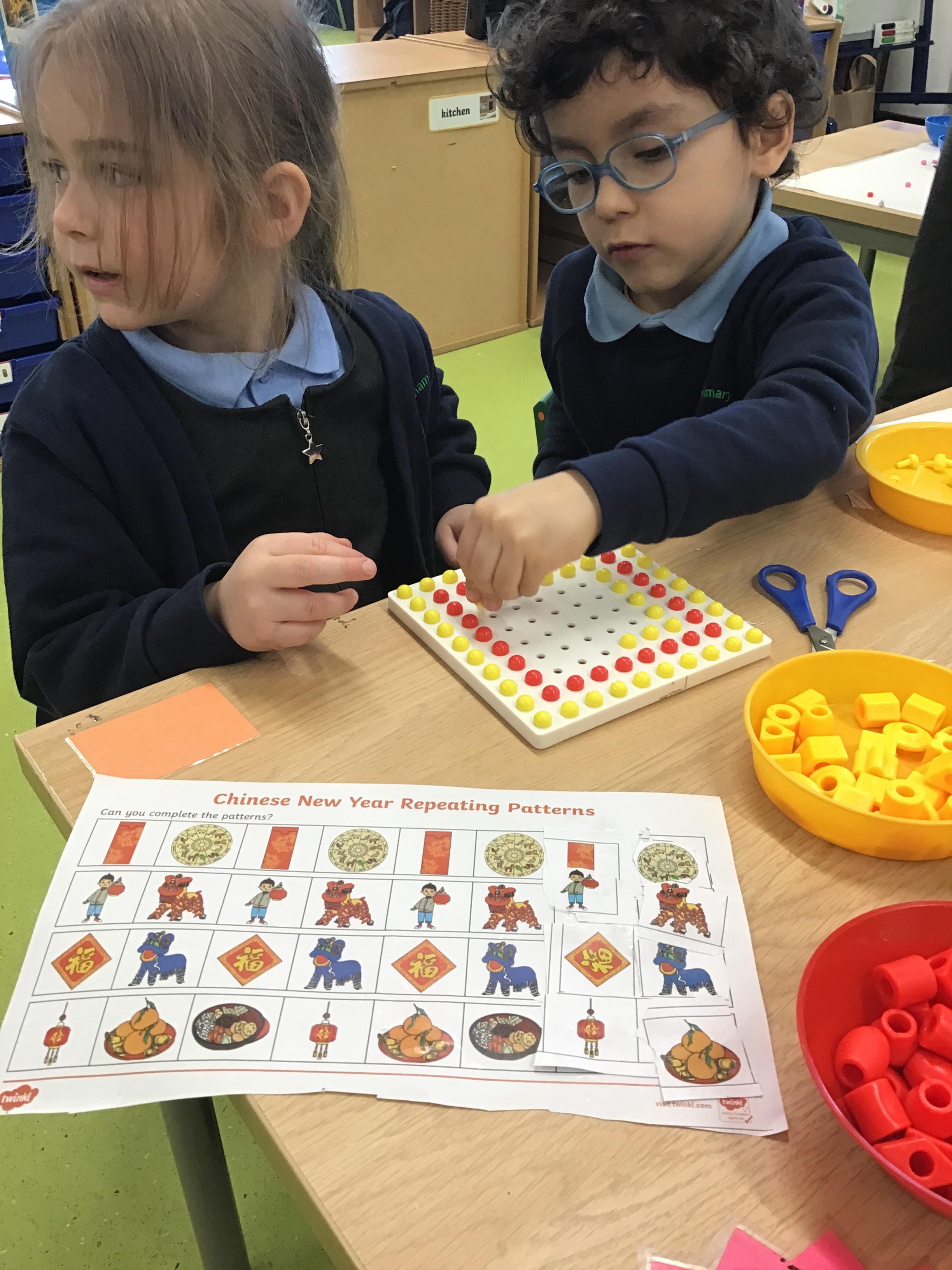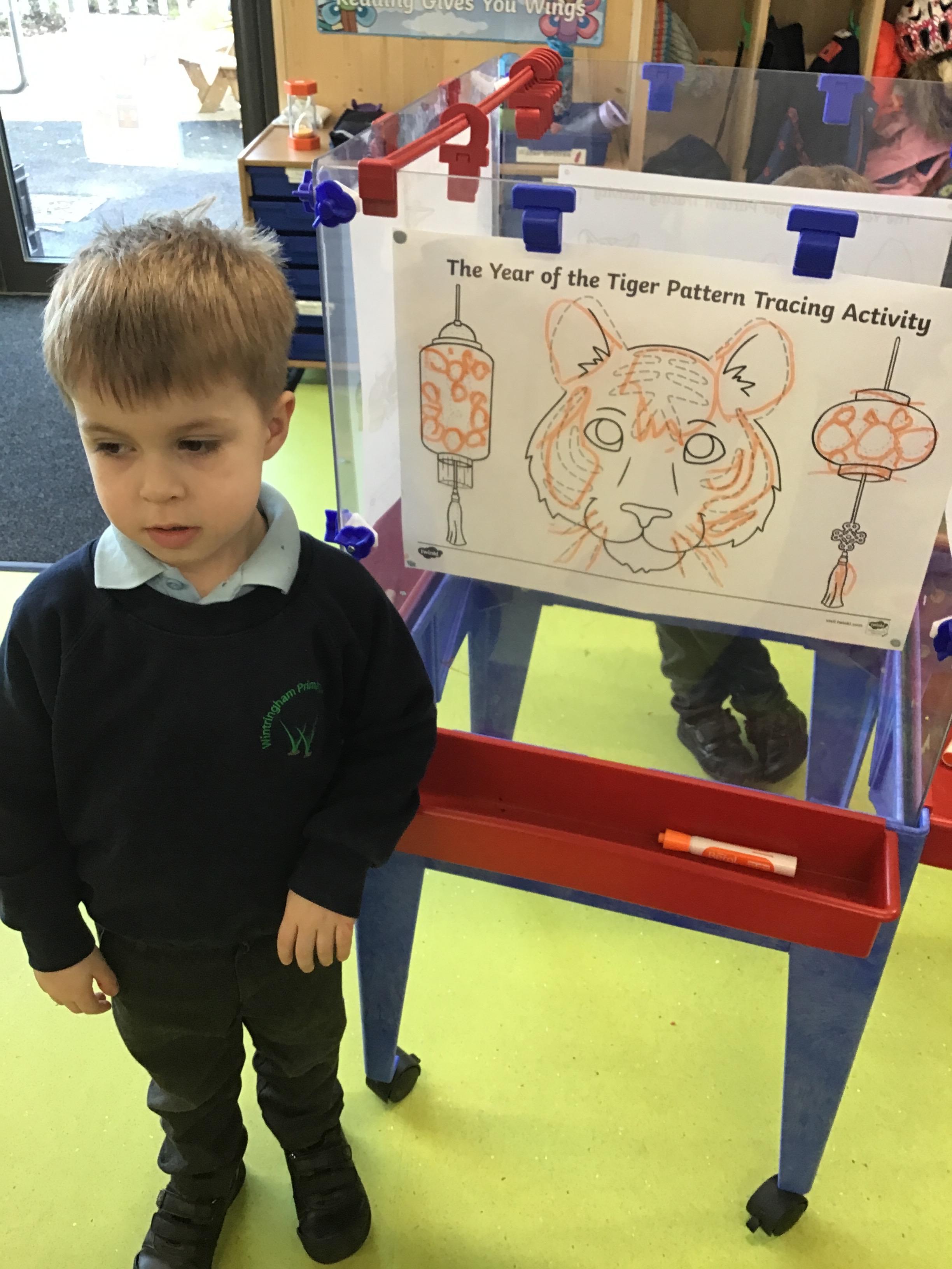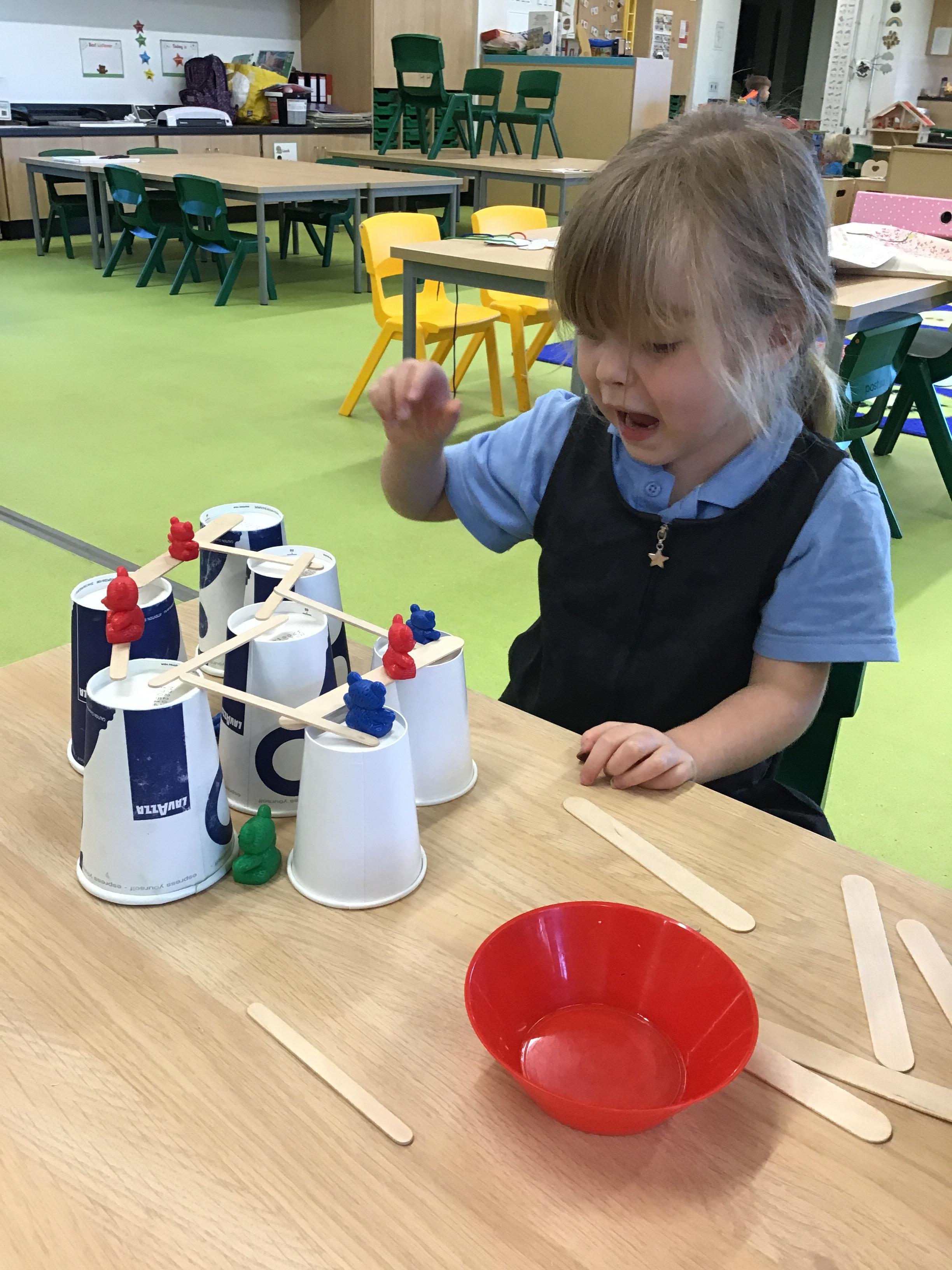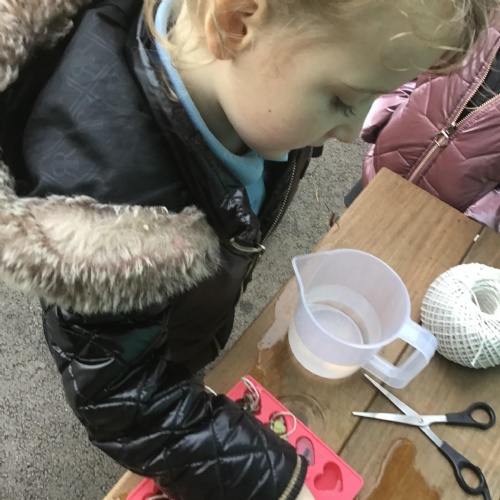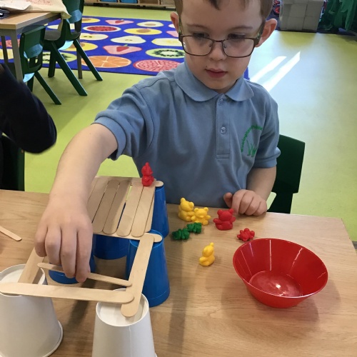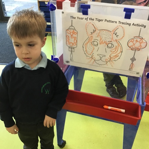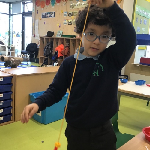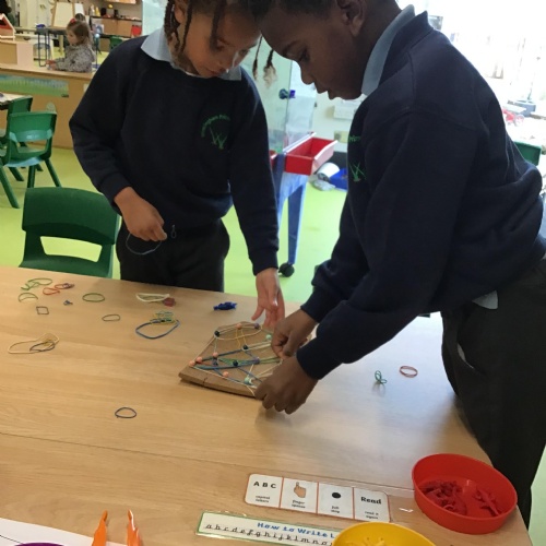 The children have had a fantastic start to the spring term focussing on the theme 'traditional tales.' First the children looked at the key text, 'Goldilocks and the Three Bears.' The children increased their confidence retelling a story, joining in with repeated parts of a story and hot seating the different characters. In continuous provision, the children role played in the cottage, wrote in porridge oats, ordered different objects from the story by size and made their own bear puppets. Outside, the children created ice dream catchers, explored colour in the water and created the bear's cottage using large shape bricks. During the focus activity, the children explored AB patterns. They were able to create their own patterns, continue a pre made pattern and spot errors in an AB pattern.