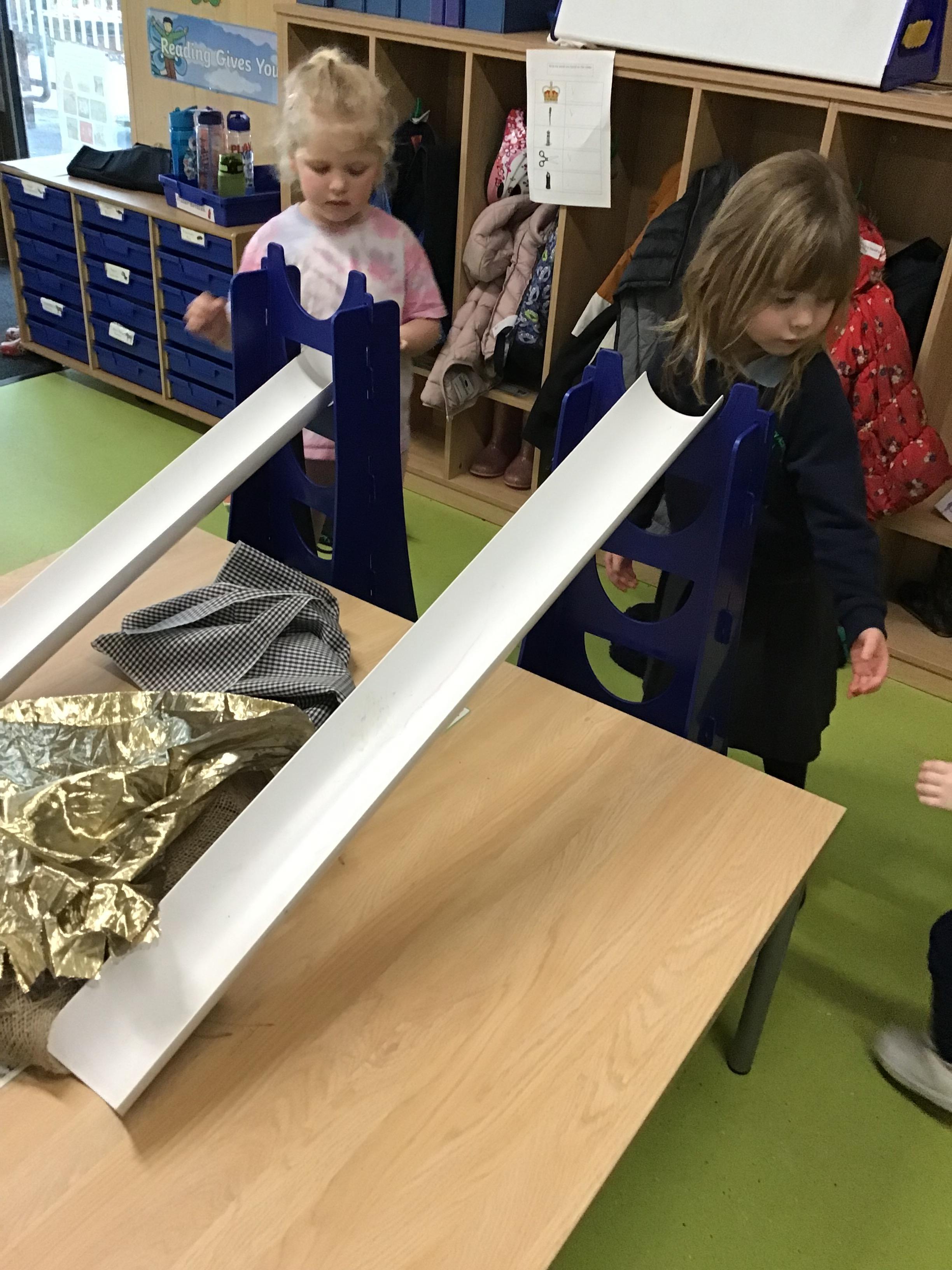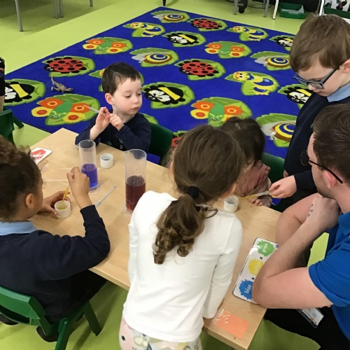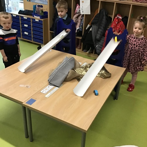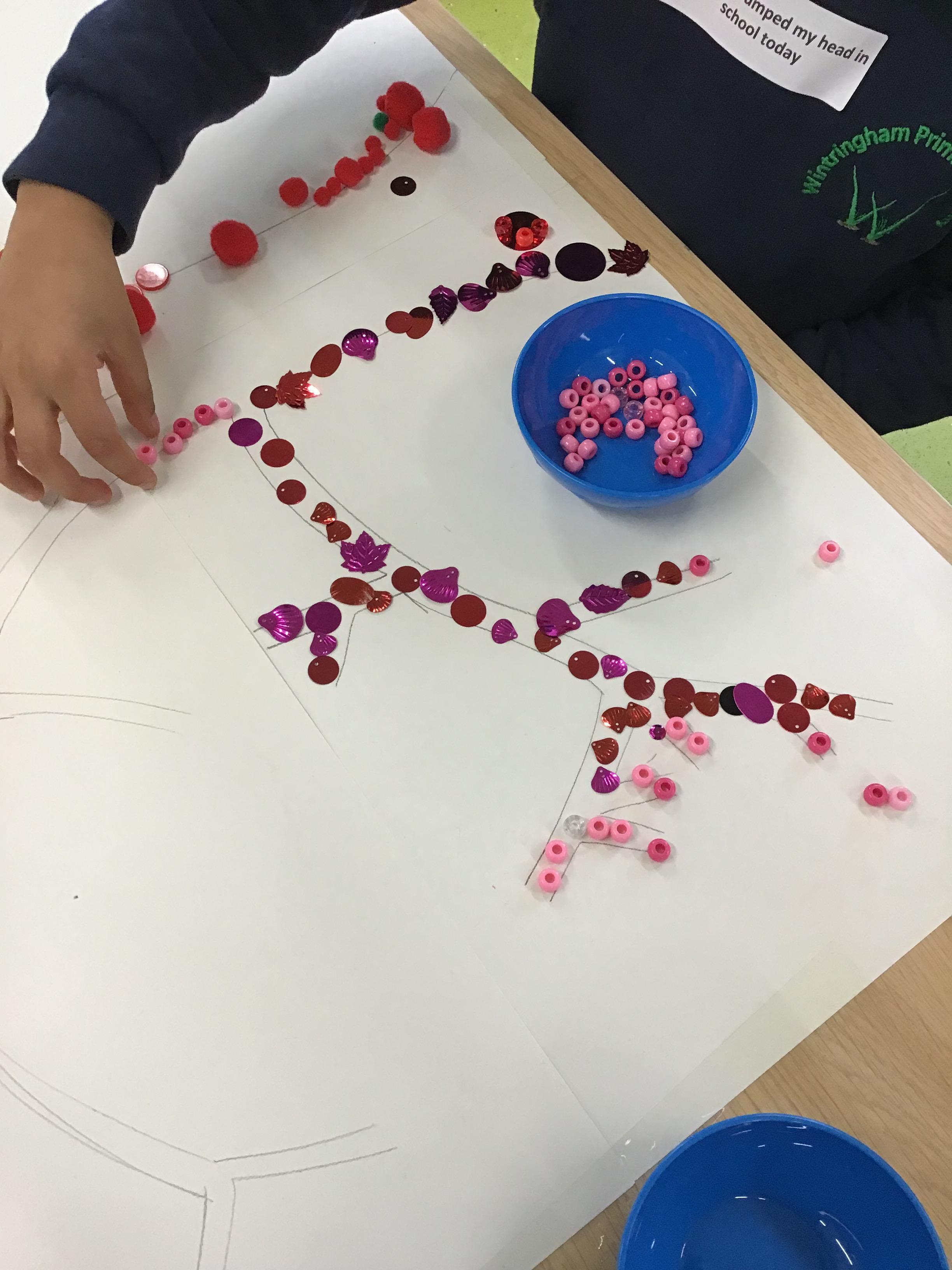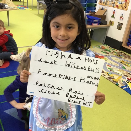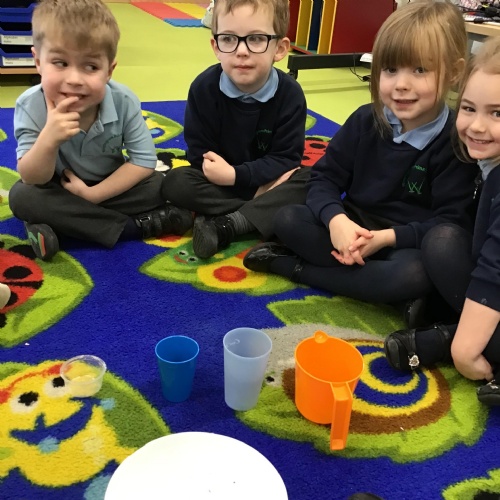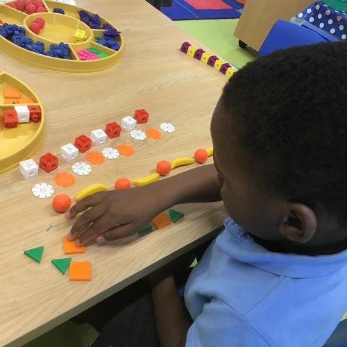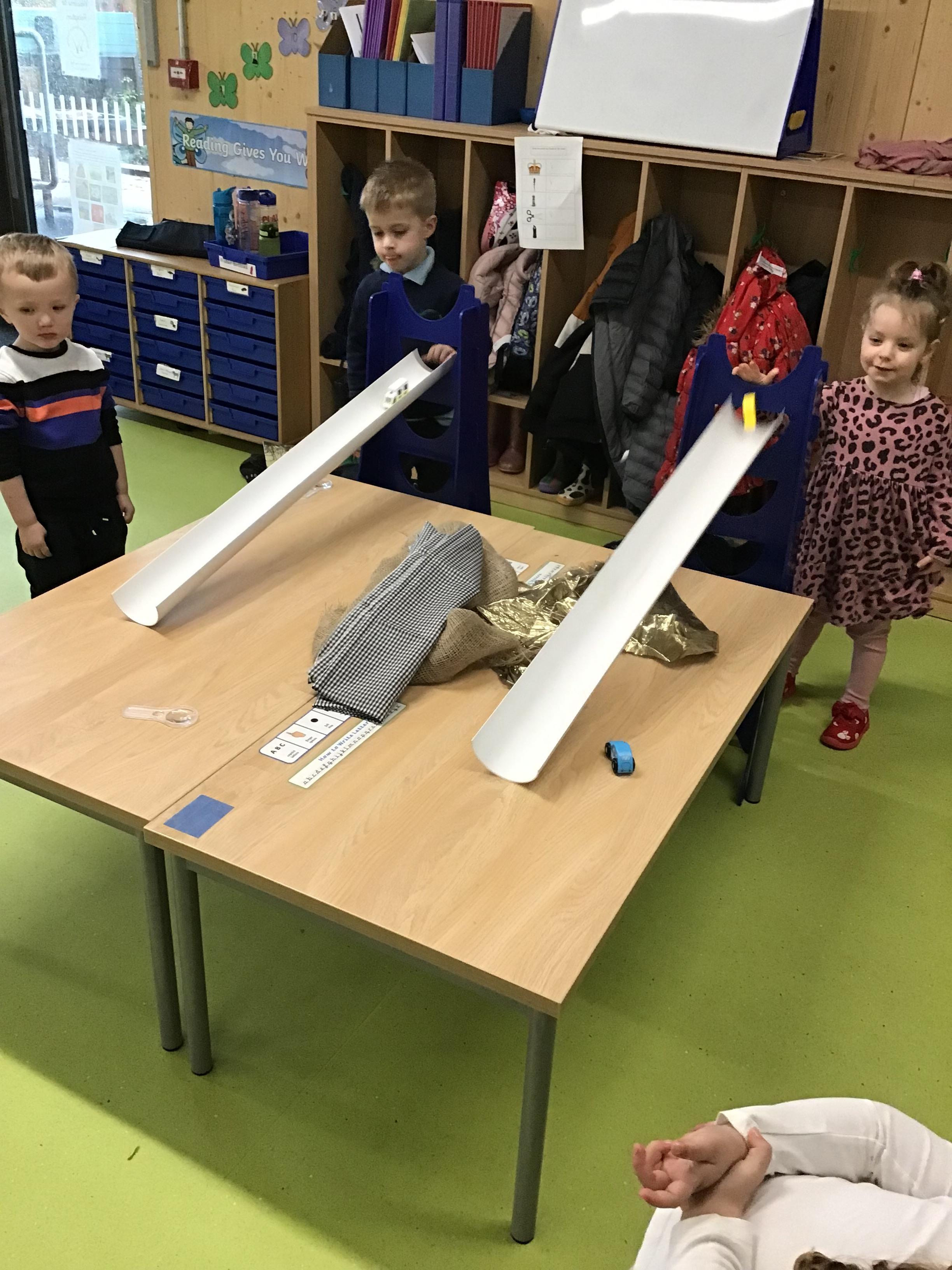 The children have had a fantastic start to the spring term focussing on the theme 'traditional tales.' First the children looked at the key text, 'Goldilocks and the Three Bears.' The children increased their confidence retelling a story, joining in with repeated parts of a story and hot seating the different characters. In continuous provision, the children role played in the cottage, wrote in porridge oats, ordered different objects from the story by size and made their own bear puppets. Outside, the children created ice dream catchers, explored colour in the water and created the bear's cottage using large shape bricks. During the focus activity, the children explored AB patterns. They were able to create their own patterns, continue a pre made pattern and spot errors in an AB pattern.