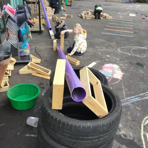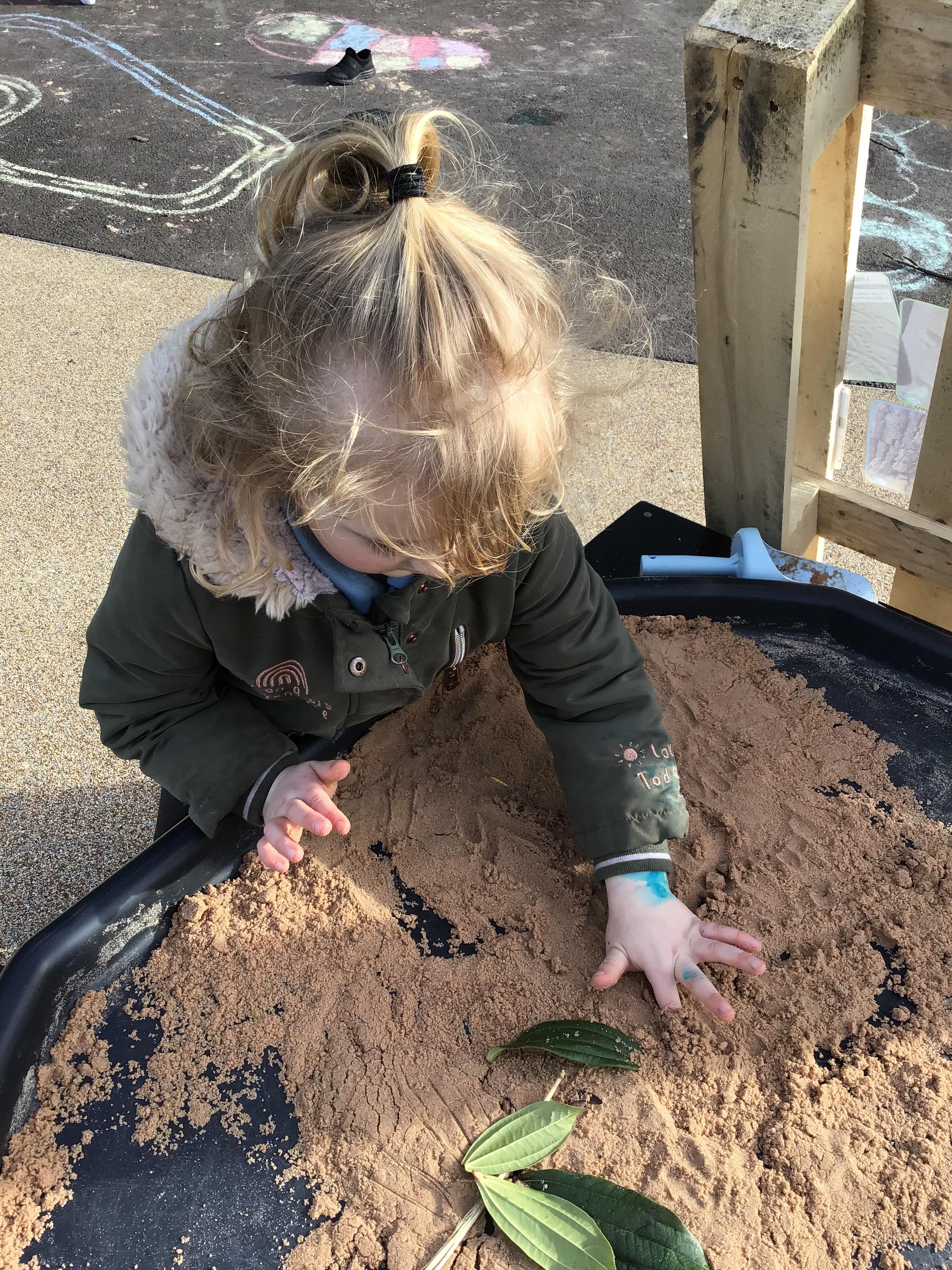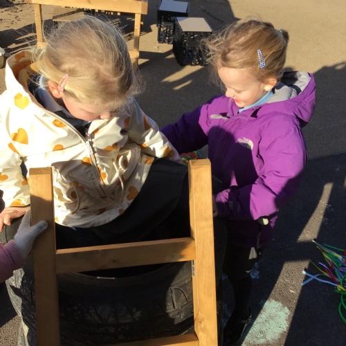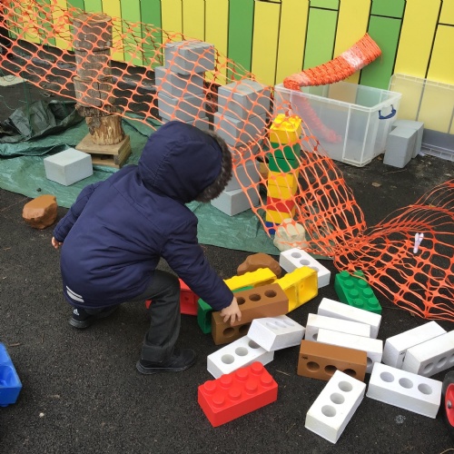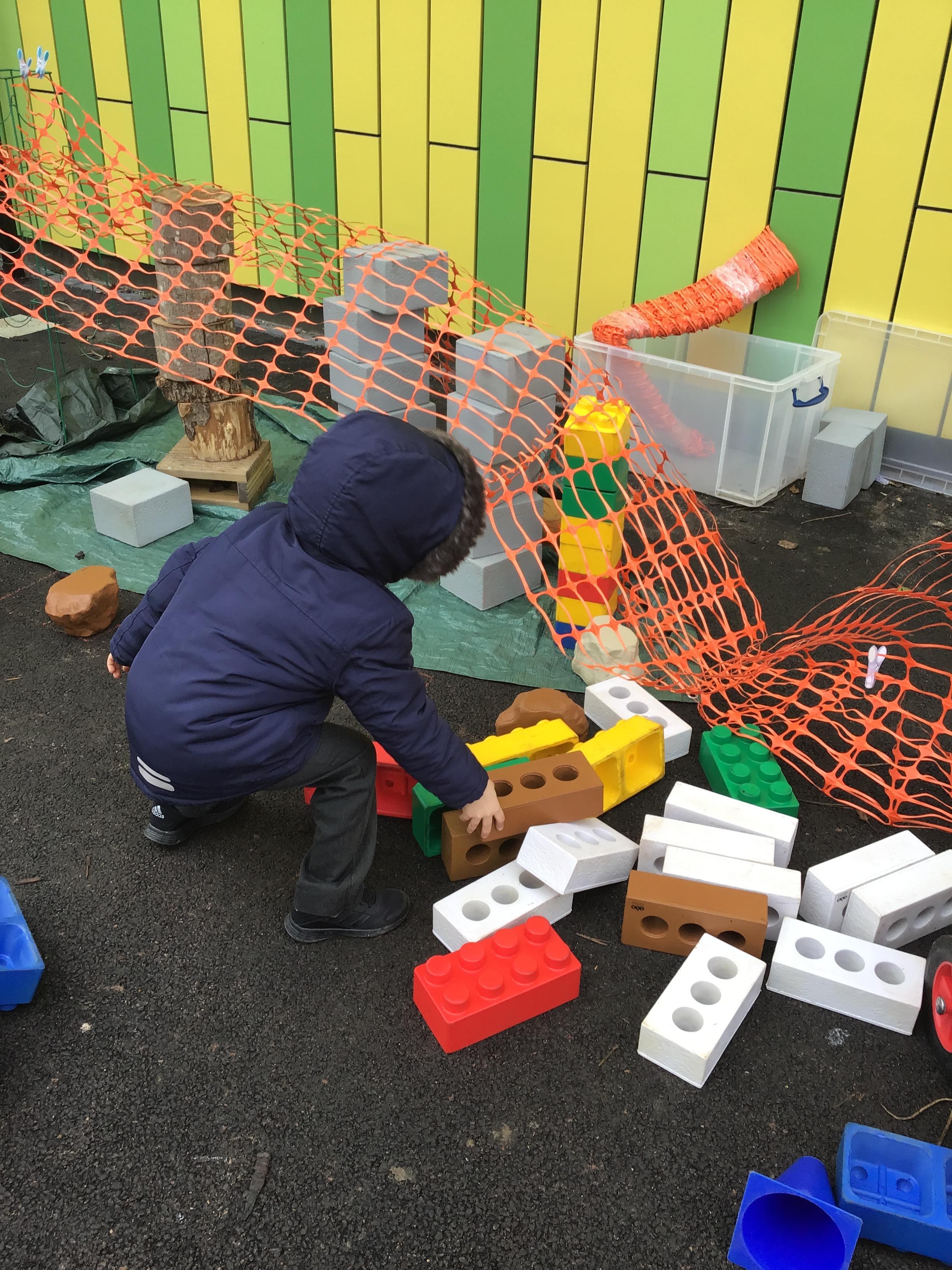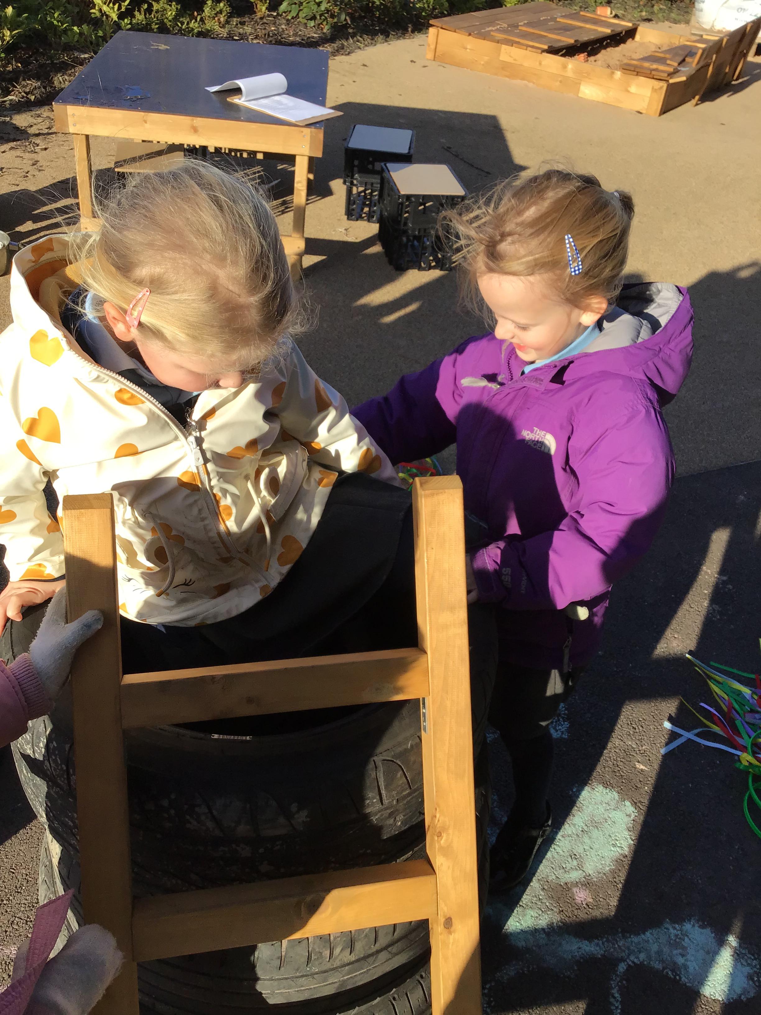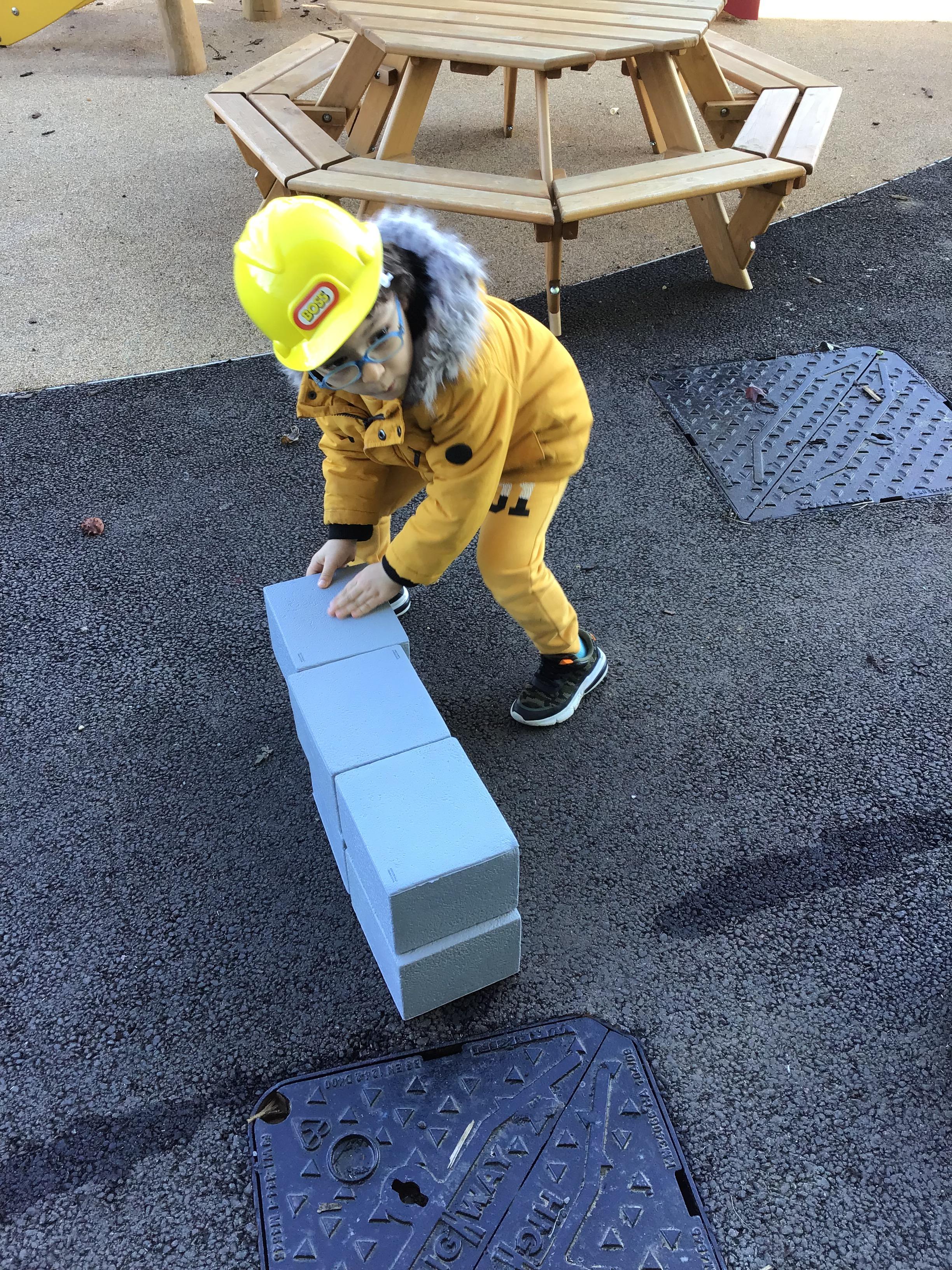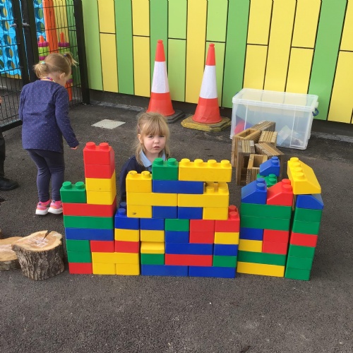 It has seen the start of our garden development which has been on the cards for a while. We are very luck to have had donations of materials from Mr Stockley and Durkan builders which has helped to enhance our outdoor area. The children have loved to explore the tyres, pipes and bricks creating car ramps, building houses and using them as large obstacle courses. The children have loved playing in the sand pit and are enjoying exploring all the new sand toys that they have found.