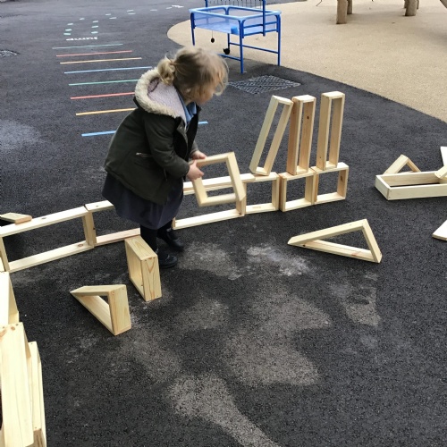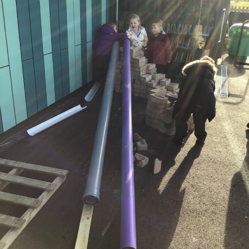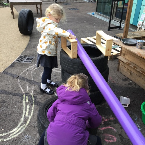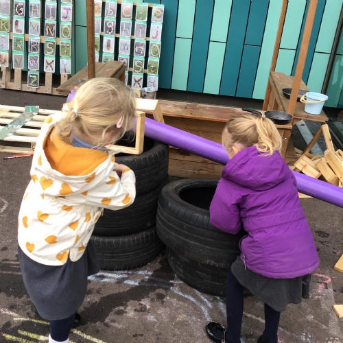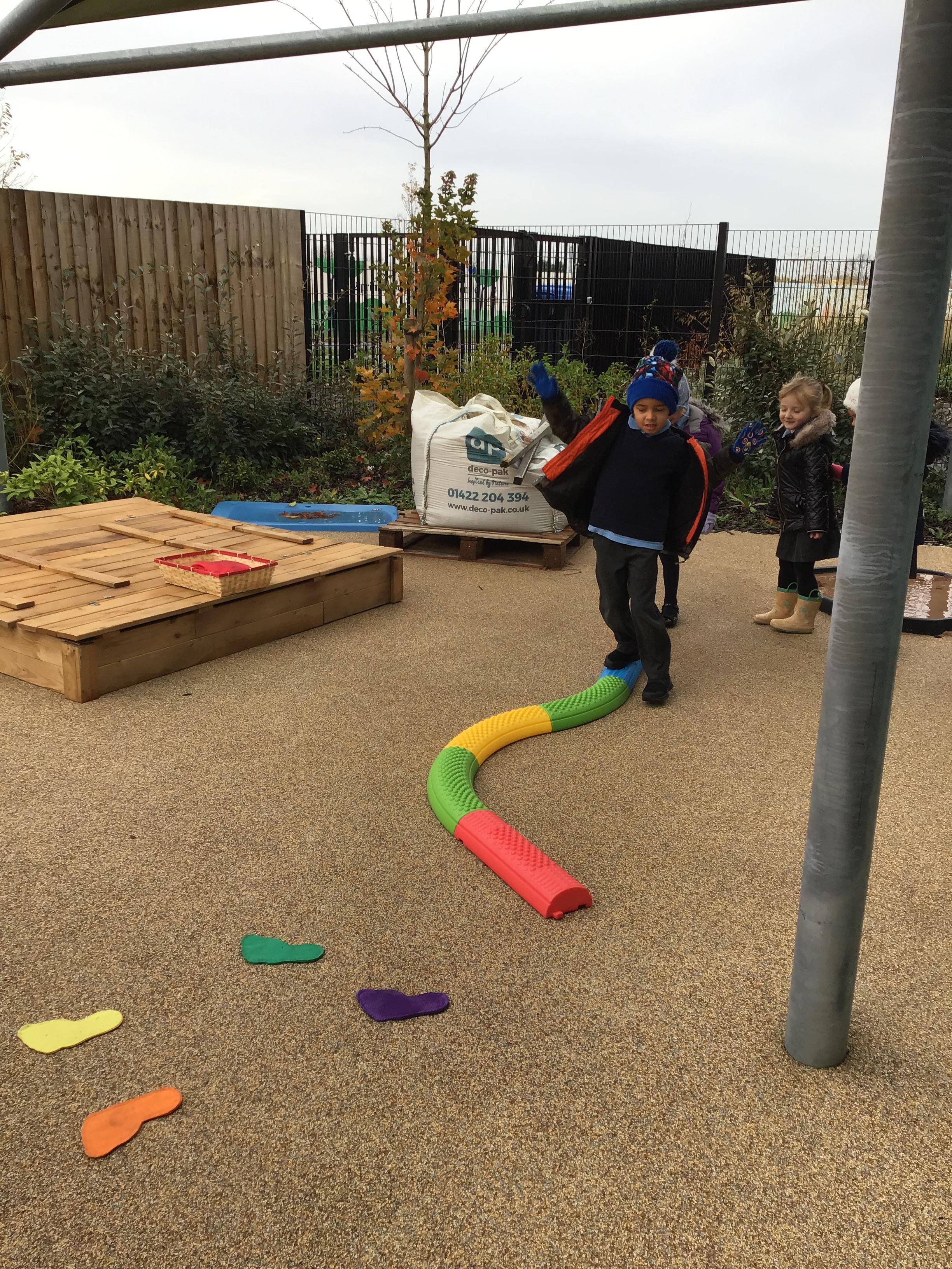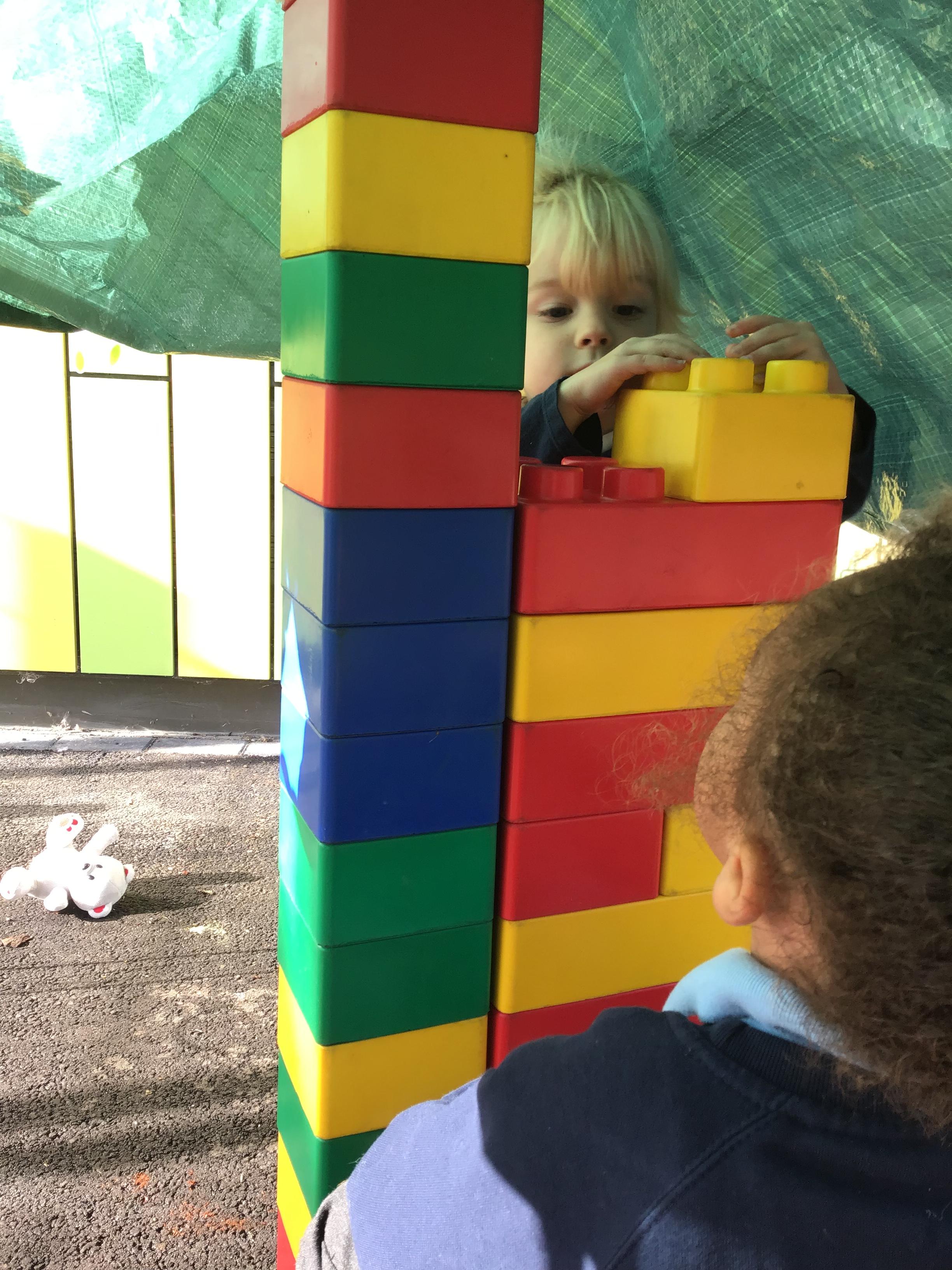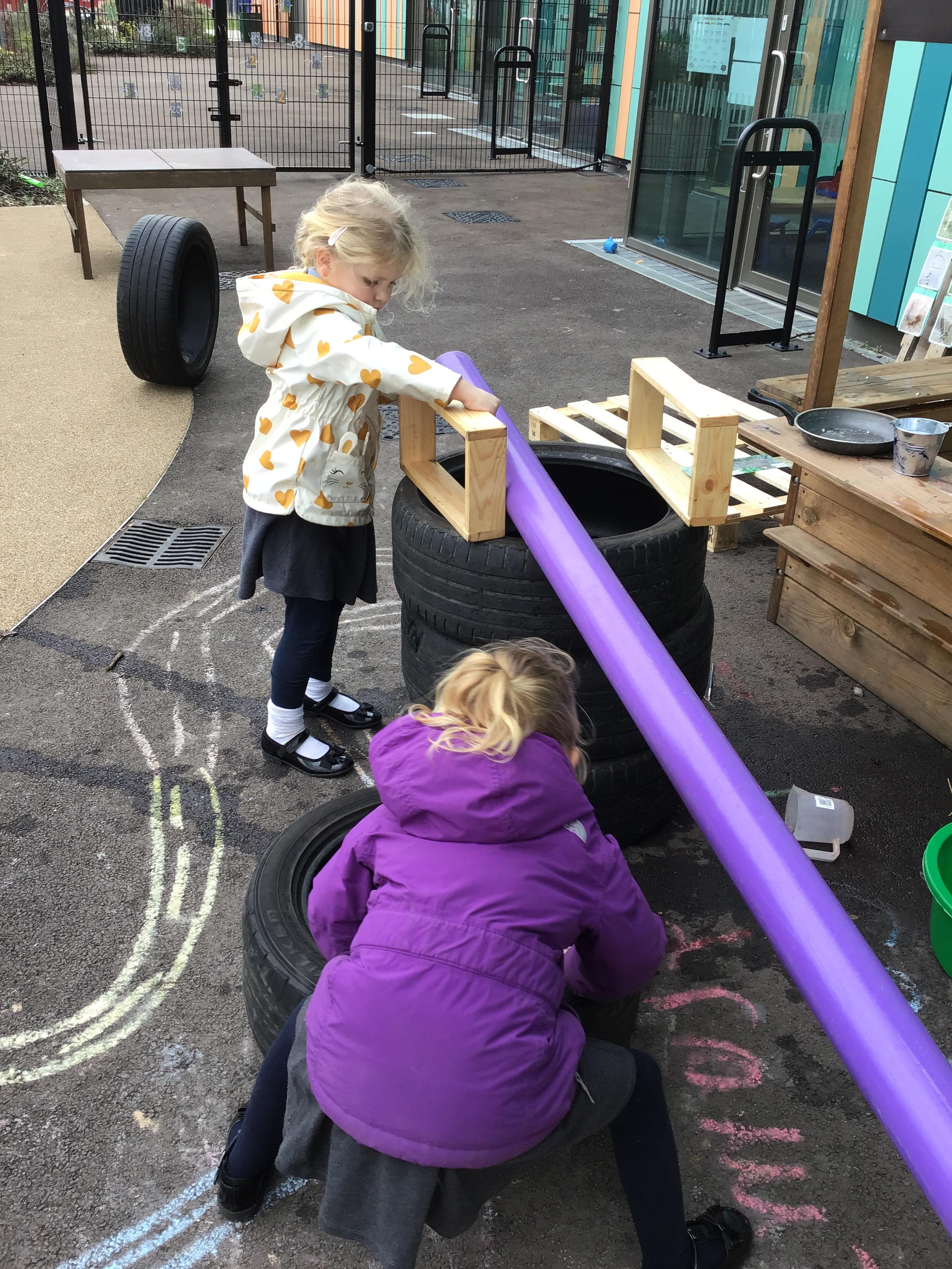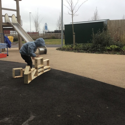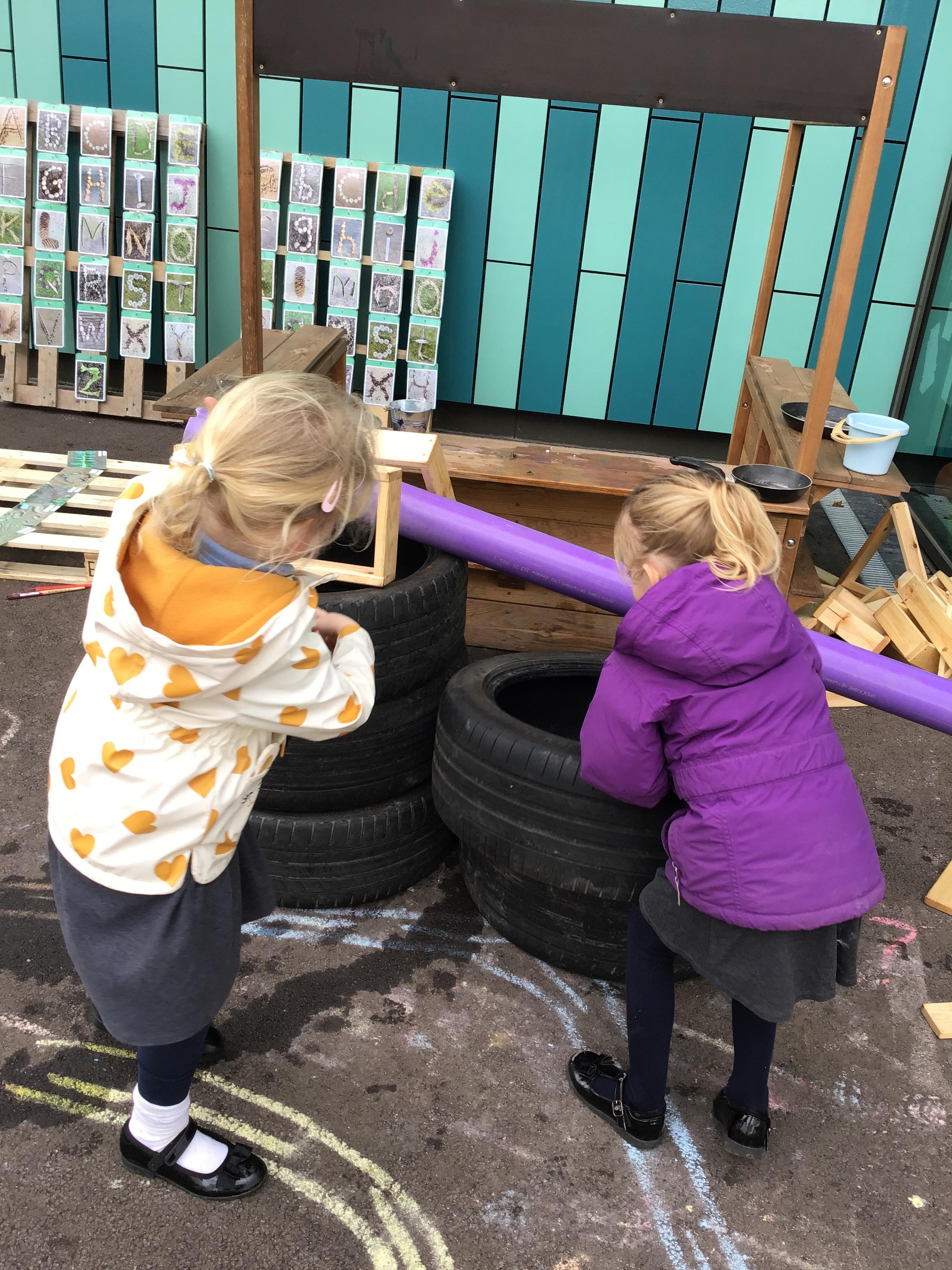 It has seen the start of our garden development which has been on the cards for a while. We are very luck to have had donations of materials from Mr Stockley and Durkan builders which has helped to enhance our outdoor area. The children have loved to explore the tyres, pipes and bricks creating car ramps, building houses and using them as large obstacle courses. The children have loved playing in the sand pit and are enjoying exploring all the new sand toys that they have found.