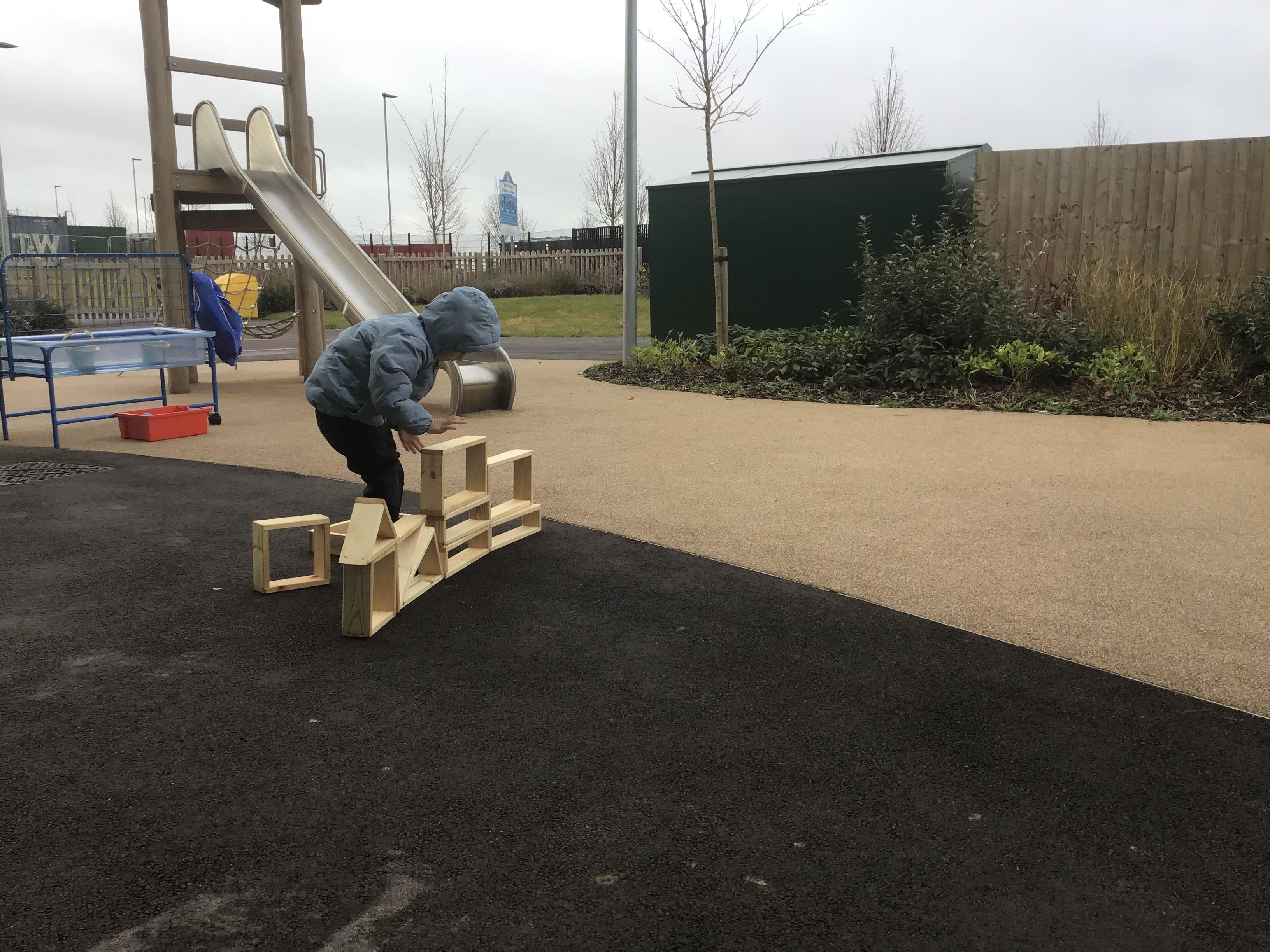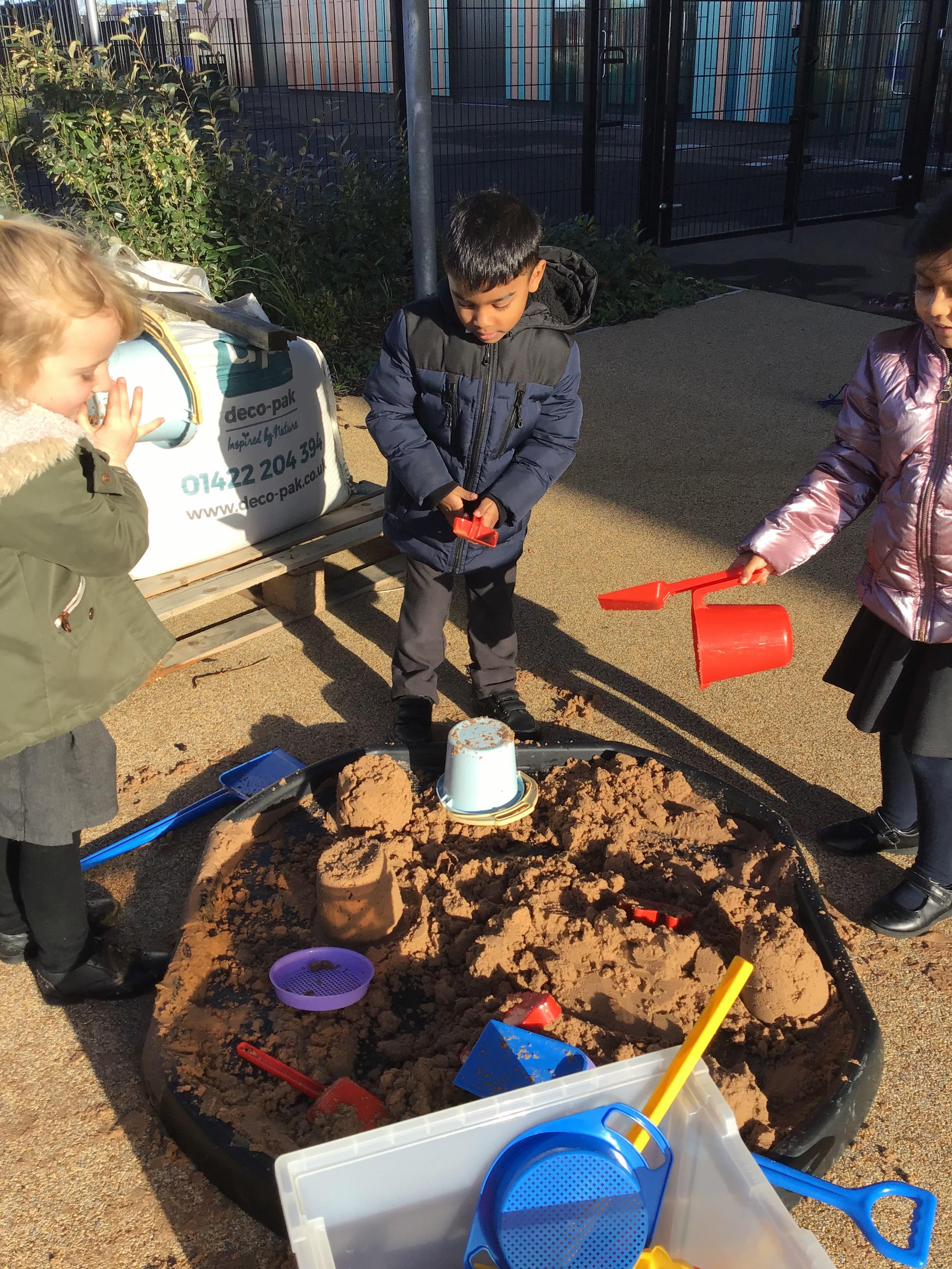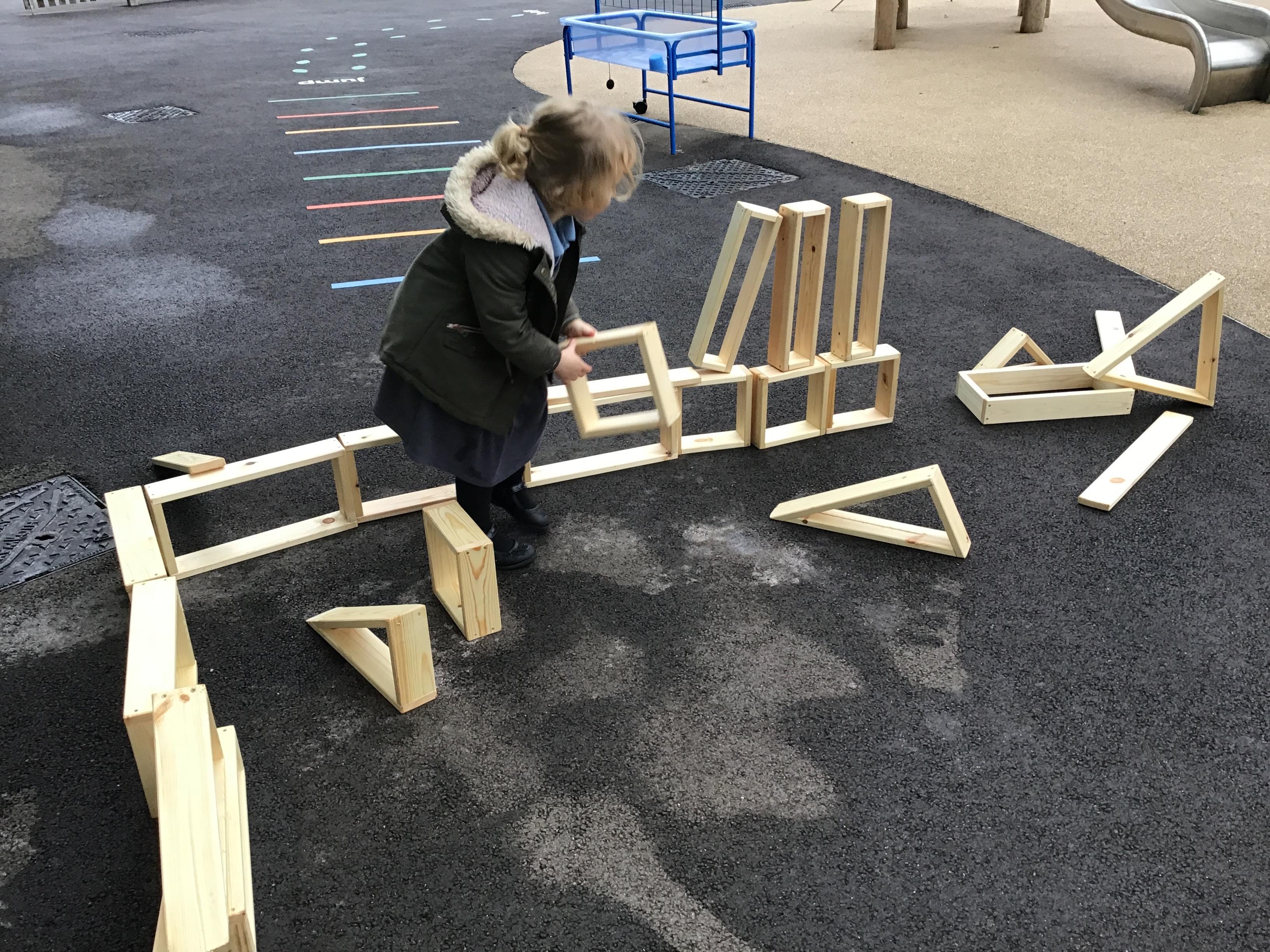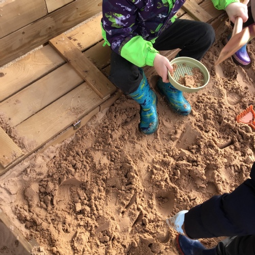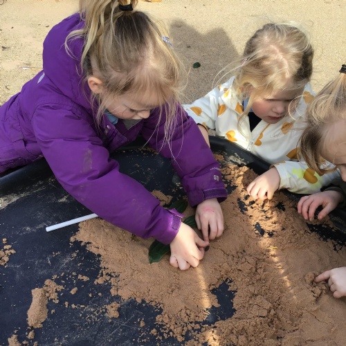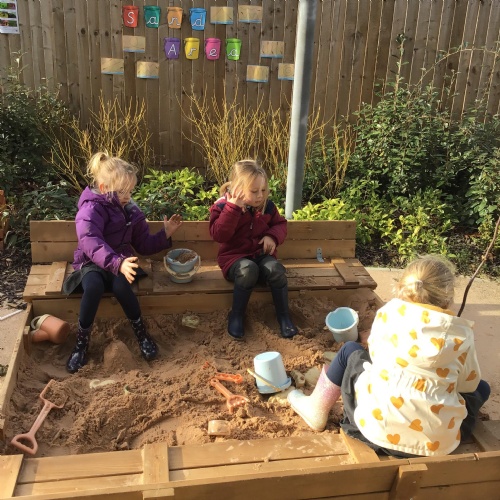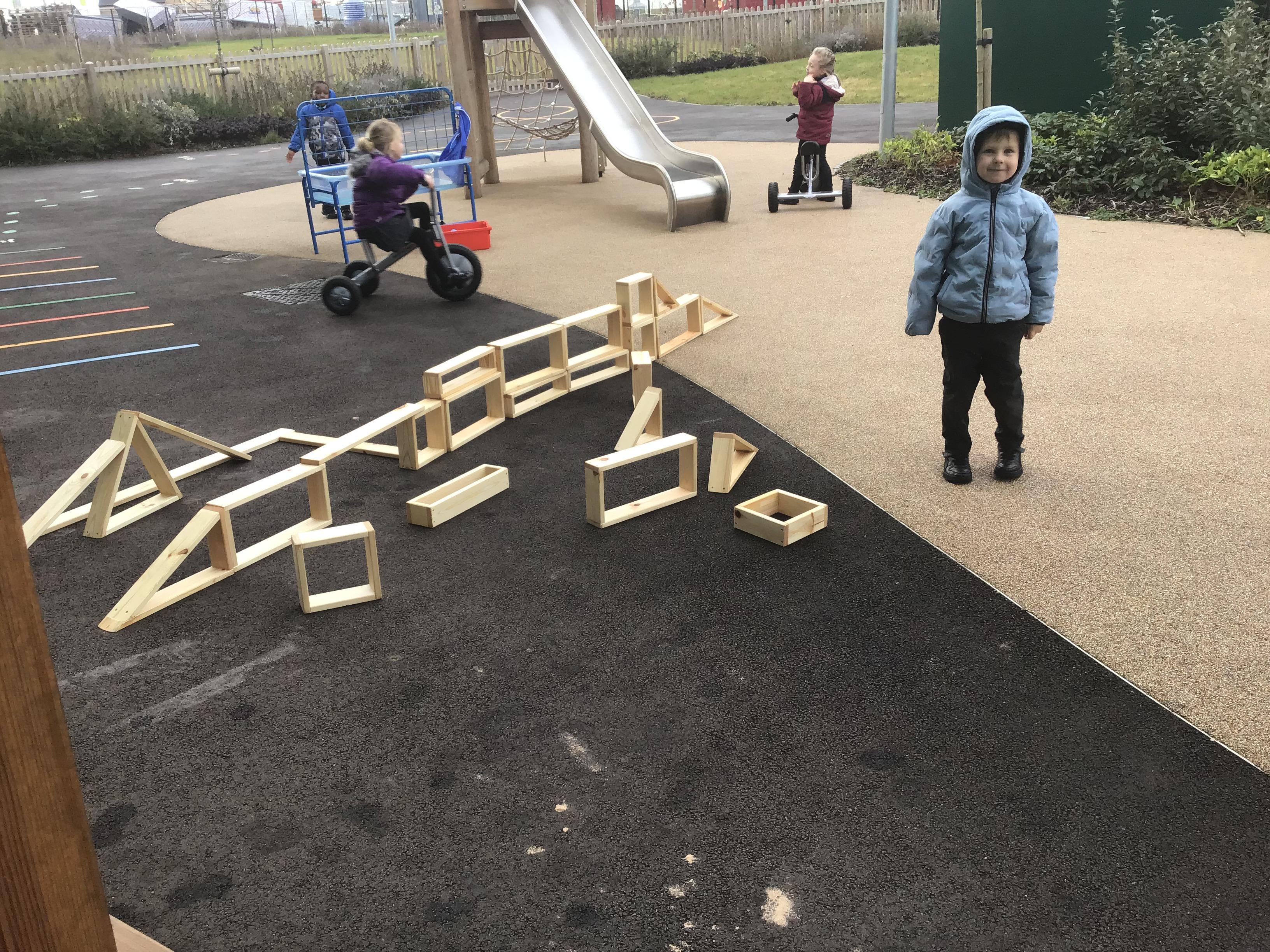 It has seen the start of our garden development which has been on the cards for a while. We are very luck to have had donations of materials from Mr Stockley and Durkan builders which has helped to enhance our outdoor area. The children have loved to explore the tyres, pipes and bricks creating car ramps, building houses and using them as large obstacle courses. The children have loved playing in the sand pit and are enjoying exploring all the new sand toys that they have found.