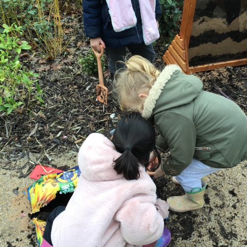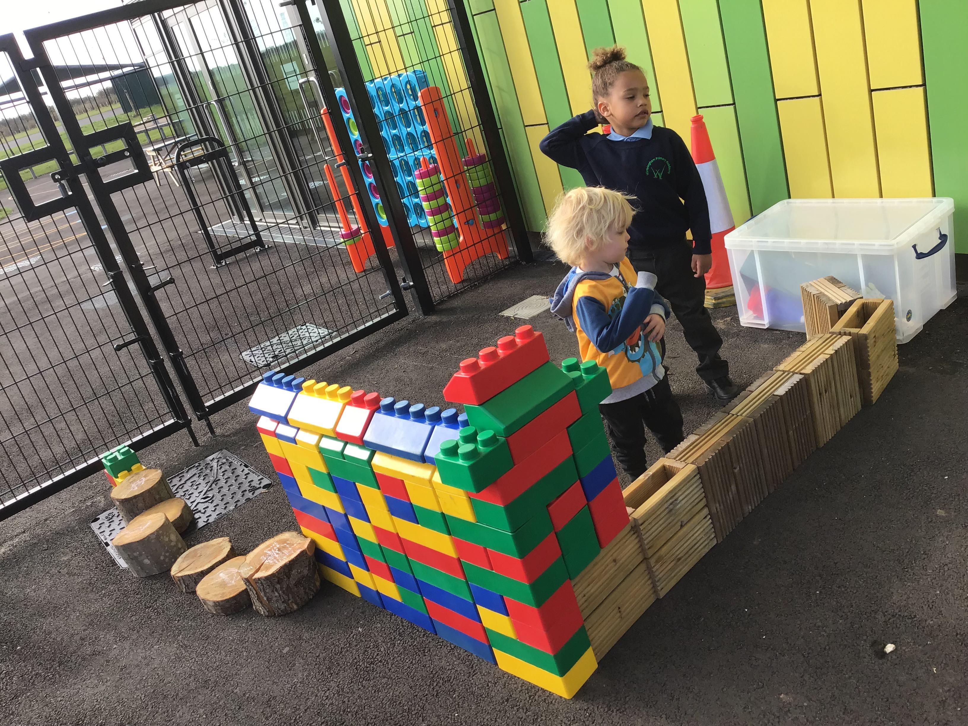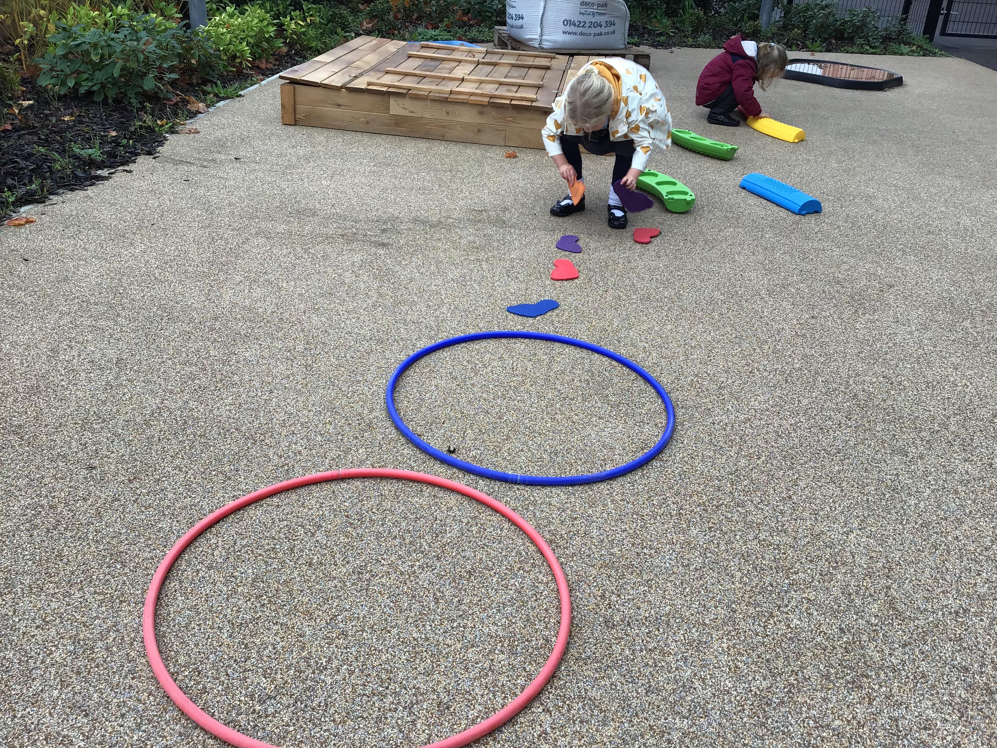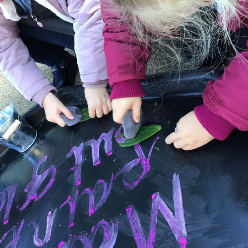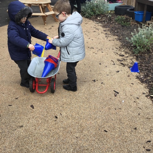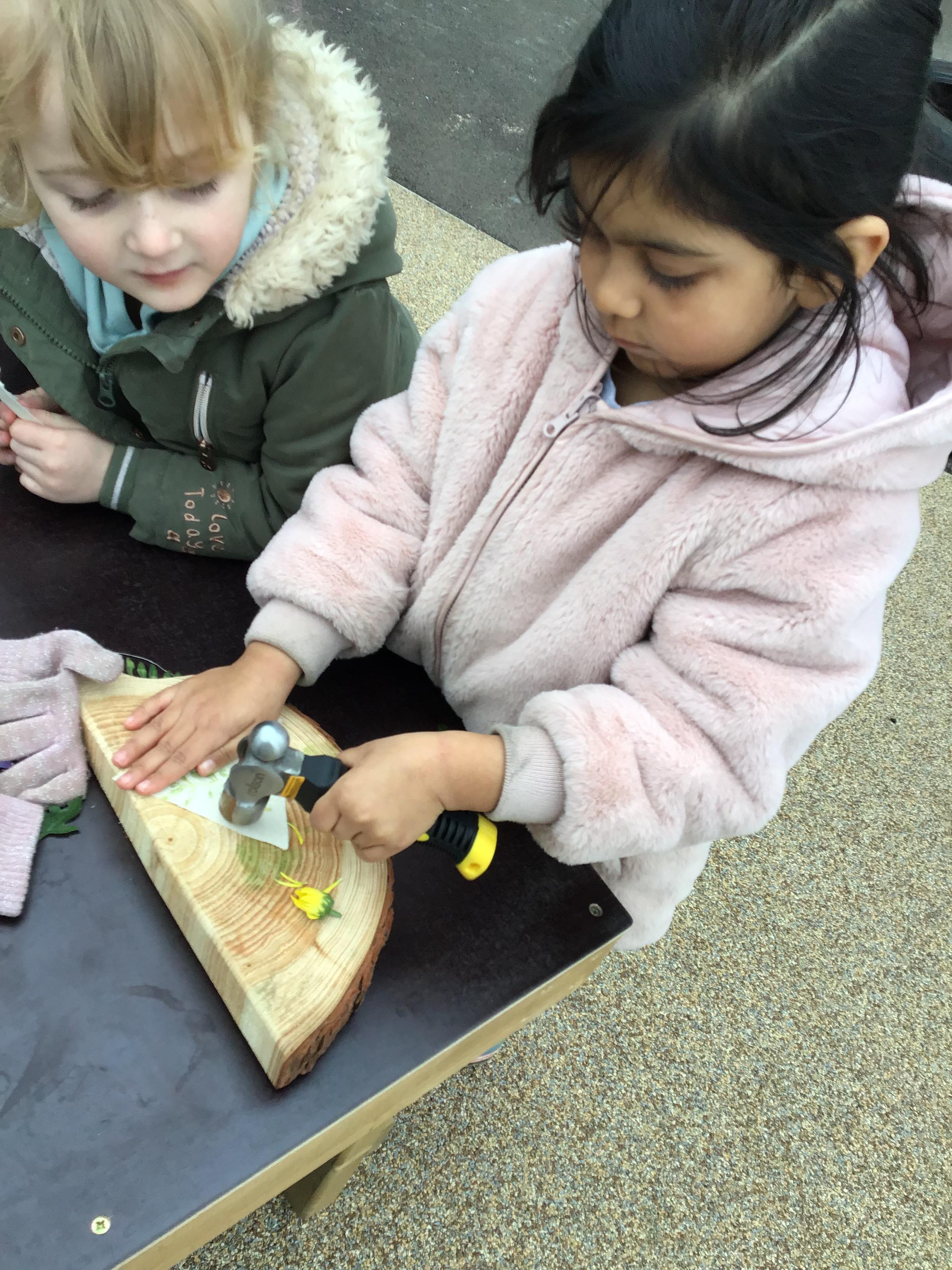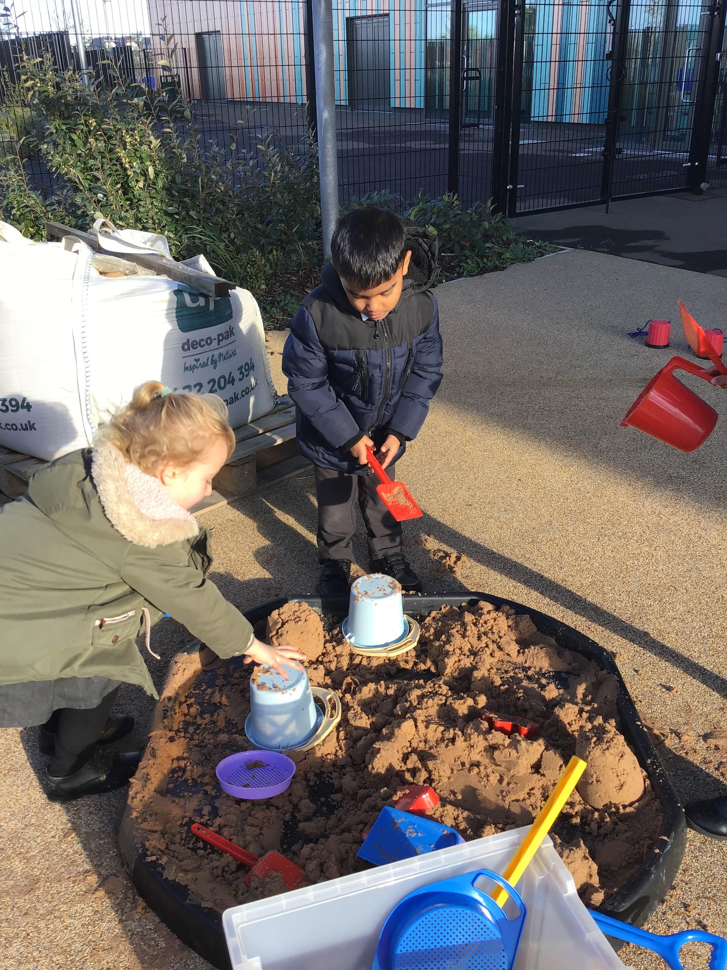 It has seen the start of our garden development which has been on the cards for a while. We are very luck to have had donations of materials from Mr Stockley and Durkan builders which has helped to enhance our outdoor area. The children have loved to explore the tyres, pipes and bricks creating car ramps, building houses and using them as large obstacle courses. The children have loved playing in the sand pit and are enjoying exploring all the new sand toys that they have found.