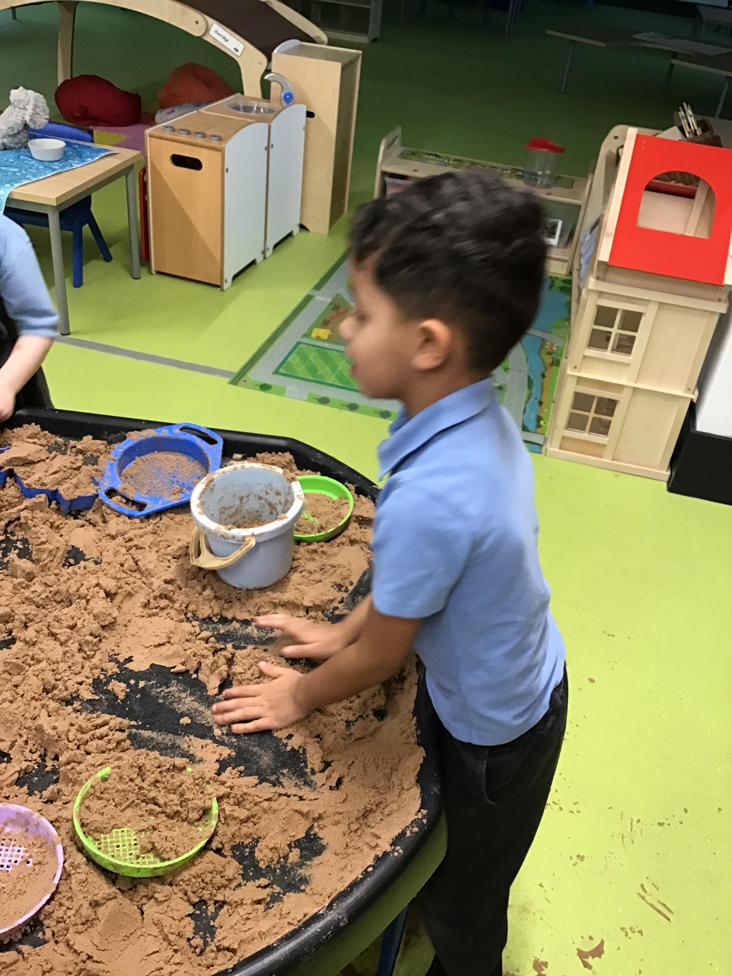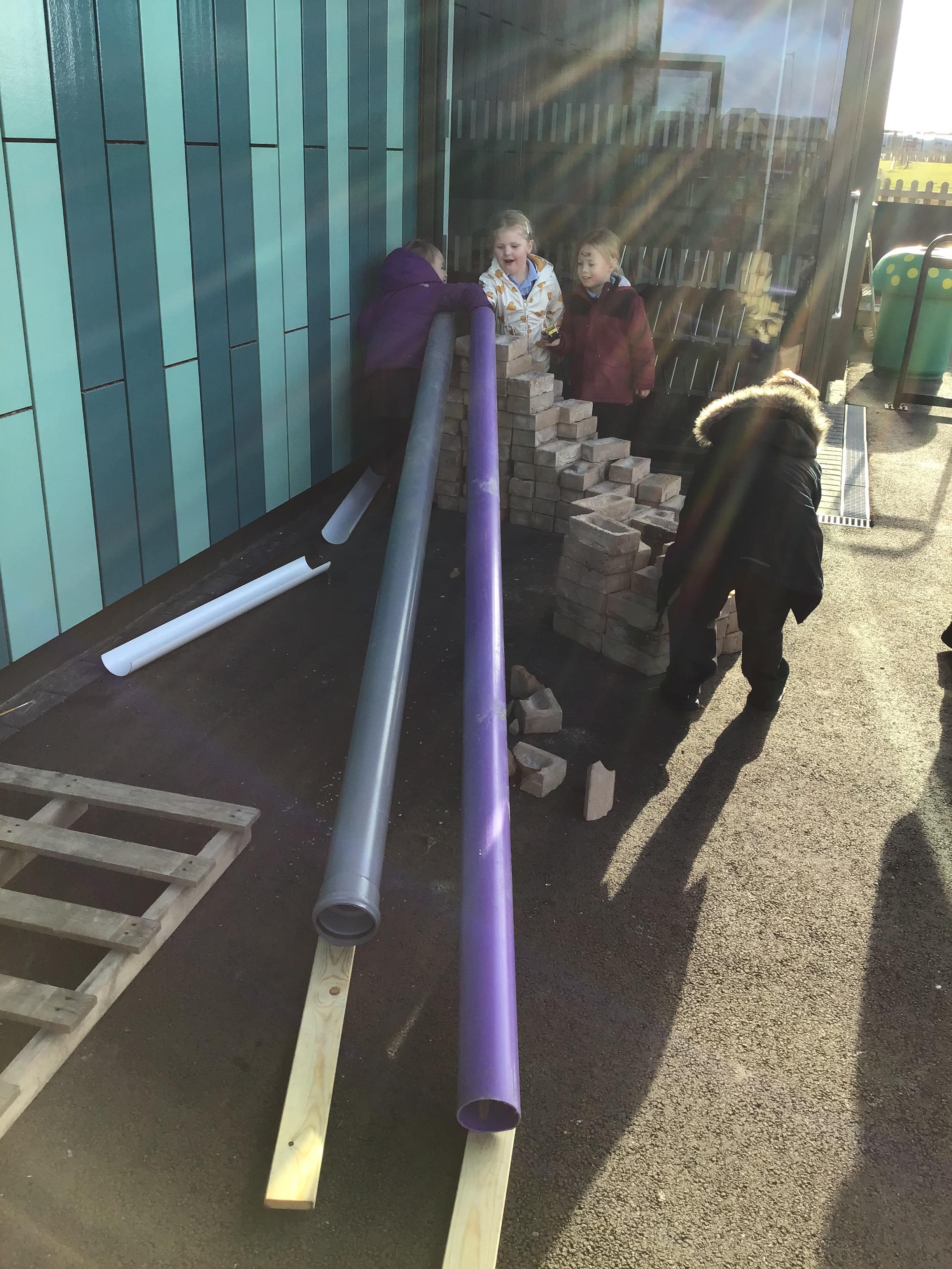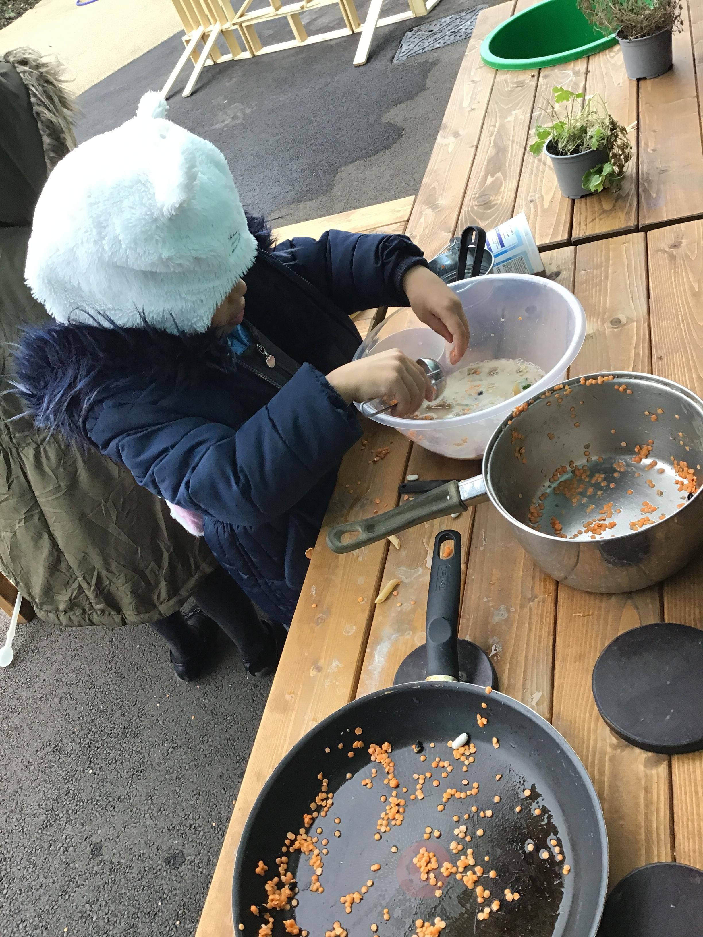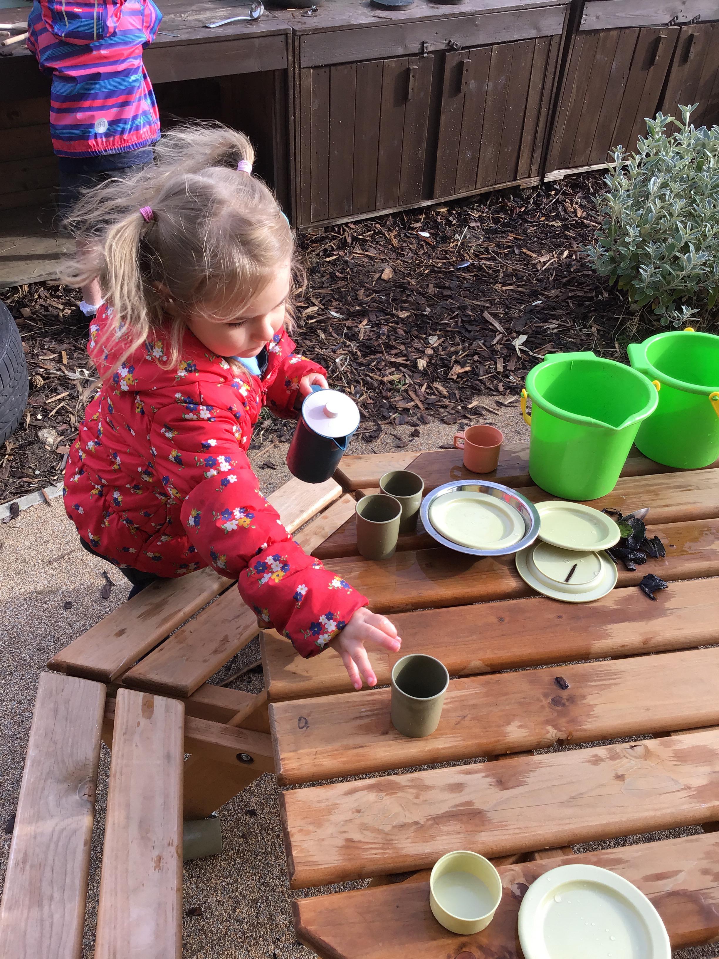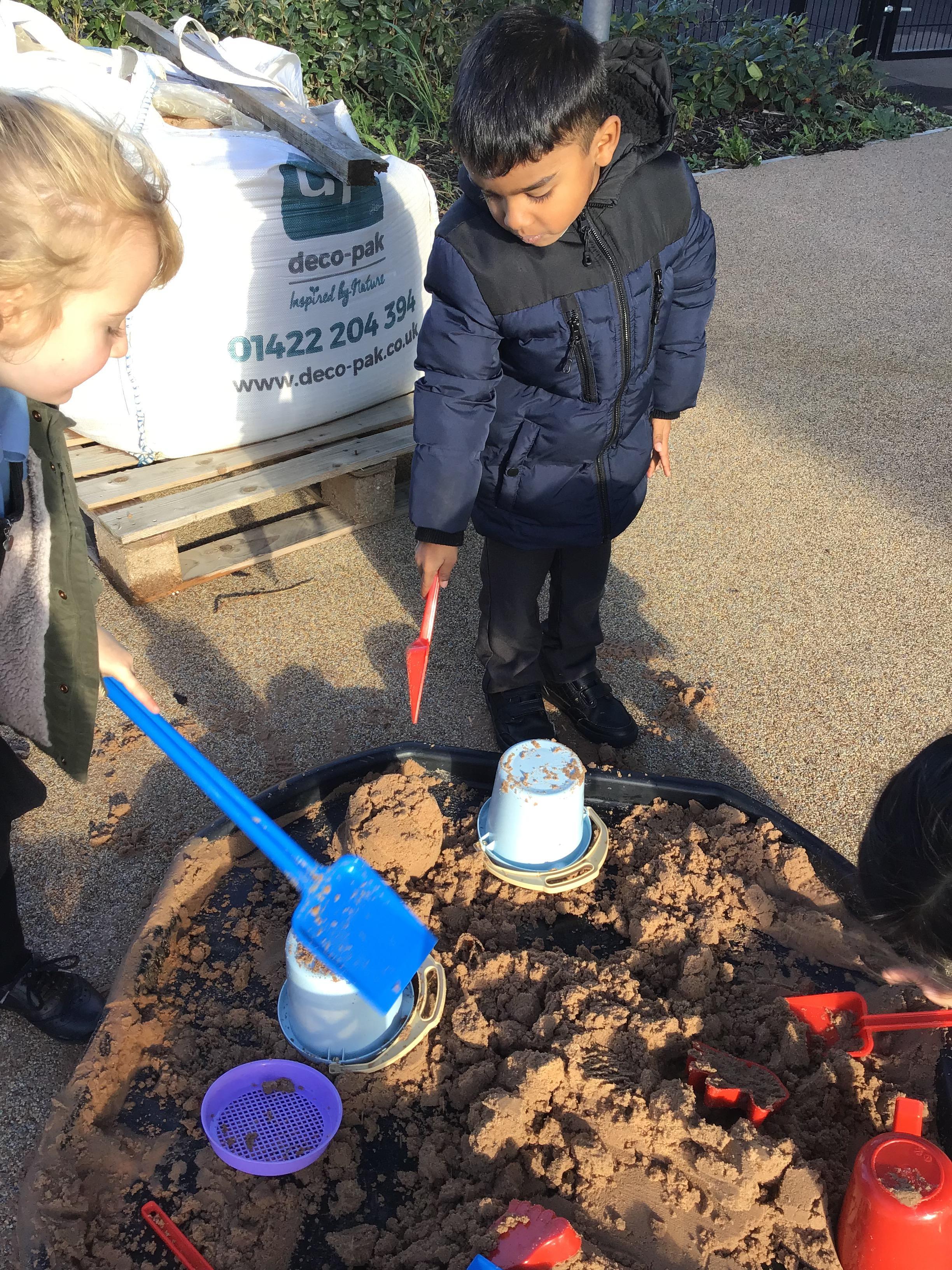 It has seen the start of our garden development which has been on the cards for a while. We are very luck to have had donations of materials from Mr Stockley and Durkan builders which has helped to enhance our outdoor area. The children have loved to explore the tyres, pipes and bricks creating car ramps, building houses and using them as large obstacle courses. The children have loved playing in the sand pit and are enjoying exploring all the new sand toys that they have found.