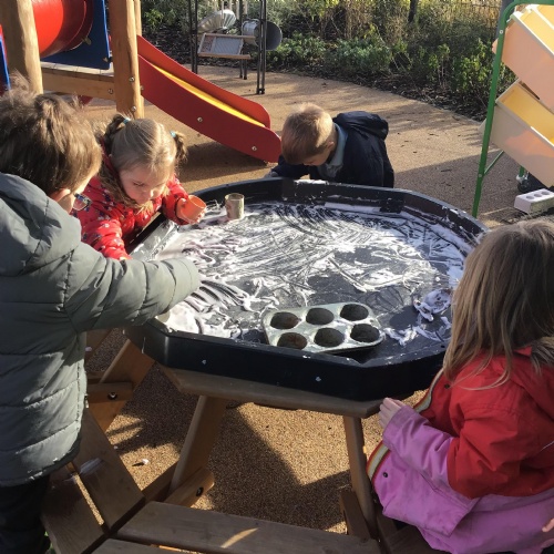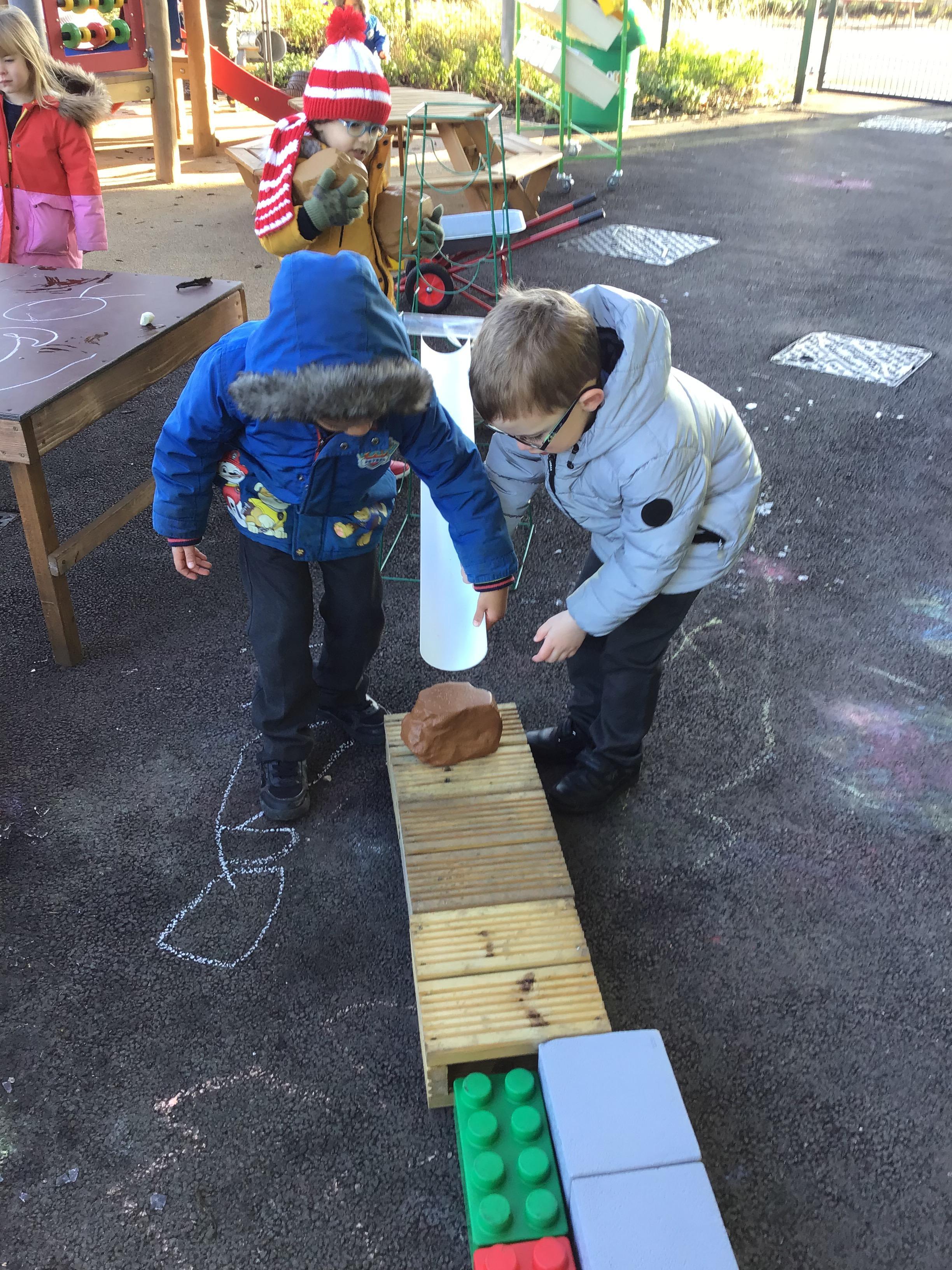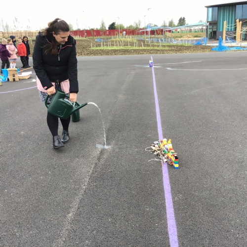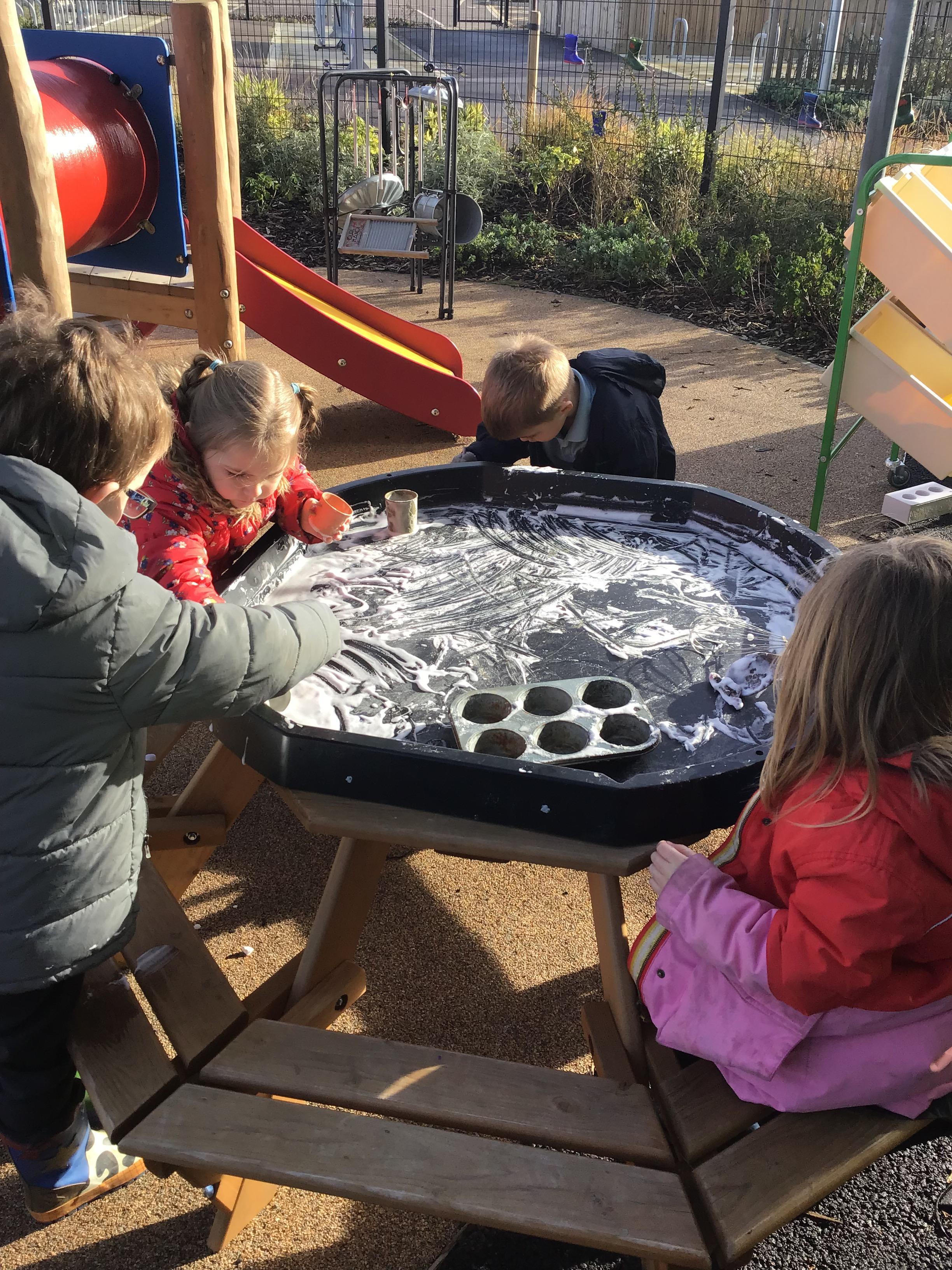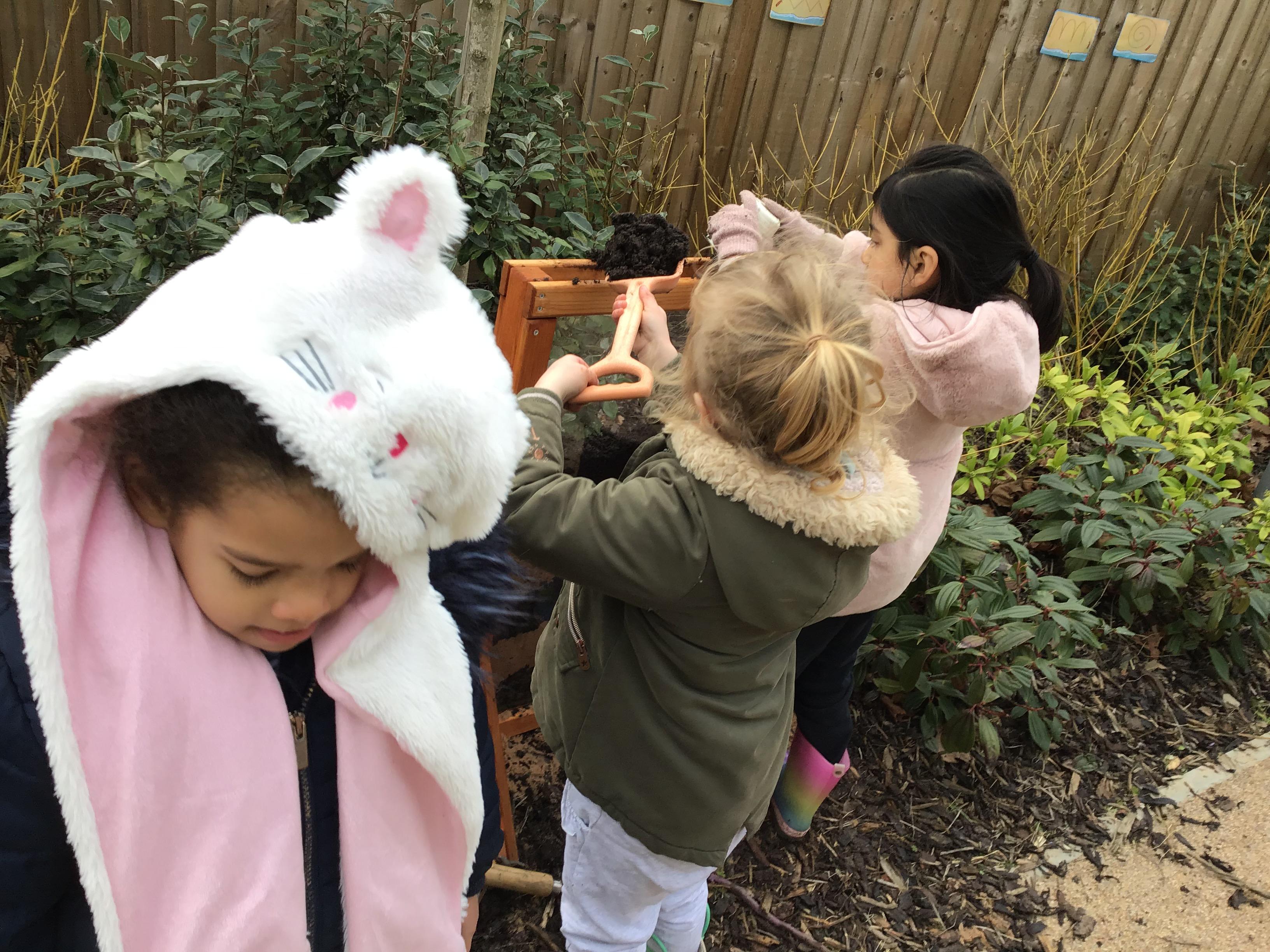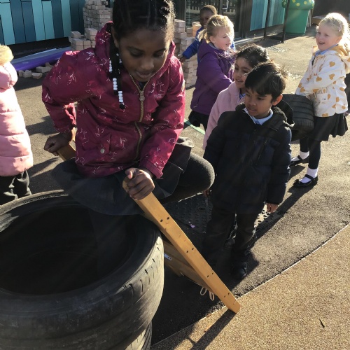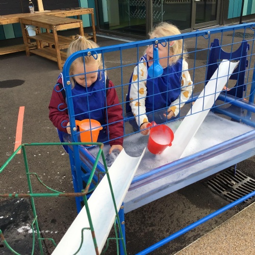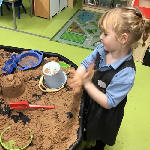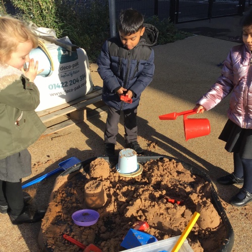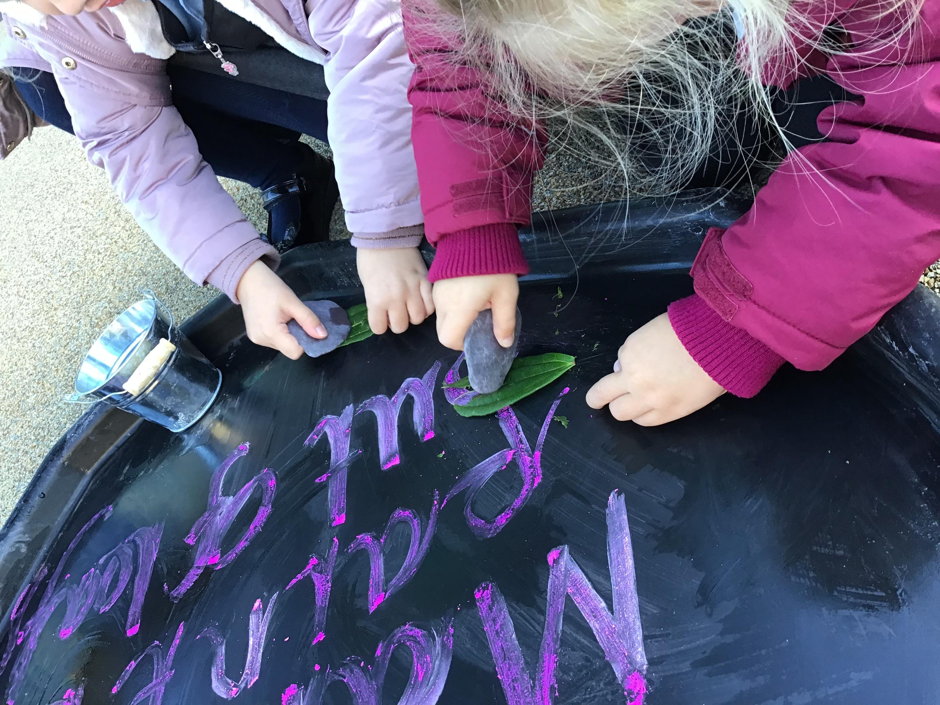 It has seen the start of our garden development which has been on the cards for a while. We are very luck to have had donations of materials from Mr Stockley and Durkan builders which has helped to enhance our outdoor area. The children have loved to explore the tyres, pipes and bricks creating car ramps, building houses and using them as large obstacle courses. The children have loved playing in the sand pit and are enjoying exploring all the new sand toys that they have found.