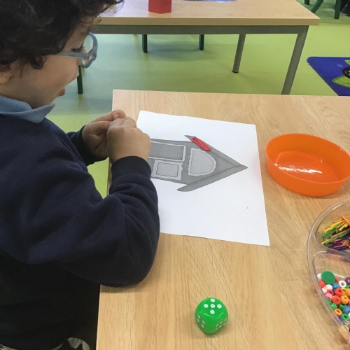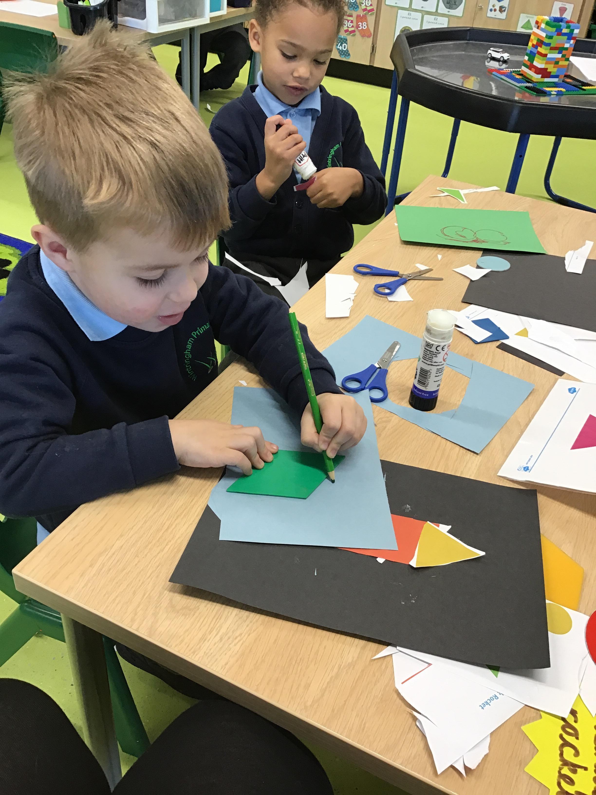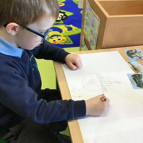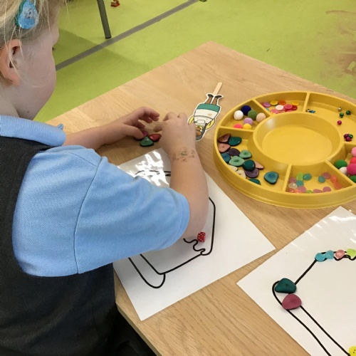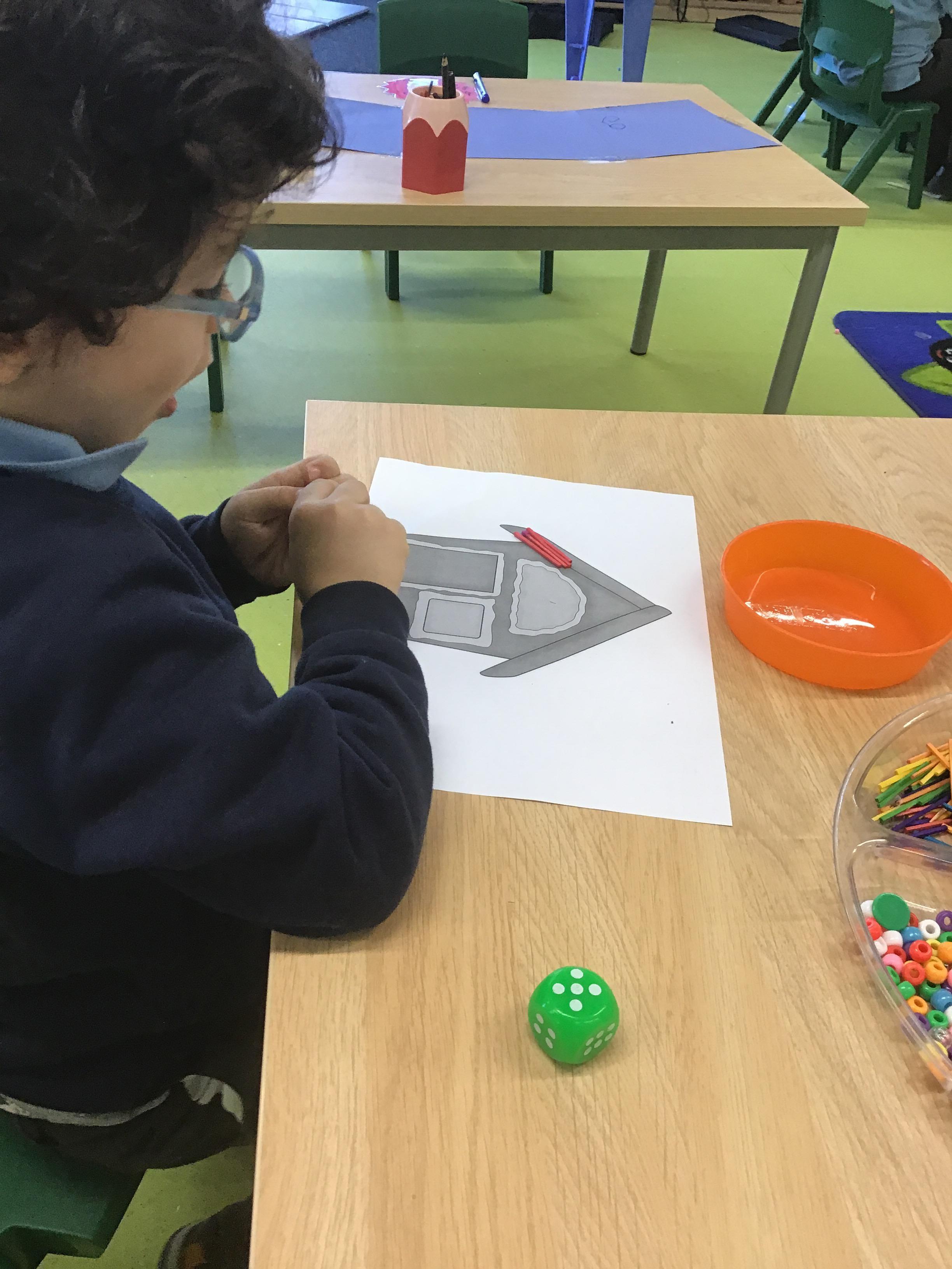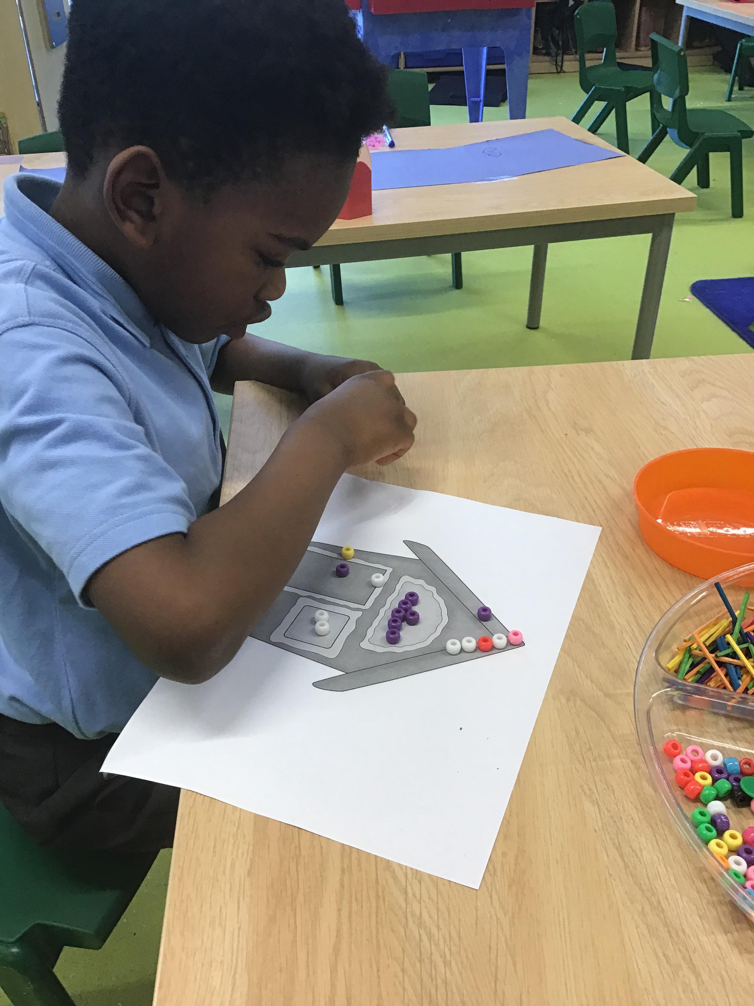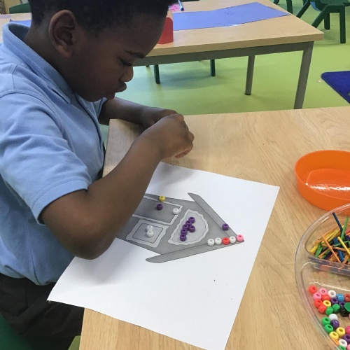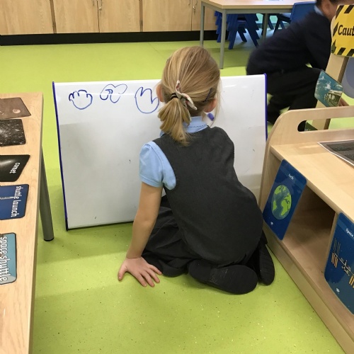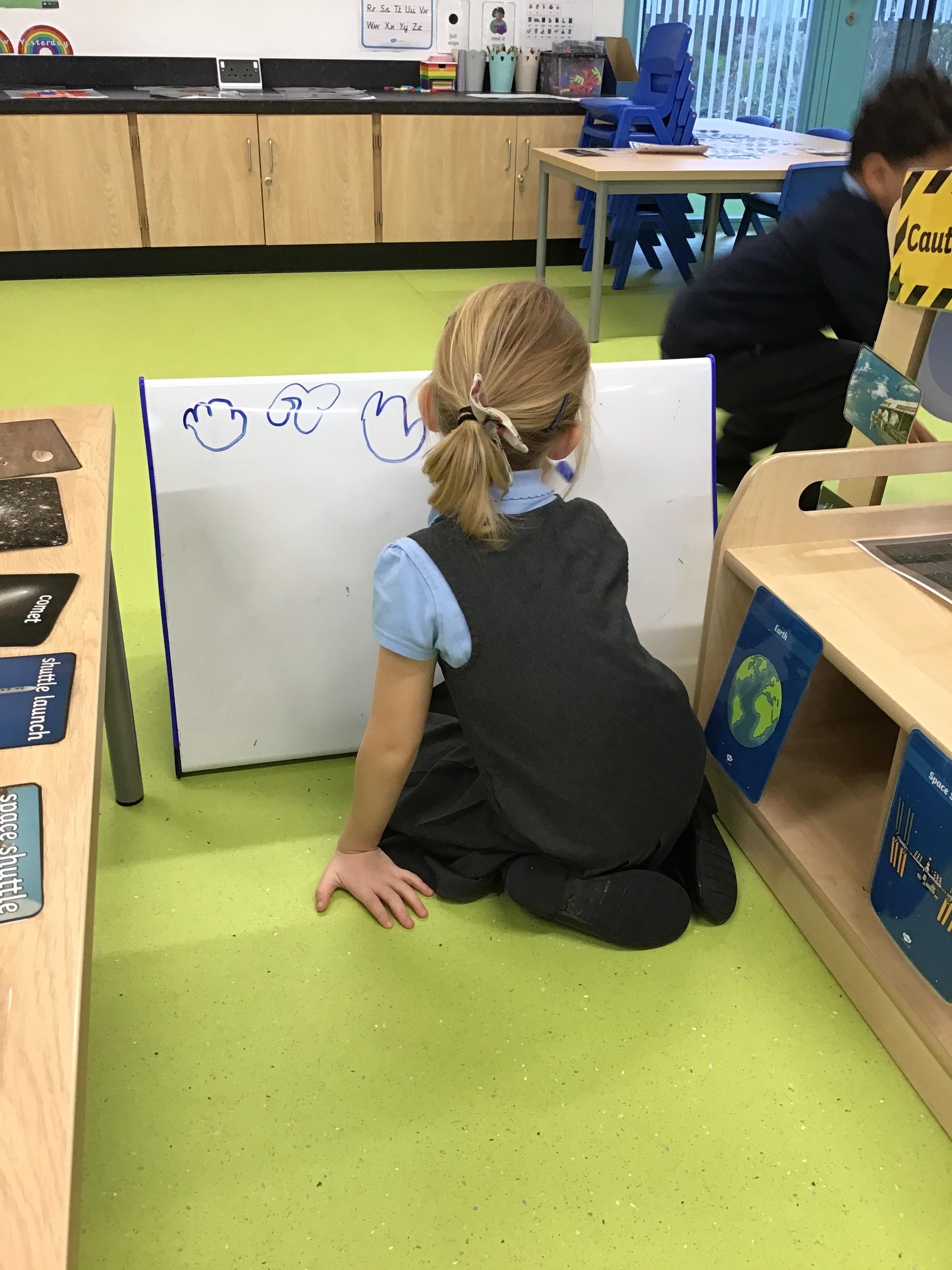 In maths, the children have been learning about the number five, six and seven. The children sang the song, 'Five Little Men in a Flying Saucer,' and then considered how they could place their aliens in the space ship. We then looked at what would happen if we had six aliens and then seven. The children have worked hard on their verbal reasoning skills and could explain how they knew the number was six or seven, based on the arrangements they made on their space ships.