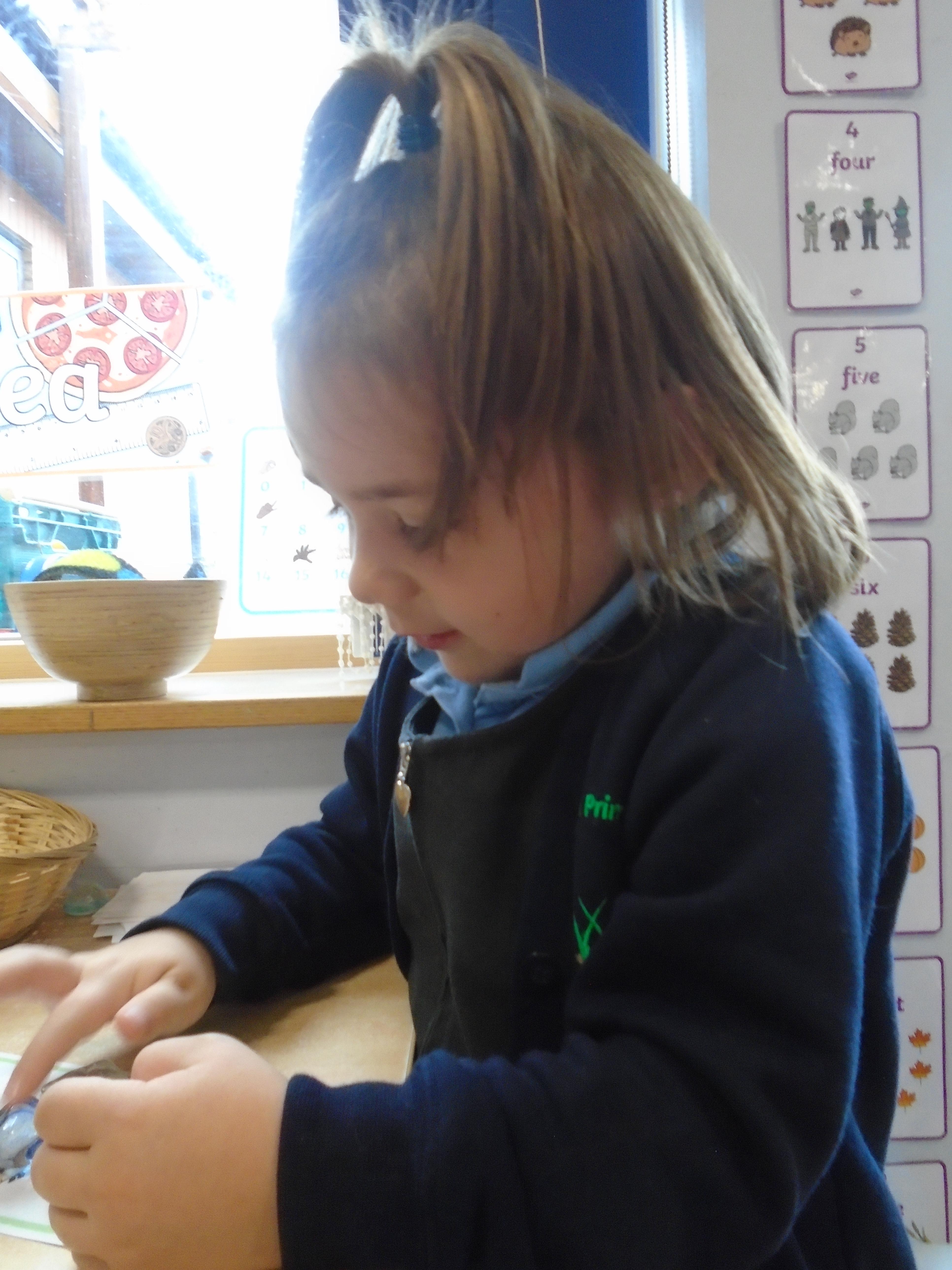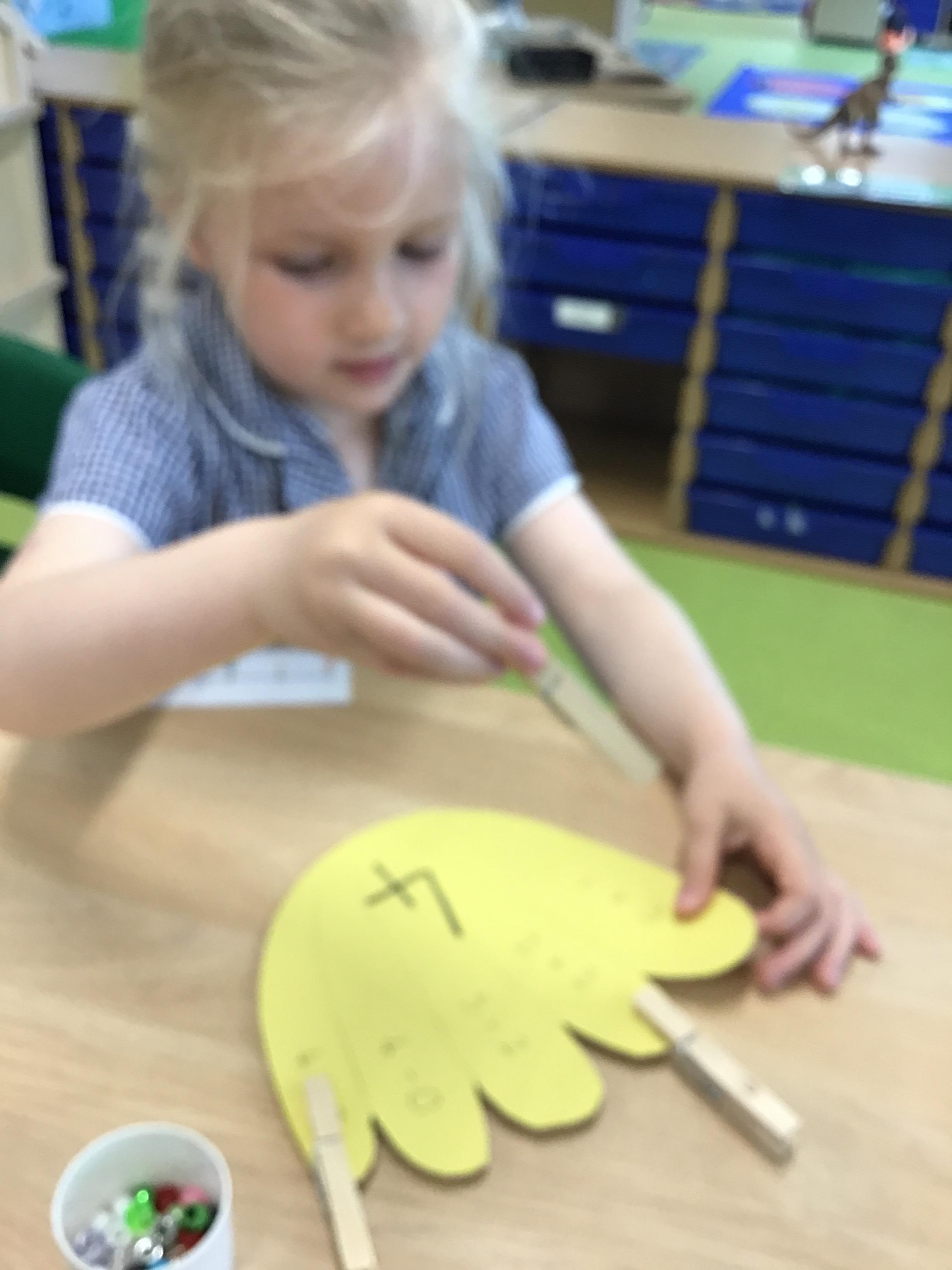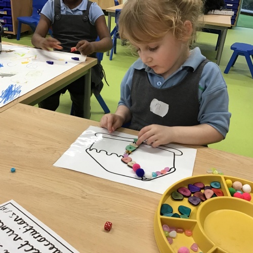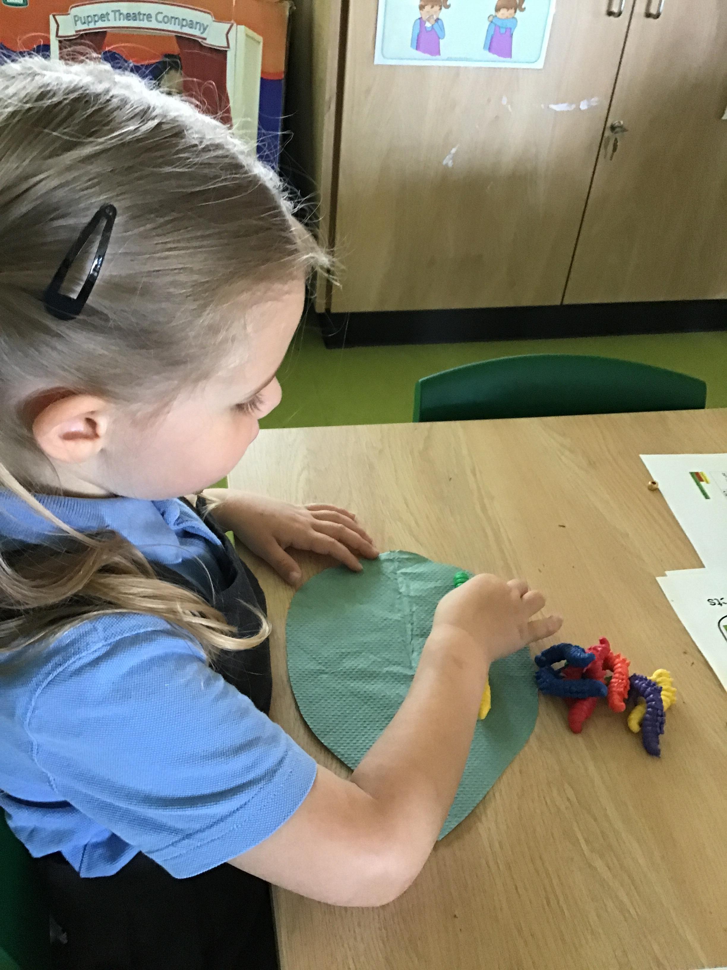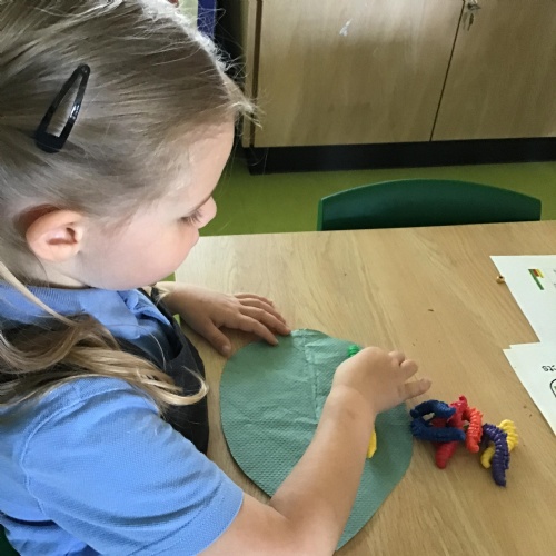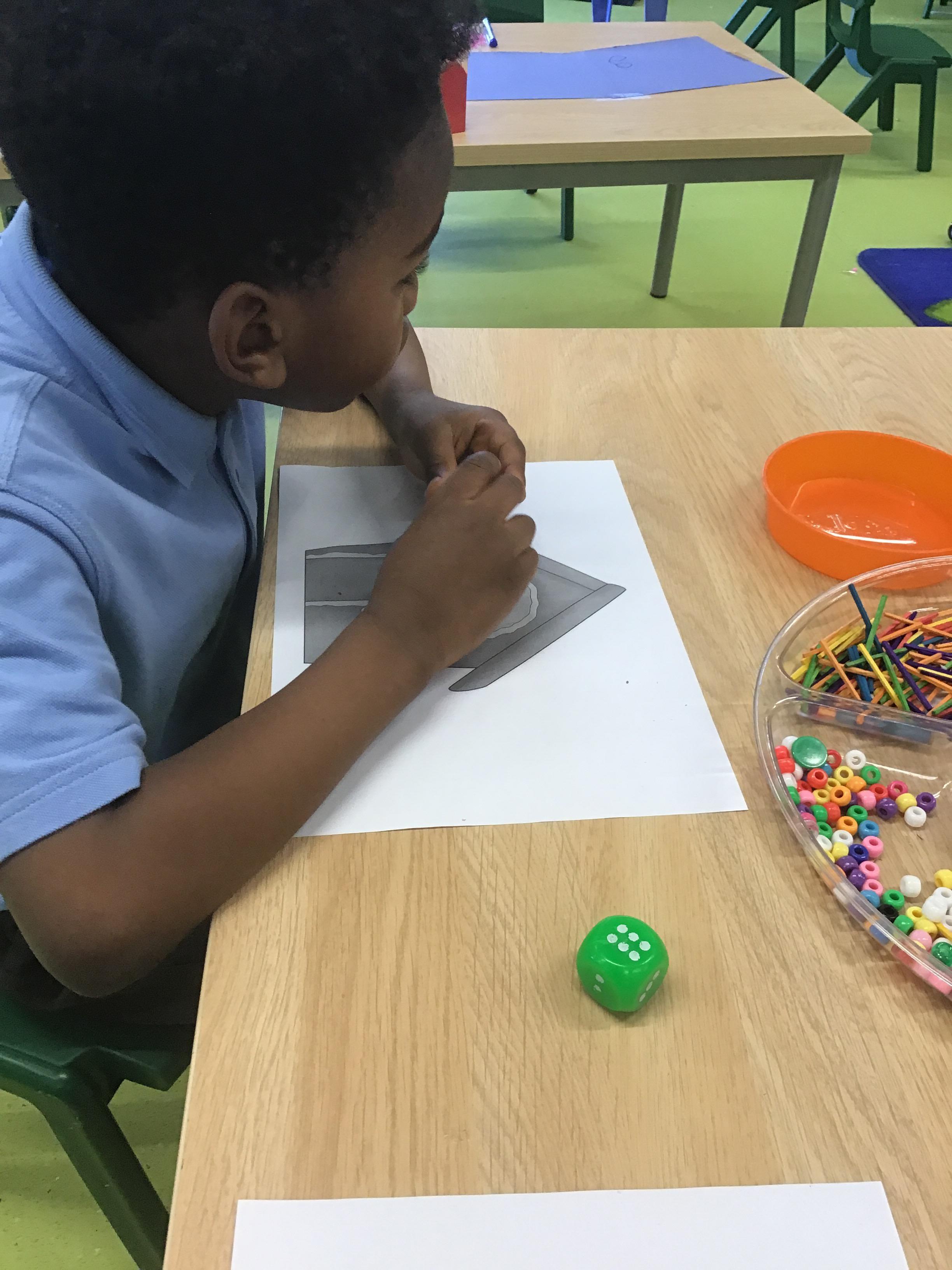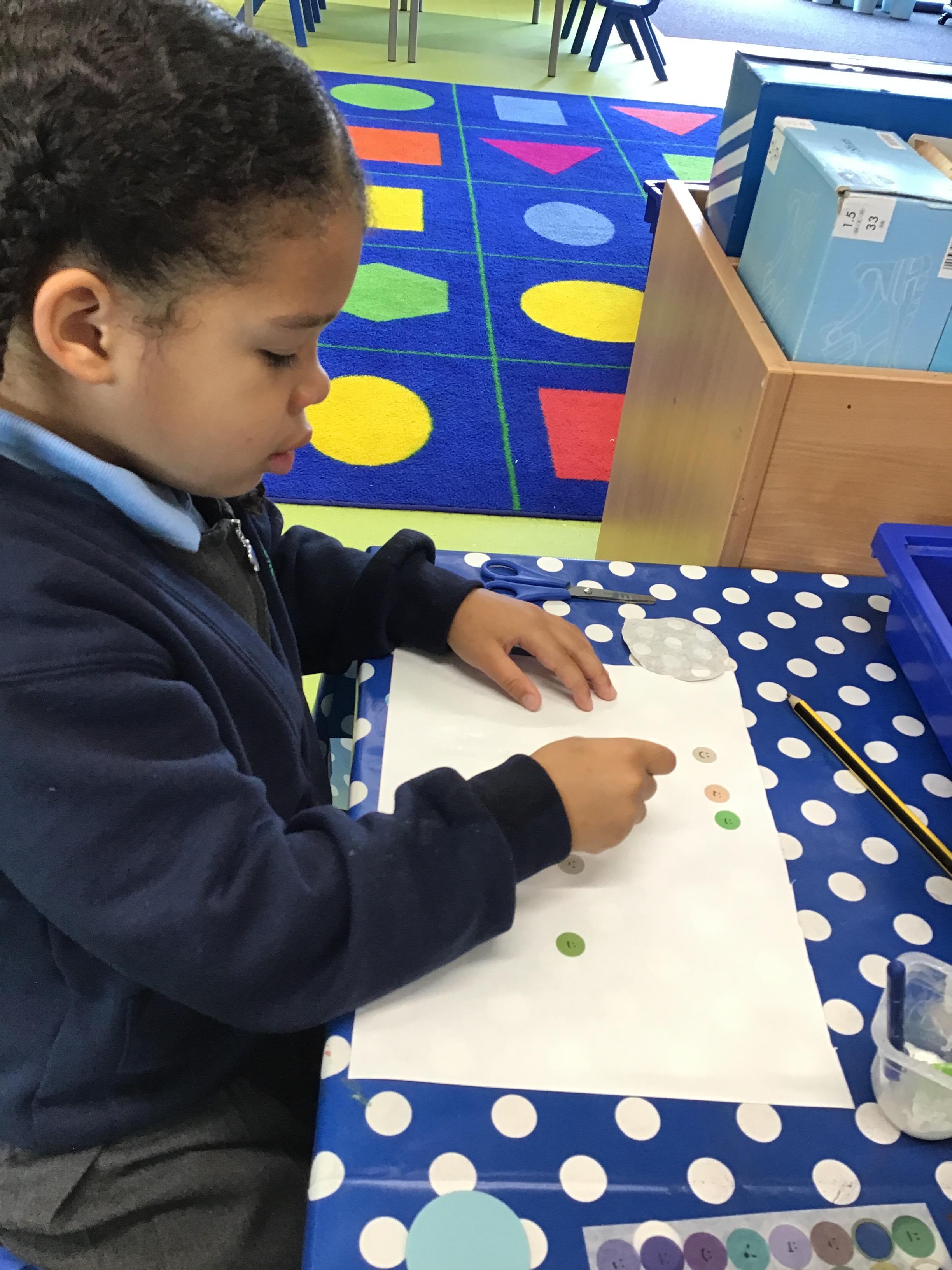In maths, the children have been learning about the number five, six and seven. The children sang the song, 'Five Little Men in a Flying Saucer,' and then considered how they could place their aliens in the space ship. We then looked at what would happen if we had six aliens and then seven. The children have worked hard on their verbal reasoning skills and could explain how they knew the number was six or seven, based on the arrangements they made on their space ships.