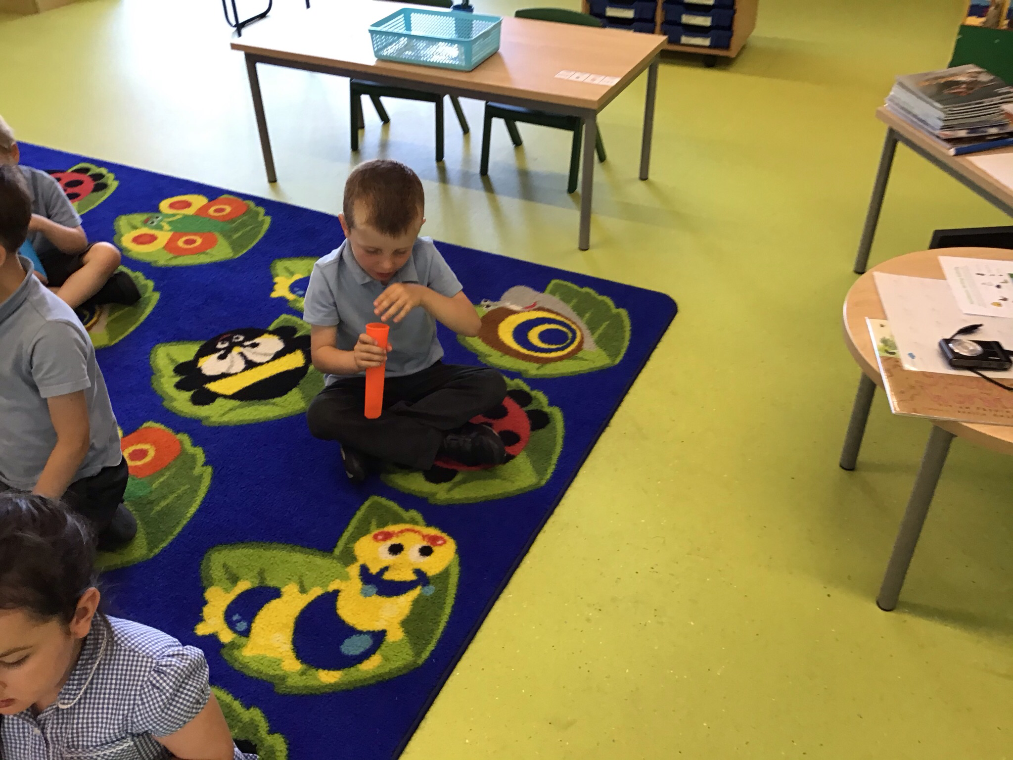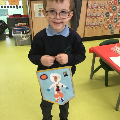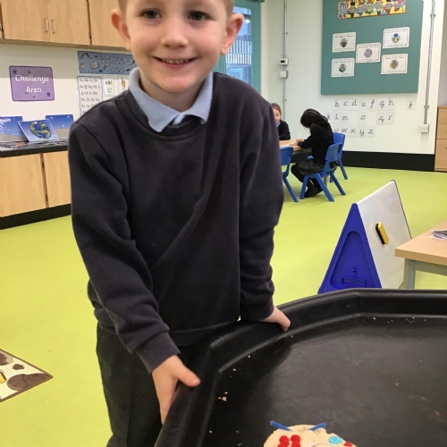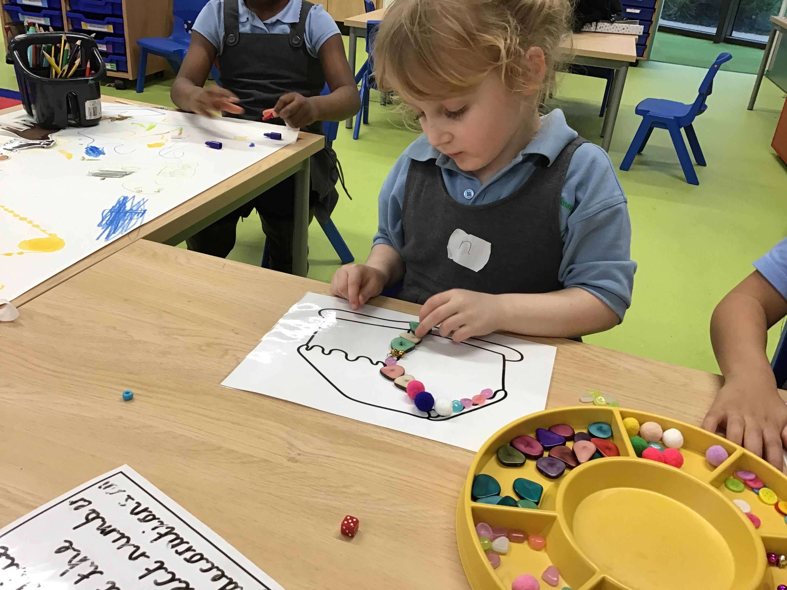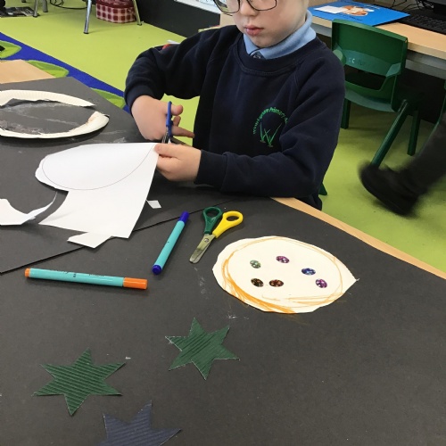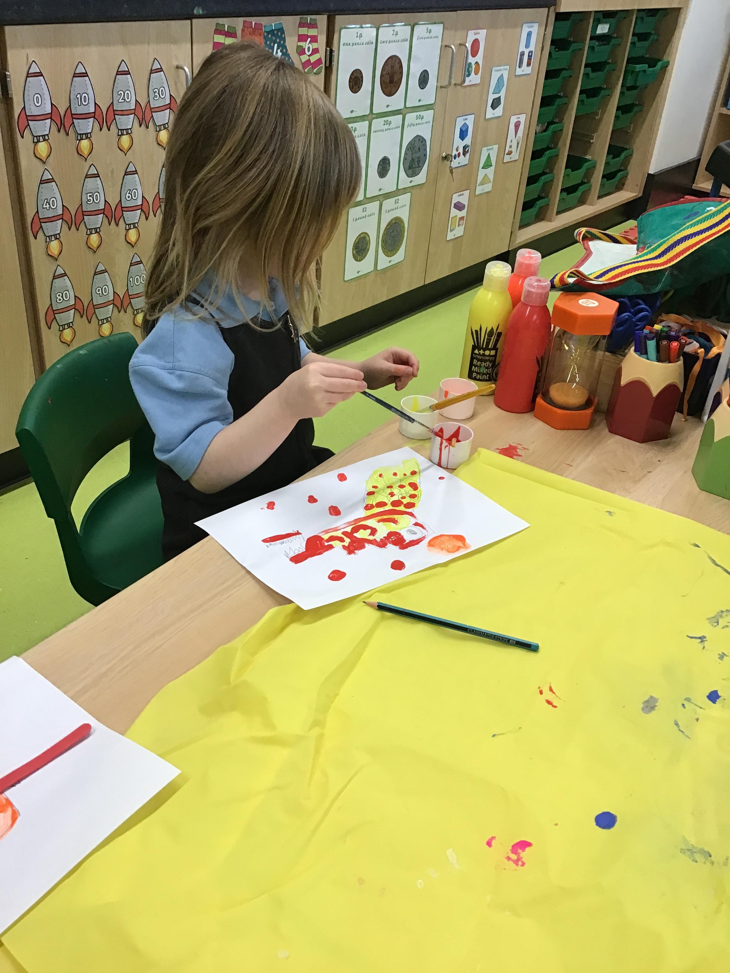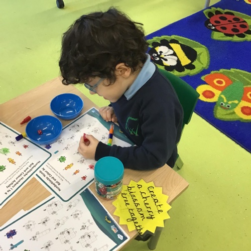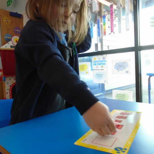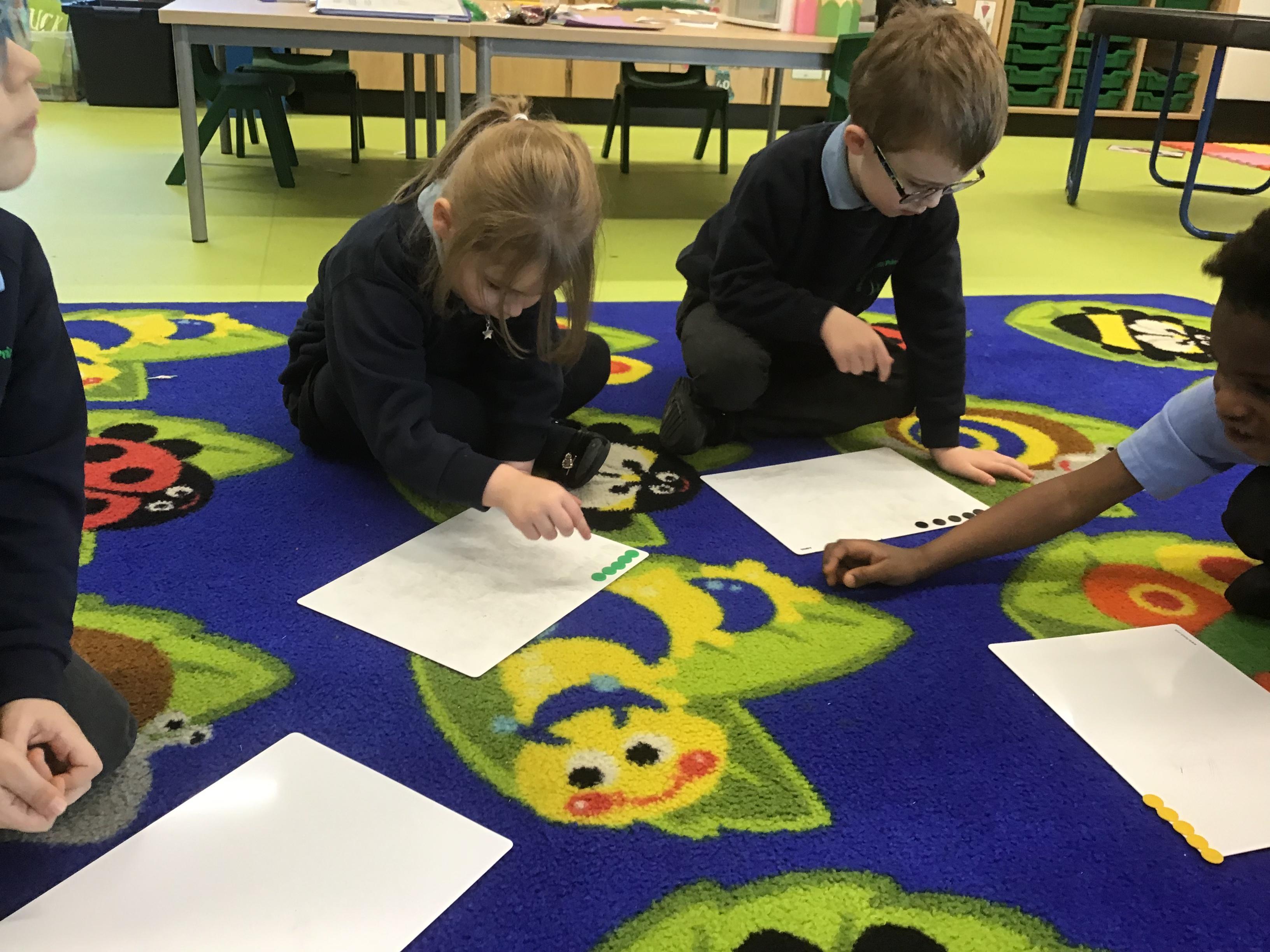 In maths, the children have been learning about the number five, six and seven. The children sang the song, 'Five Little Men in a Flying Saucer,' and then considered how they could place their aliens in the space ship. We then looked at what would happen if we had six aliens and then seven. The children have worked hard on their verbal reasoning skills and could explain how they knew the number was six or seven, based on the arrangements they made on their space ships.