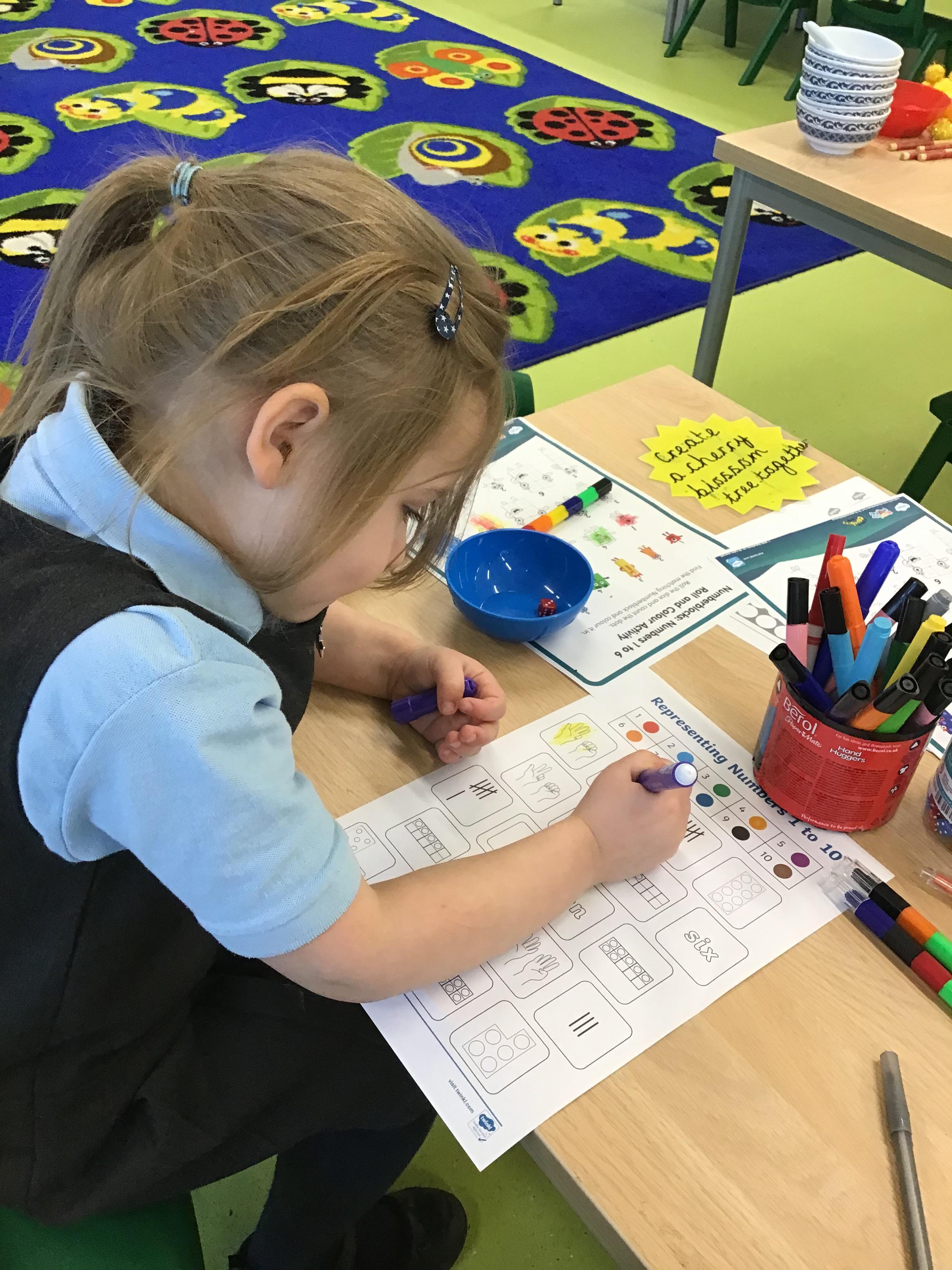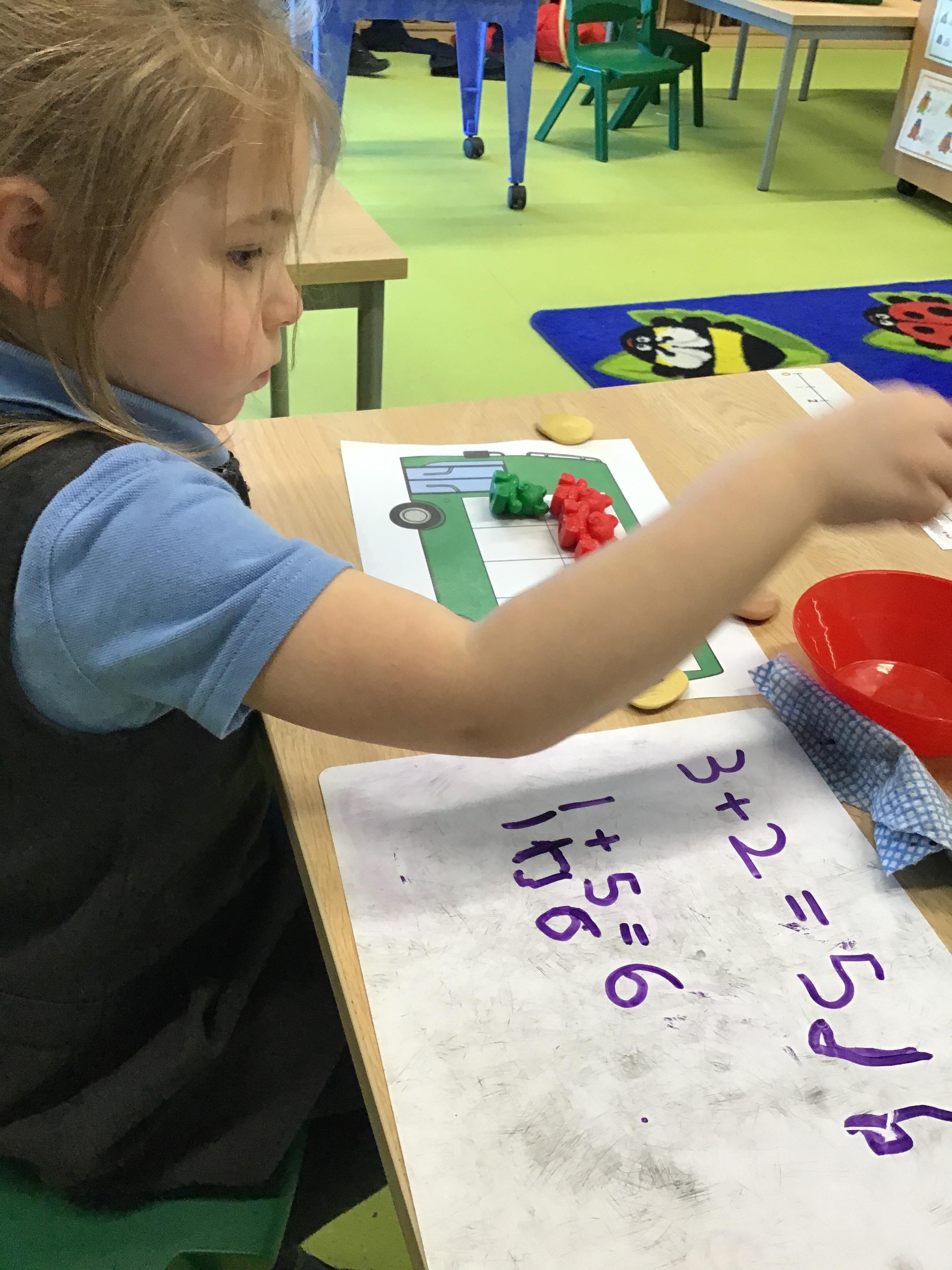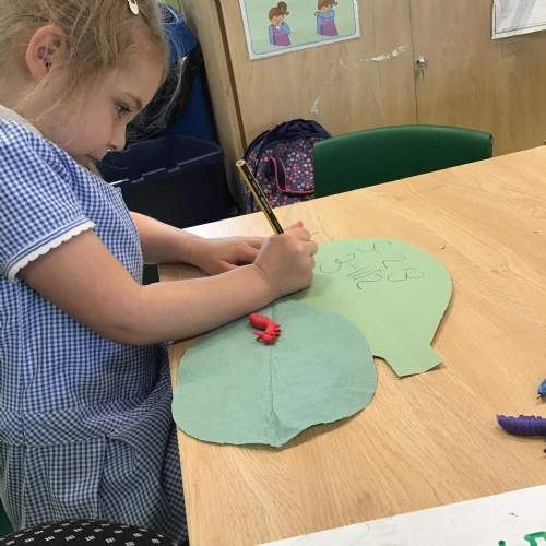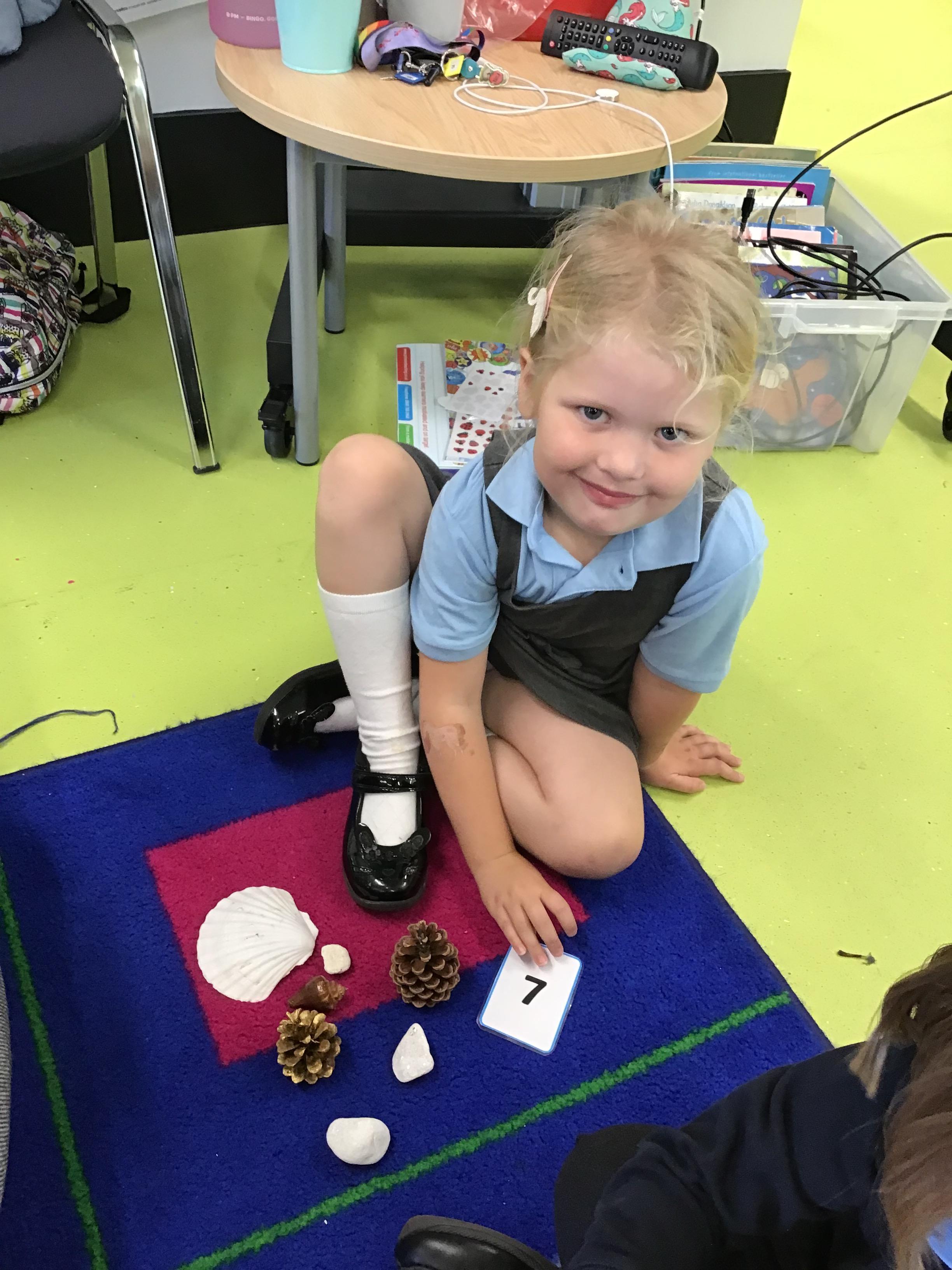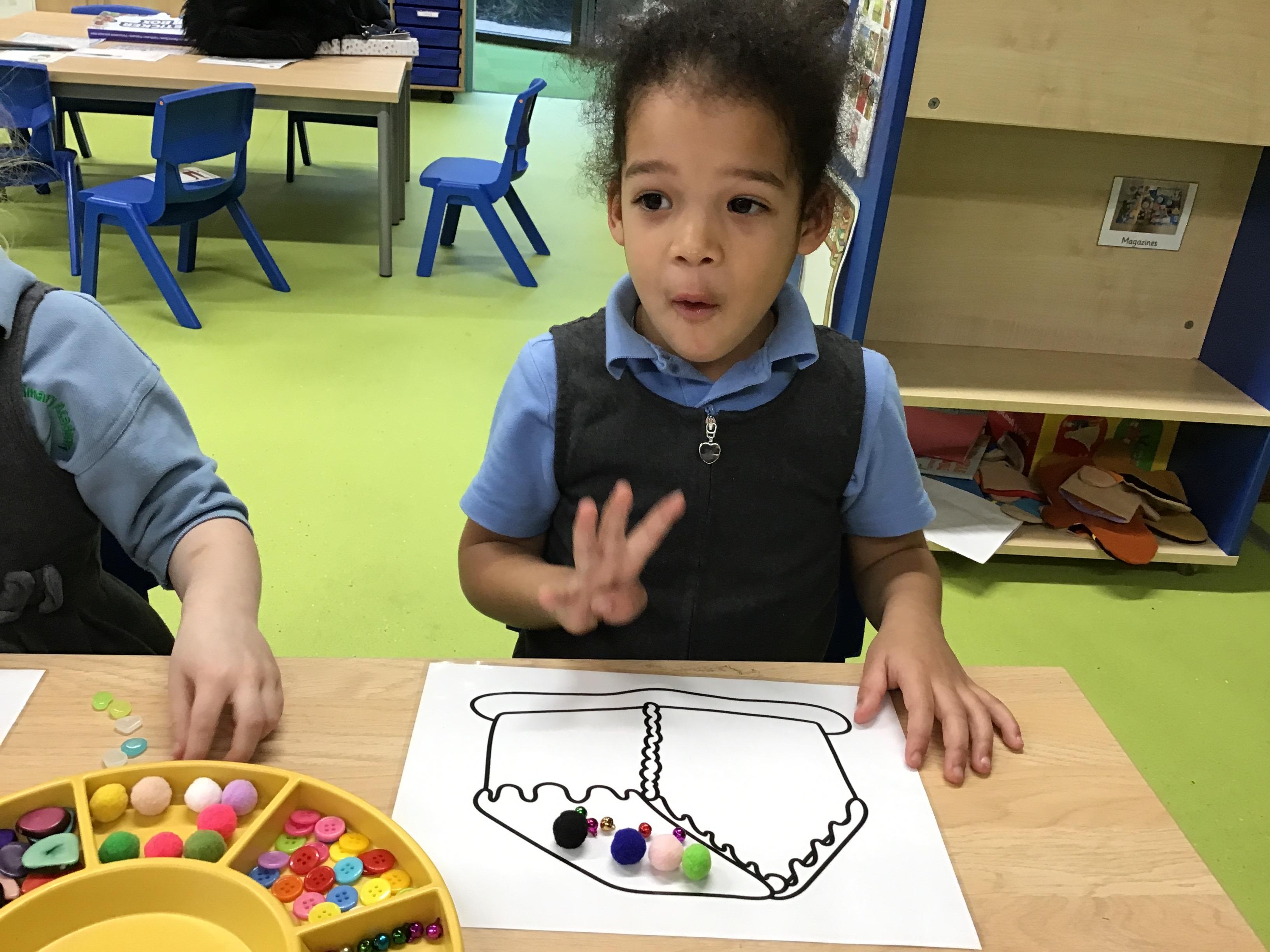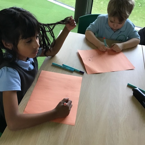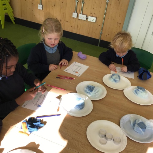 In maths, the children have been learning about the number five, six and seven. The children sang the song, 'Five Little Men in a Flying Saucer,' and then considered how they could place their aliens in the space ship. We then looked at what would happen if we had six aliens and then seven. The children have worked hard on their verbal reasoning skills and could explain how they knew the number was six or seven, based on the arrangements they made on their space ships.