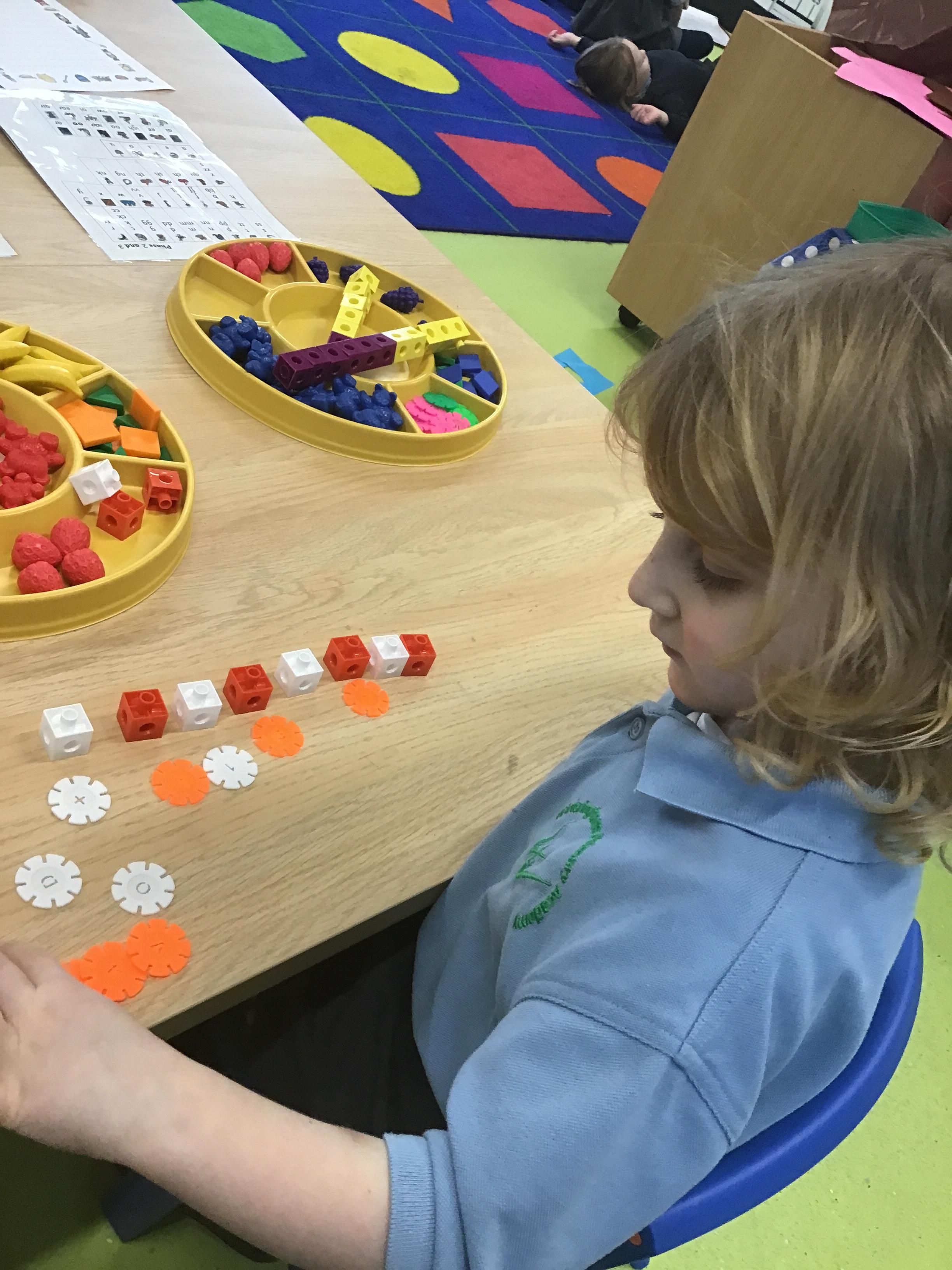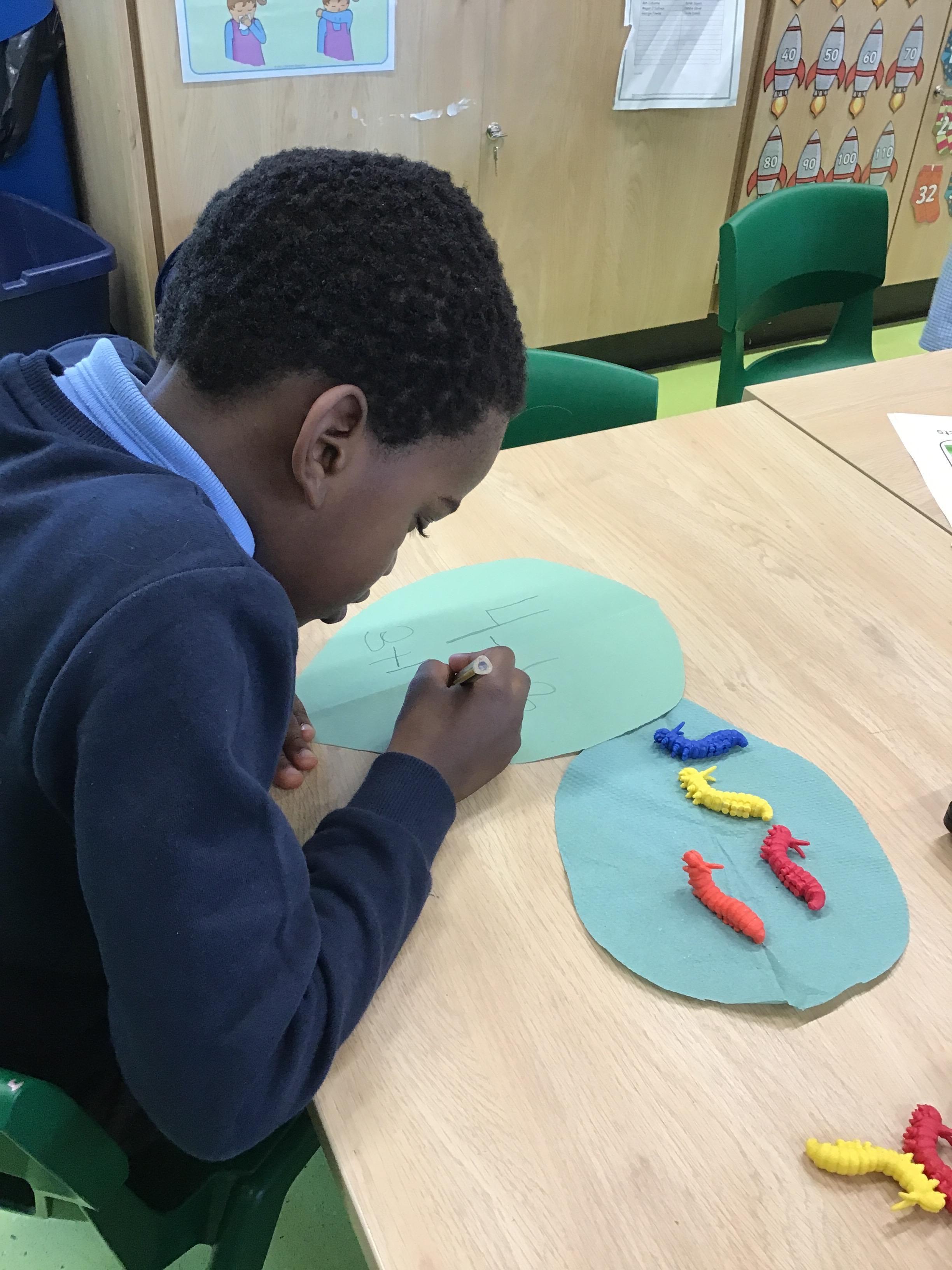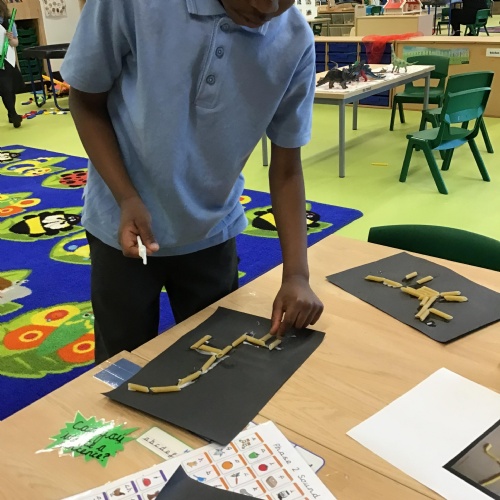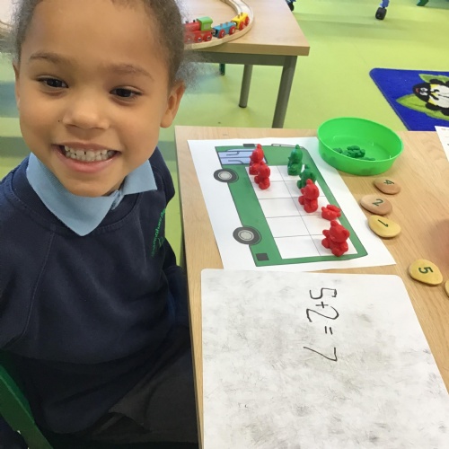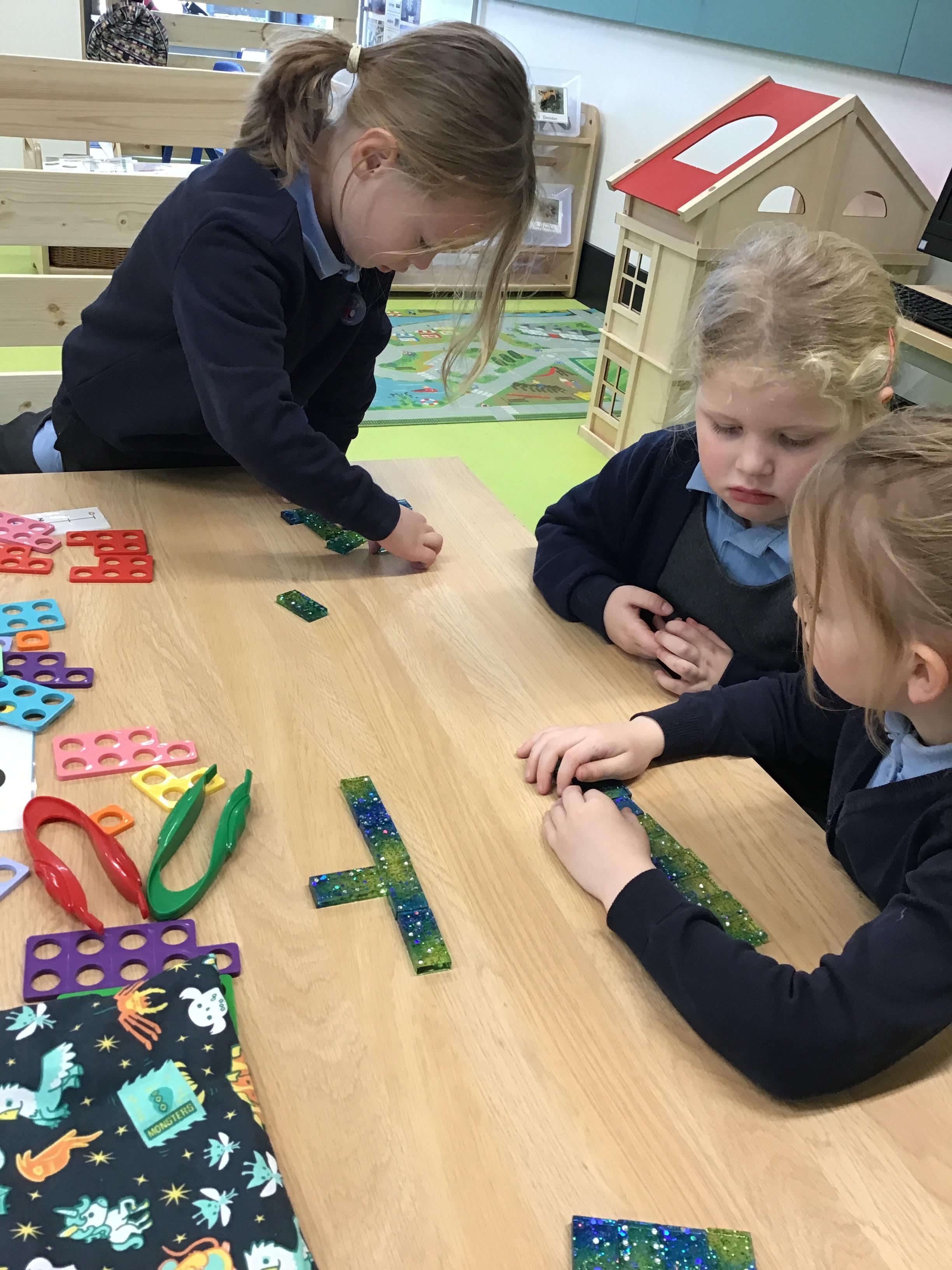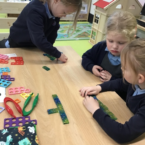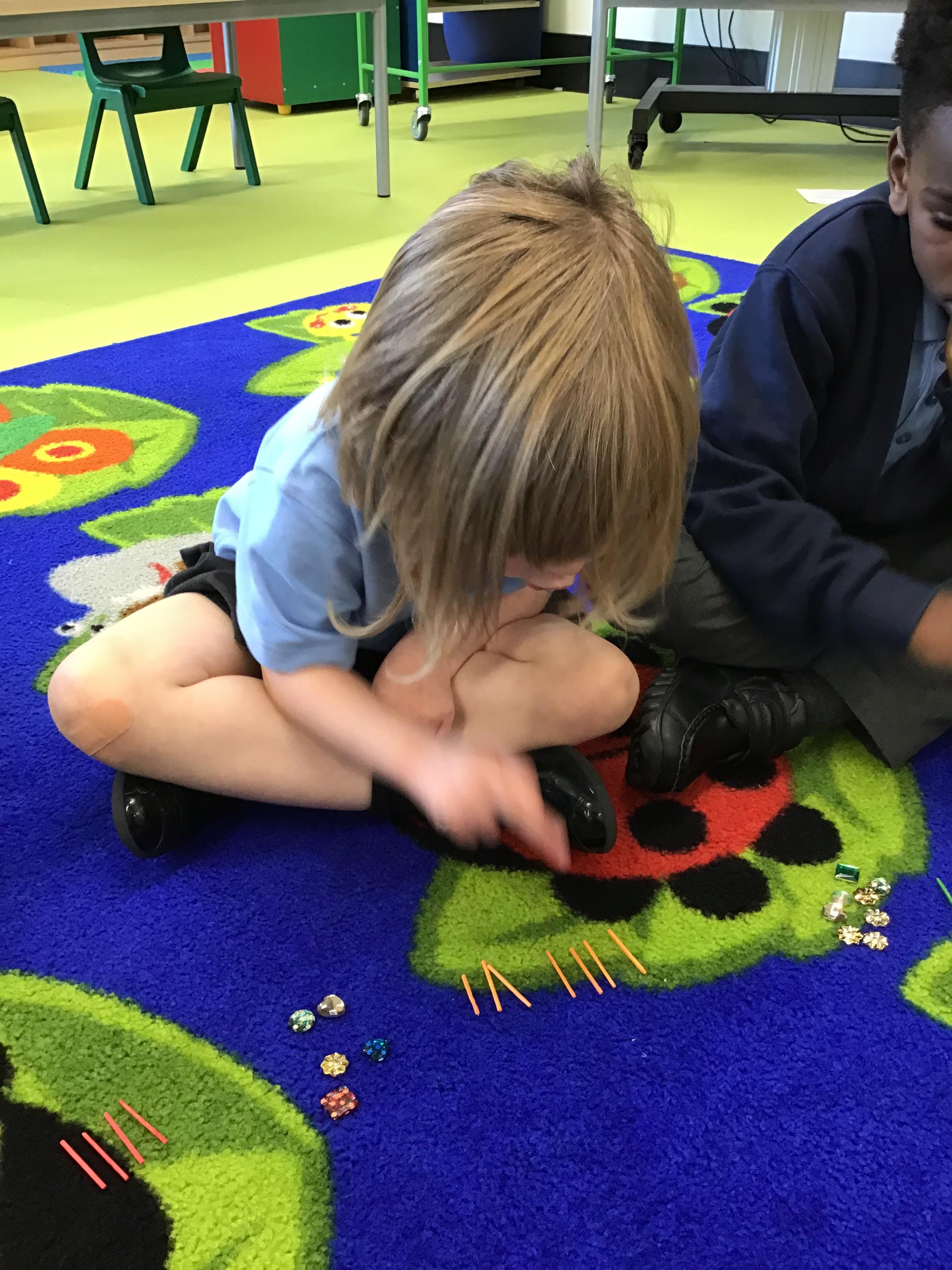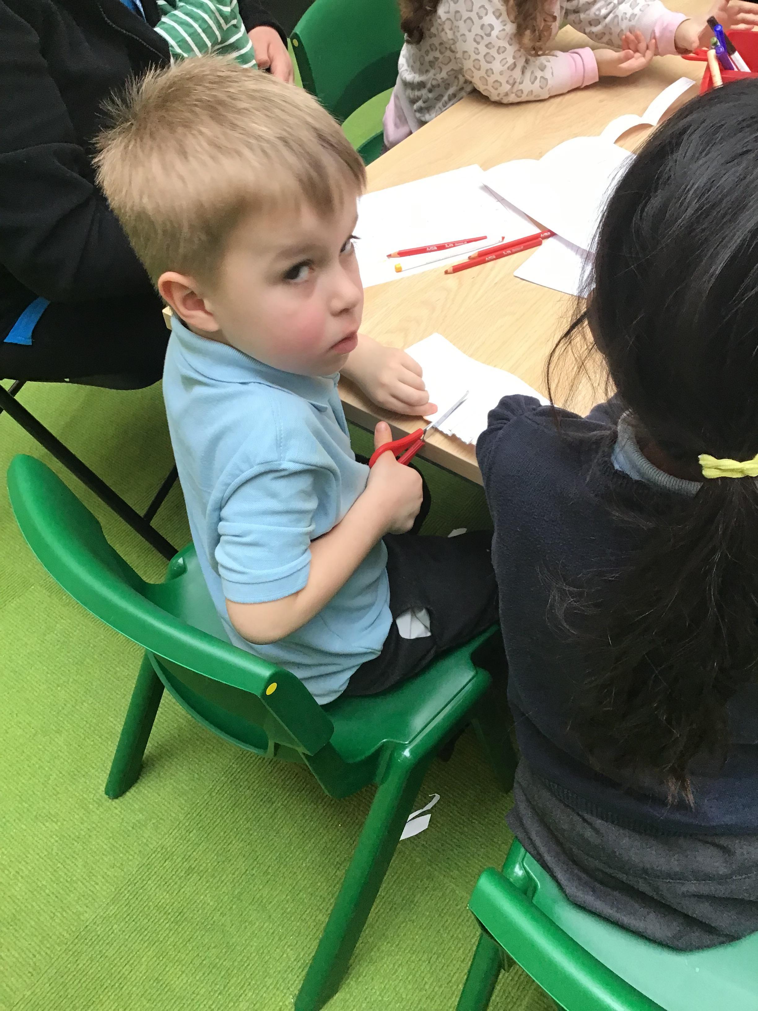 In maths, the children have been learning about the number five, six and seven. The children sang the song, 'Five Little Men in a Flying Saucer,' and then considered how they could place their aliens in the space ship. We then looked at what would happen if we had six aliens and then seven. The children have worked hard on their verbal reasoning skills and could explain how they knew the number was six or seven, based on the arrangements they made on their space ships.