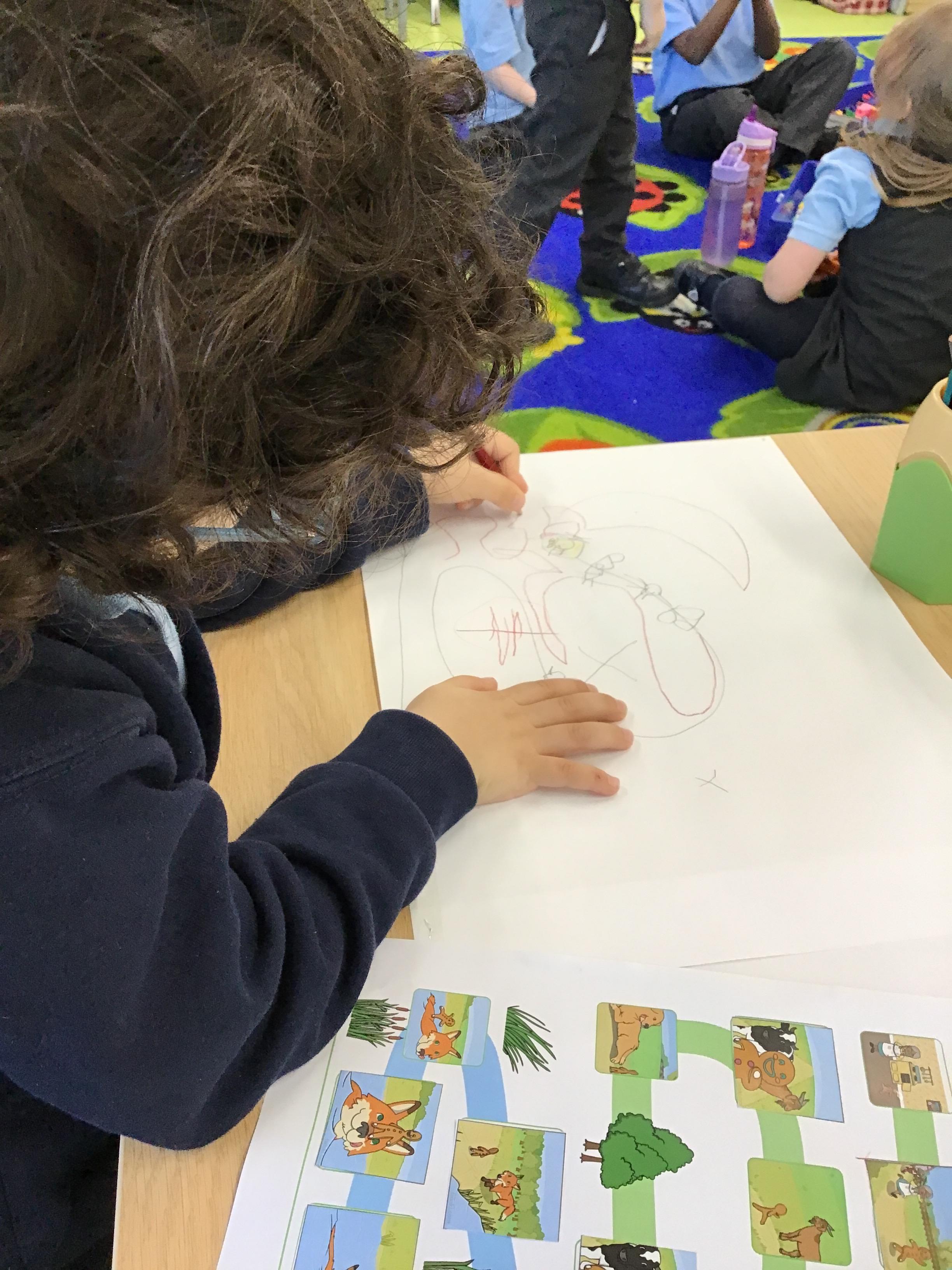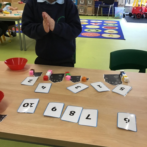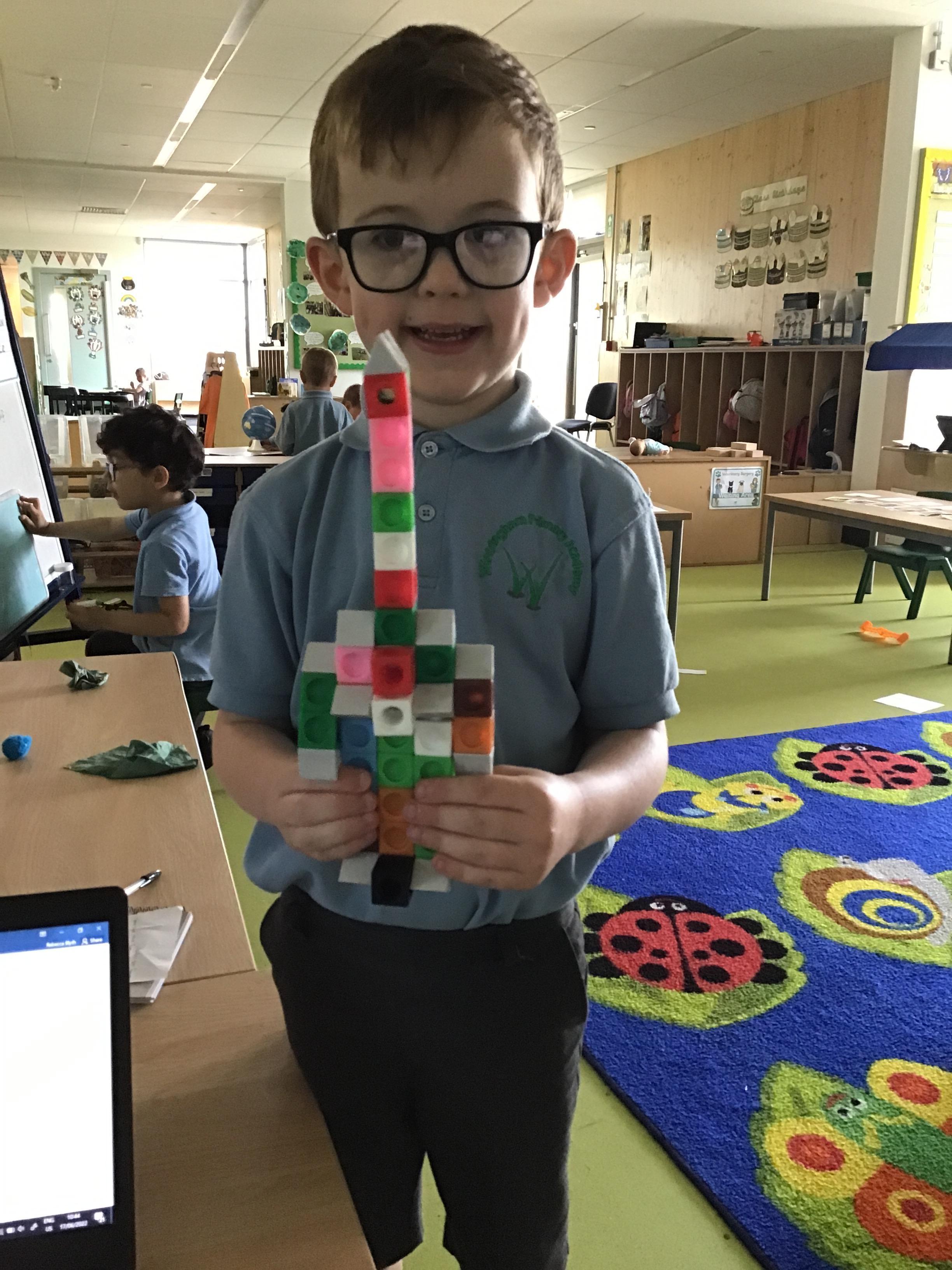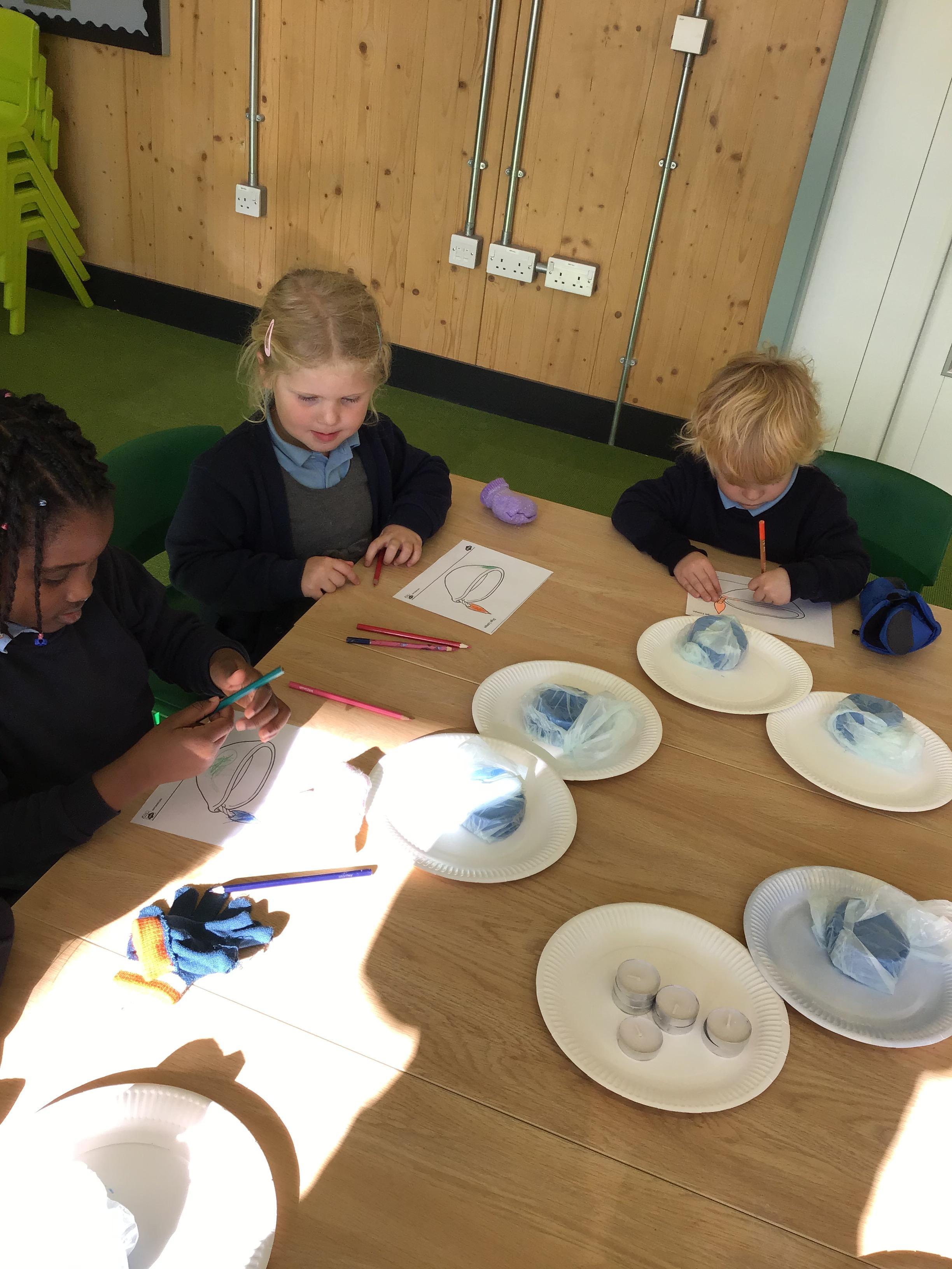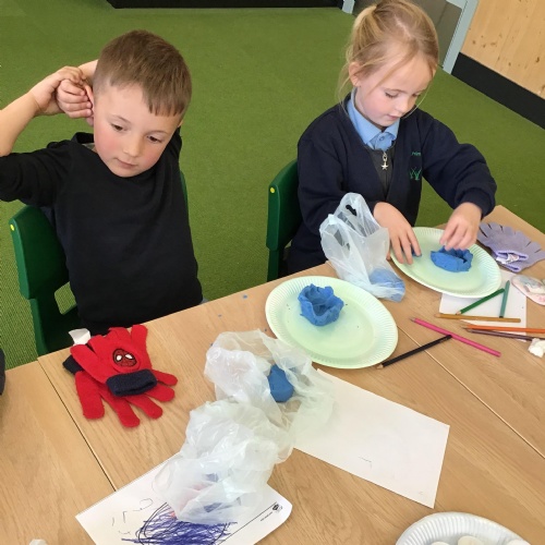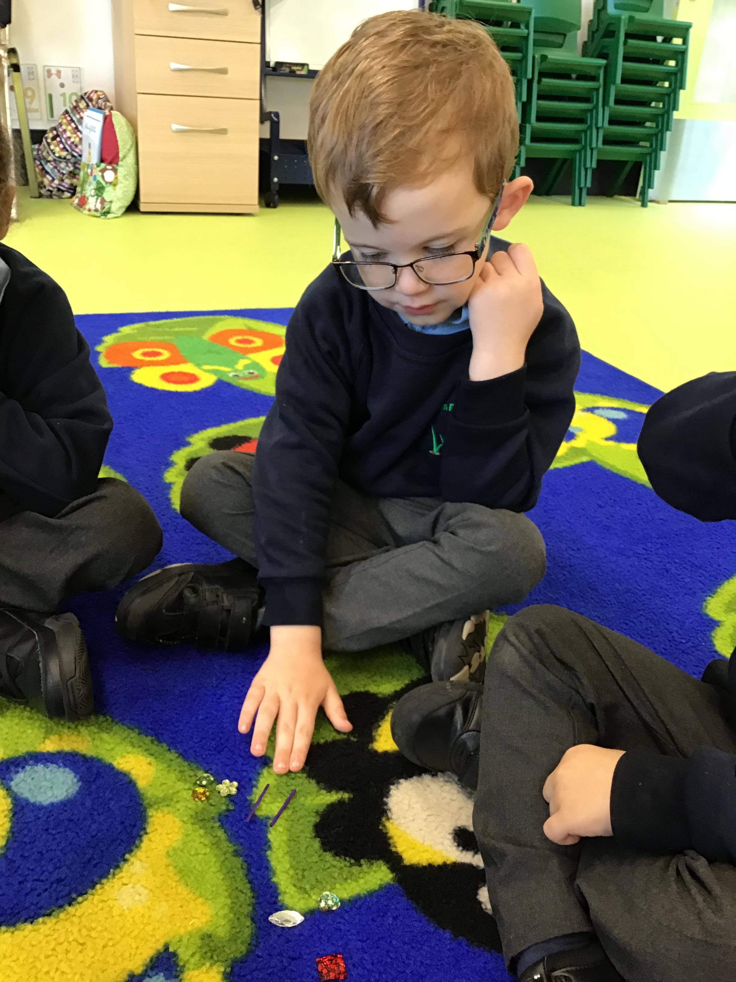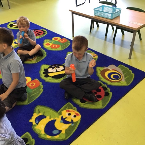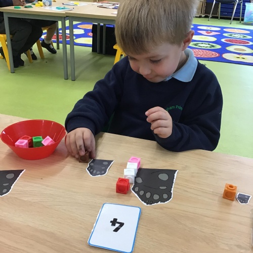 In maths, the children have been learning about the number five, six and seven. The children sang the song, 'Five Little Men in a Flying Saucer,' and then considered how they could place their aliens in the space ship. We then looked at what would happen if we had six aliens and then seven. The children have worked hard on their verbal reasoning skills and could explain how they knew the number was six or seven, based on the arrangements they made on their space ships.