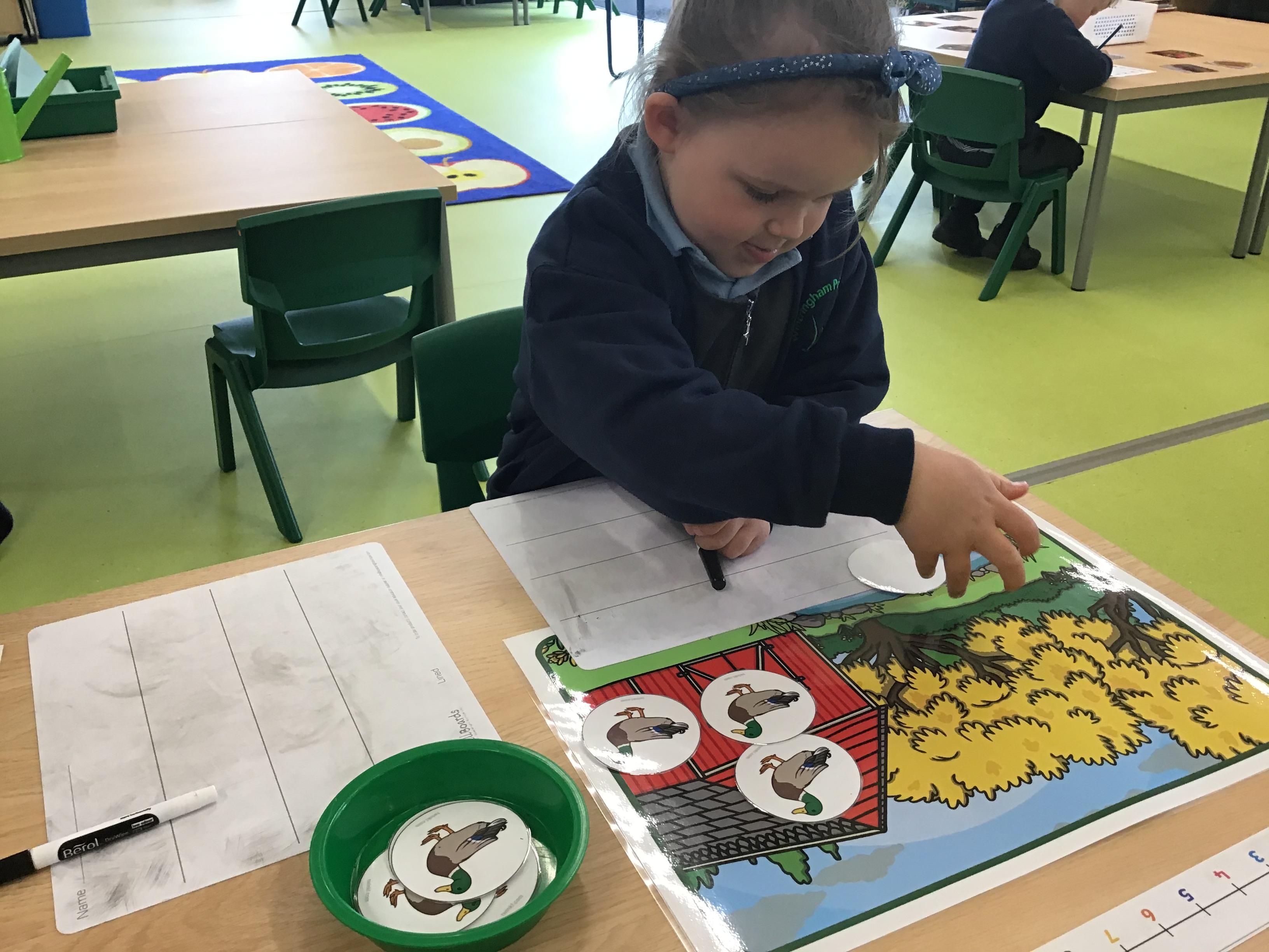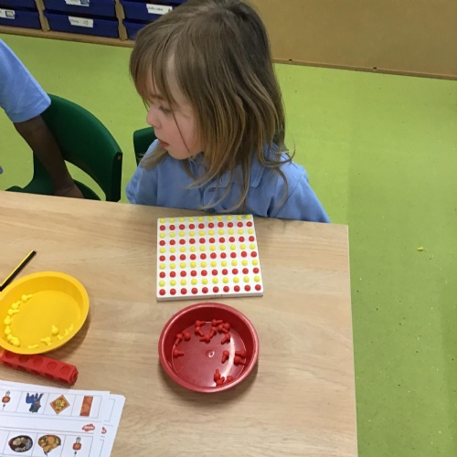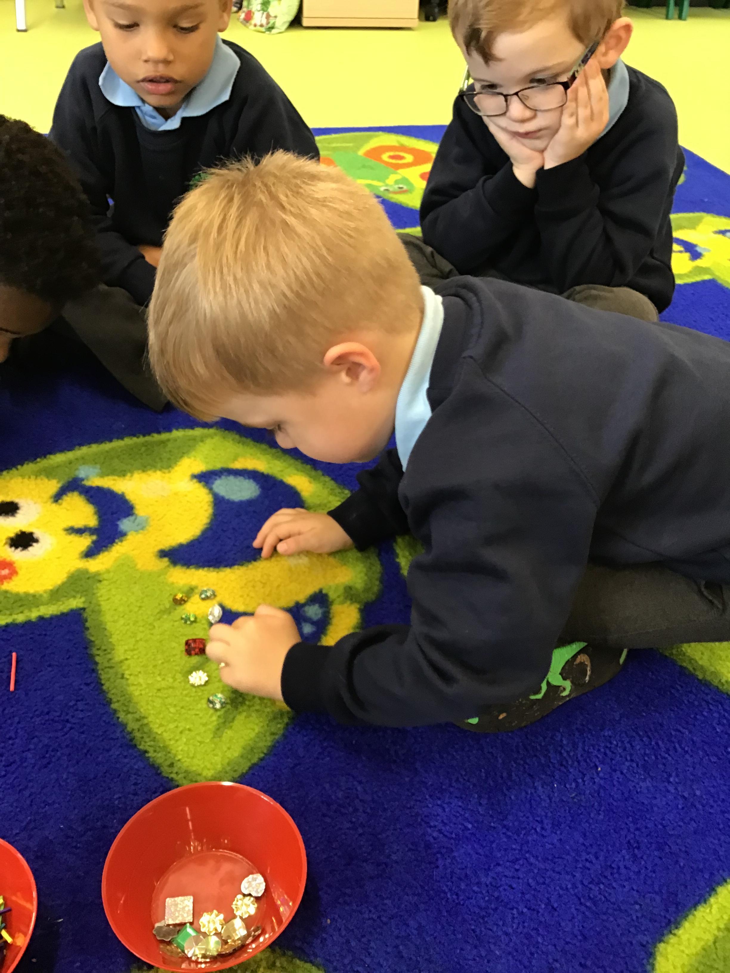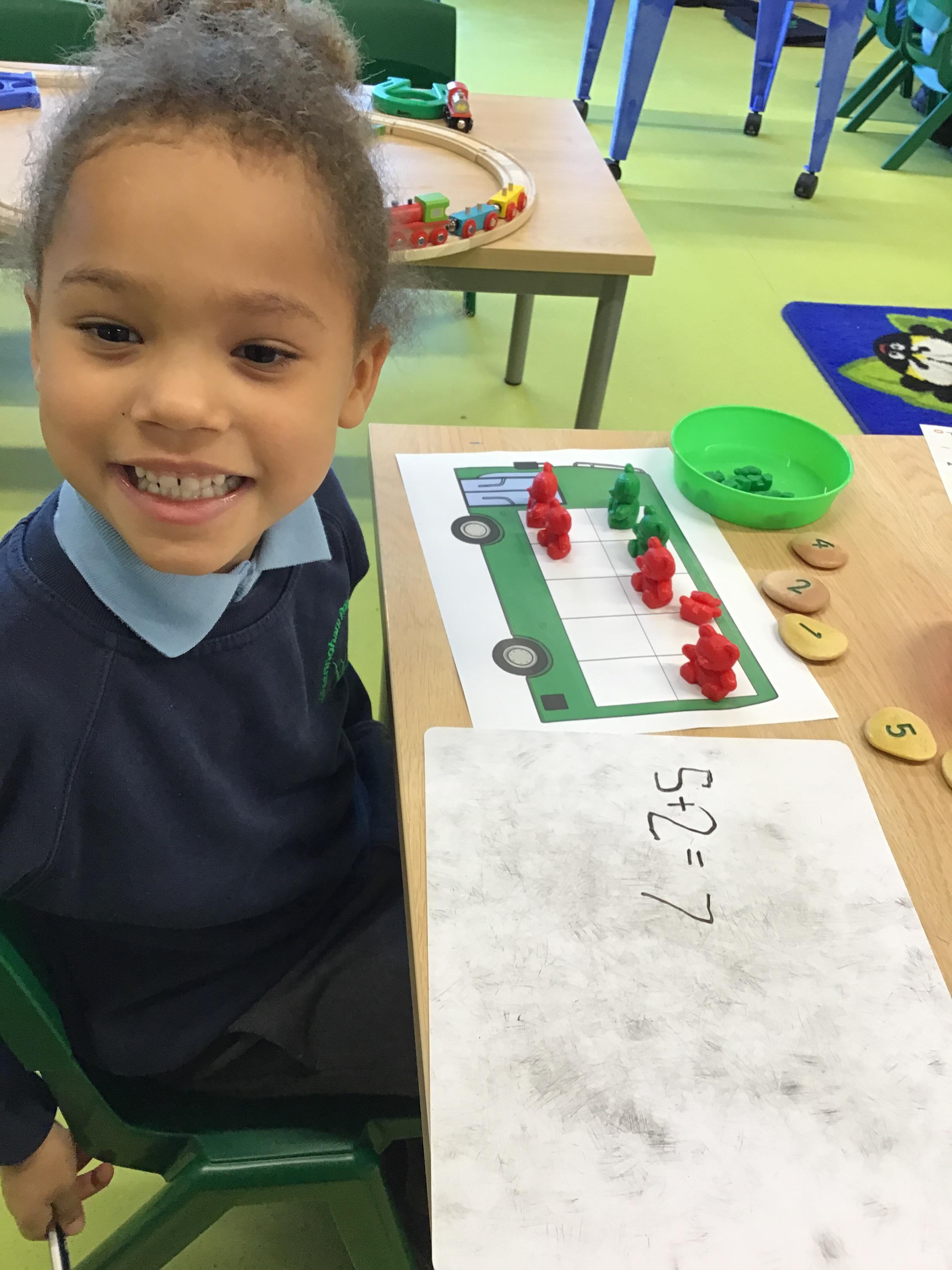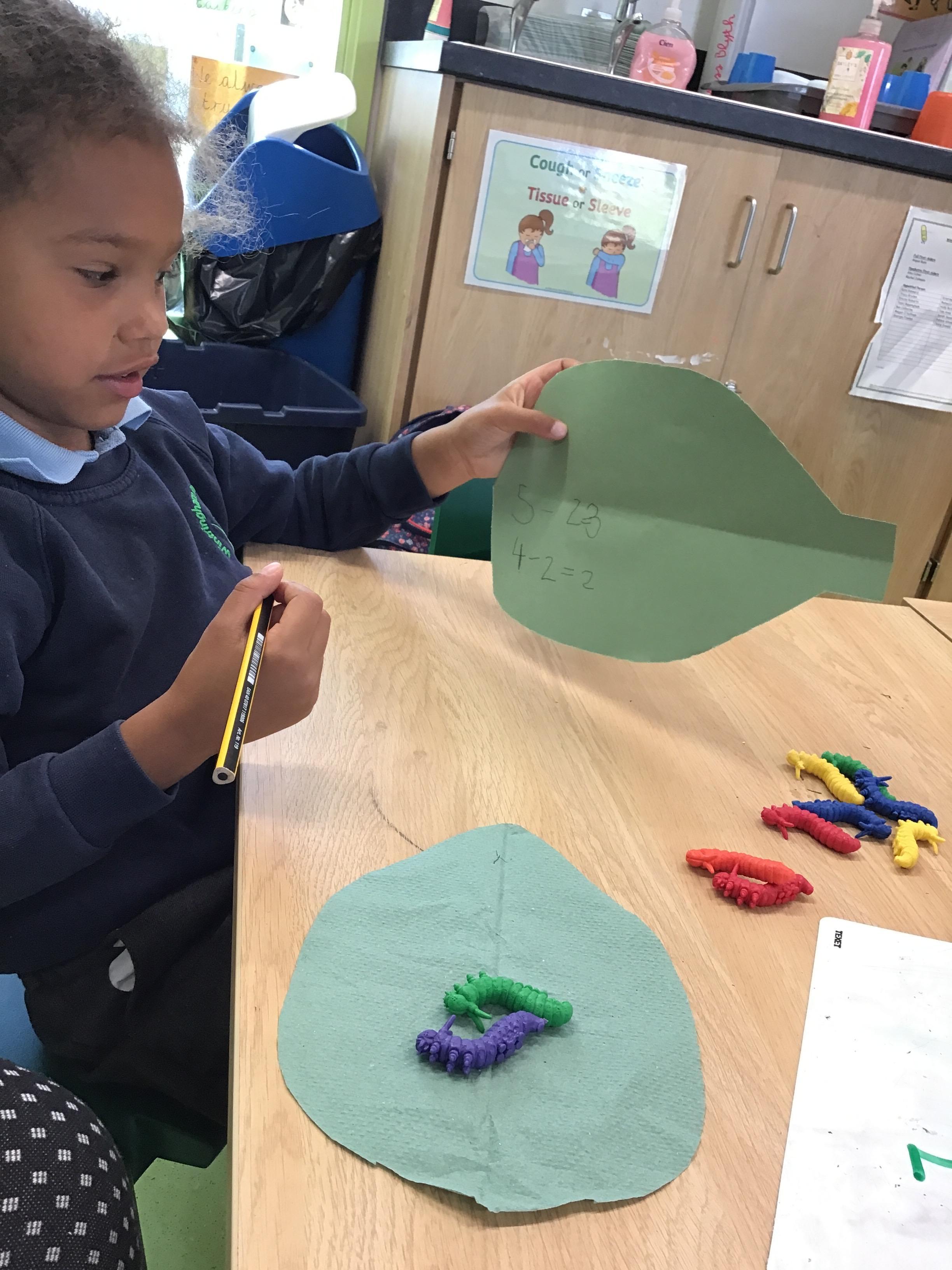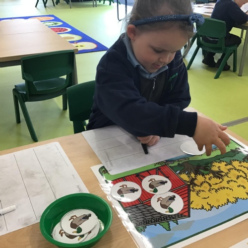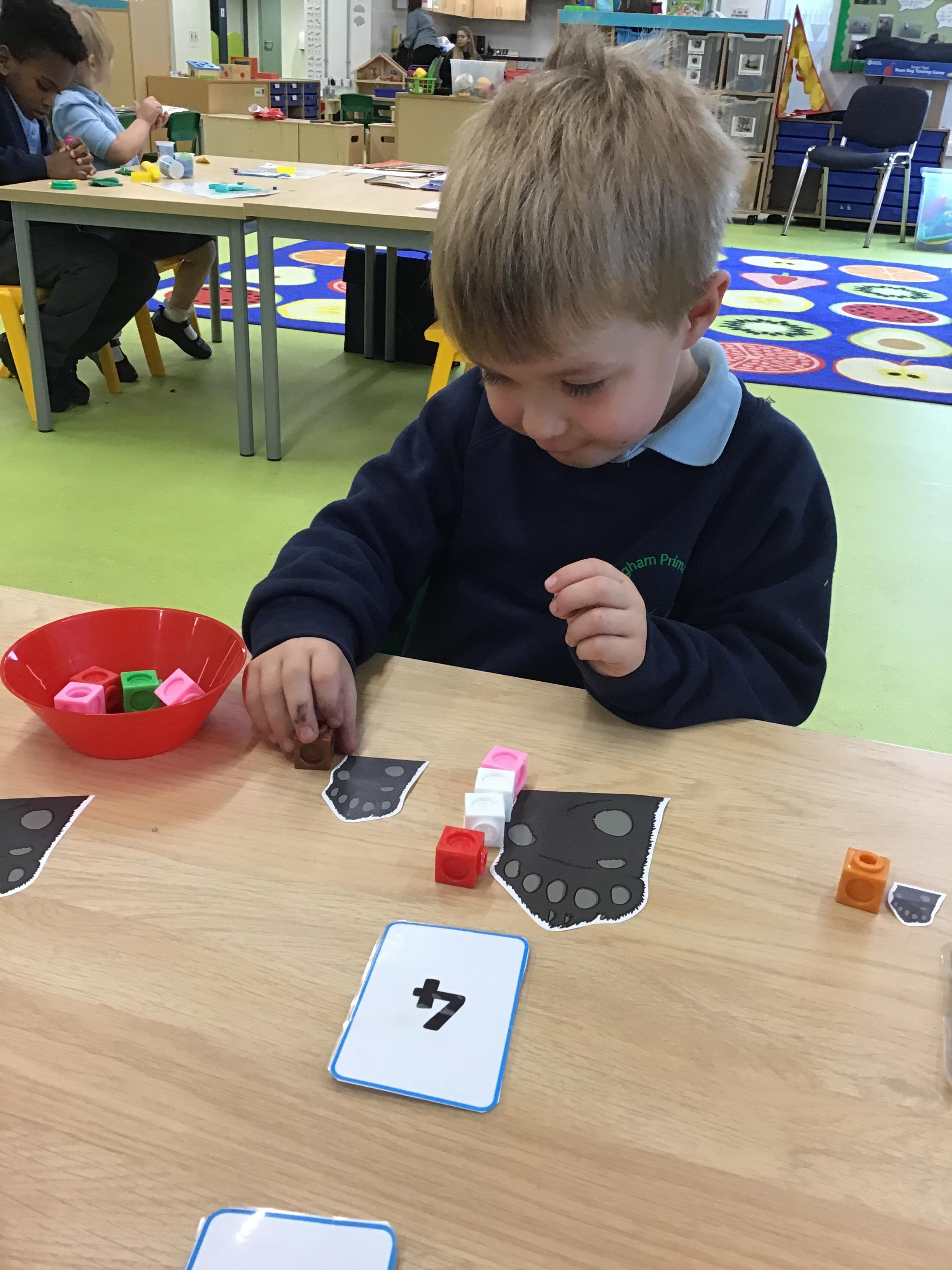 In maths, the children have been learning about the number five, six and seven. The children sang the song, 'Five Little Men in a Flying Saucer,' and then considered how they could place their aliens in the space ship. We then looked at what would happen if we had six aliens and then seven. The children have worked hard on their verbal reasoning skills and could explain how they knew the number was six or seven, based on the arrangements they made on their space ships.