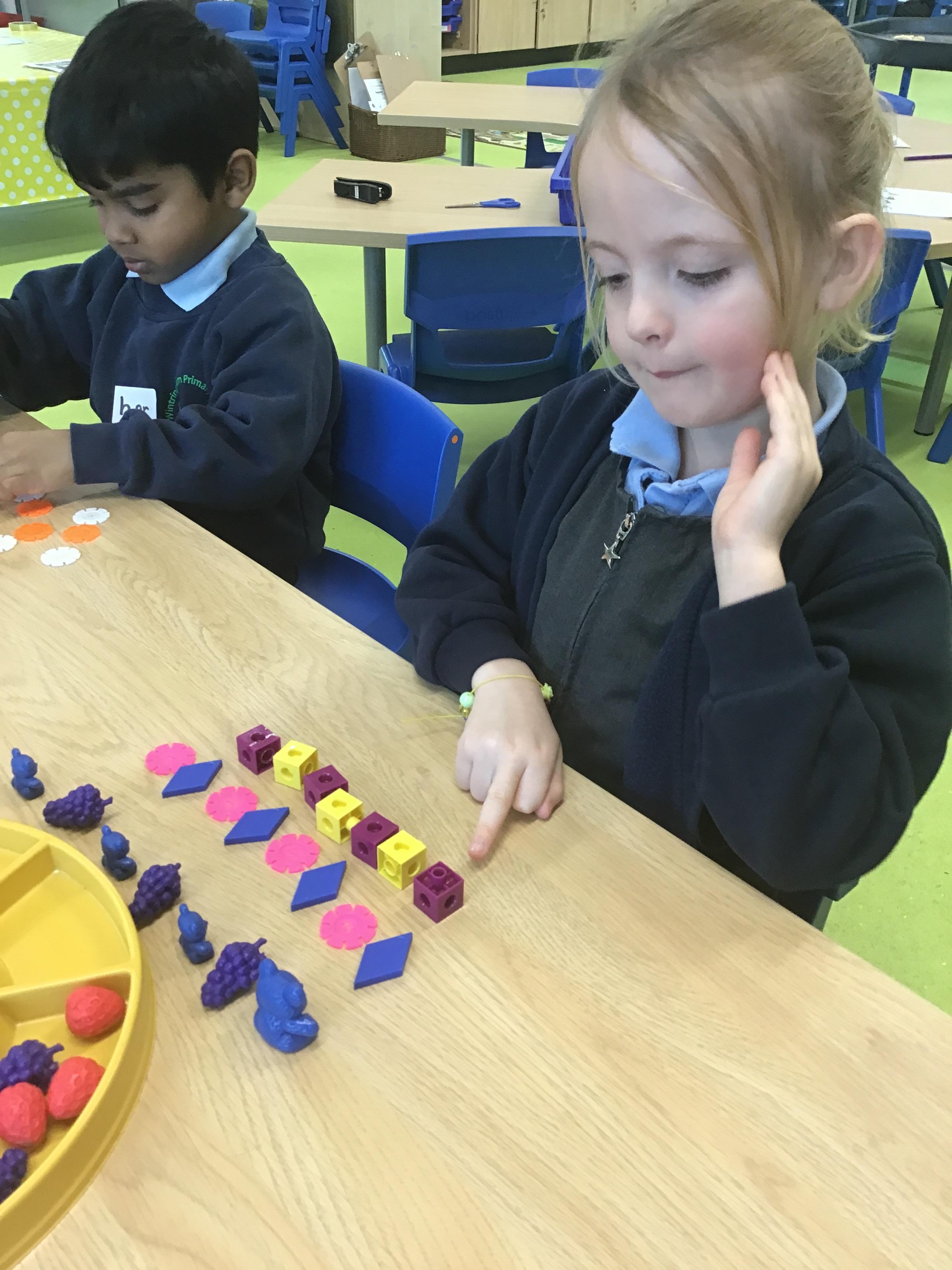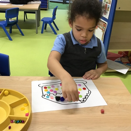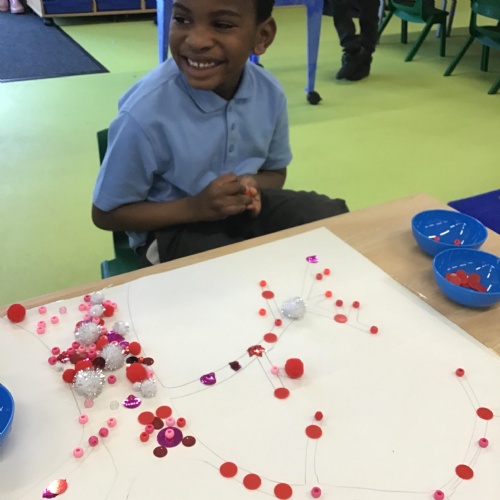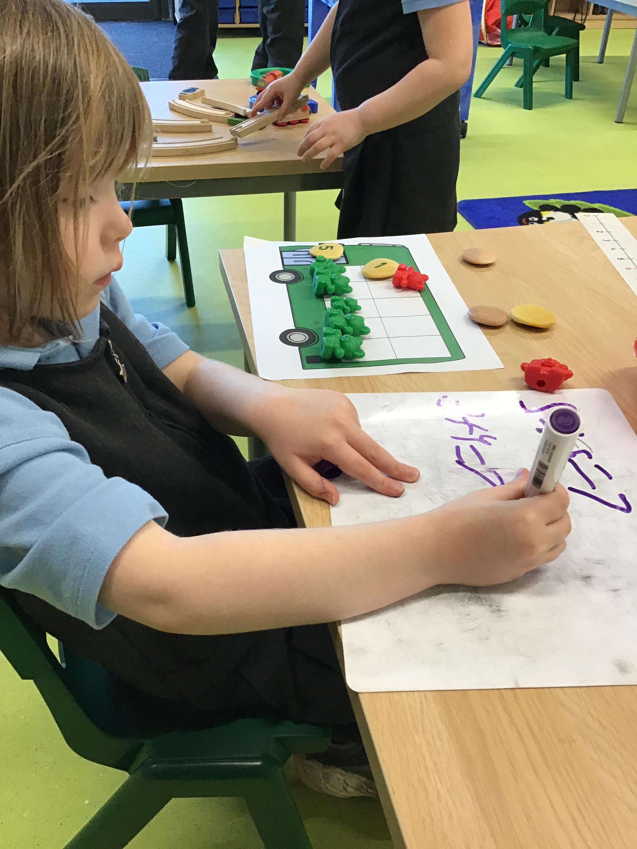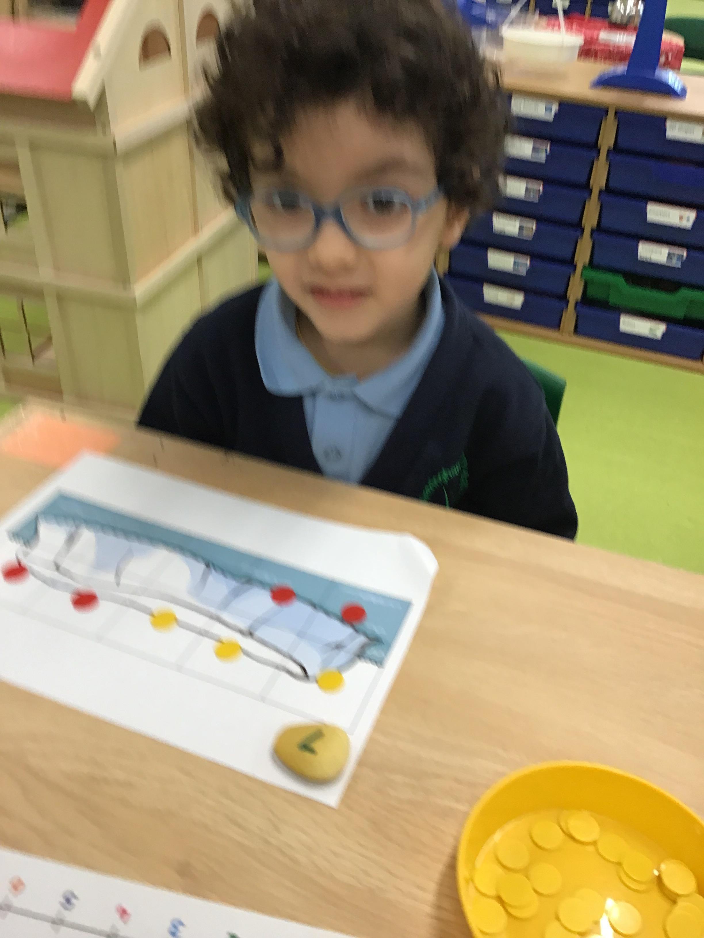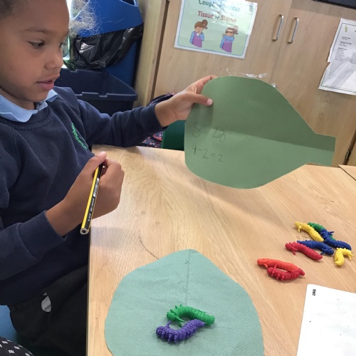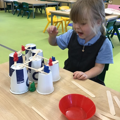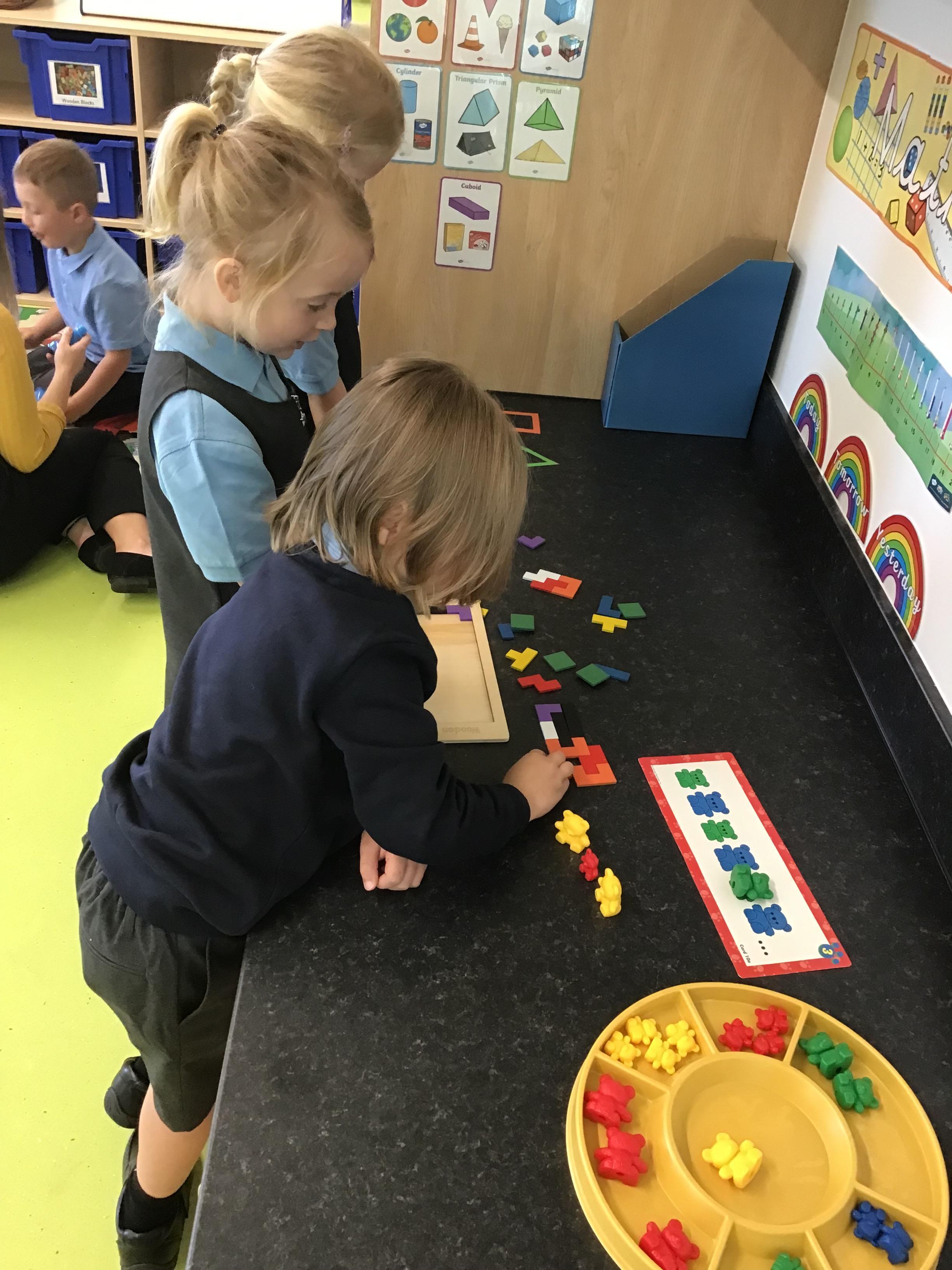 In maths, the children have been learning about the number five, six and seven. The children sang the song, 'Five Little Men in a Flying Saucer,' and then considered how they could place their aliens in the space ship. We then looked at what would happen if we had six aliens and then seven. The children have worked hard on their verbal reasoning skills and could explain how they knew the number was six or seven, based on the arrangements they made on their space ships.