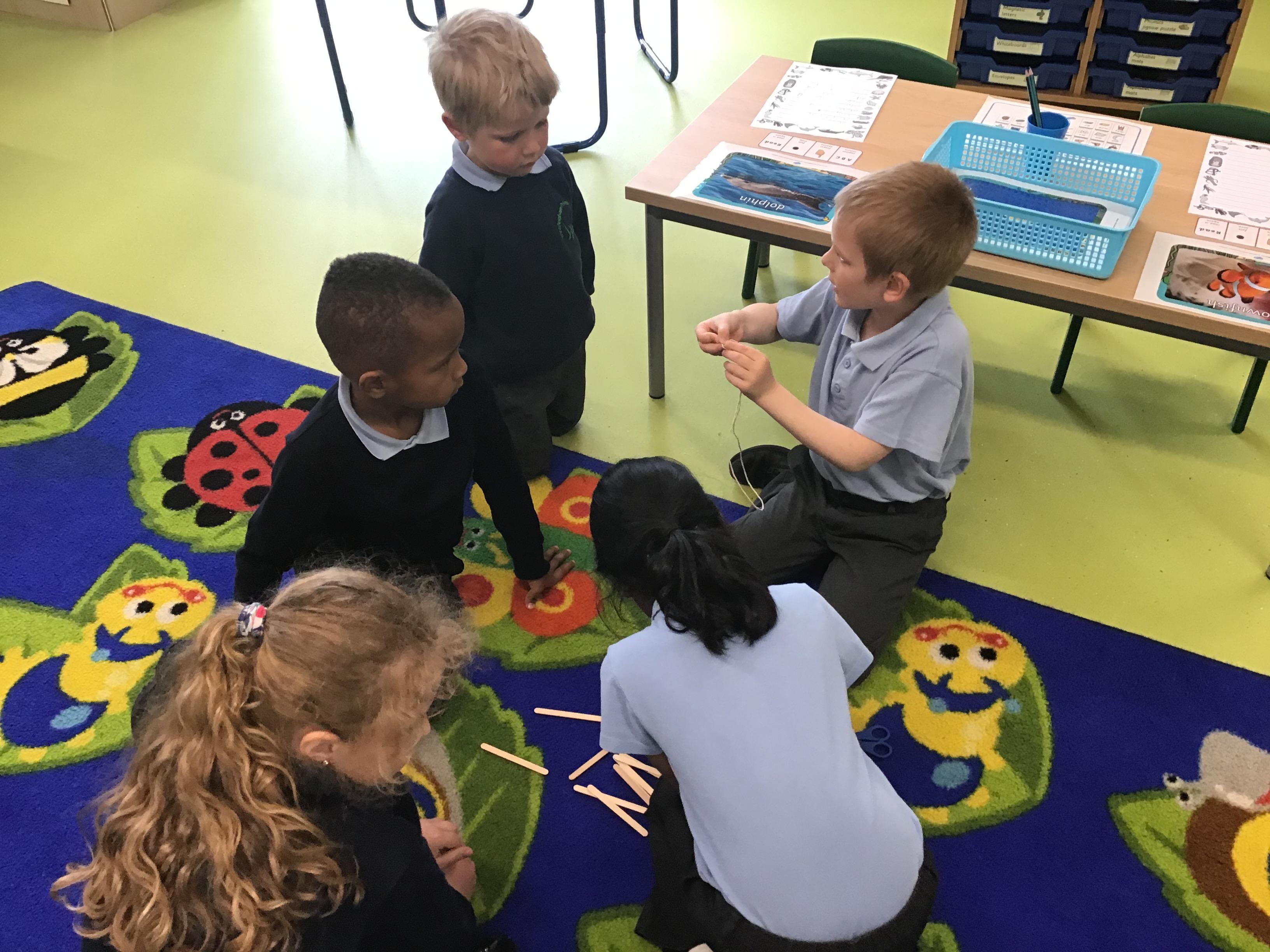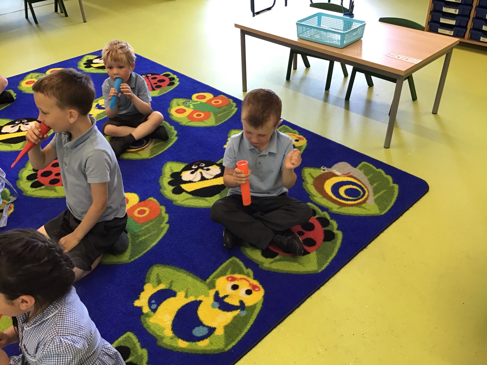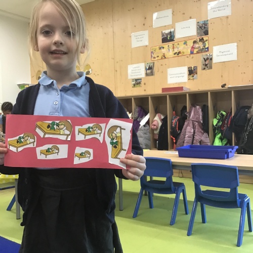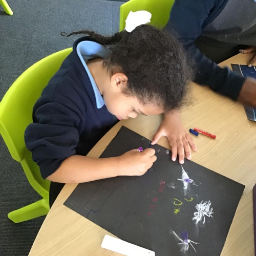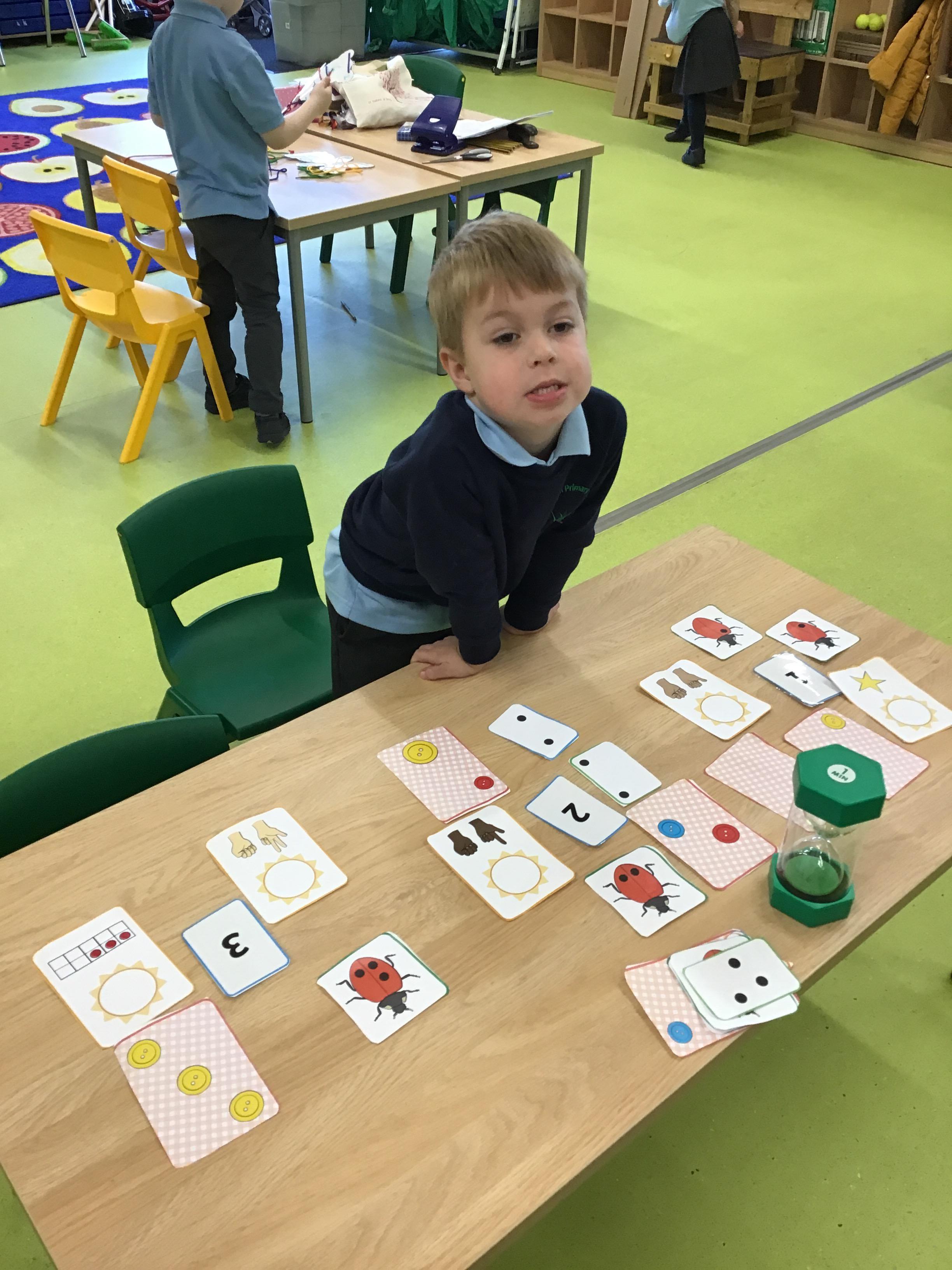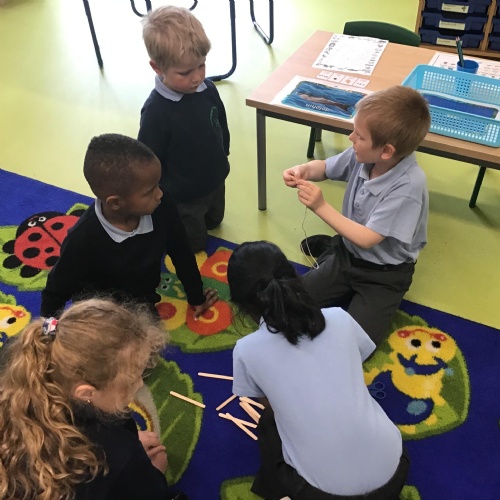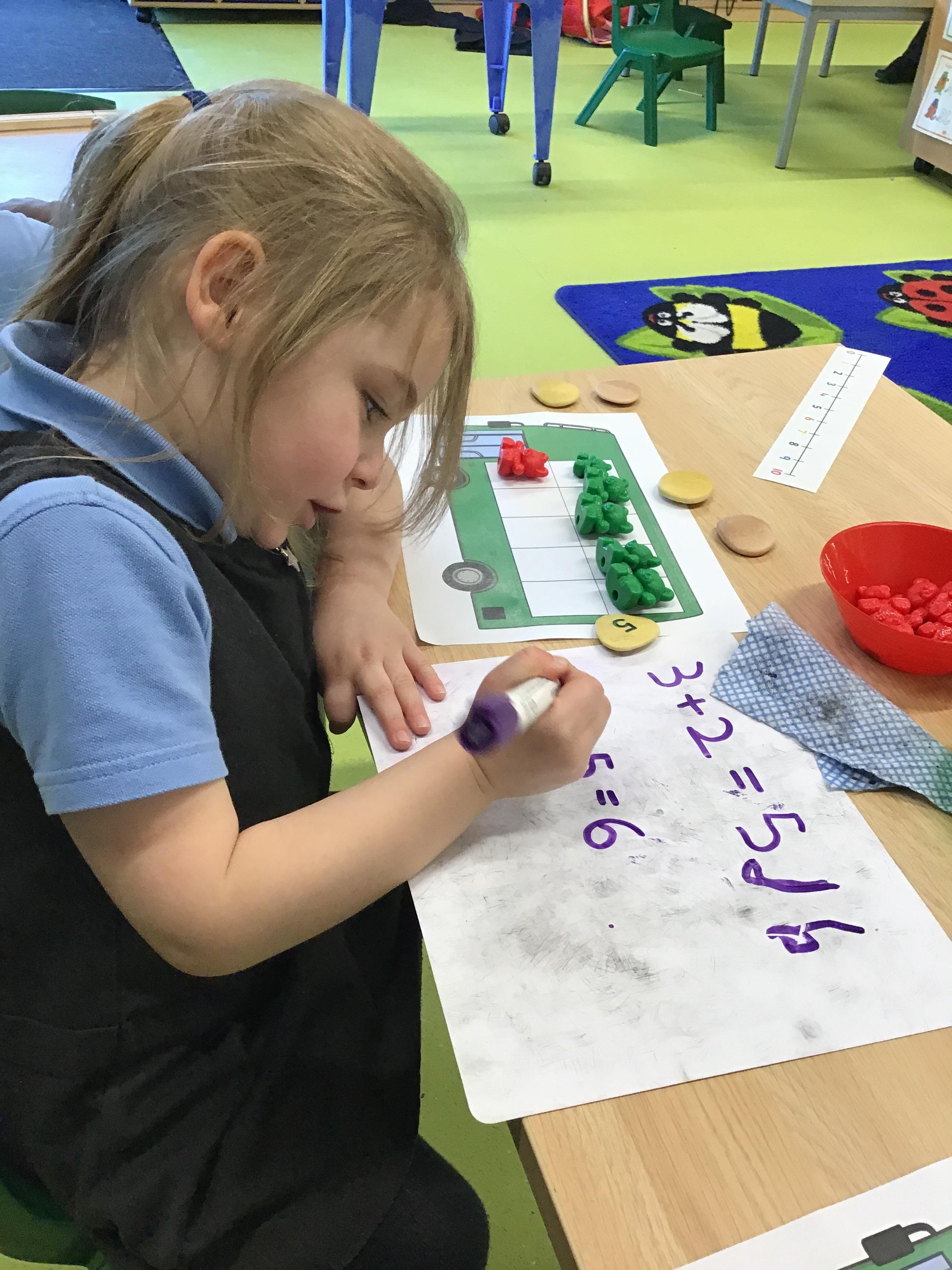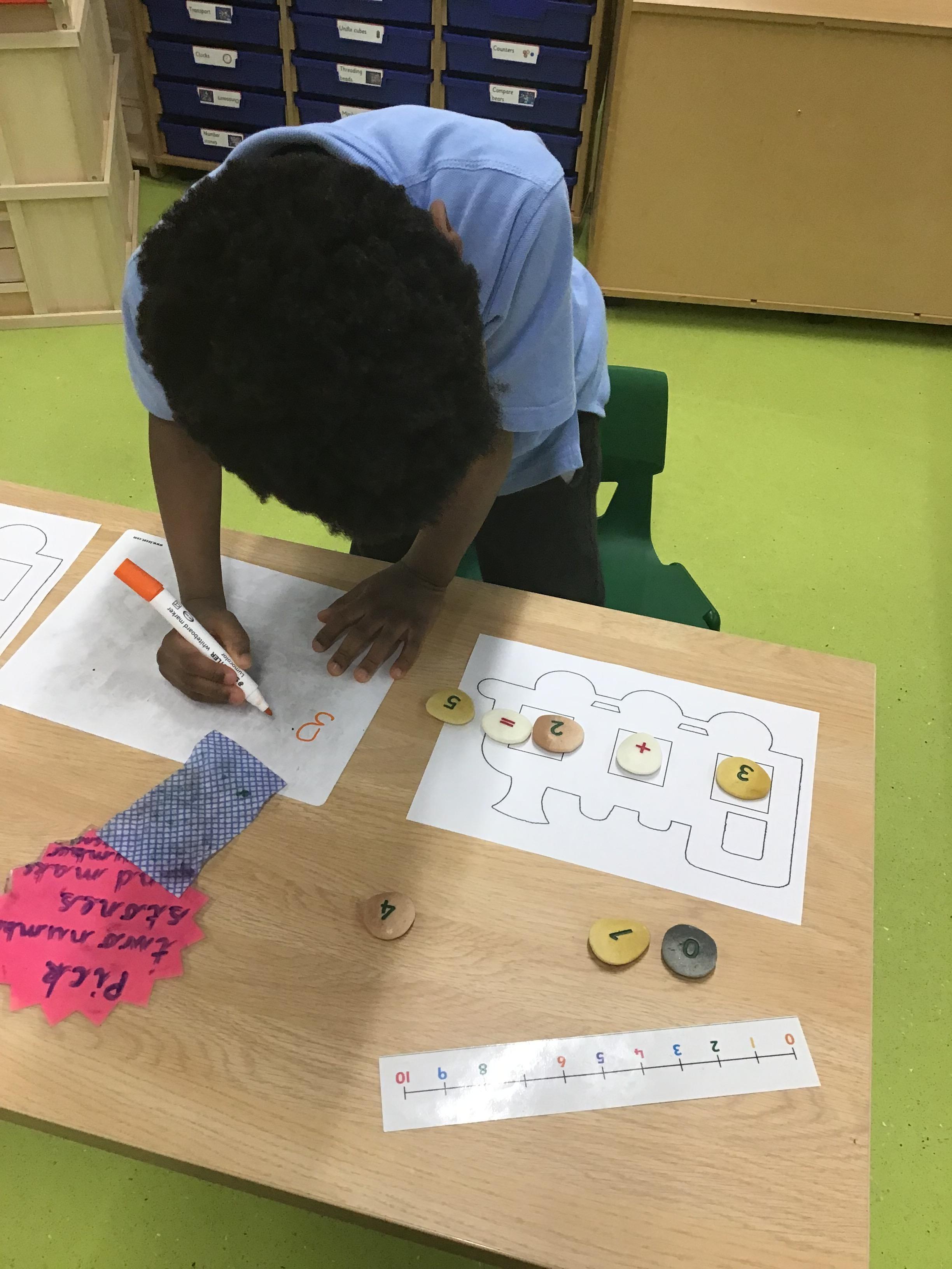In maths, the children have been learning about the number five, six and seven. The children sang the song, 'Five Little Men in a Flying Saucer,' and then considered how they could place their aliens in the space ship. We then looked at what would happen if we had six aliens and then seven. The children have worked hard on their verbal reasoning skills and could explain how they knew the number was six or seven, based on the arrangements they made on their space ships.
