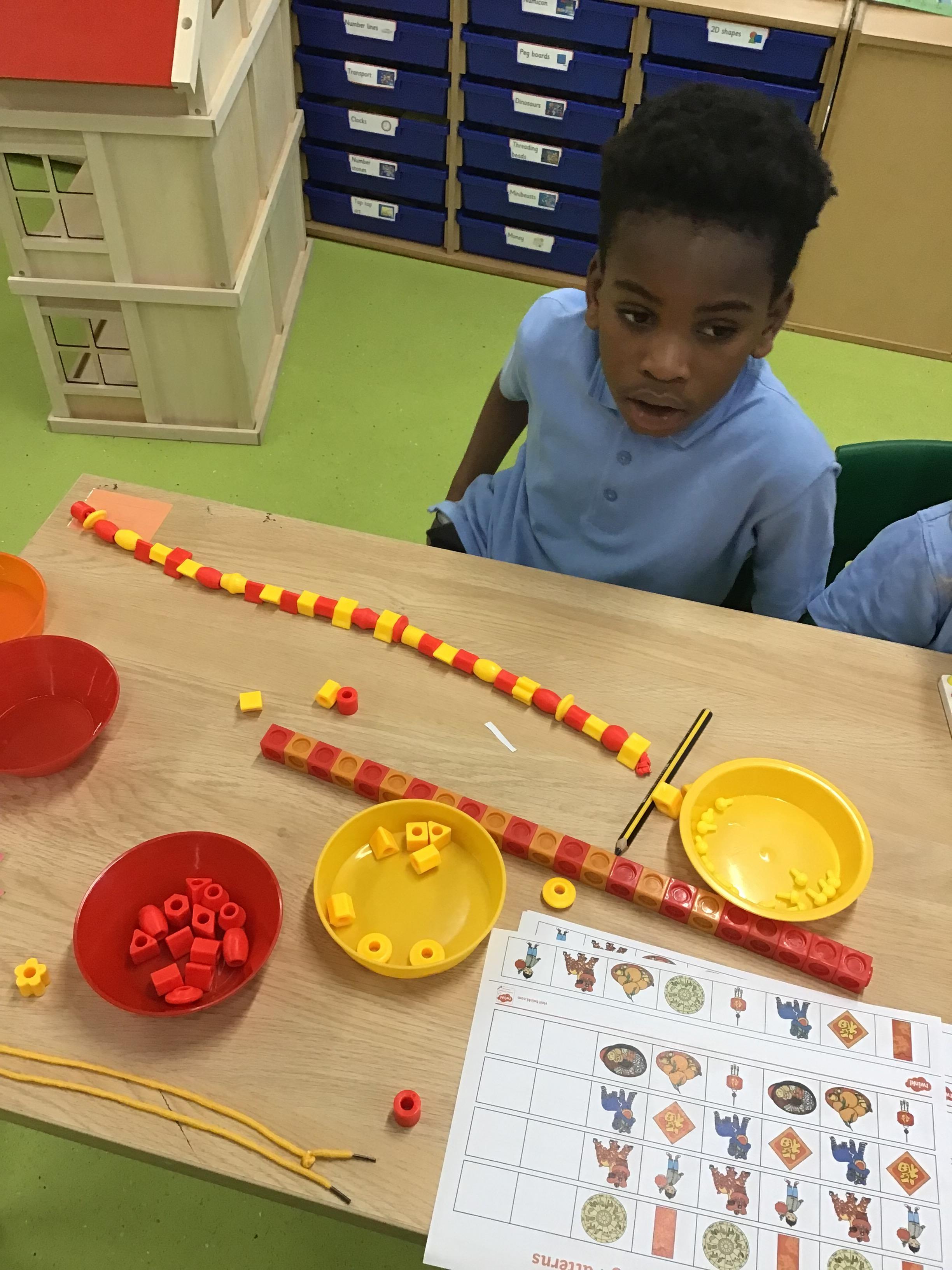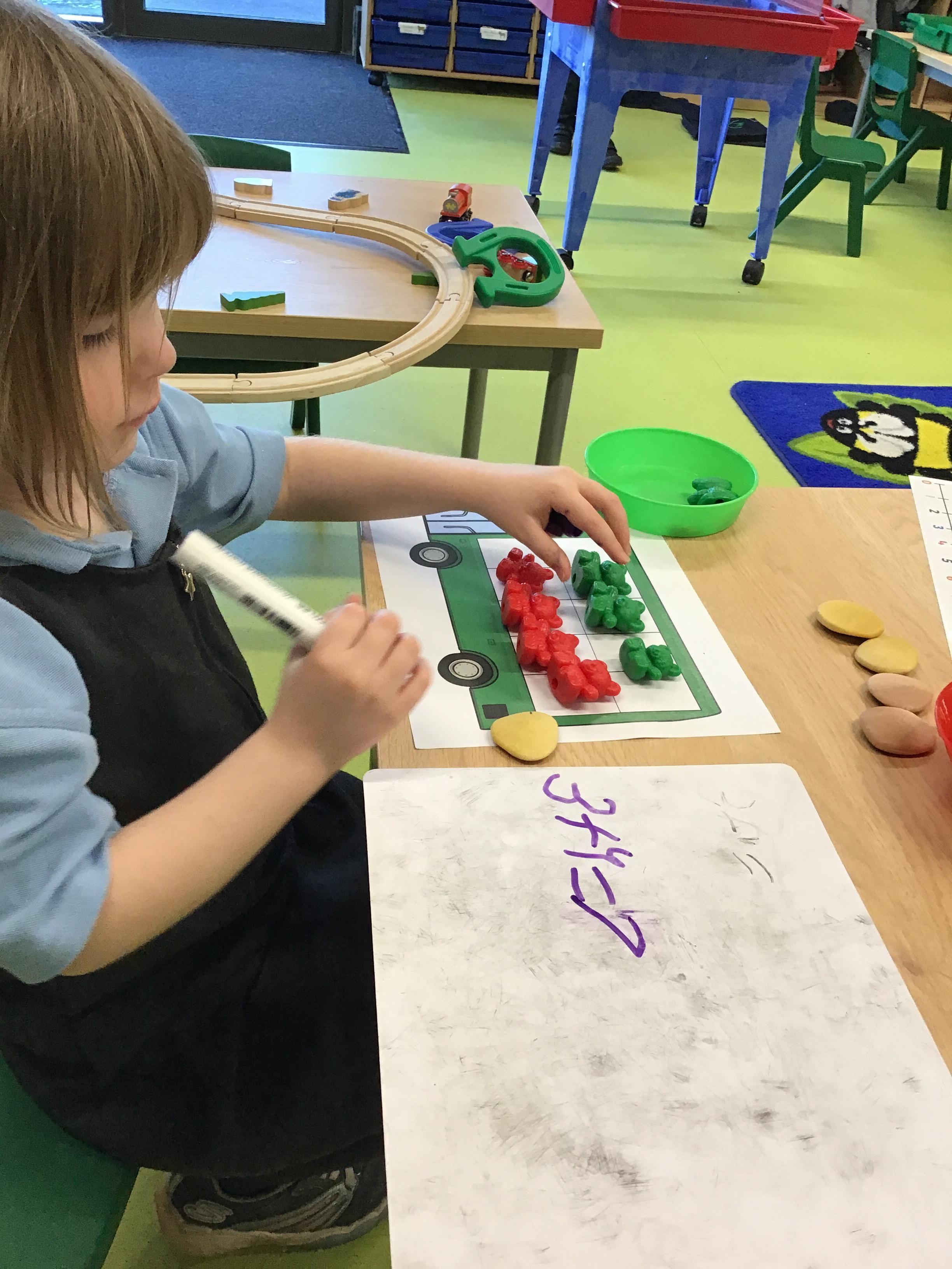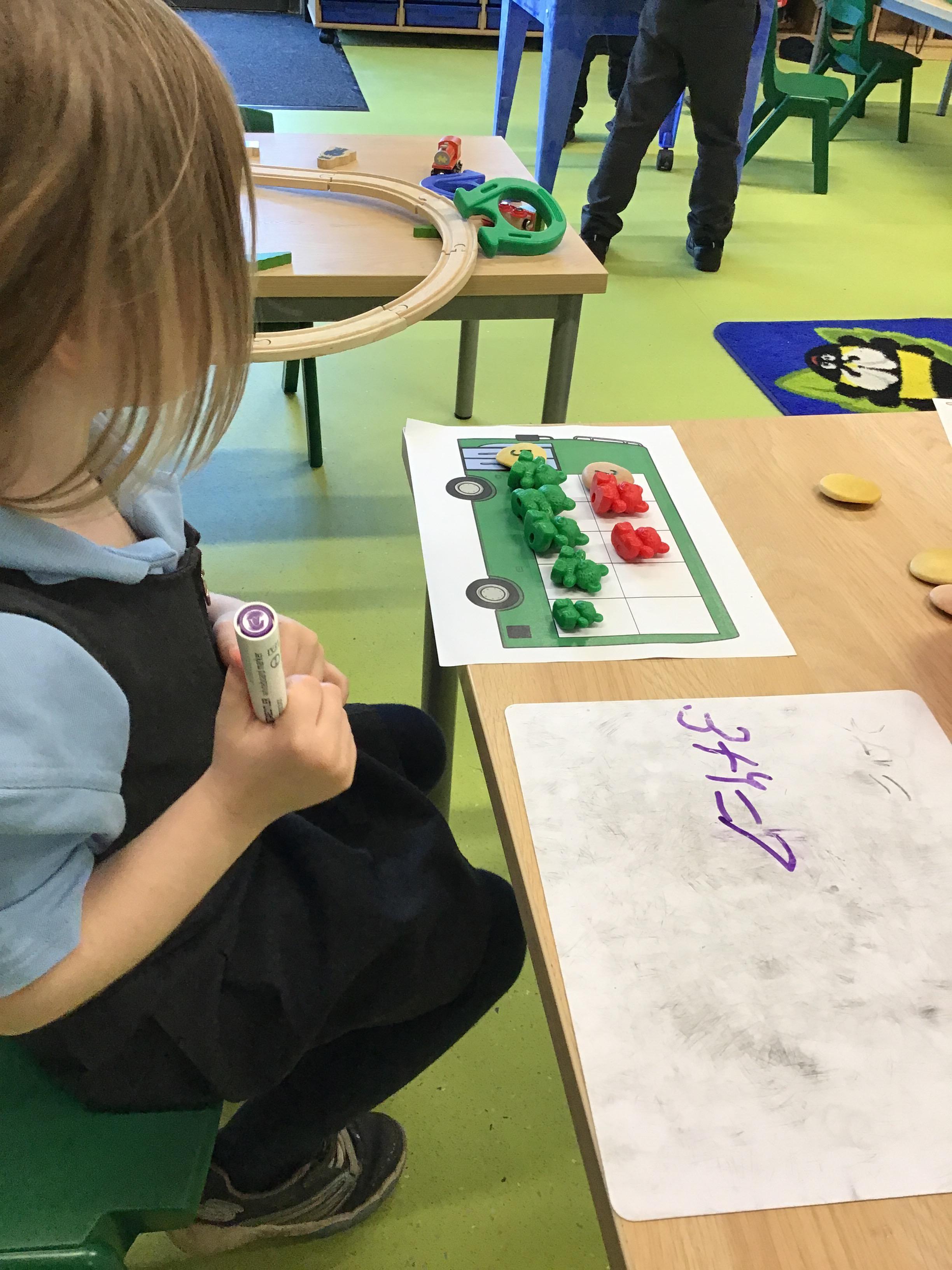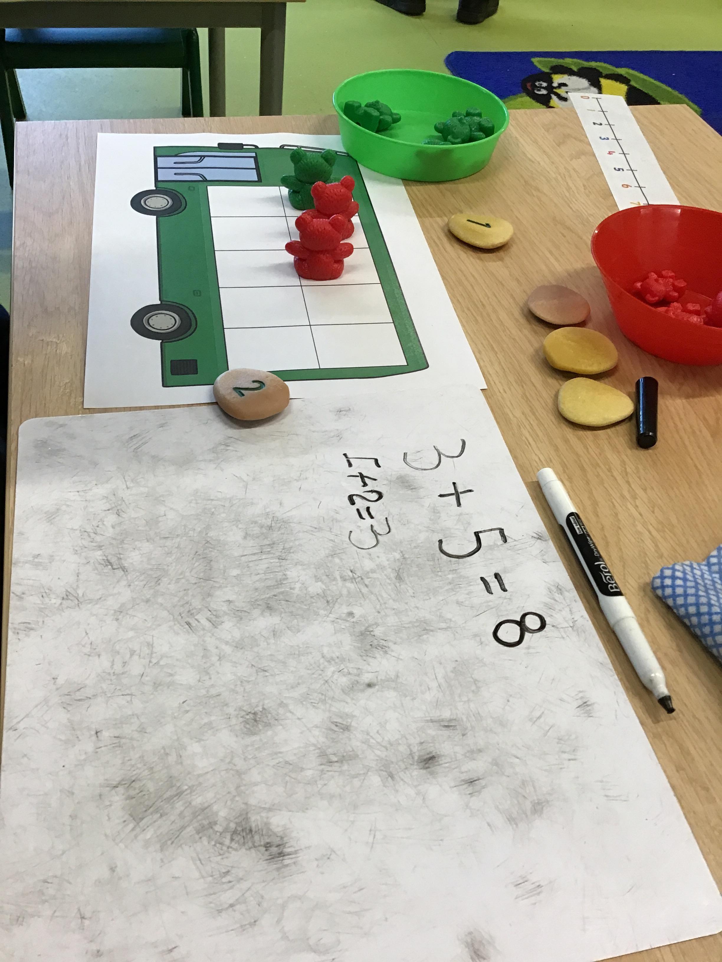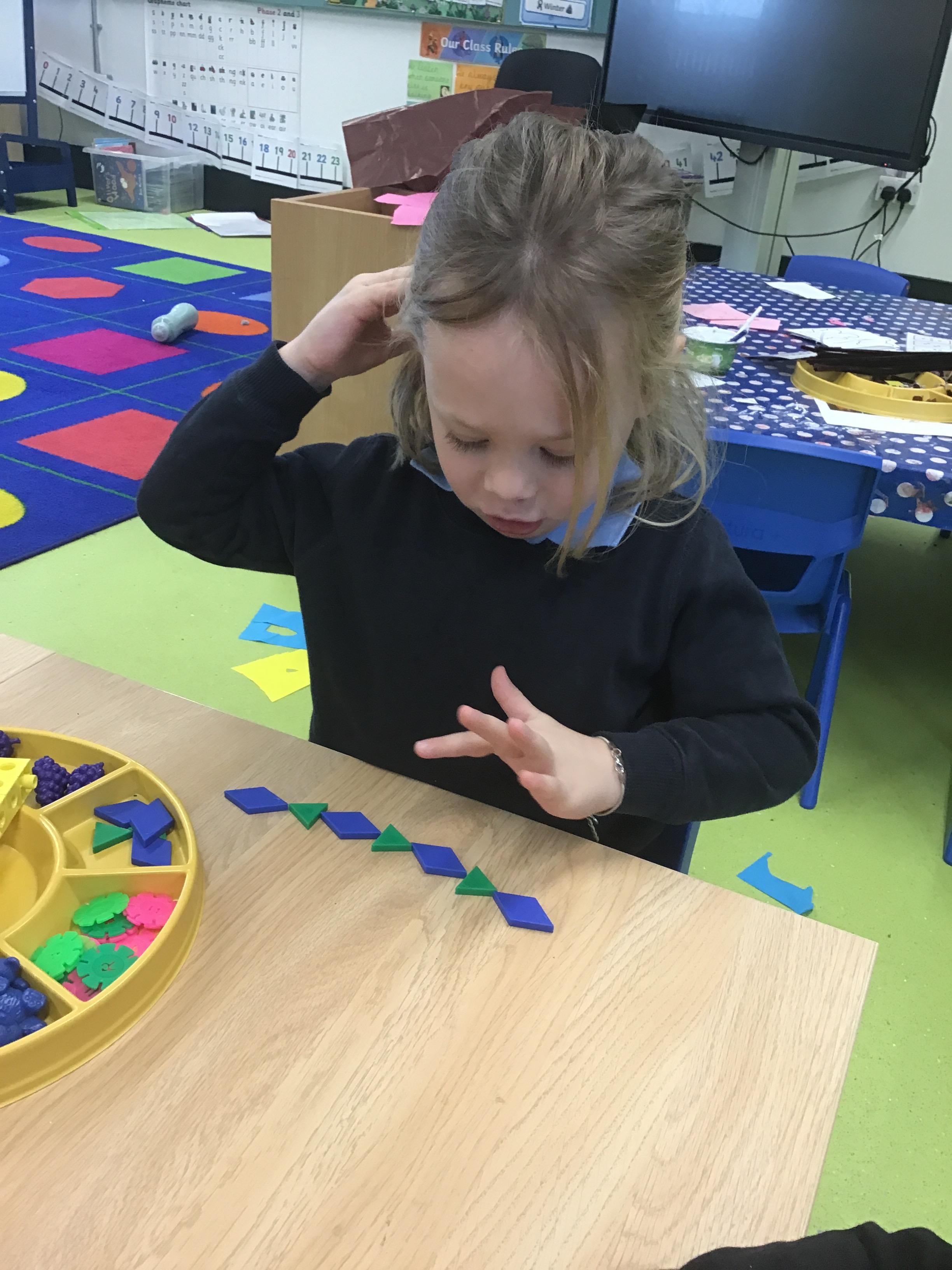 In maths, the children have been learning about the number five, six and seven. The children sang the song, 'Five Little Men in a Flying Saucer,' and then considered how they could place their aliens in the space ship. We then looked at what would happen if we had six aliens and then seven. The children have worked hard on their verbal reasoning skills and could explain how they knew the number was six or seven, based on the arrangements they made on their space ships.