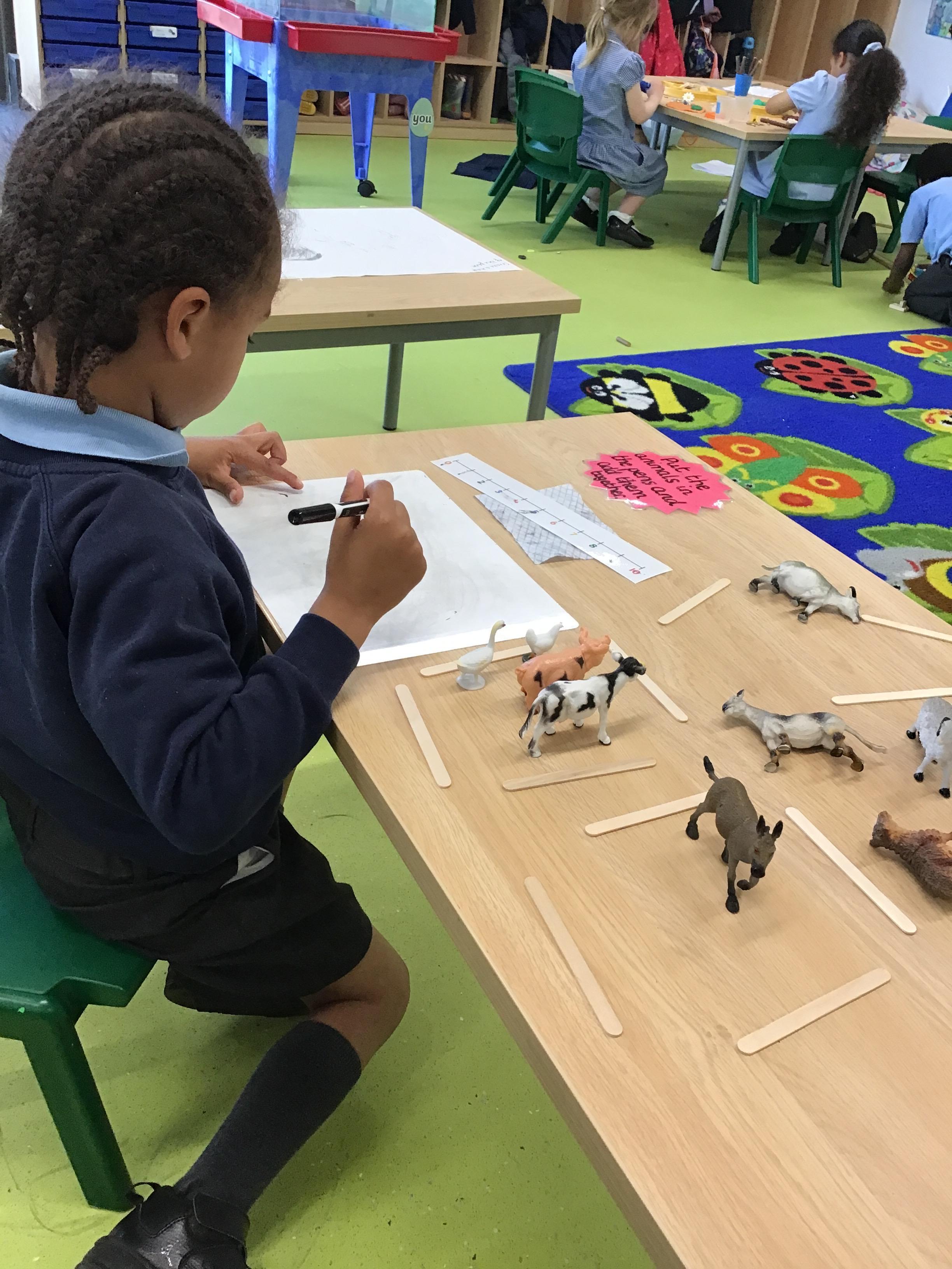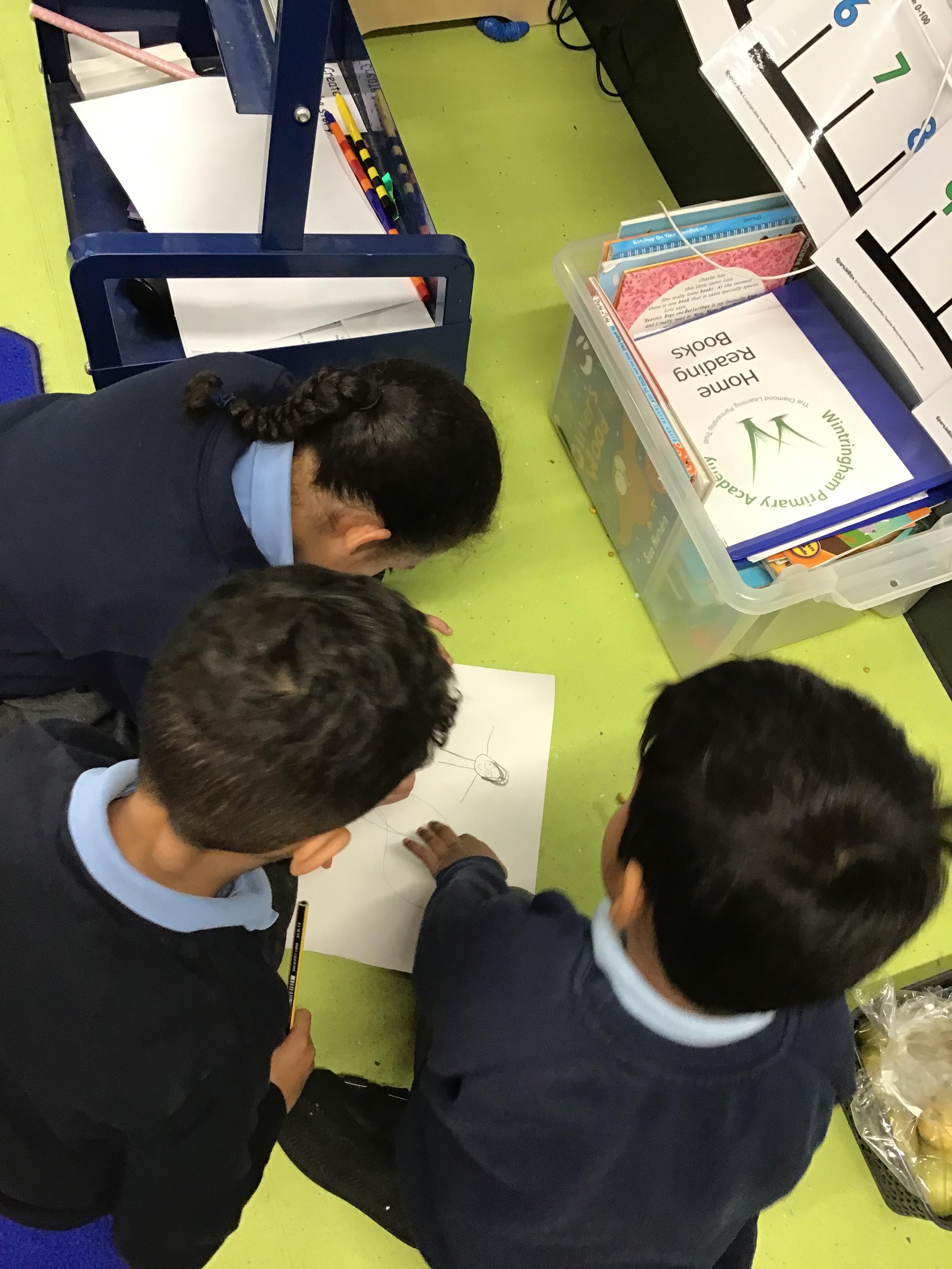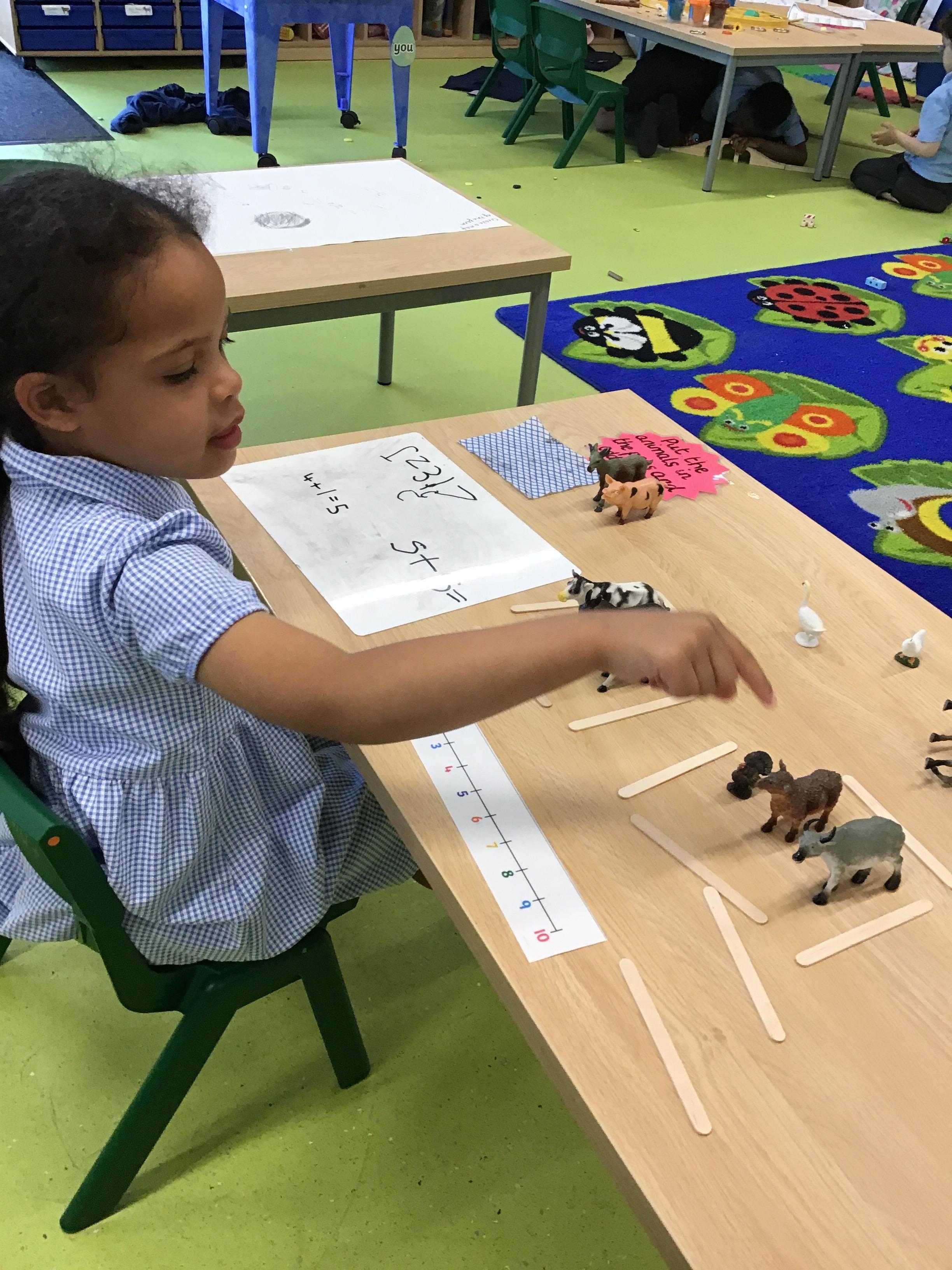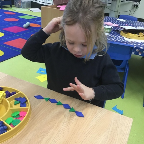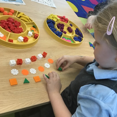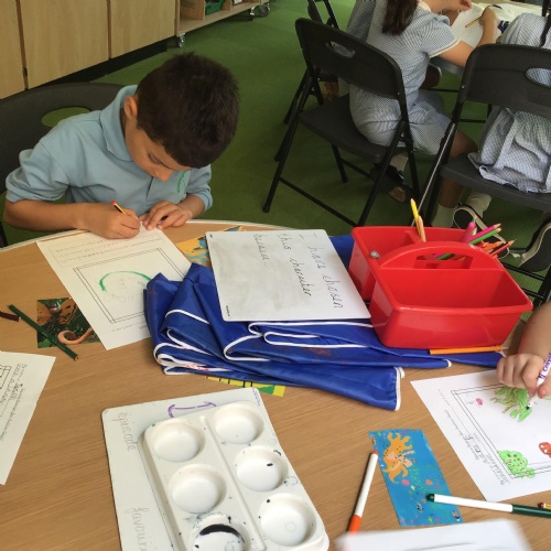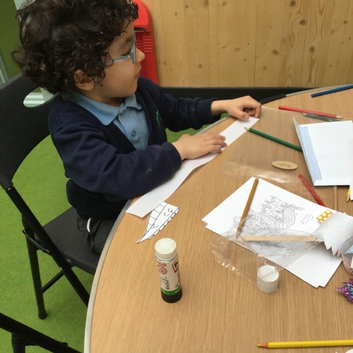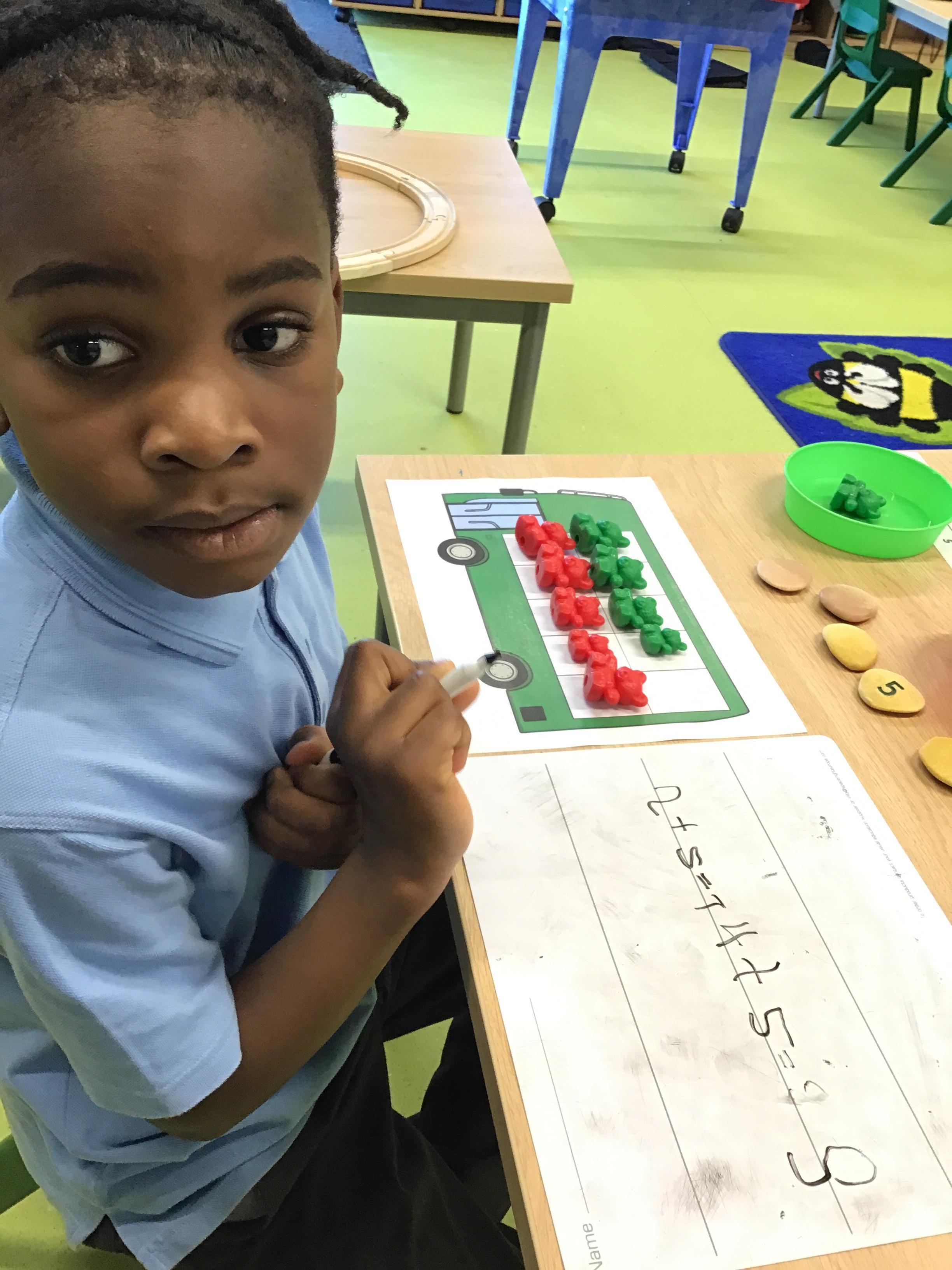 In maths, the children have been learning about the number five, six and seven. The children sang the song, 'Five Little Men in a Flying Saucer,' and then considered how they could place their aliens in the space ship. We then looked at what would happen if we had six aliens and then seven. The children have worked hard on their verbal reasoning skills and could explain how they knew the number was six or seven, based on the arrangements they made on their space ships.