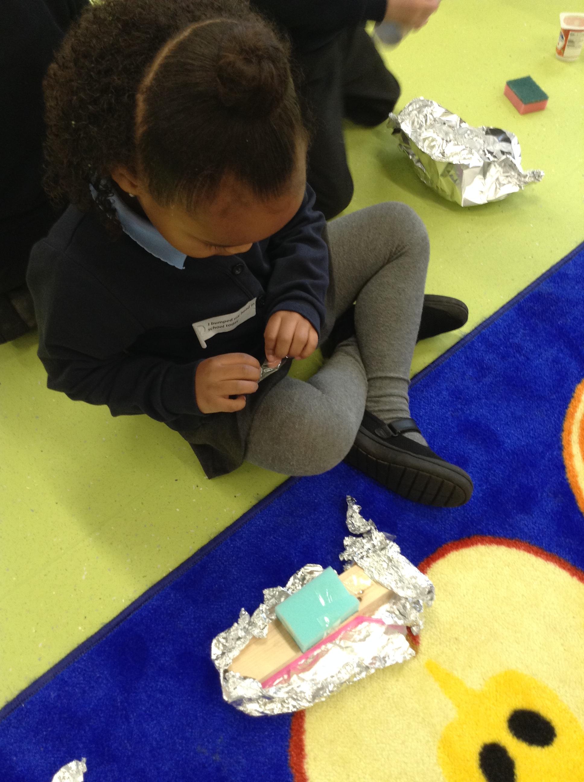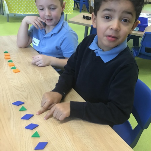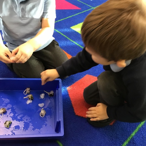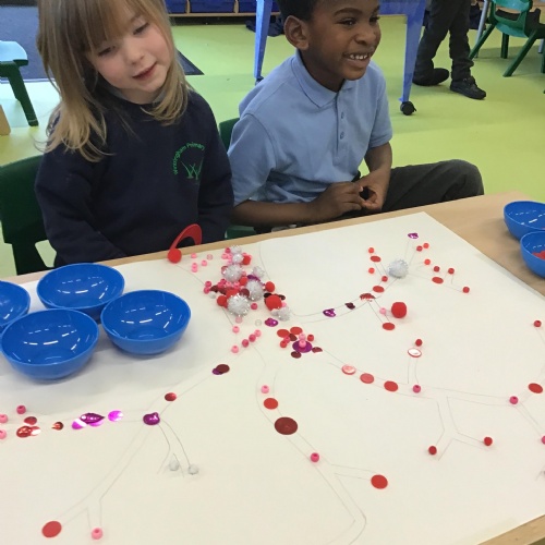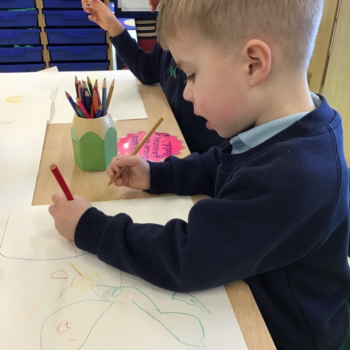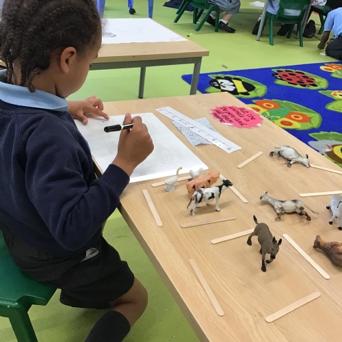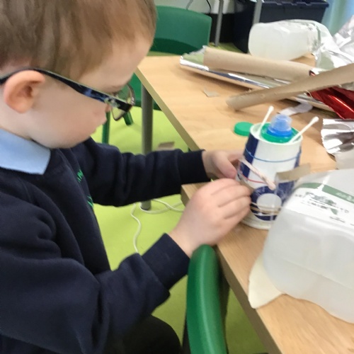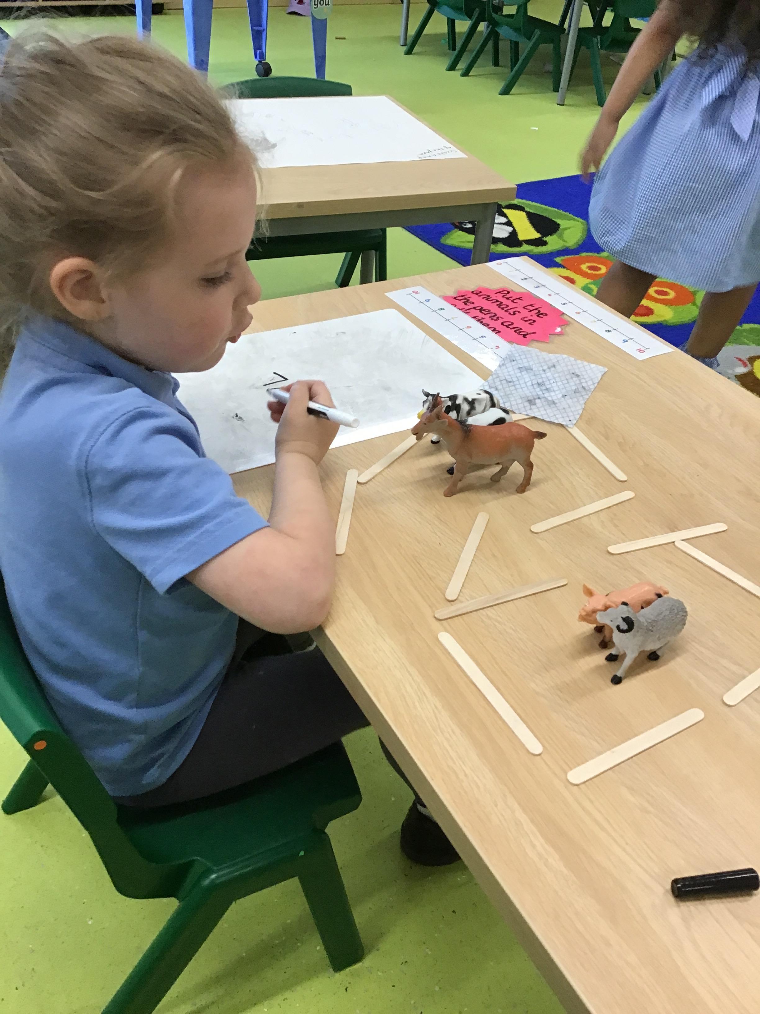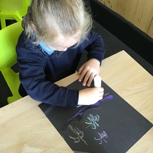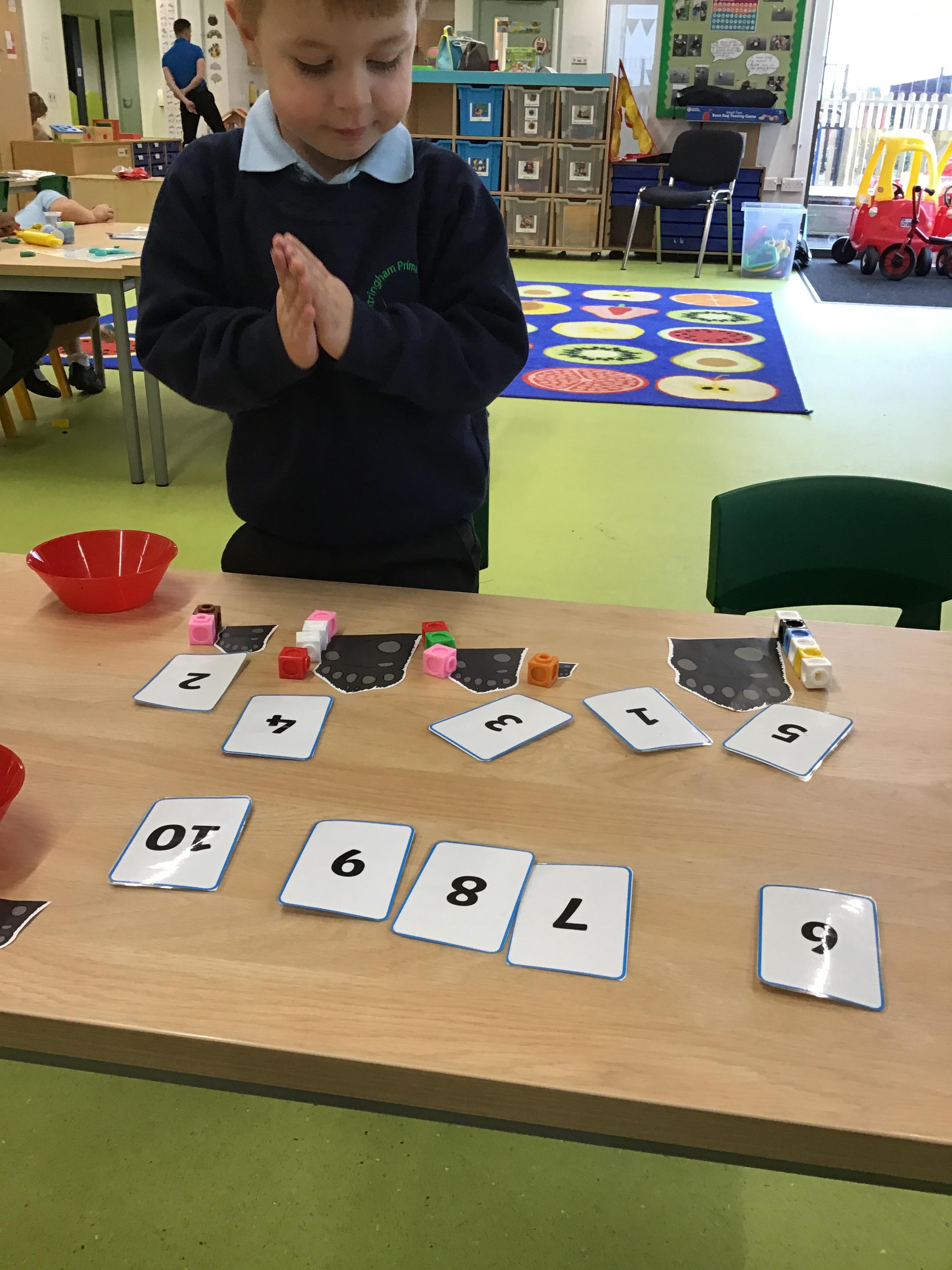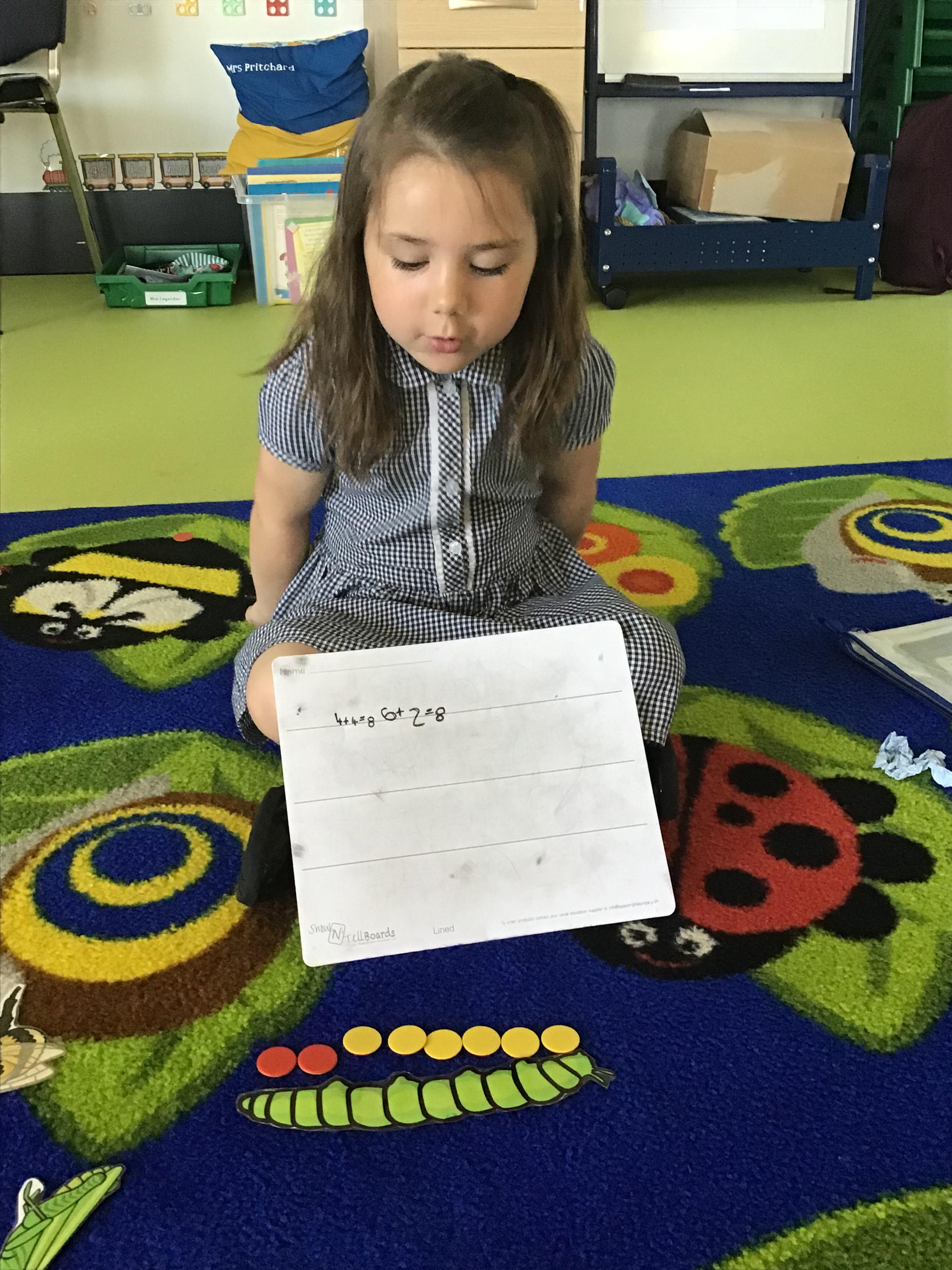 In maths, the children have been learning about the number five, six and seven. The children sang the song, 'Five Little Men in a Flying Saucer,' and then considered how they could place their aliens in the space ship. We then looked at what would happen if we had six aliens and then seven. The children have worked hard on their verbal reasoning skills and could explain how they knew the number was six or seven, based on the arrangements they made on their space ships.