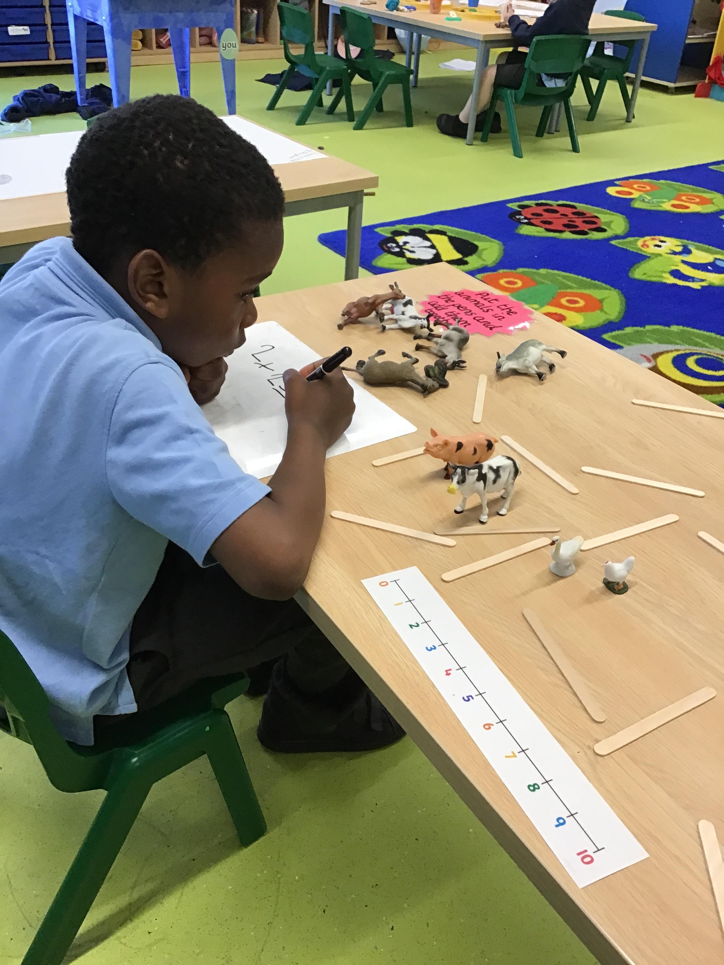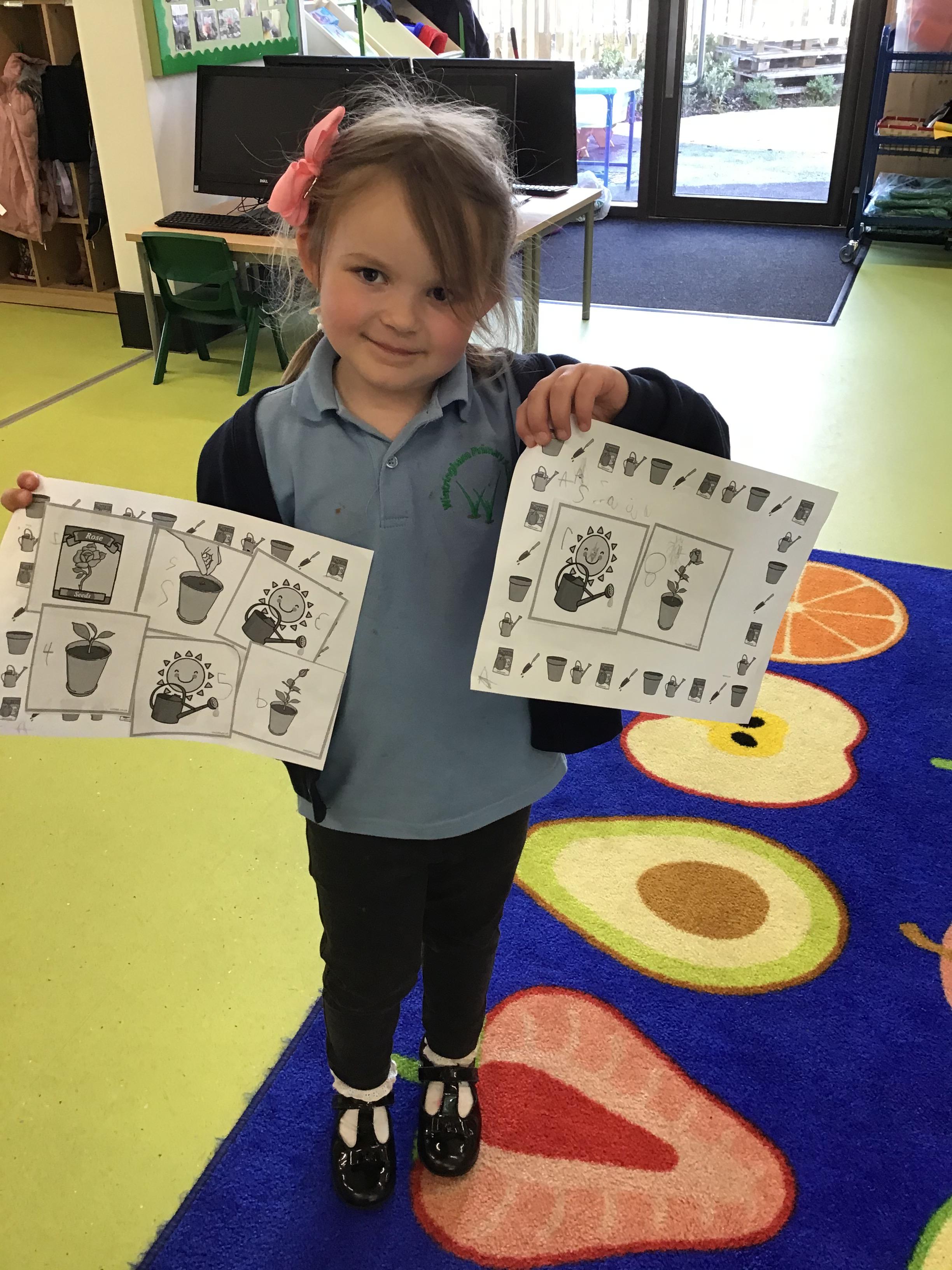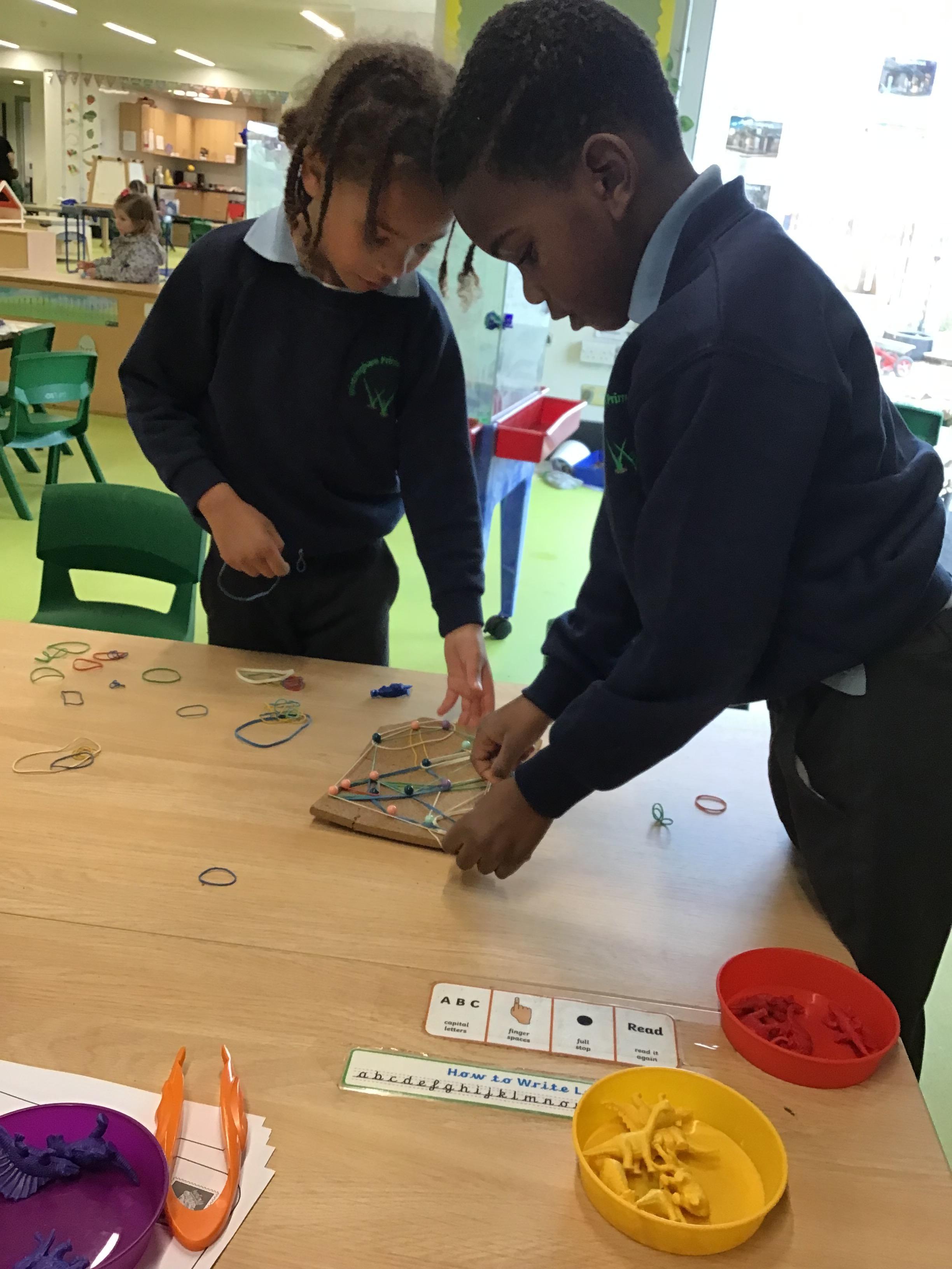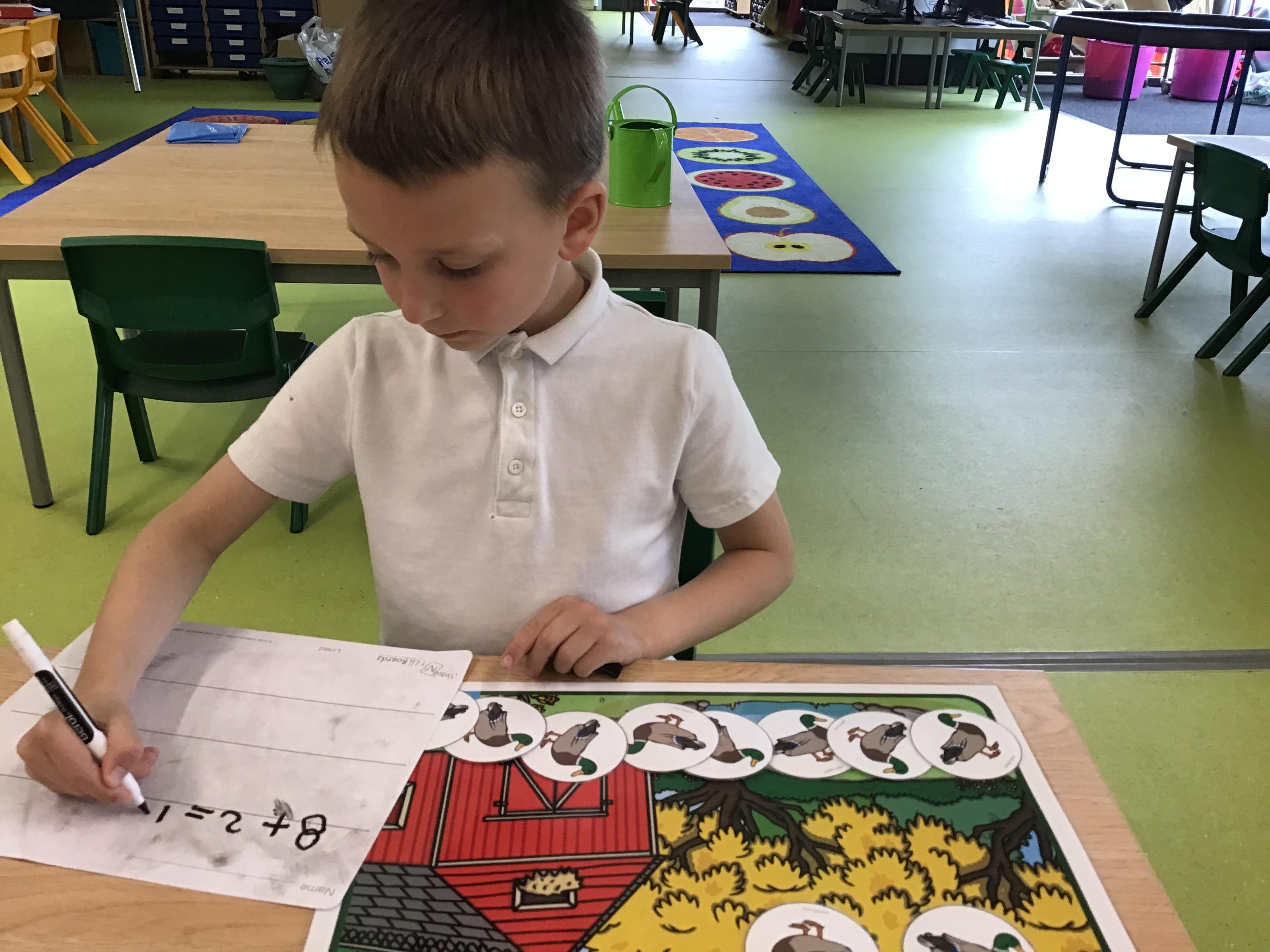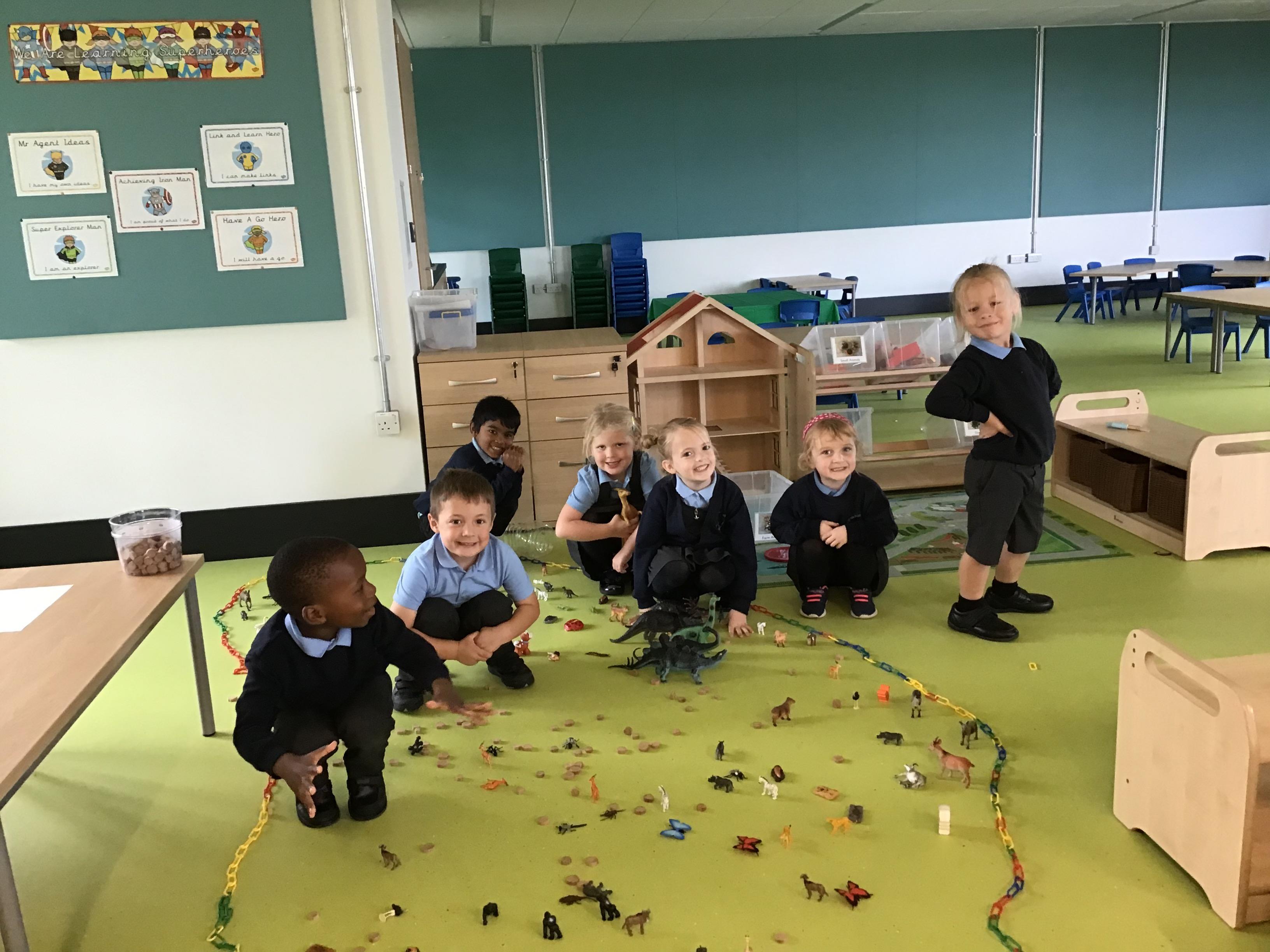 In maths, the children have been learning about the number five, six and seven. The children sang the song, 'Five Little Men in a Flying Saucer,' and then considered how they could place their aliens in the space ship. We then looked at what would happen if we had six aliens and then seven. The children have worked hard on their verbal reasoning skills and could explain how they knew the number was six or seven, based on the arrangements they made on their space ships.