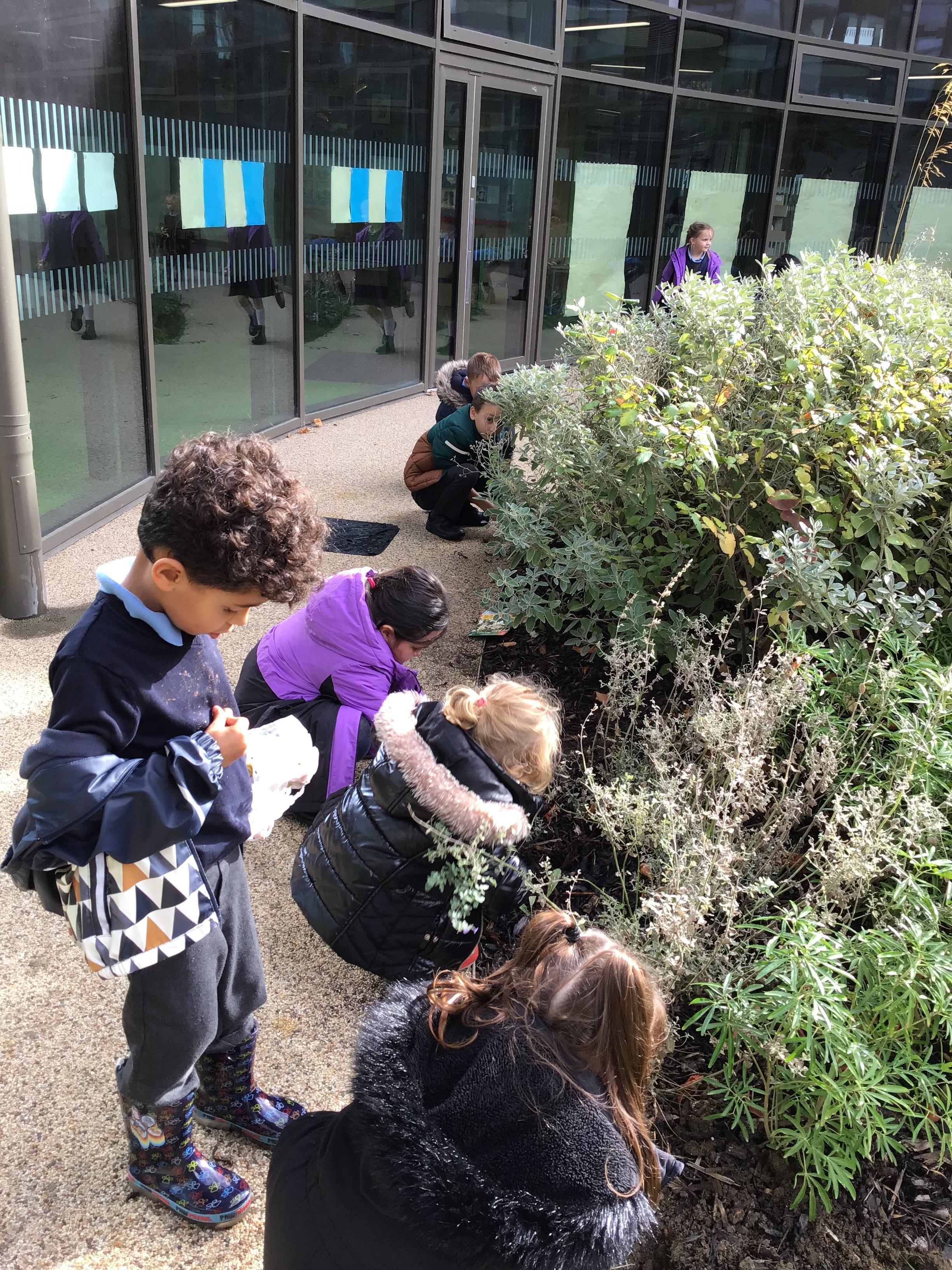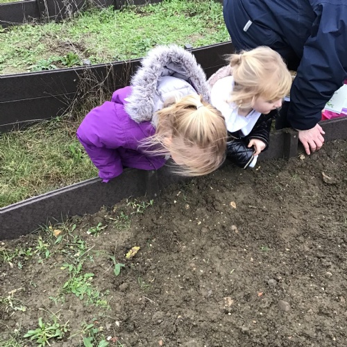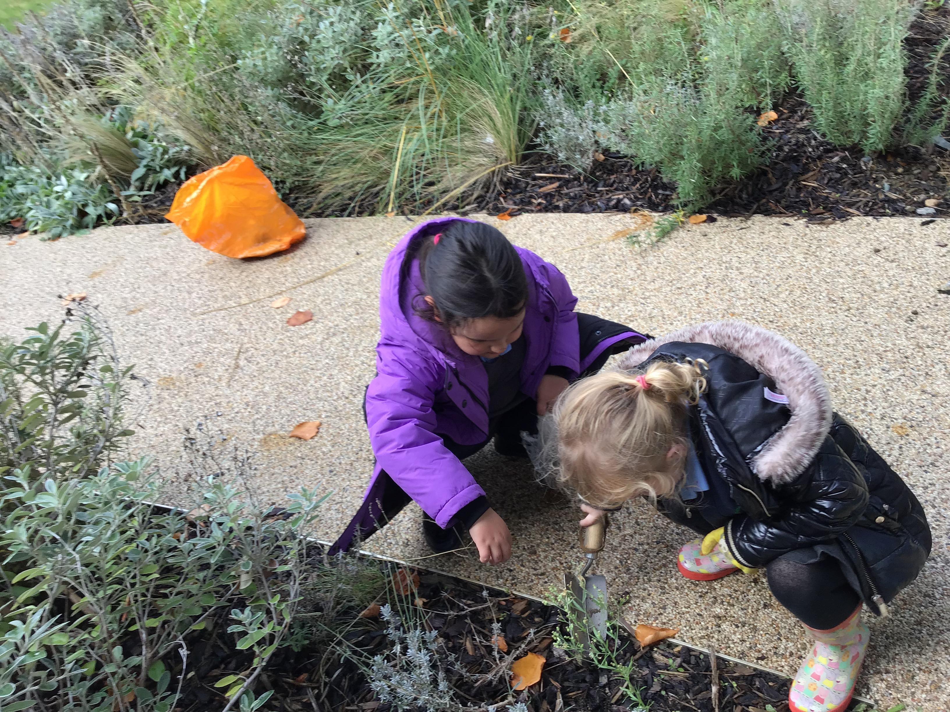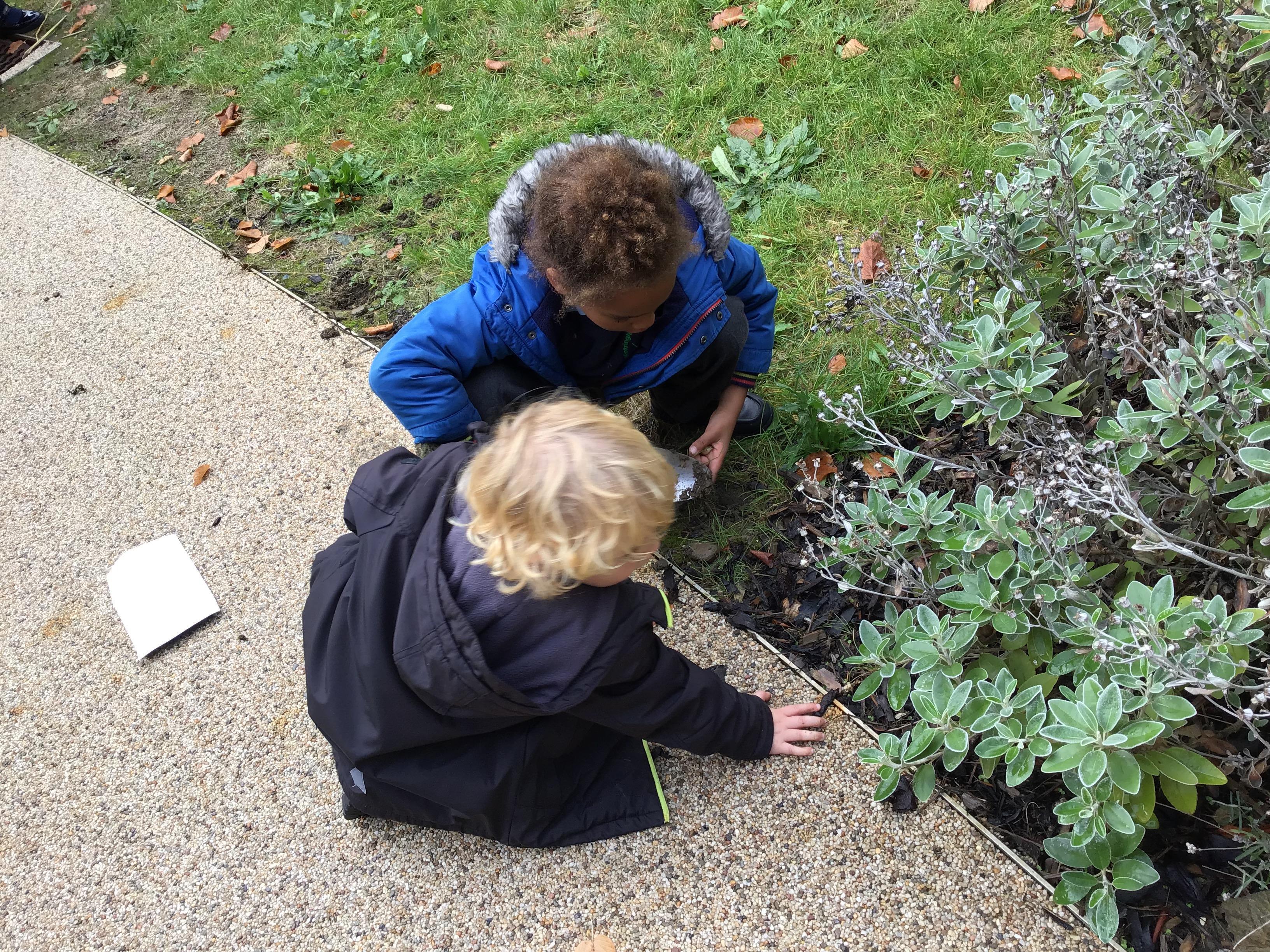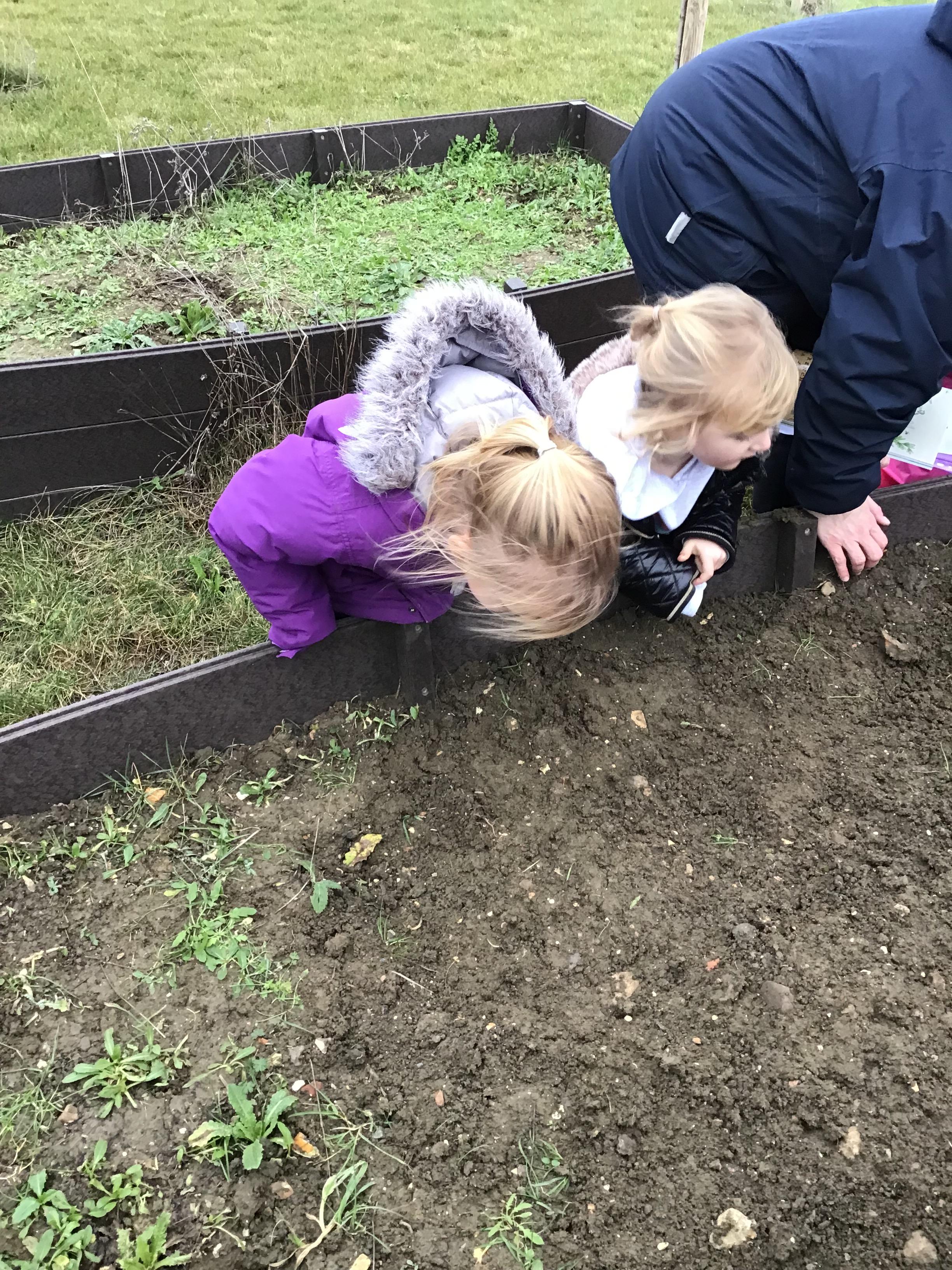 Due to the rain yesterday, bulb planting was delayed until today. The children enjoyed planting the bulbs and we can't wait to see them flower in the spring!