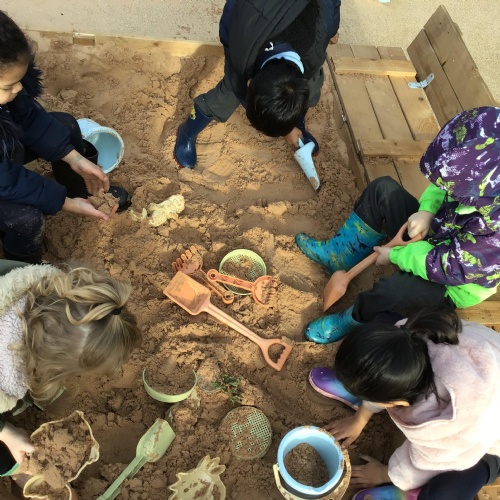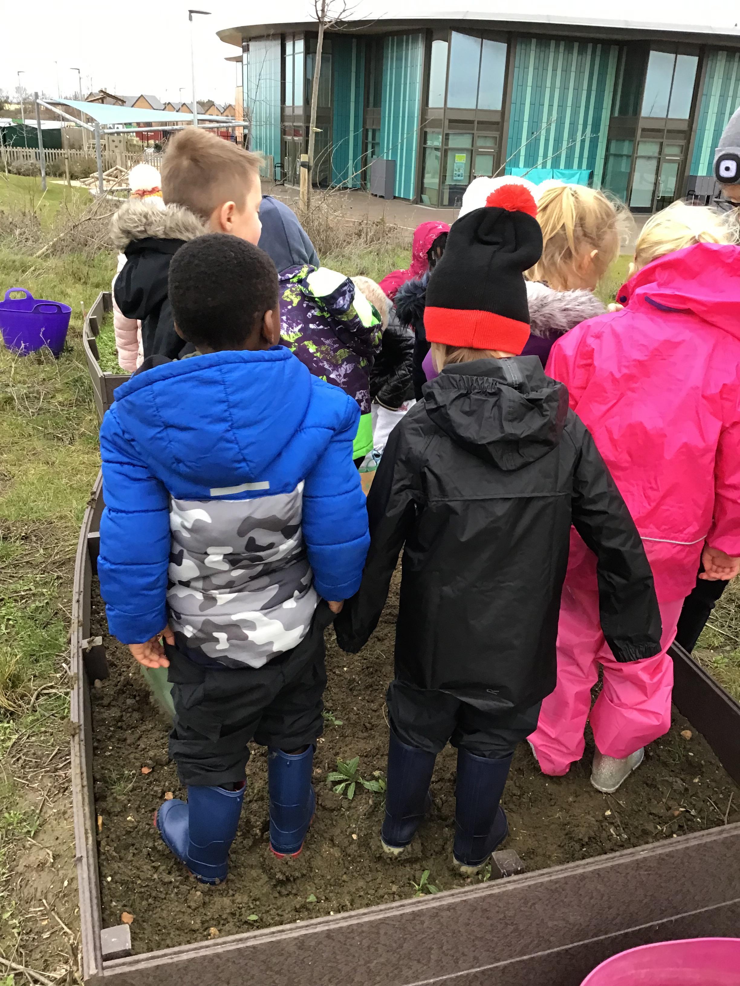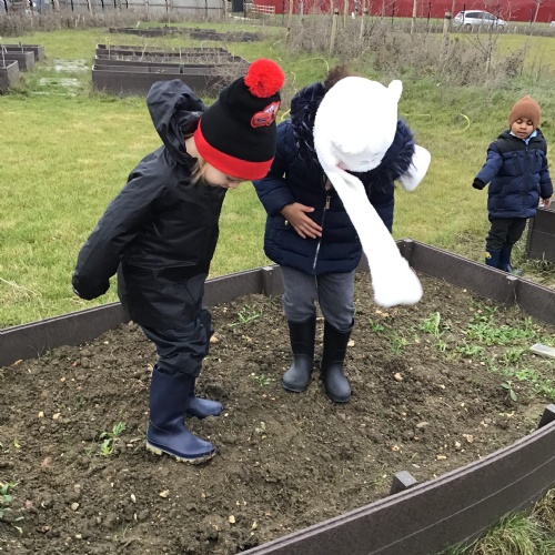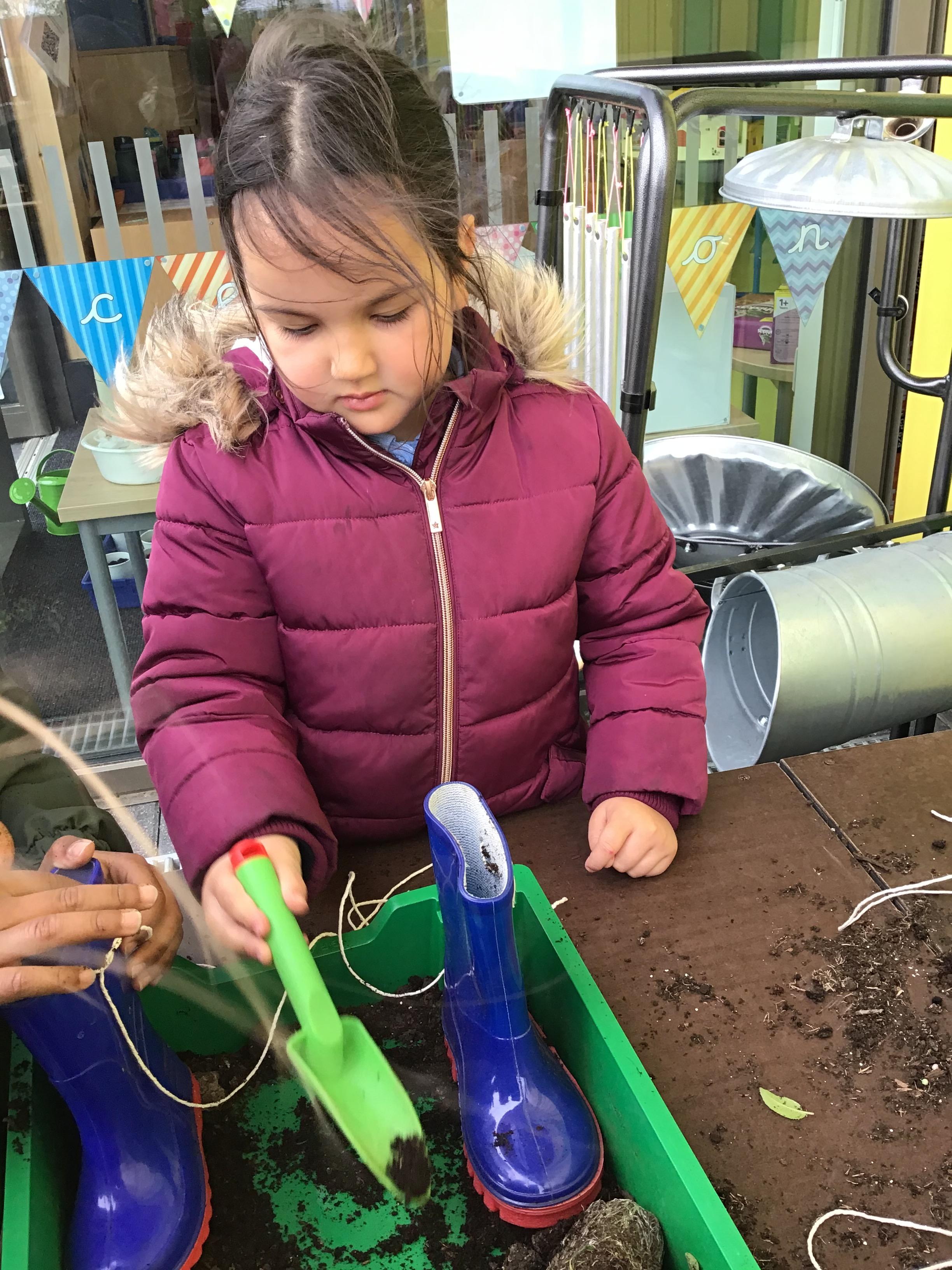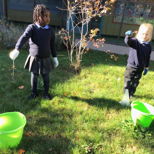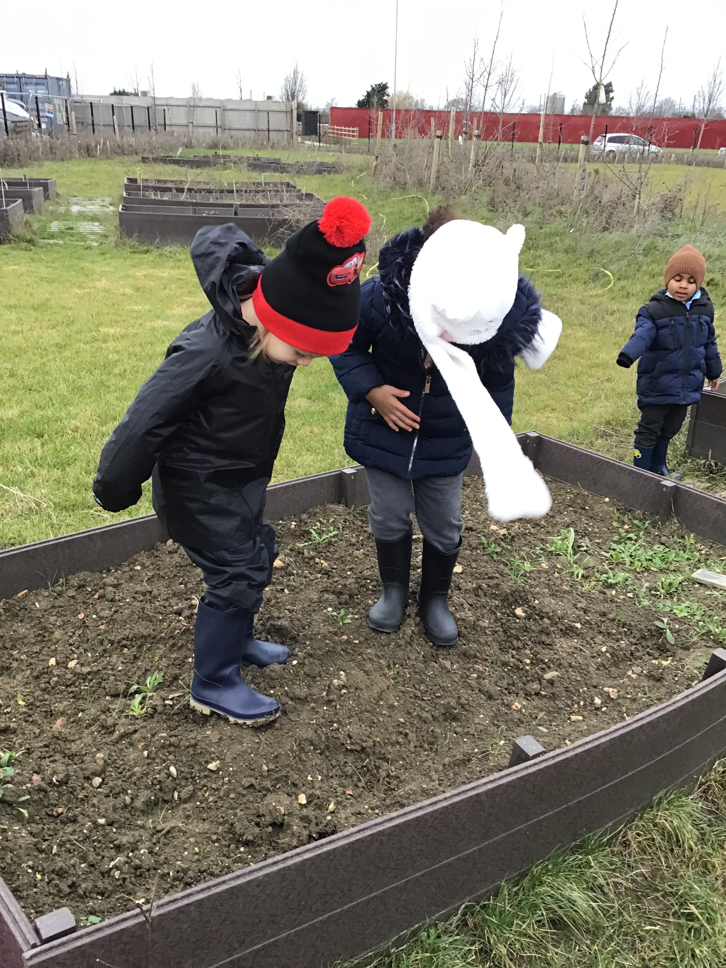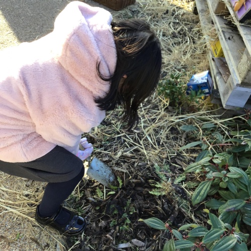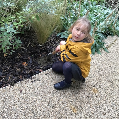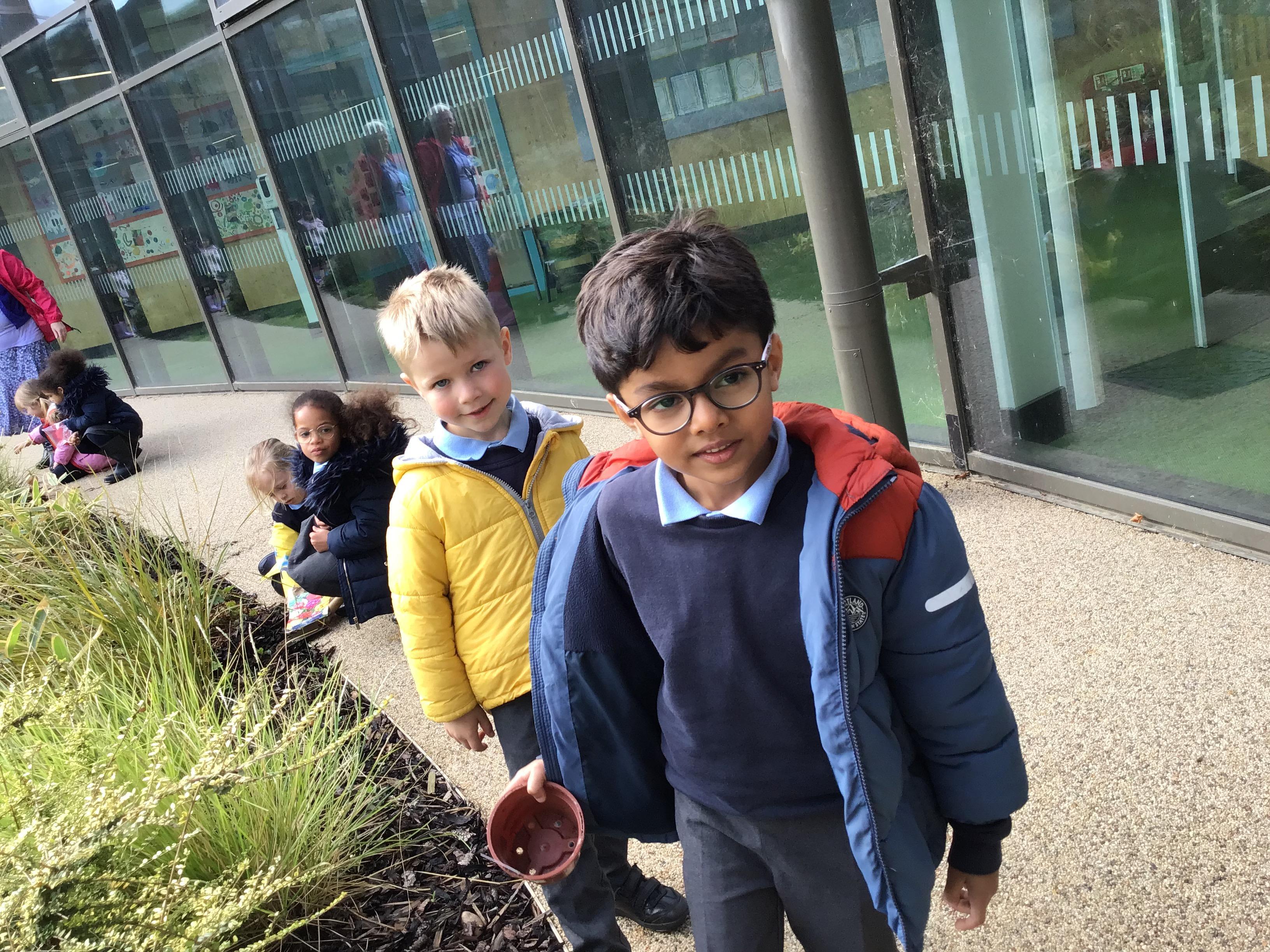 Due to the rain yesterday, bulb planting was delayed until today. The children enjoyed planting the bulbs and we can't wait to see them flower in the spring!