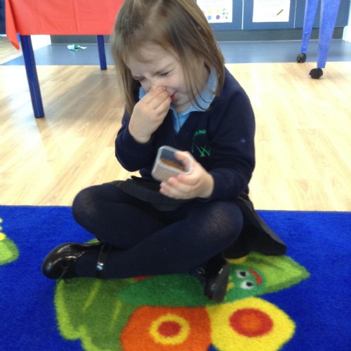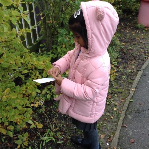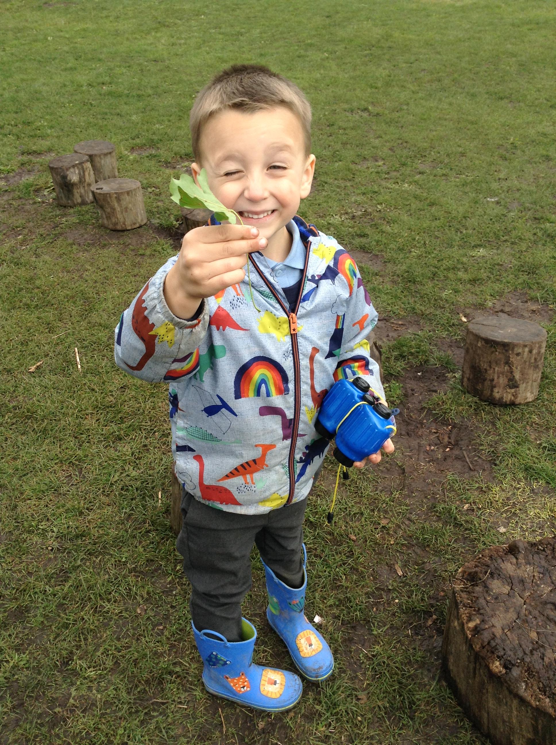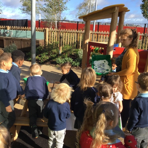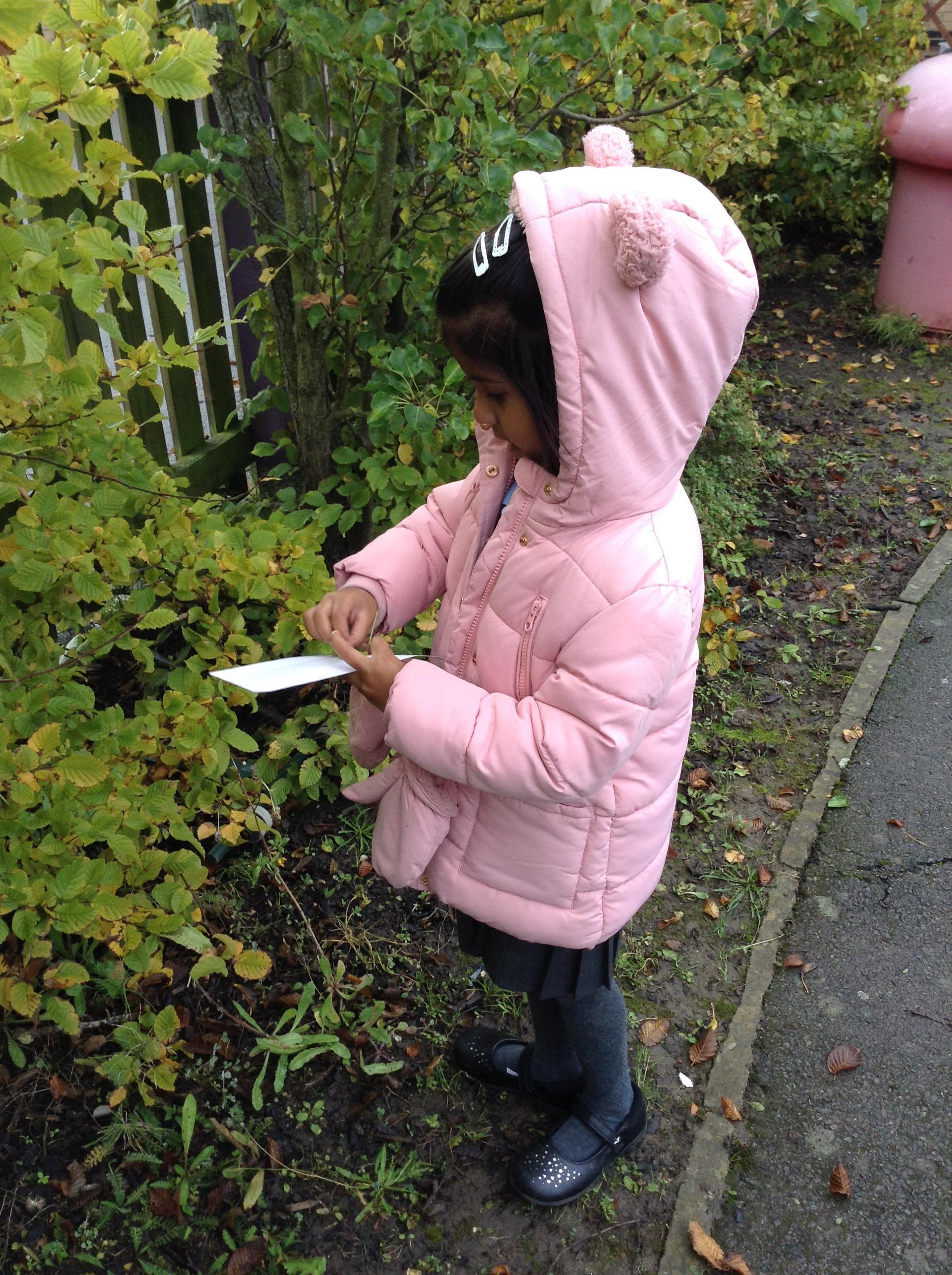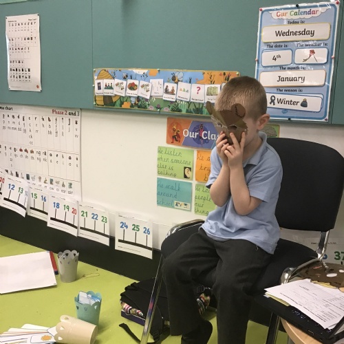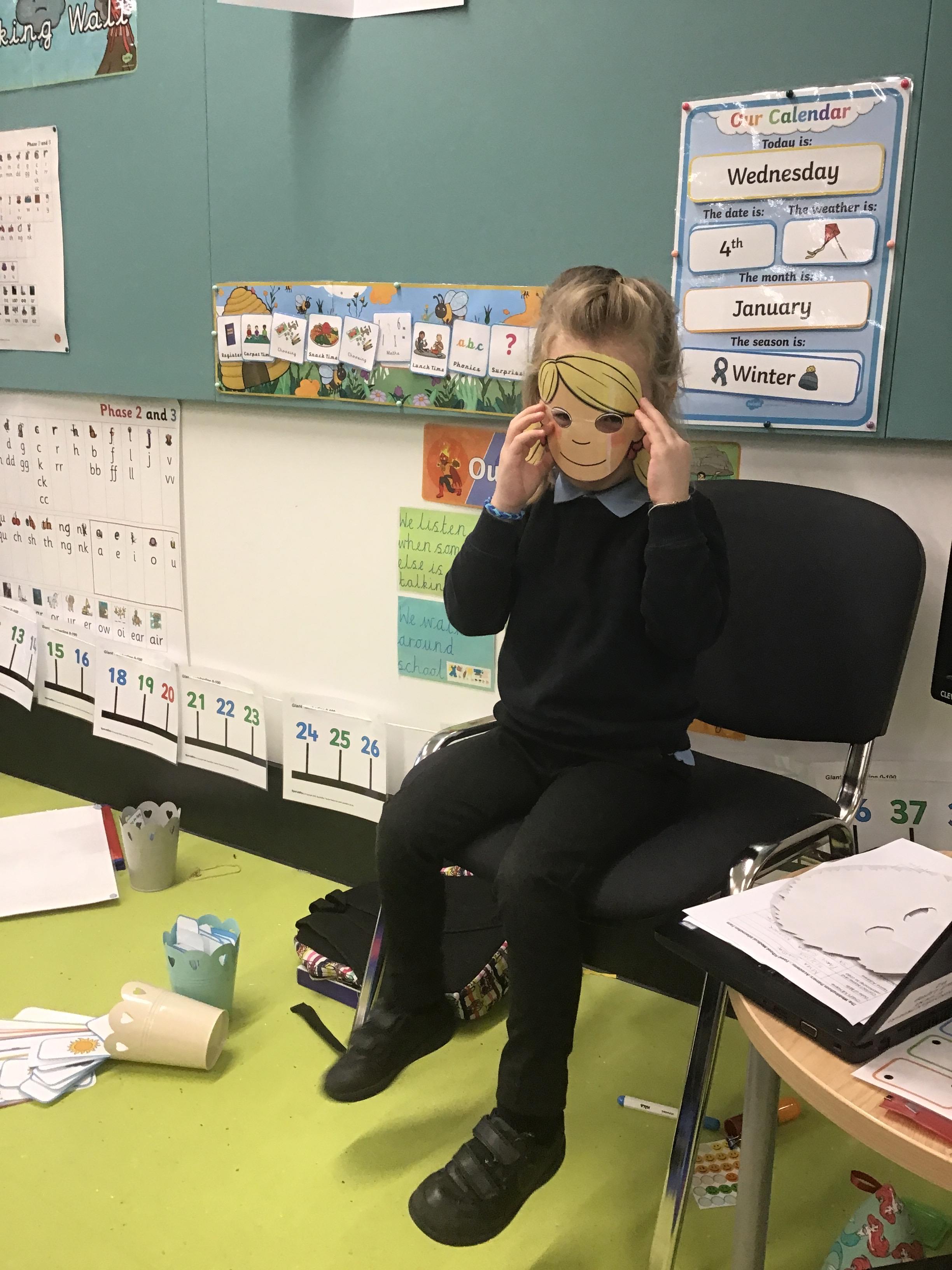 This week the children have been learning all about their five senses. A day was spent exploring each sense and the children enjoyed a range of activities, from making a bowl of silly soup, listening to the different sounds that various musical instruments made, writing down what they could see through a pair of binoculars, touching their heads, shoulders, knees and toes and labelling the parts of the body and also smelling different things (they all liked the smell of the chocolate sauce and the jam, but not so much the coffee). The children have been busy independently painting large portraits of themselves, making their own masks and finding out which is the most popular eye colour in reception. Please could I remind parents to write a comment in your child's reading diary when you have read with them. This could be to say that they enjoyed the story, they could identify some key words or they used the pictures to help them to read the story. Every time the children have read five times at home, they get to move their photo up on our reading snake and will receive a certificate for 25, 50, 75 and 100 reads. Over the next two weeks the children's learning will be based around the story 'A Brave Bear'. They are going to learn to re-tell the story and will also use bears to help with their counting, addition, subtraction and positional language skills. The children had their first forest school session this week and these will continue on Friday afternoons for the rest of the year, so please make sure that your child is sent in with a coat and if their wellies are not already in school, please could they be brought in for these sessions. For this week's session, the children went on the field to complete a scavenger hunt to find some special items that can be found in the outdoor area. They took it in turns to take a picture from the special bag and then went on a hunt for this item using the binoculars to help them find it. The children went to find feathers, birds, earthworms, ladybirds, leaves, spider webs and muddy footprints. They were fascinated by the helicopter seeds and what happened when they threw them up in the air. Next week we will be learning the sounds d, g and o in our phonics sessions. I hope you all have a lovely weekend