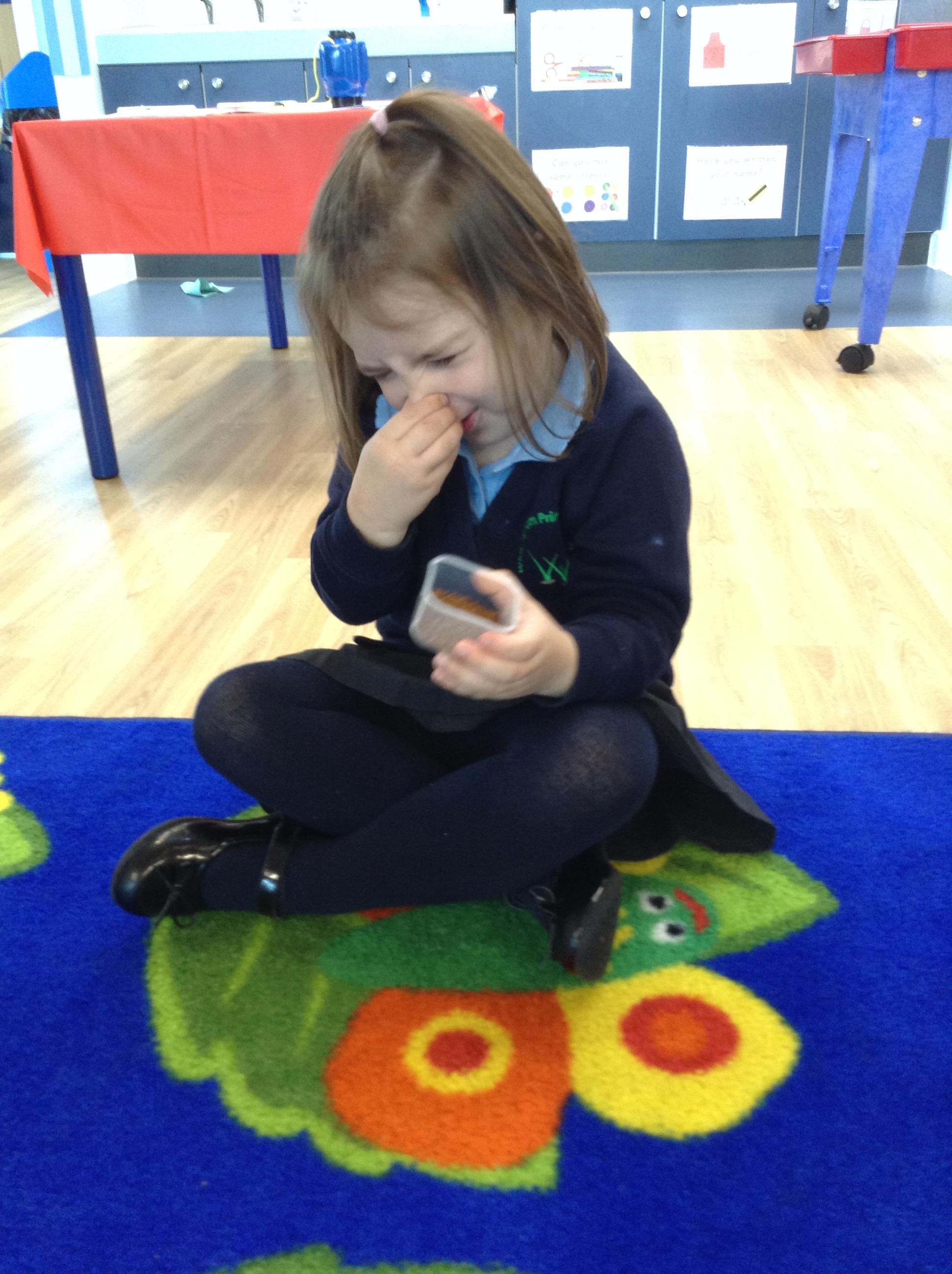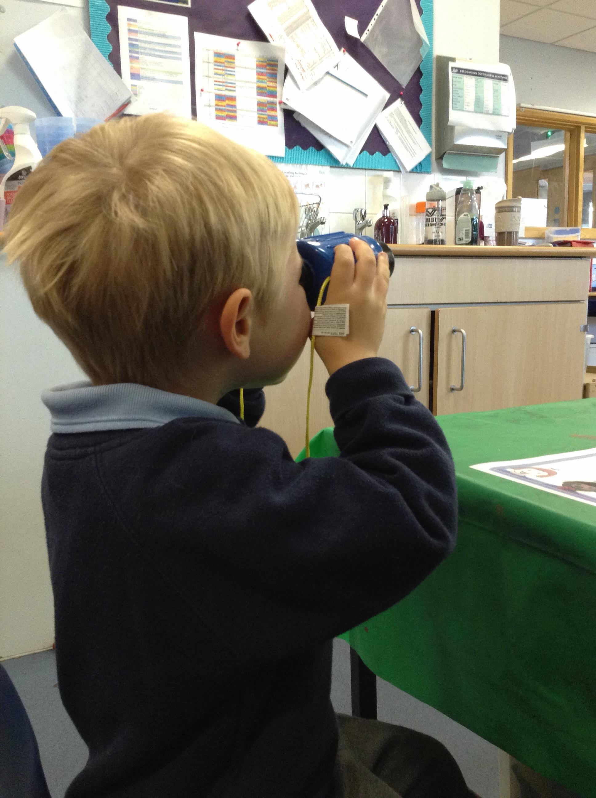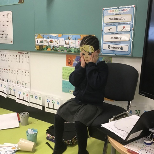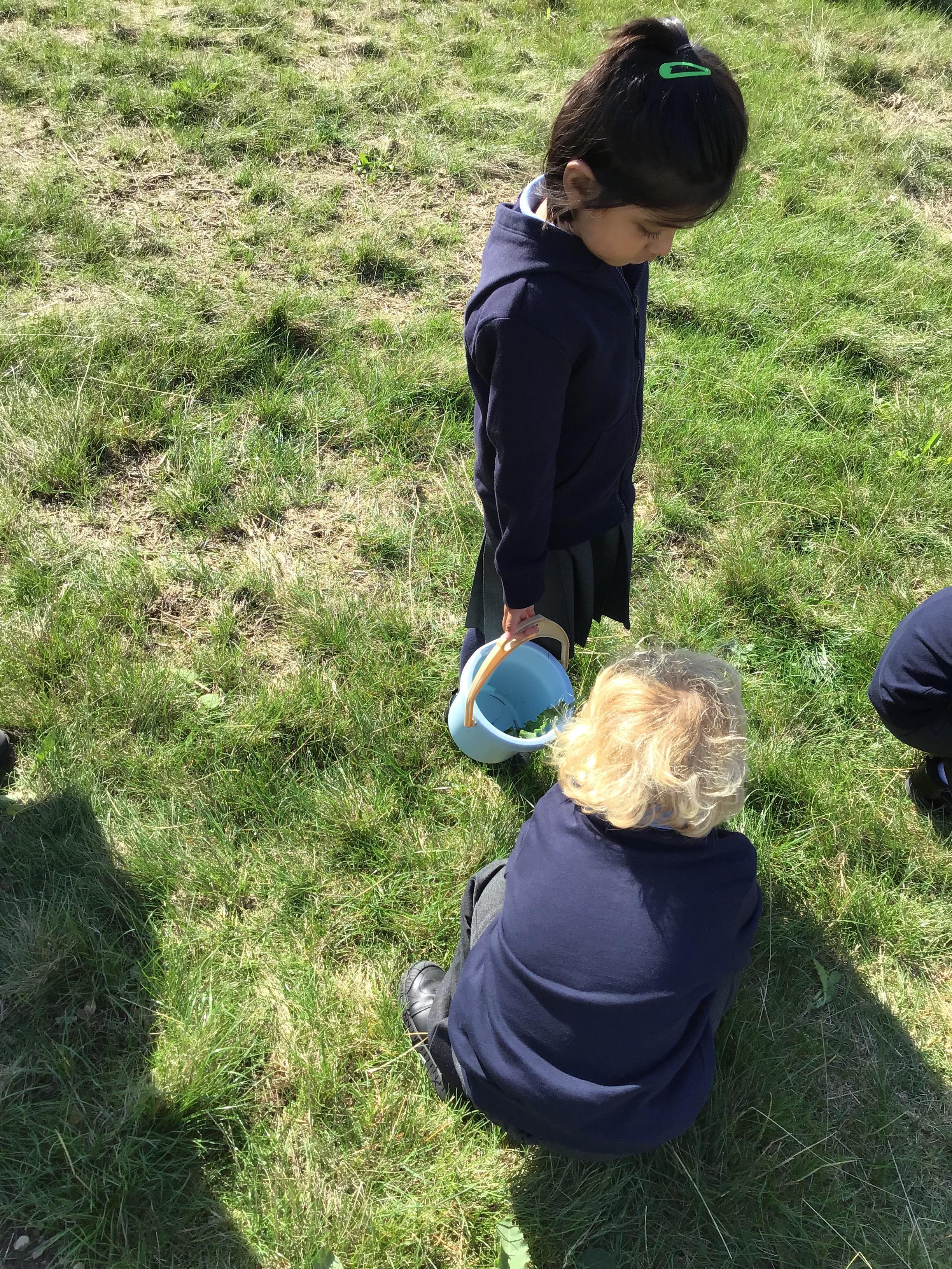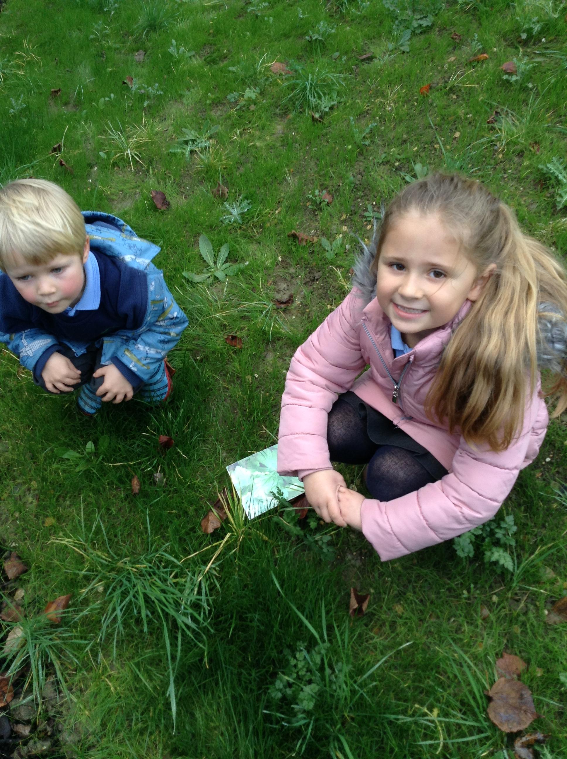 This week the children have been learning all about their five senses. A day was spent exploring each sense and the children enjoyed a range of activities, from making a bowl of silly soup, listening to the different sounds that various musical instruments made, writing down what they could see through a pair of binoculars, touching their heads, shoulders, knees and toes and labelling the parts of the body and also smelling different things (they all liked the smell of the chocolate sauce and the jam, but not so much the coffee). The children have been busy independently painting large portraits of themselves, making their own masks and finding out which is the most popular eye colour in reception. Please could I remind parents to write a comment in your child's reading diary when you have read with them. This could be to say that they enjoyed the story, they could identify some key words or they used the pictures to help them to read the story. Every time the children have read five times at home, they get to move their photo up on our reading snake and will receive a certificate for 25, 50, 75 and 100 reads. Over the next two weeks the children's learning will be based around the story 'A Brave Bear'. They are going to learn to re-tell the story and will also use bears to help with their counting, addition, subtraction and positional language skills. The children had their first forest school session this week and these will continue on Friday afternoons for the rest of the year, so please make sure that your child is sent in with a coat and if their wellies are not already in school, please could they be brought in for these sessions. For this week's session, the children went on the field to complete a scavenger hunt to find some special items that can be found in the outdoor area. They took it in turns to take a picture from the special bag and then went on a hunt for this item using the binoculars to help them find it. The children went to find feathers, birds, earthworms, ladybirds, leaves, spider webs and muddy footprints. They were fascinated by the helicopter seeds and what happened when they threw them up in the air. Next week we will be learning the sounds d, g and o in our phonics sessions. I hope you all have a lovely weekend