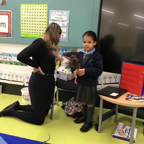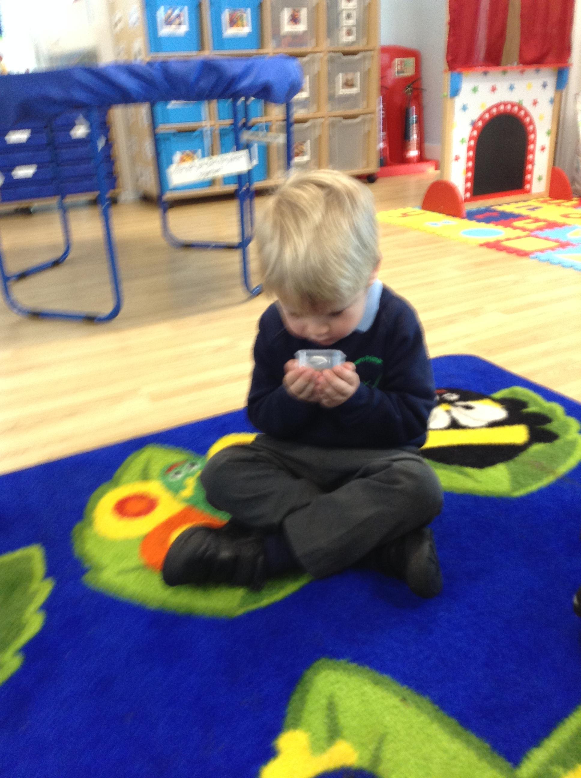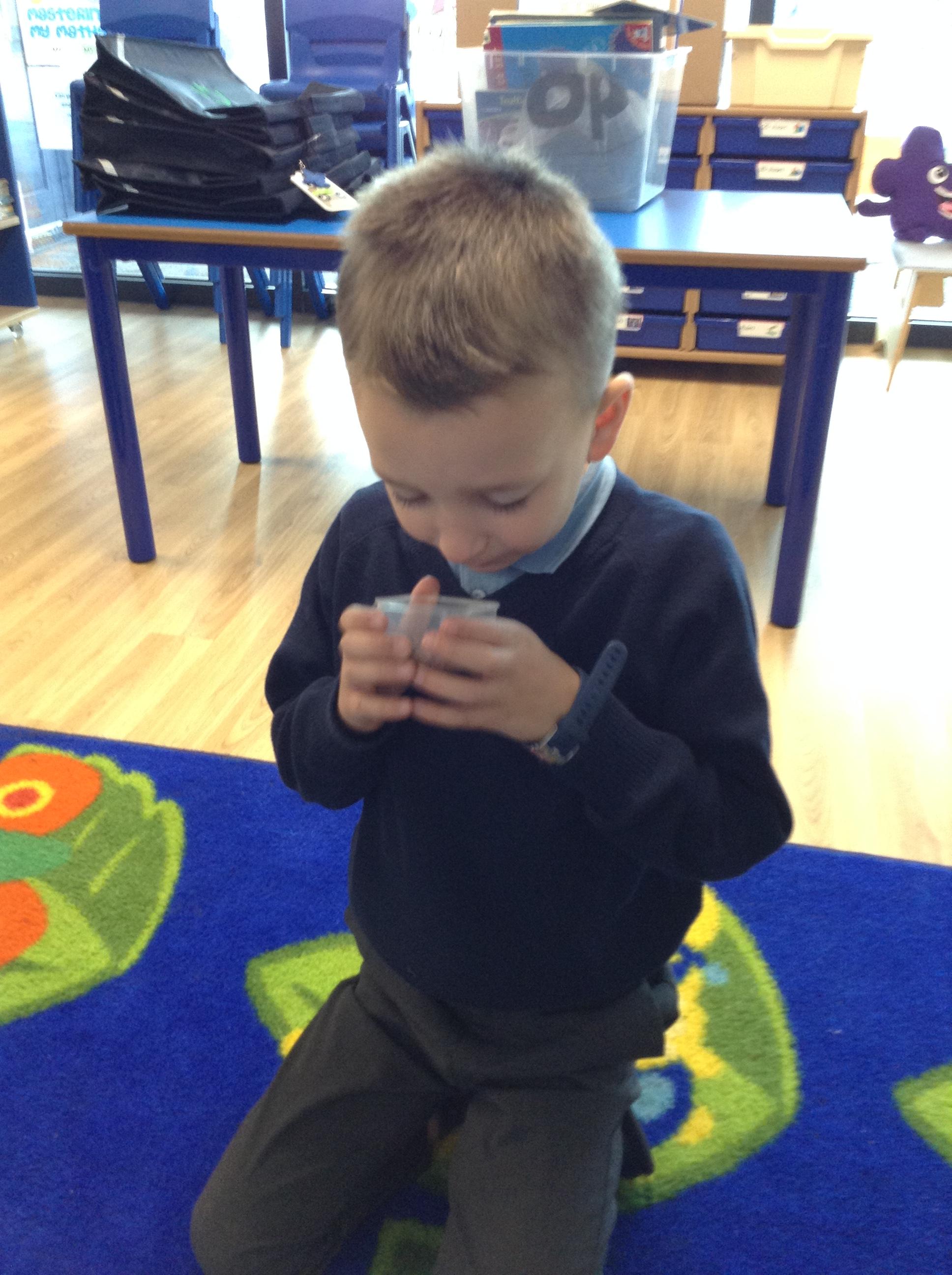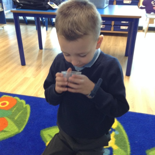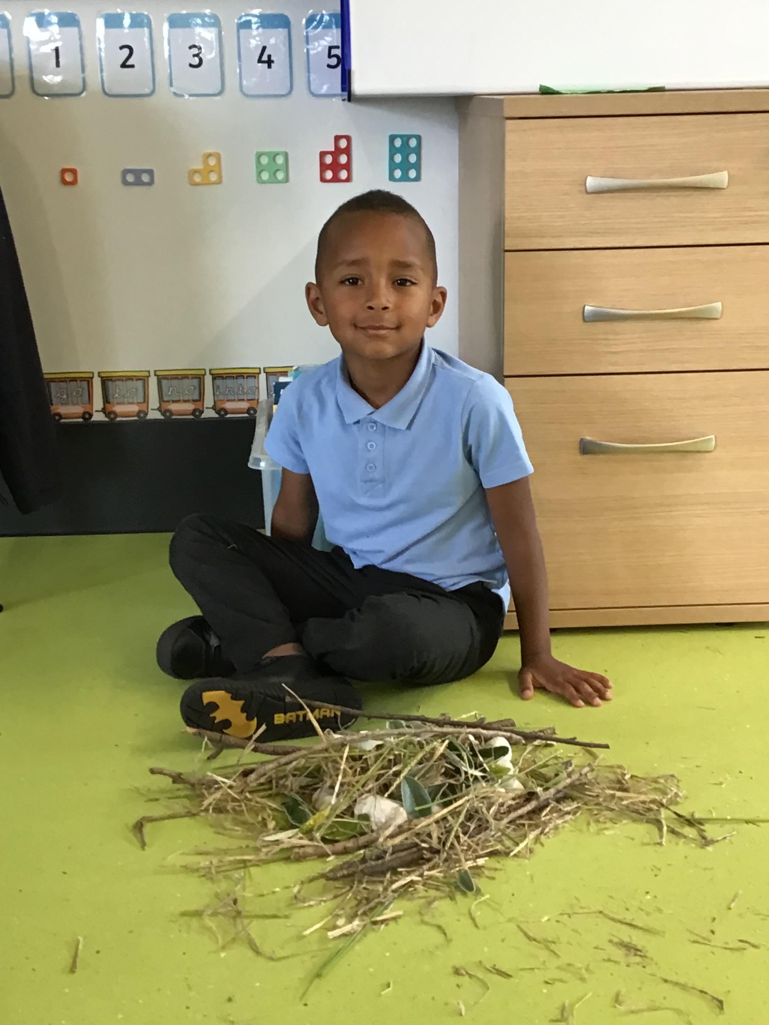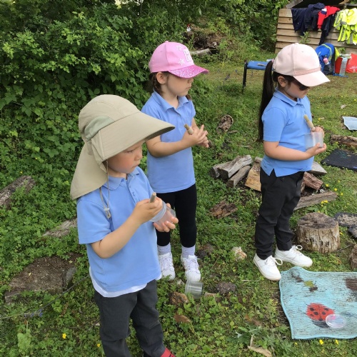 This week the children have been learning all about their five senses. A day was spent exploring each sense and the children enjoyed a range of activities, from making a bowl of silly soup, listening to the different sounds that various musical instruments made, writing down what they could see through a pair of binoculars, touching their heads, shoulders, knees and toes and labelling the parts of the body and also smelling different things (they all liked the smell of the chocolate sauce and the jam, but not so much the coffee). The children have been busy independently painting large portraits of themselves, making their own masks and finding out which is the most popular eye colour in reception. Please could I remind parents to write a comment in your child's reading diary when you have read with them. This could be to say that they enjoyed the story, they could identify some key words or they used the pictures to help them to read the story. Every time the children have read five times at home, they get to move their photo up on our reading snake and will receive a certificate for 25, 50, 75 and 100 reads. Over the next two weeks the children's learning will be based around the story 'A Brave Bear'. They are going to learn to re-tell the story and will also use bears to help with their counting, addition, subtraction and positional language skills. The children had their first forest school session this week and these will continue on Friday afternoons for the rest of the year, so please make sure that your child is sent in with a coat and if their wellies are not already in school, please could they be brought in for these sessions. For this week's session, the children went on the field to complete a scavenger hunt to find some special items that can be found in the outdoor area. They took it in turns to take a picture from the special bag and then went on a hunt for this item using the binoculars to help them find it. The children went to find feathers, birds, earthworms, ladybirds, leaves, spider webs and muddy footprints. They were fascinated by the helicopter seeds and what happened when they threw them up in the air. Next week we will be learning the sounds d, g and o in our phonics sessions. I hope you all have a lovely weekend