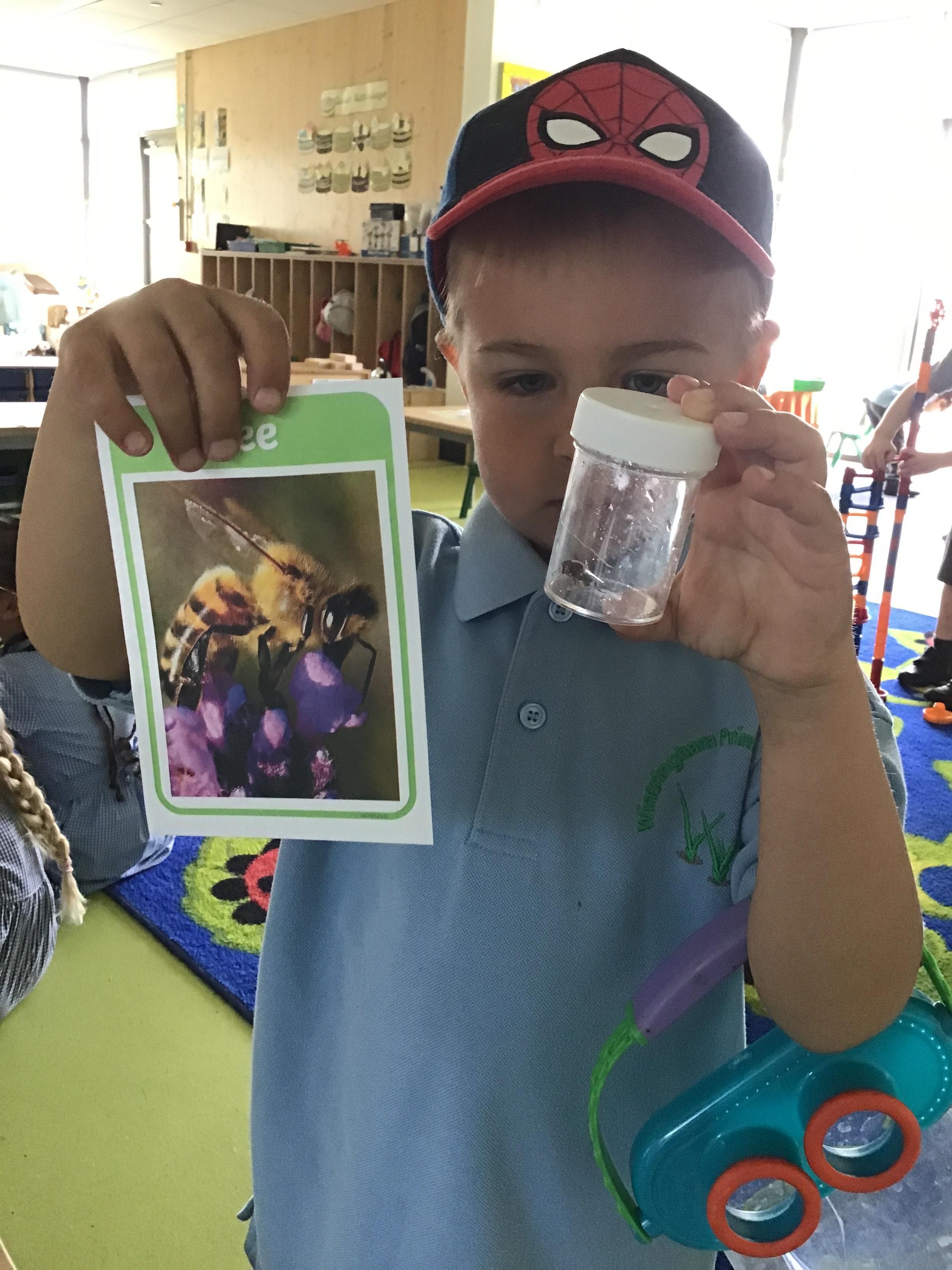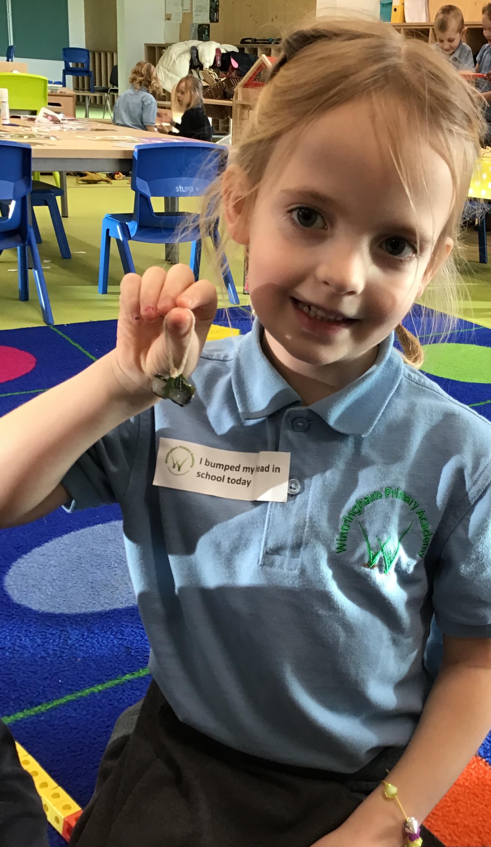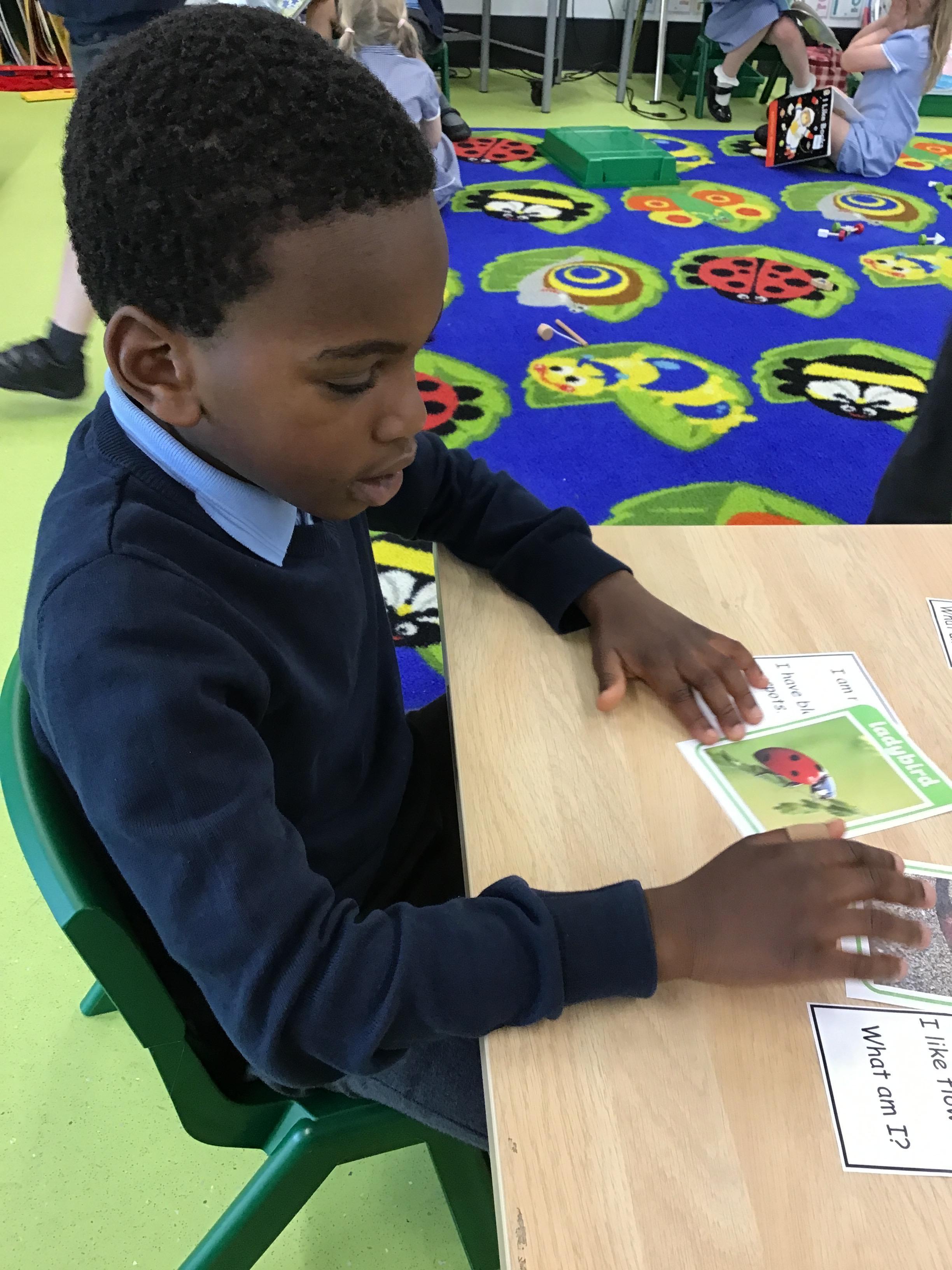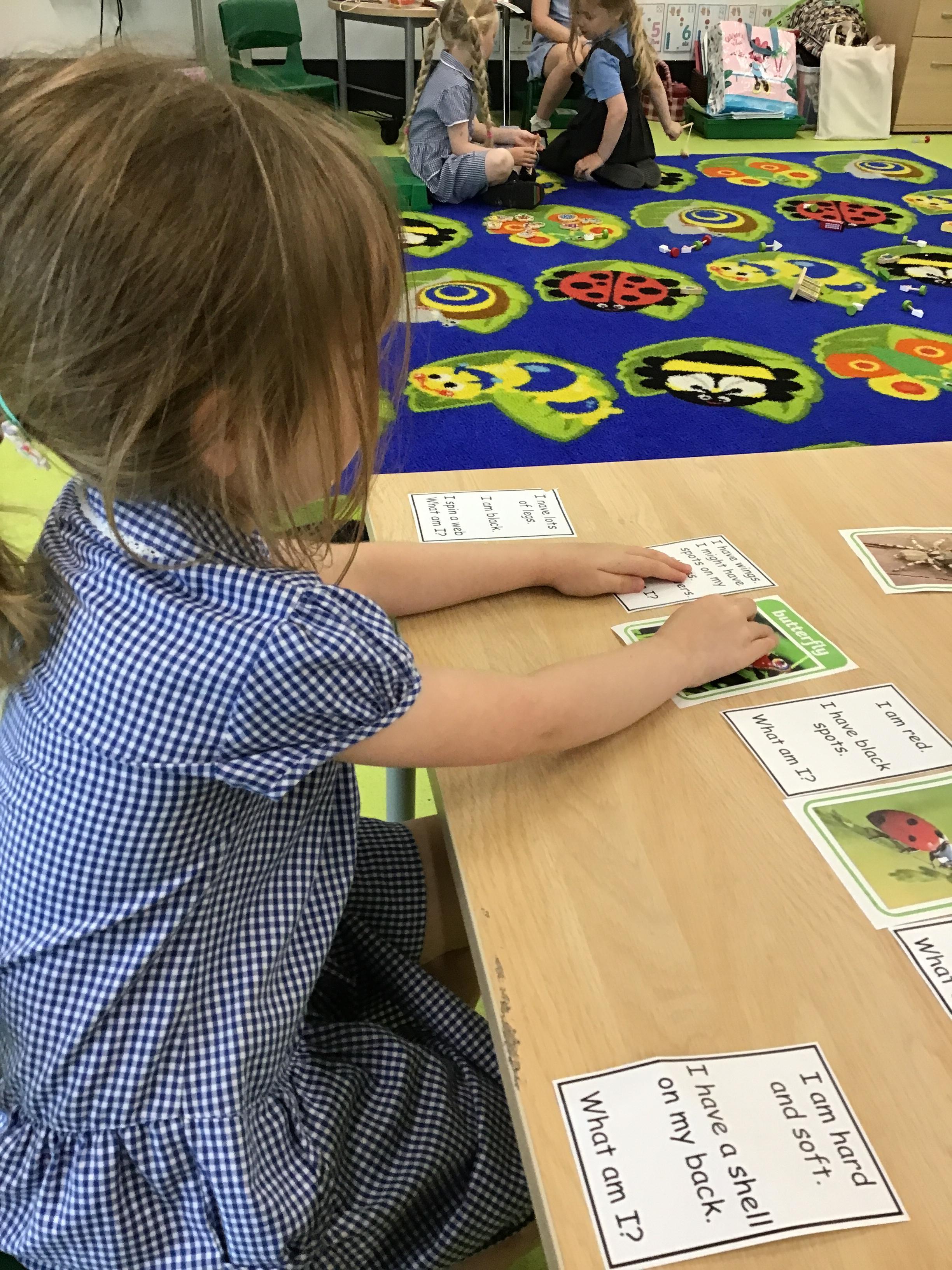 This week the children have been learning all about their five senses. A day was spent exploring each sense and the children enjoyed a range of activities, from making a bowl of silly soup, listening to the different sounds that various musical instruments made, writing down what they could see through a pair of binoculars, touching their heads, shoulders, knees and toes and labelling the parts of the body and also smelling different things (they all liked the smell of the chocolate sauce and the jam, but not so much the coffee). The children have been busy independently painting large portraits of themselves, making their own masks and finding out which is the most popular eye colour in reception. Please could I remind parents to write a comment in your child's reading diary when you have read with them. This could be to say that they enjoyed the story, they could identify some key words or they used the pictures to help them to read the story. Every time the children have read five times at home, they get to move their photo up on our reading snake and will receive a certificate for 25, 50, 75 and 100 reads. Over the next two weeks the children's learning will be based around the story 'A Brave Bear'. They are going to learn to re-tell the story and will also use bears to help with their counting, addition, subtraction and positional language skills. The children had their first forest school session this week and these will continue on Friday afternoons for the rest of the year, so please make sure that your child is sent in with a coat and if their wellies are not already in school, please could they be brought in for these sessions. For this week's session, the children went on the field to complete a scavenger hunt to find some special items that can be found in the outdoor area. They took it in turns to take a picture from the special bag and then went on a hunt for this item using the binoculars to help them find it. The children went to find feathers, birds, earthworms, ladybirds, leaves, spider webs and muddy footprints. They were fascinated by the helicopter seeds and what happened when they threw them up in the air. Next week we will be learning the sounds d, g and o in our phonics sessions. I hope you all have a lovely weekend