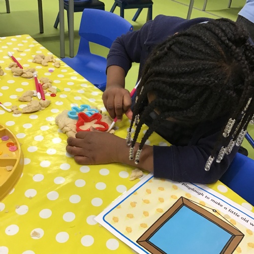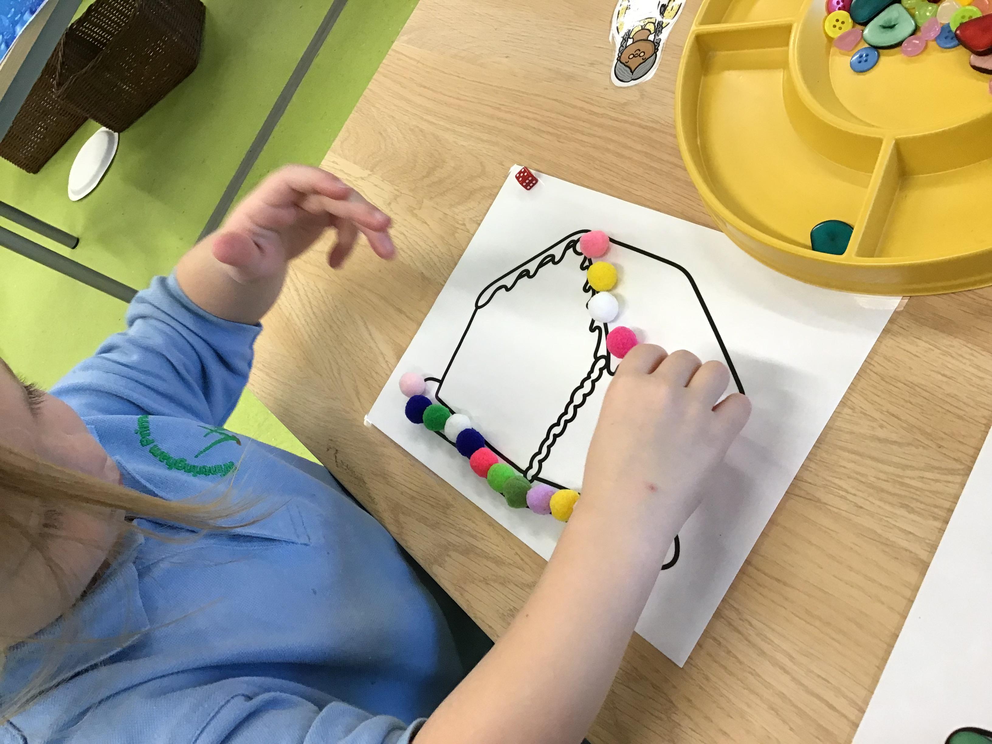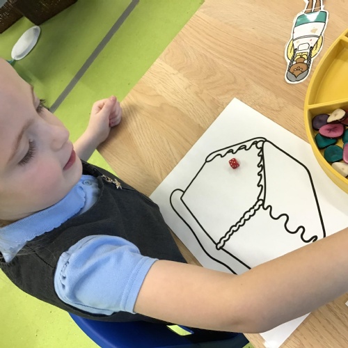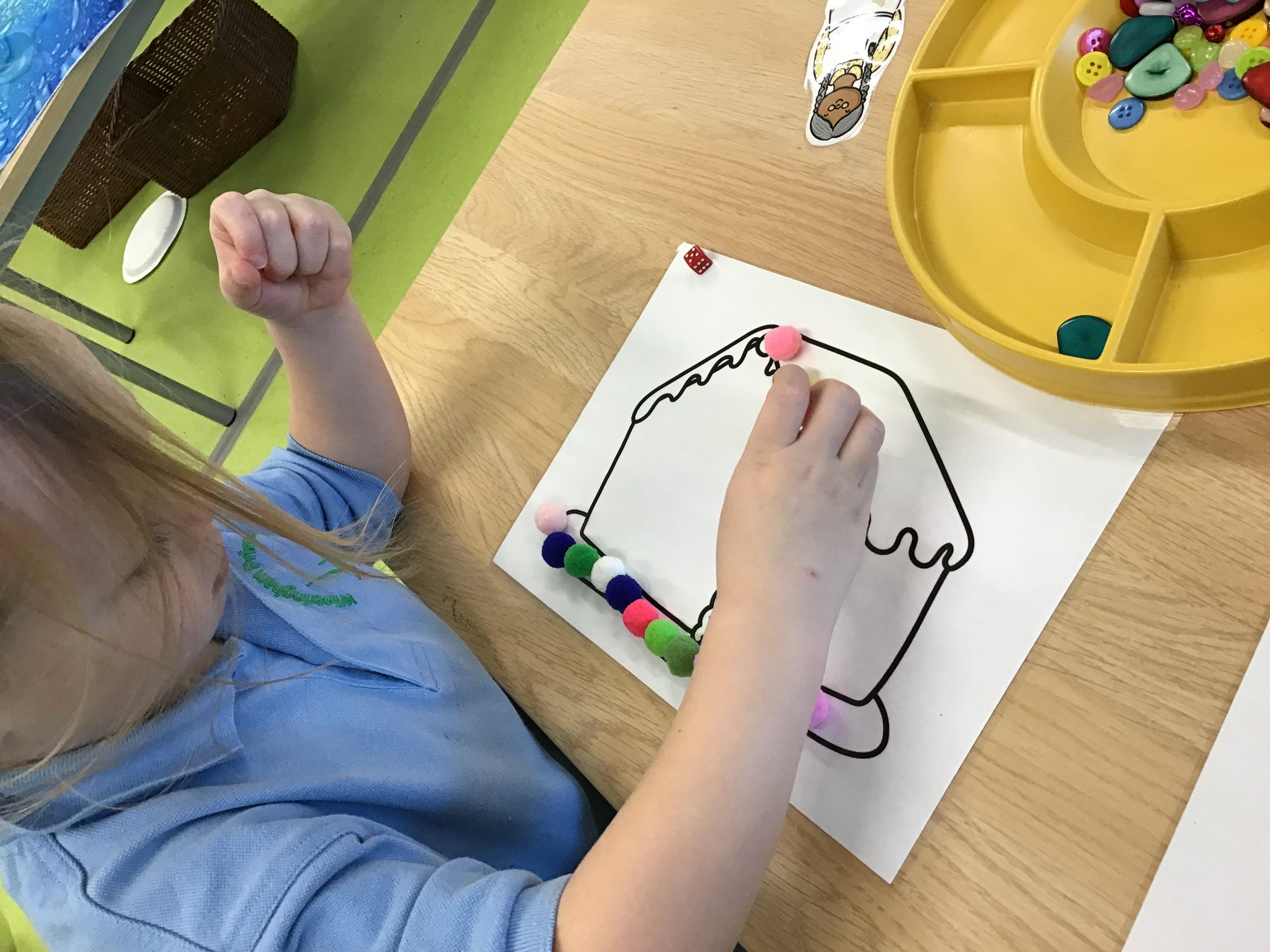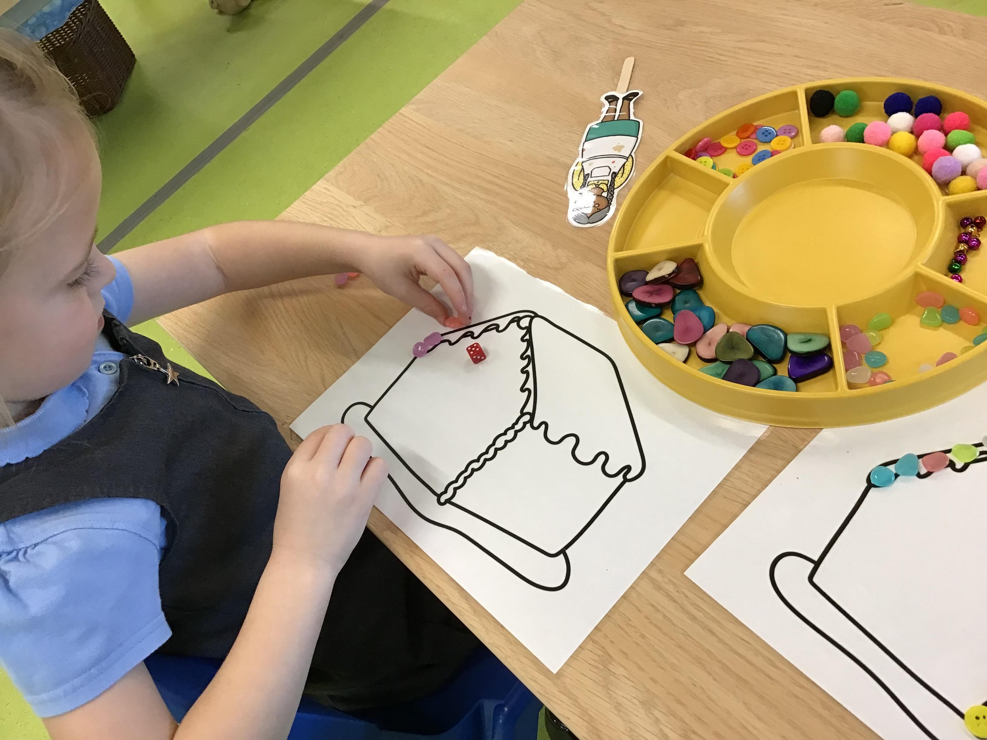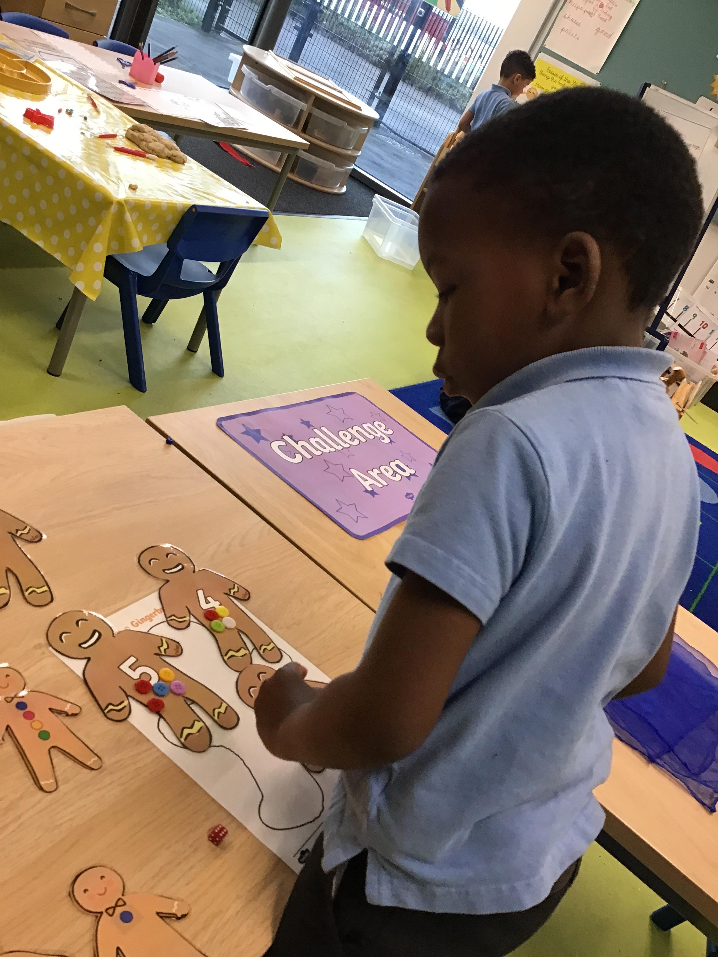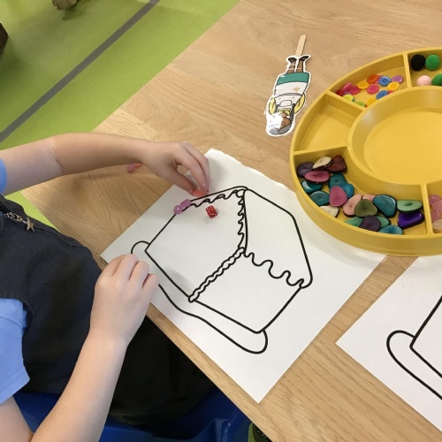 The second key text that the children have explored is 'The Gingerbread Man.' The children continued to practise re telling a story, thought about alternative endings for the story and considered the different adjectives that could be used to describe the fox and compare him to a kind character. In continuous provision, the children have been creating gingerbread men with play dough, subitising using a dice and placing decorations on a gingerbread man or house, writing what the different characters might say and designing their own gingerbread men. During the focus activity, the children were writing about pictures from the story, focussing on applying their phonics skills and letter formation.