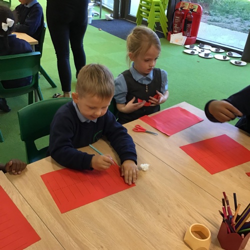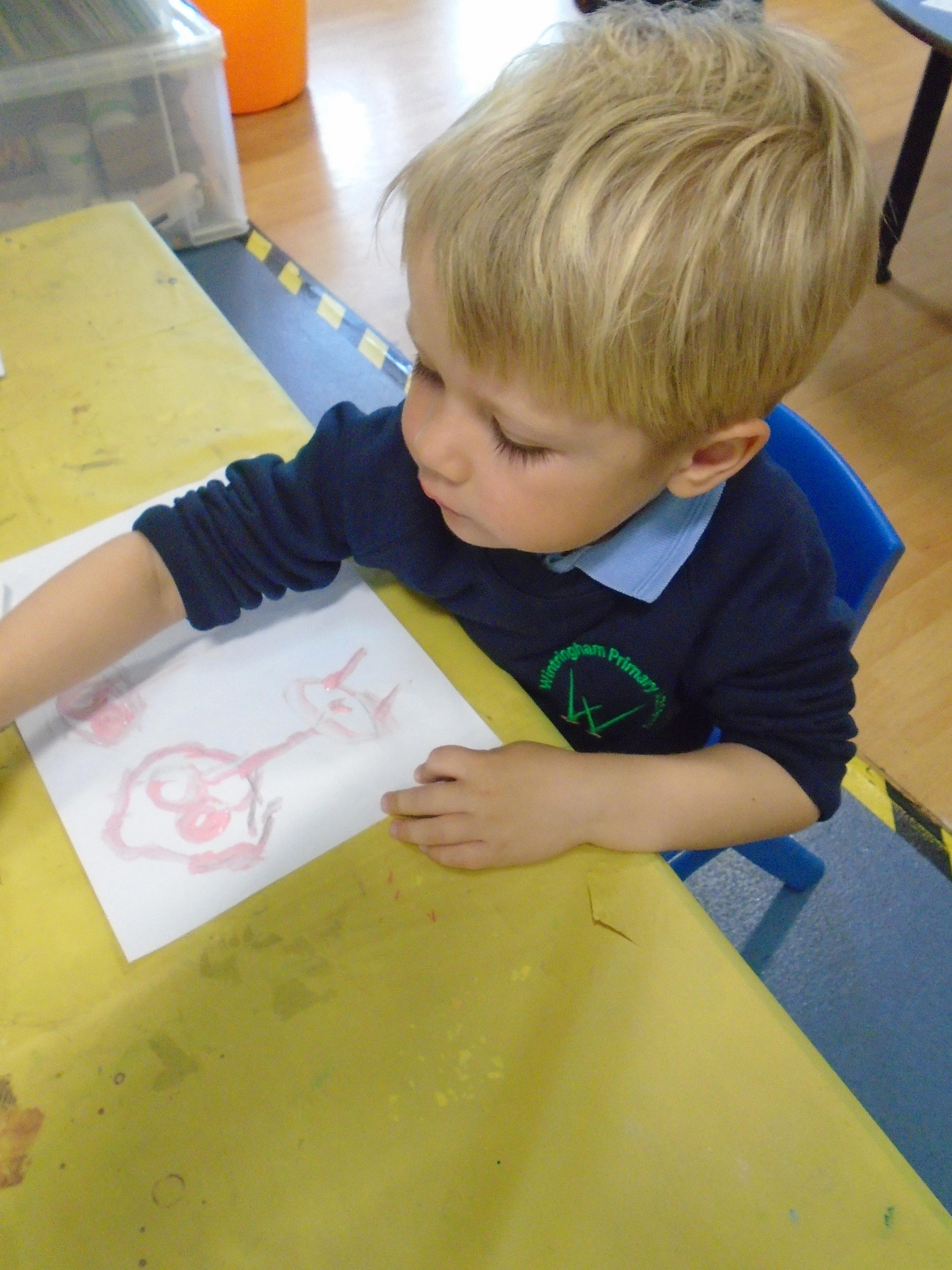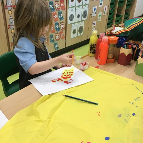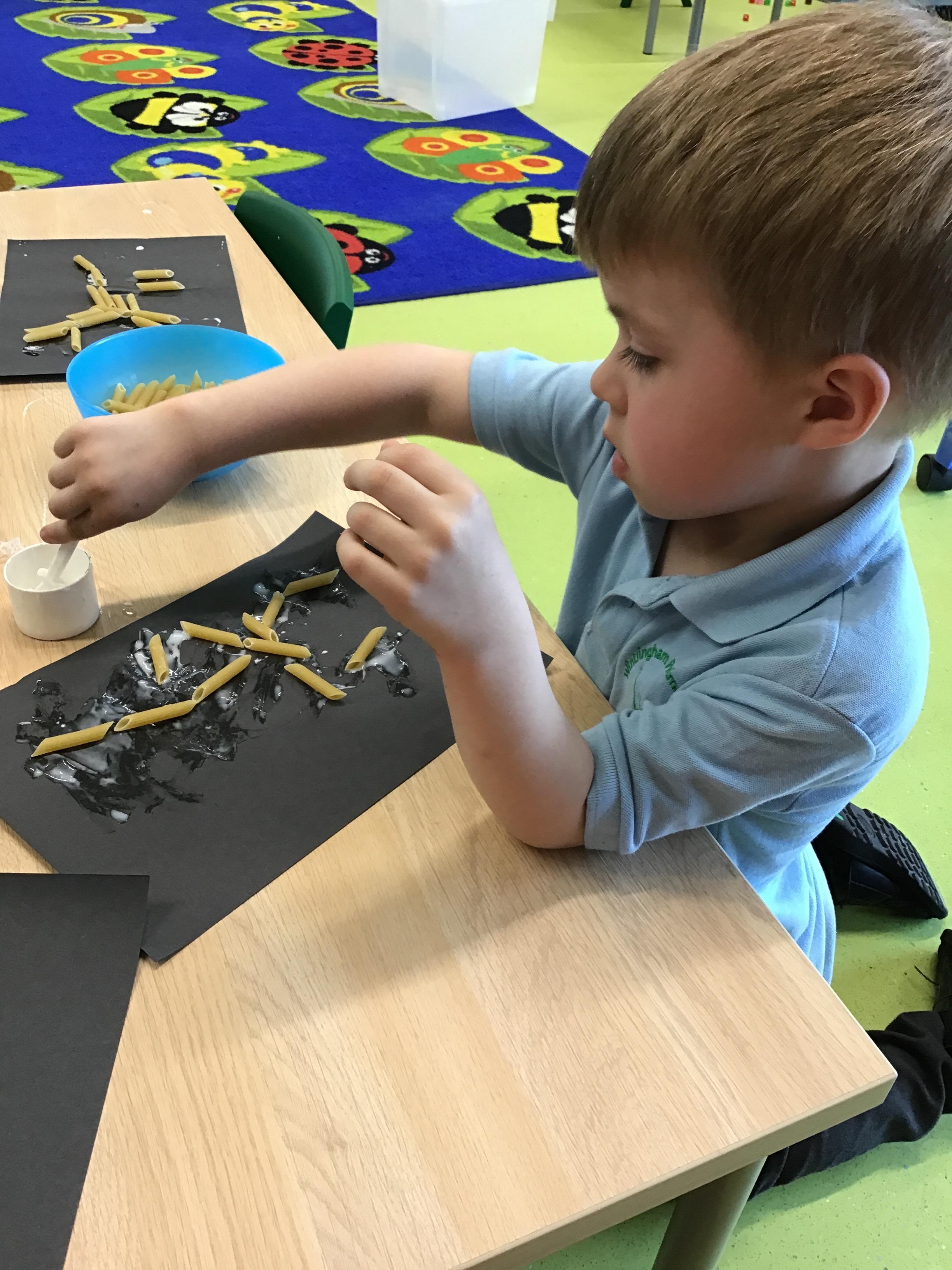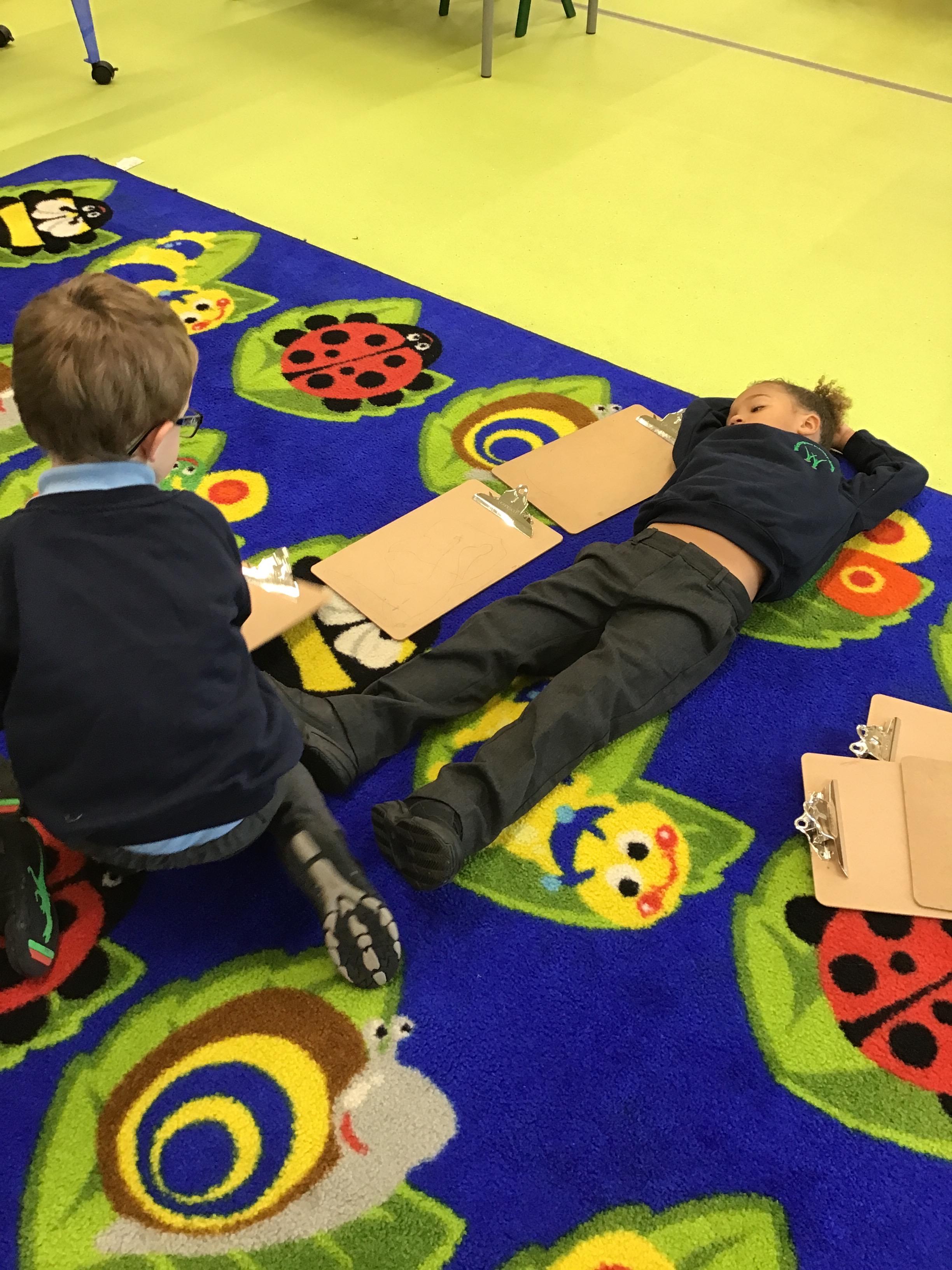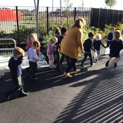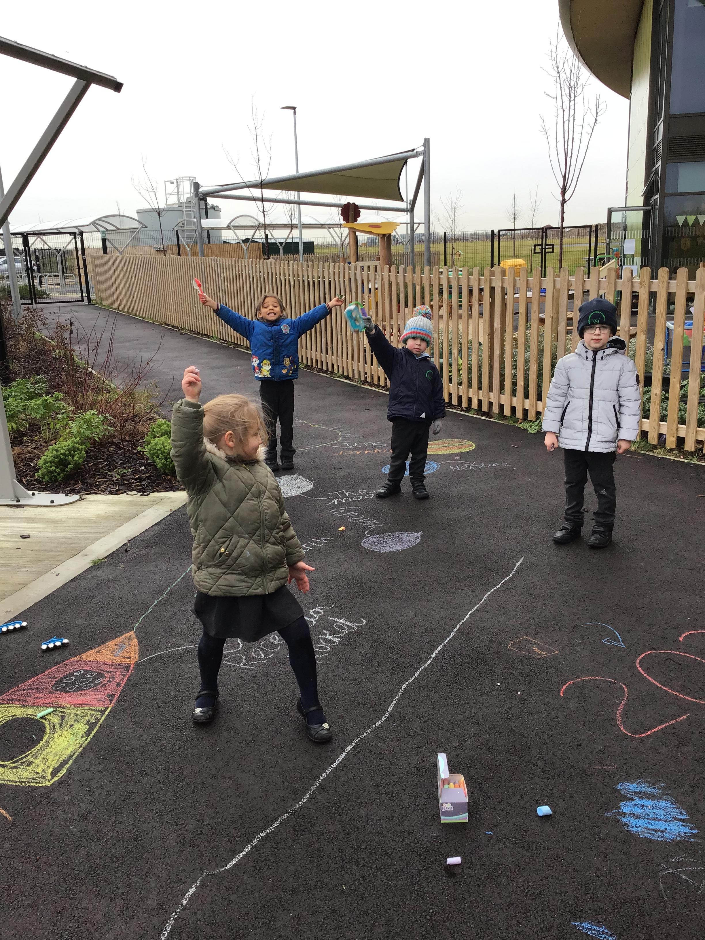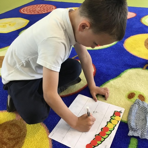 Welcome back after half term, it is so lovely to see the children back at school and hearing about what they have been doing during their week off. The children have settled well into their new school, they have been enjoying exploring their new surroundings and meeting the children in class 2 at playtime, lunchtime and during shared outdoor learning sessions. For Bonfire Night, the children made firework pictures using the touch screen on the laptop and also using glue, salt and different watercolours. They made patterns using firework noises, e.g. bang, whoosh, fizz, bang, whoosh, fizz and then wrote down some of these words onto an outline of a firework. The children have been independently adding together the number of seeds found on two strawberries before writing down the answer, writing signs for our new fruit and vegetable shop role play area and using play-dough to replicate different fireworks. For our outdoor learning this week, the children worked with the children from class 2 to draw around each other's bodies on the playground and then wrote some labels for the different body parts. Next week the children will be learning the sounds r, h, b and f/ff in our phonics sessions. They will also be continuing to practise segmenting and blending sounds for reading and writing.